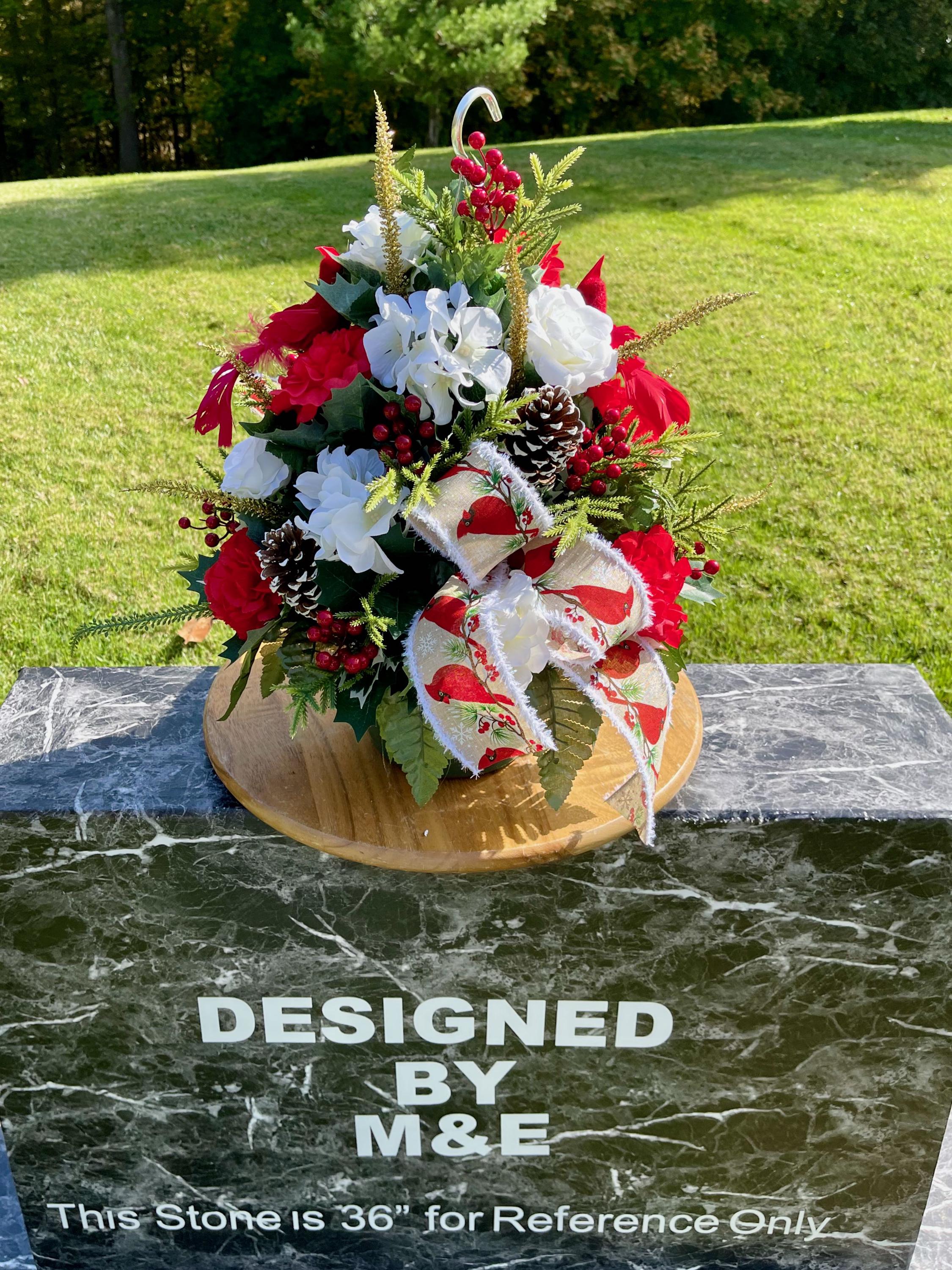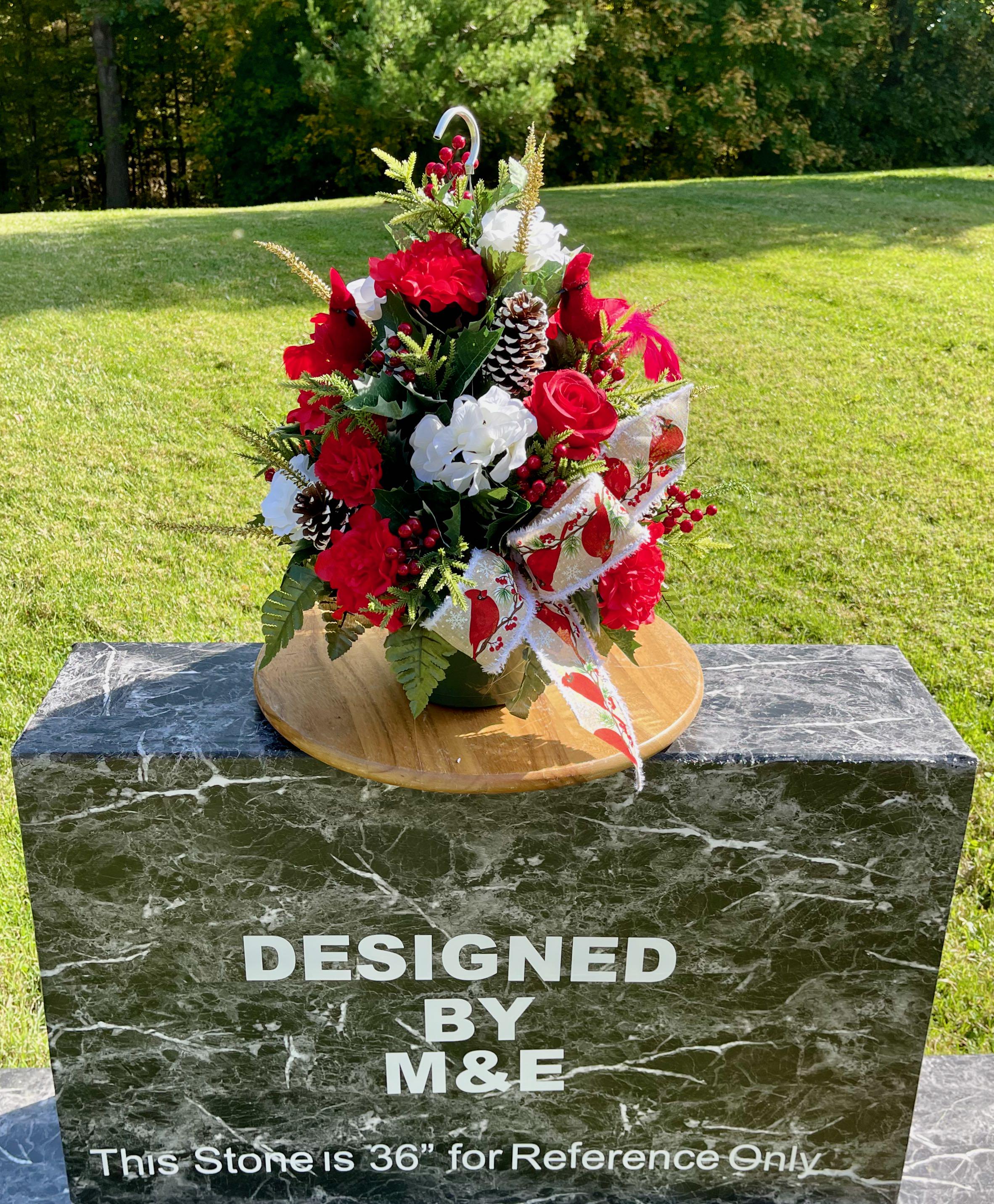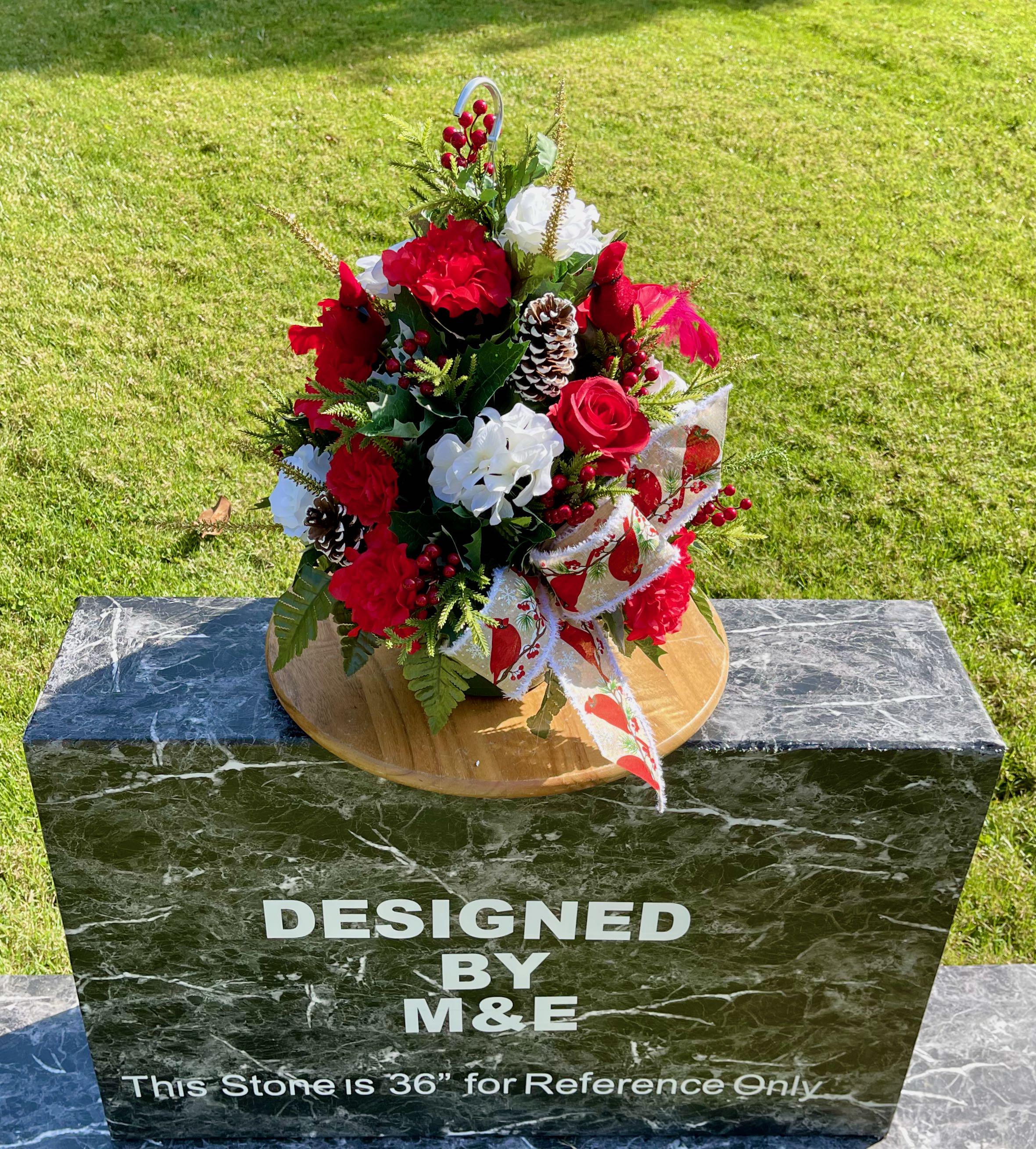**Note** - The headstone pictured is 36" for reference only, please see photo on green measuring mat for arrangements exact dimensions.