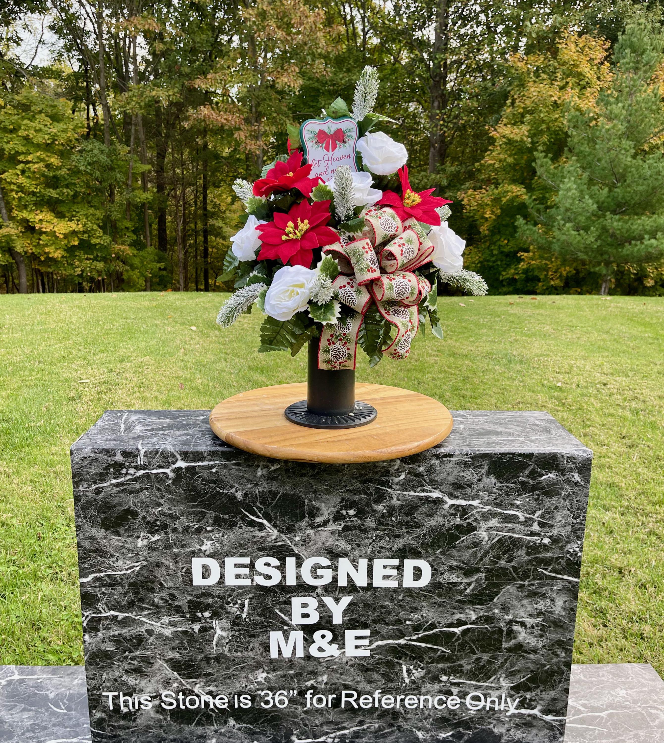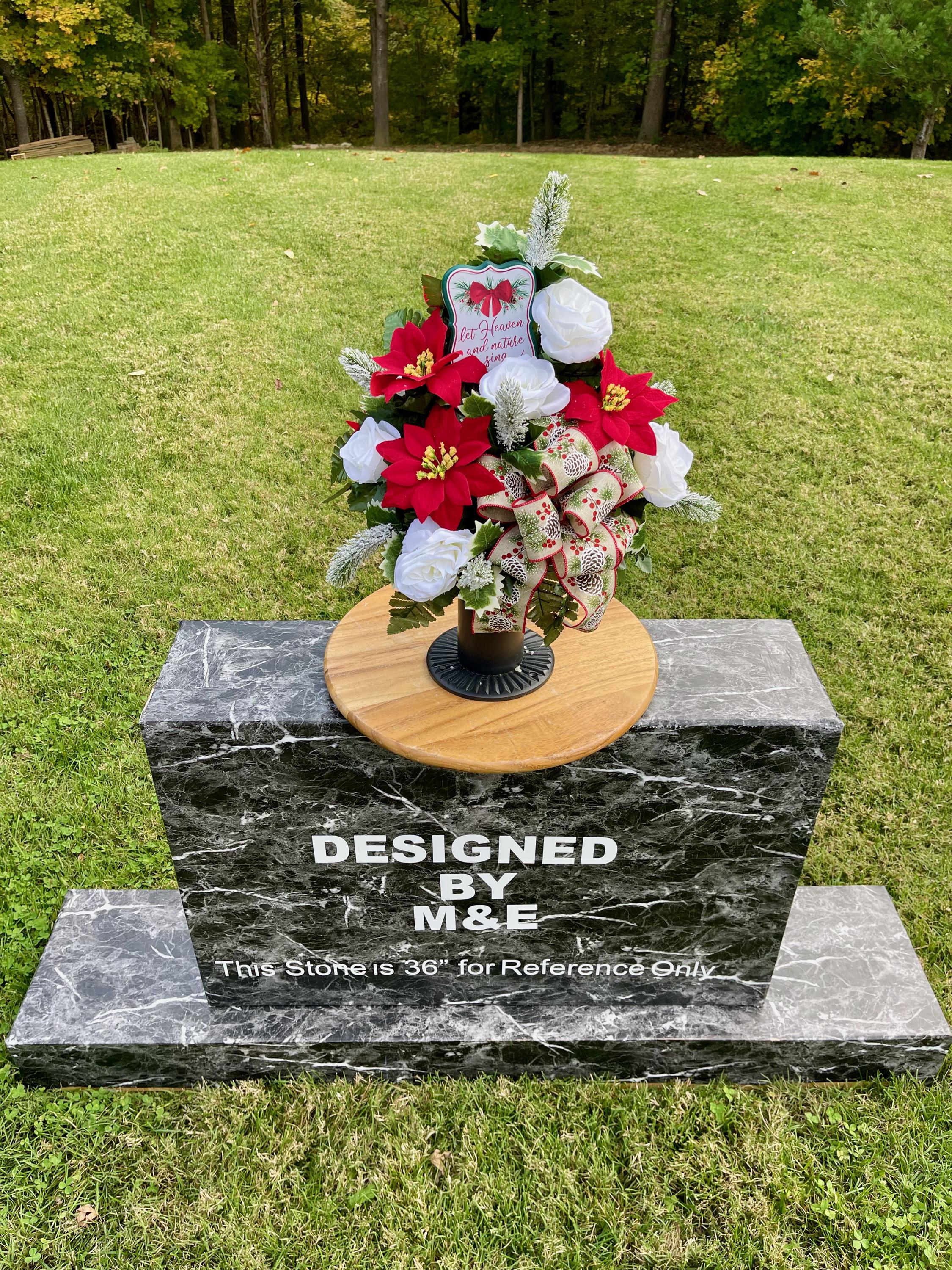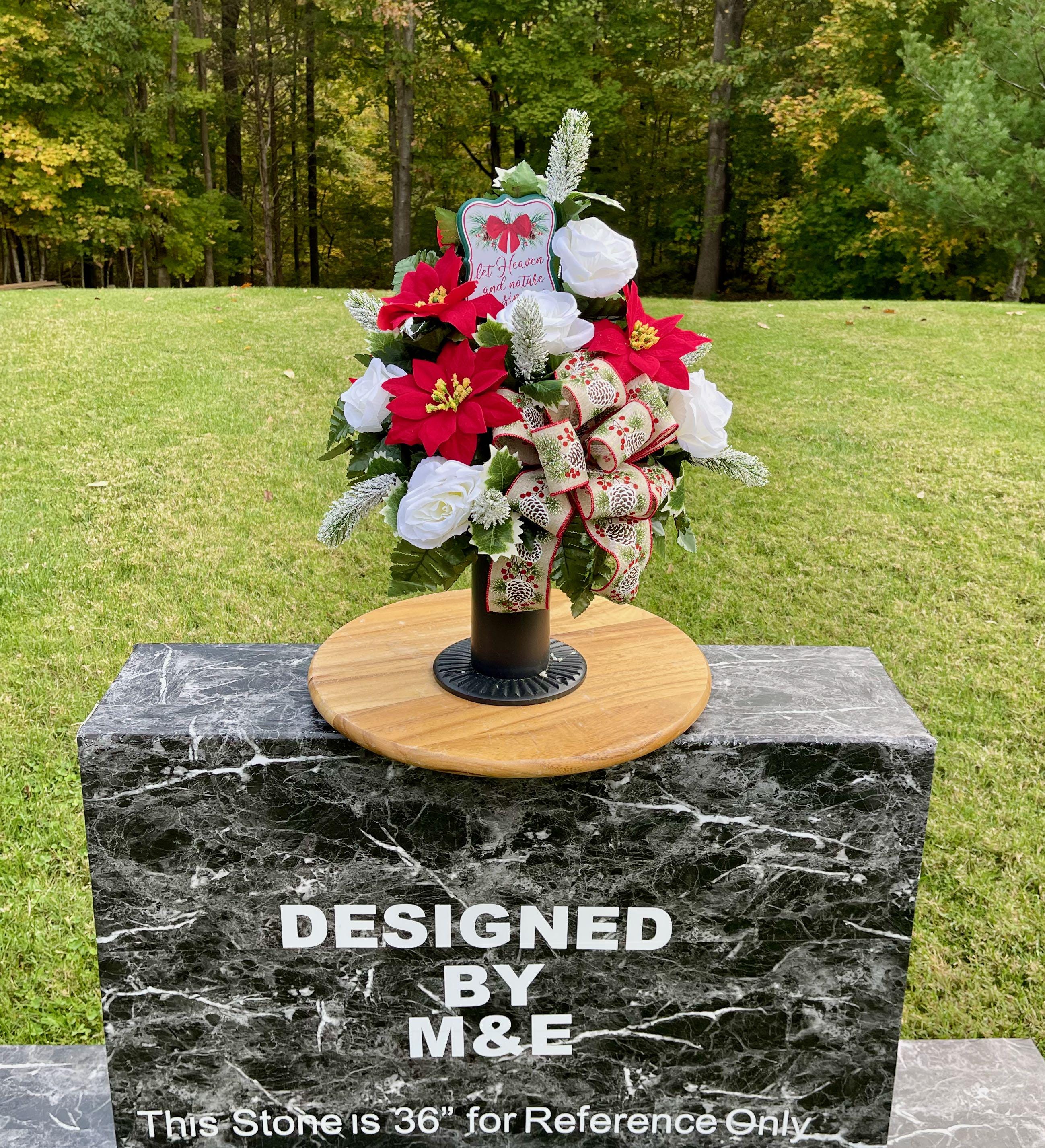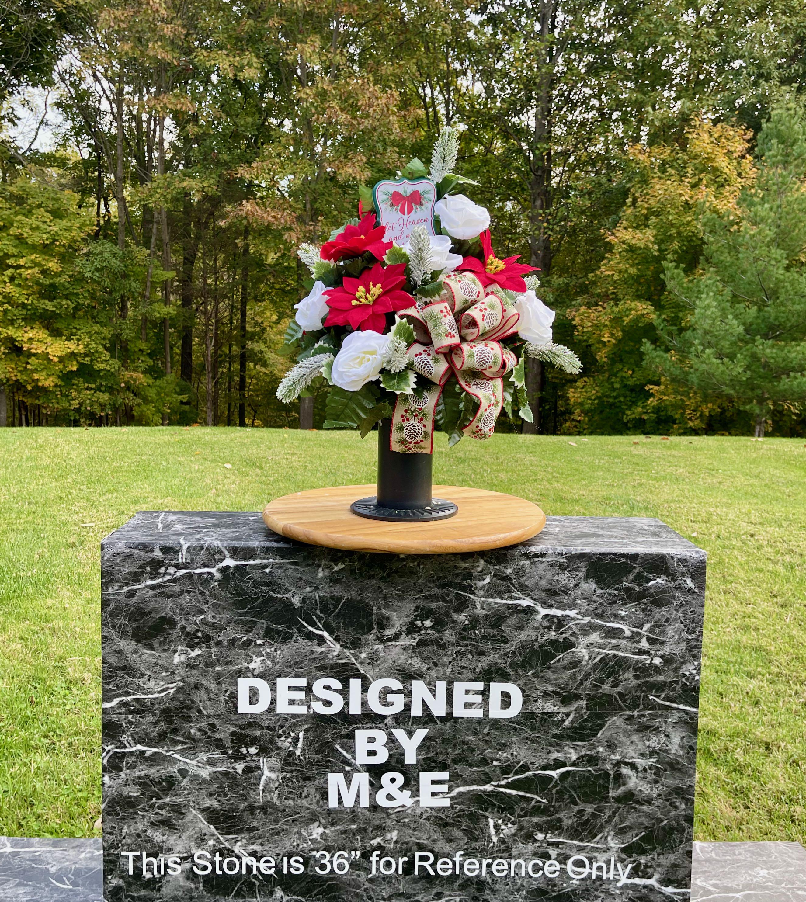 **Note** - The headstone pictured is 36" for reference only, please see photo on green measuring mat for arrangements exact dimensions.