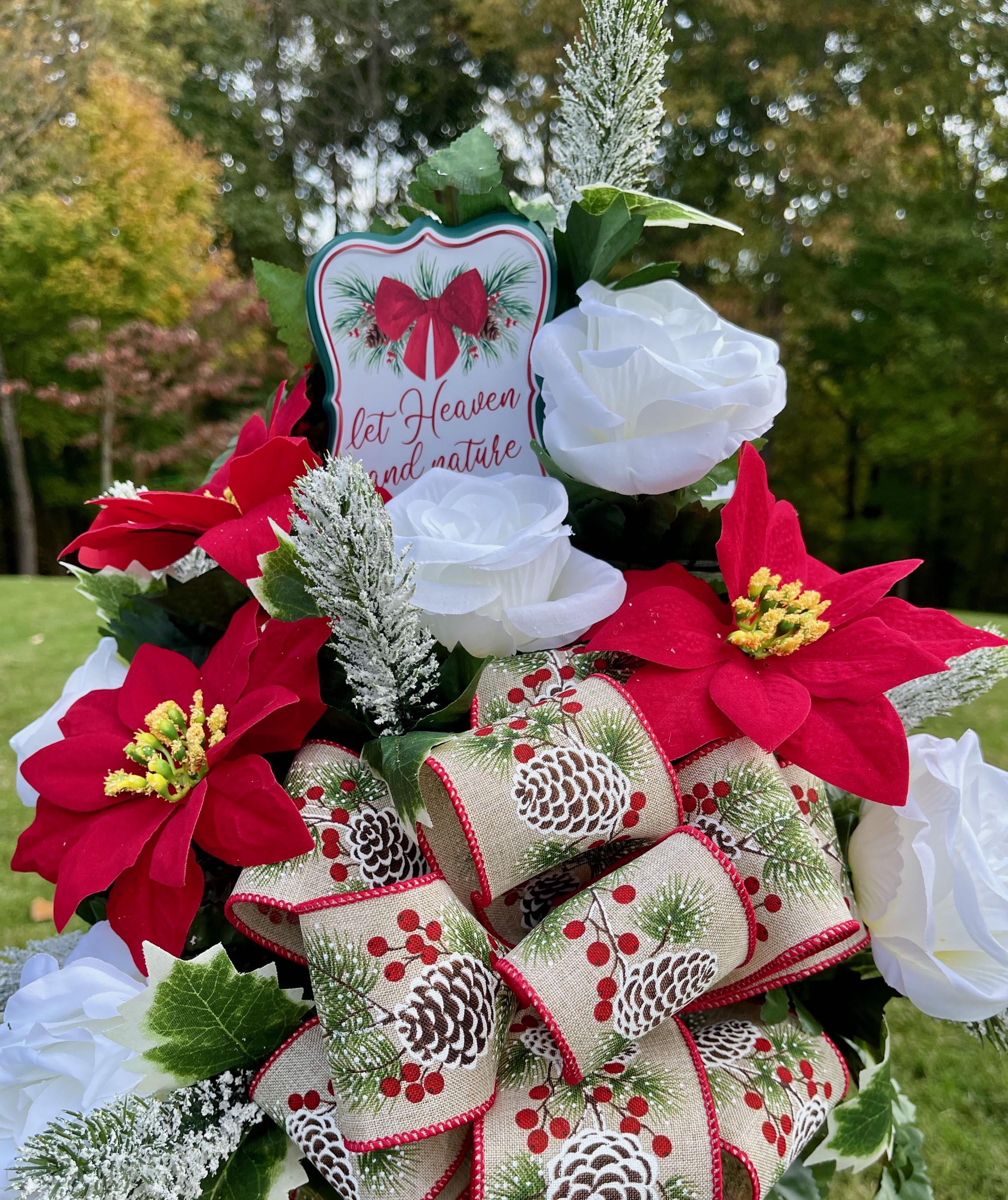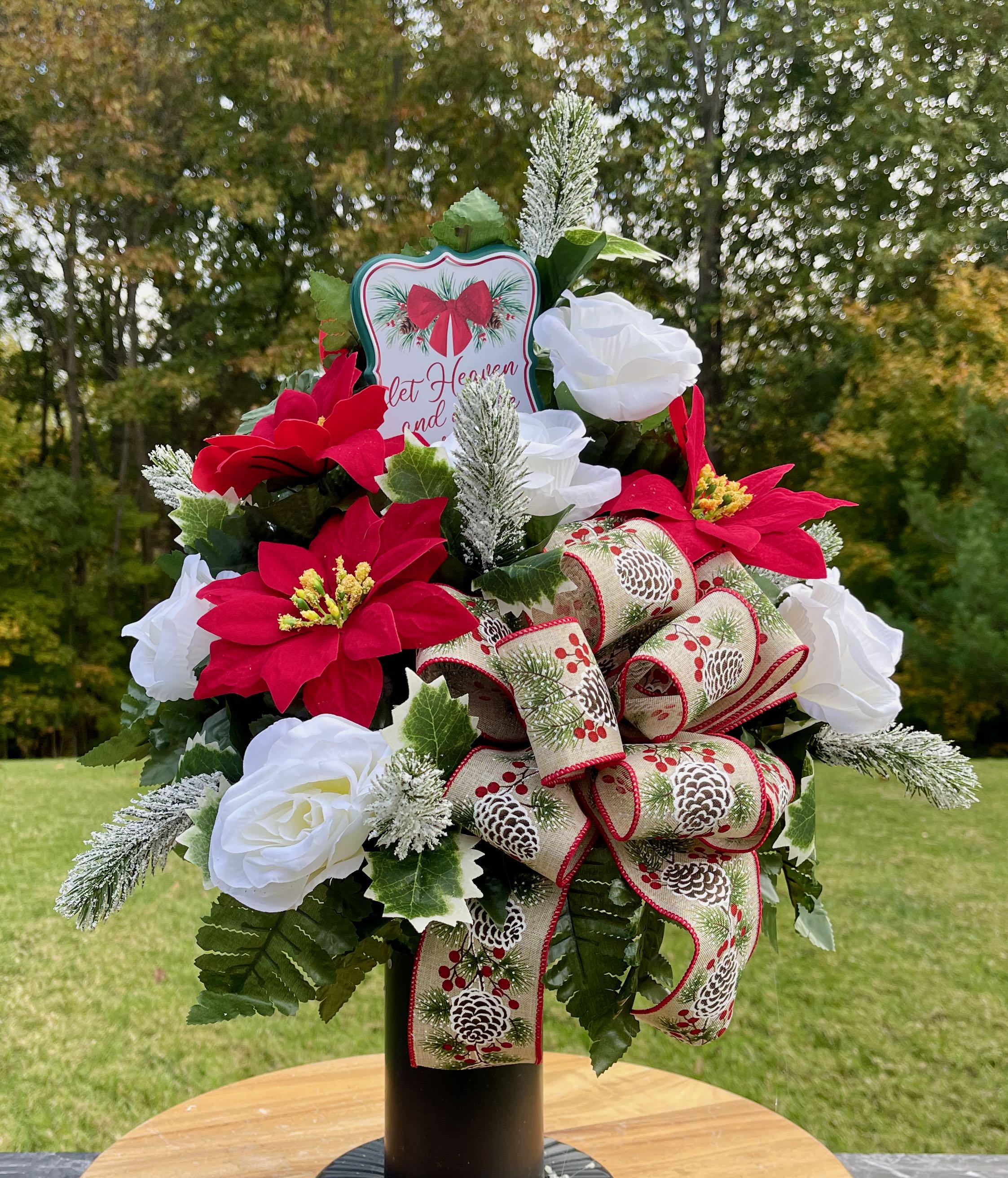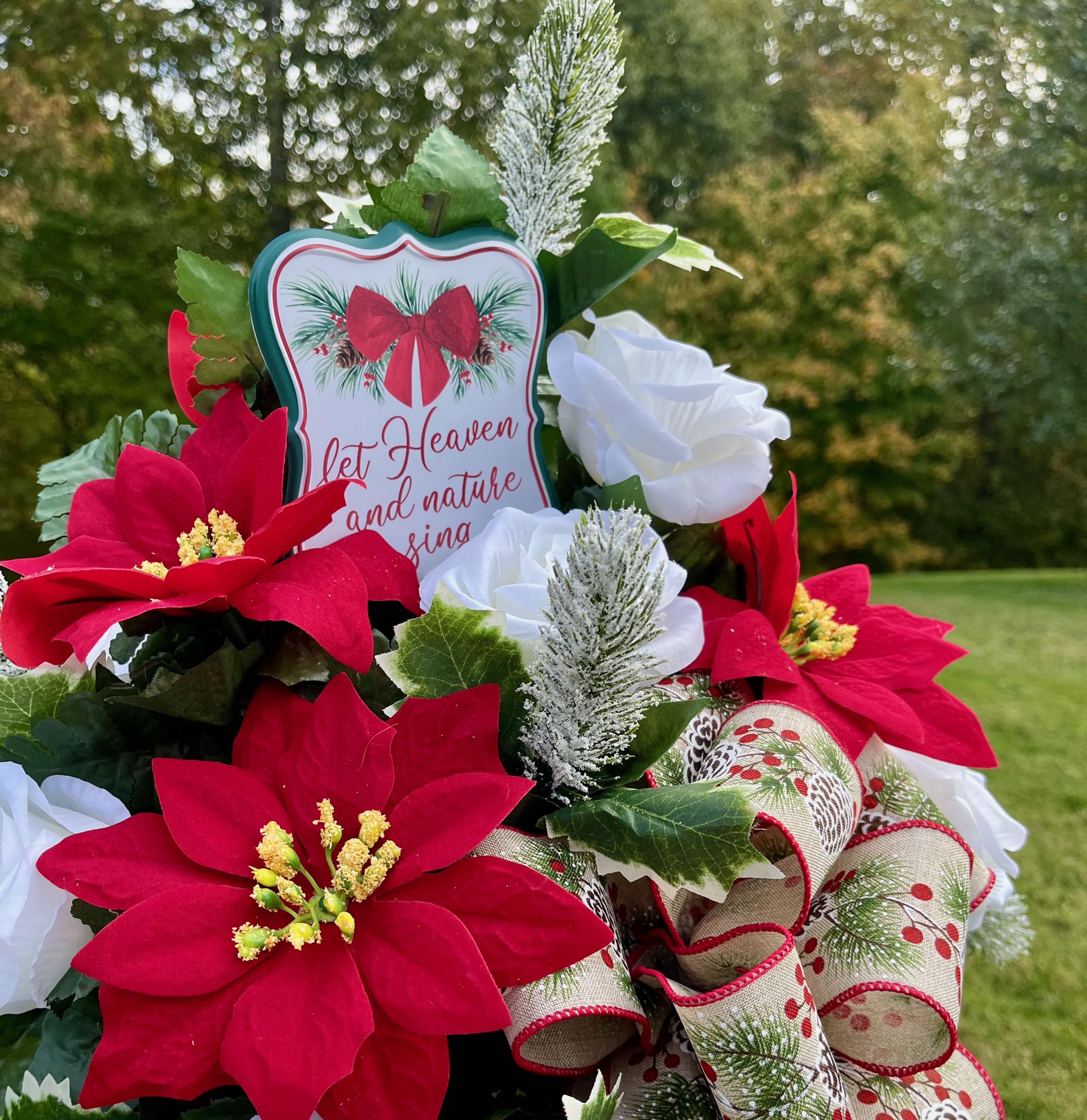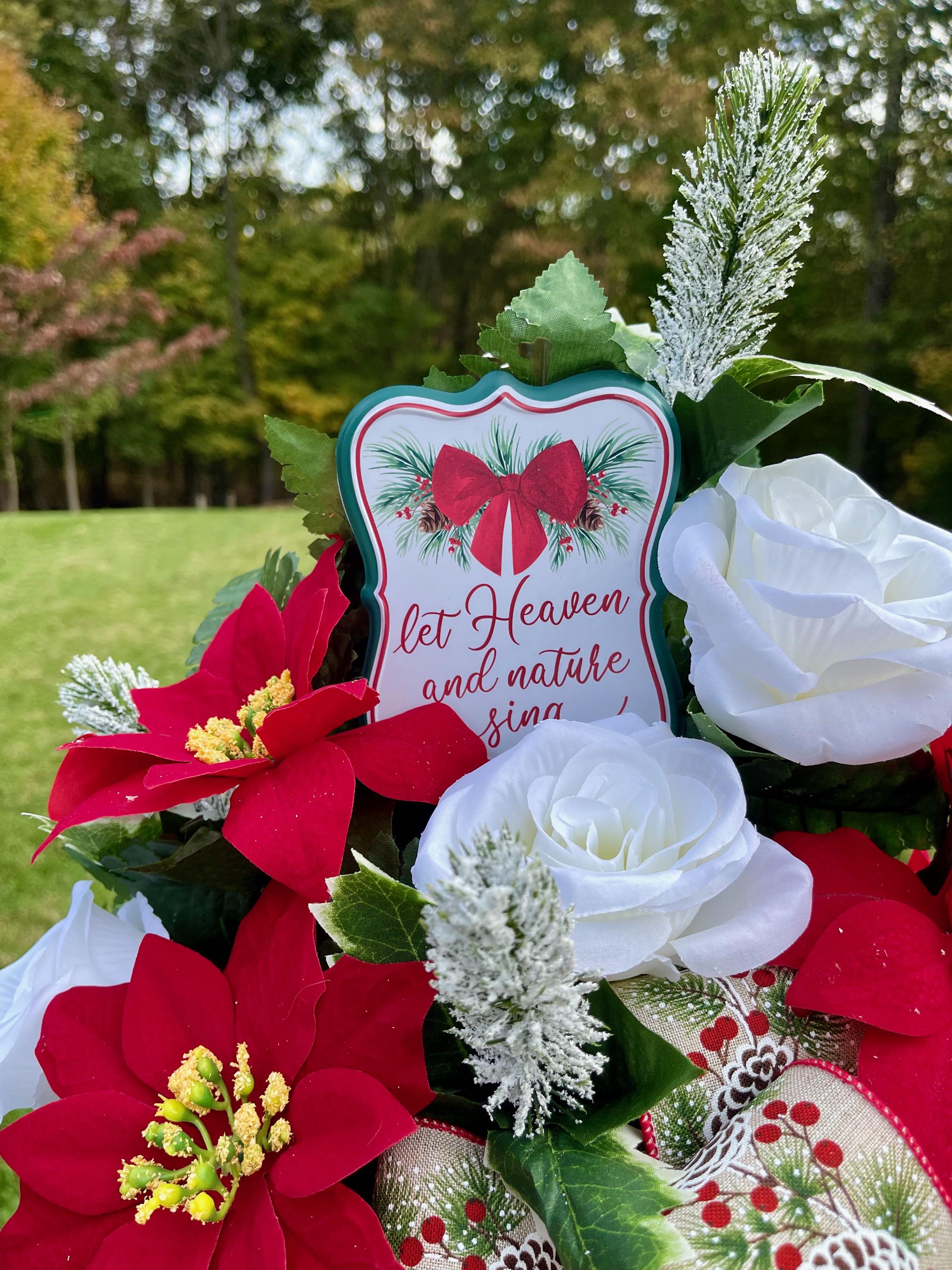 Christmas Cemetery Vase: Let Heaven and Nature Sing Sign with Bow Memorial Flowers