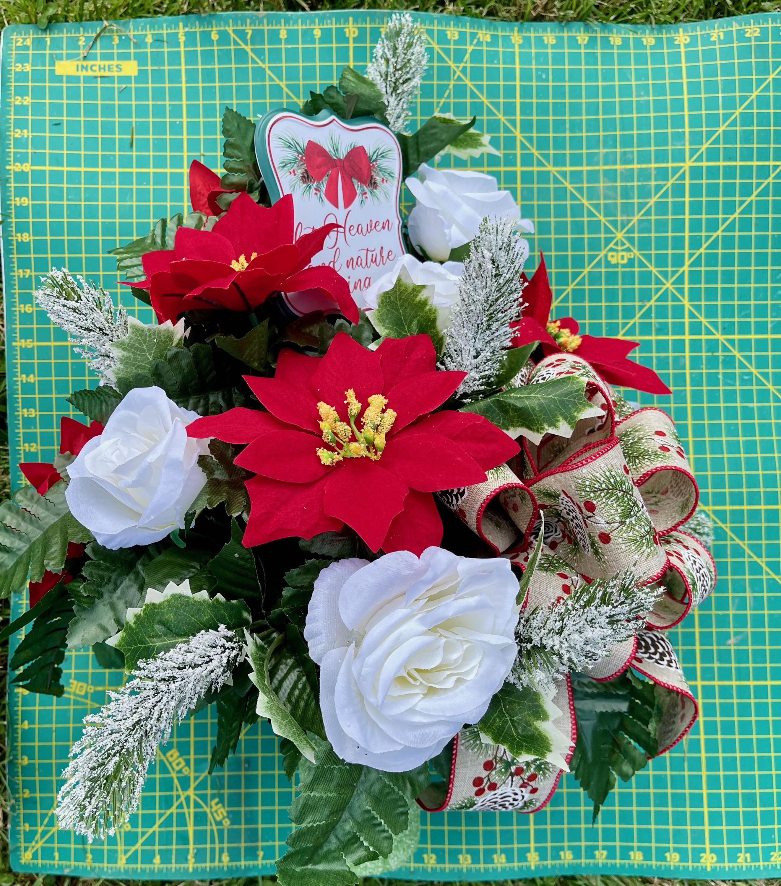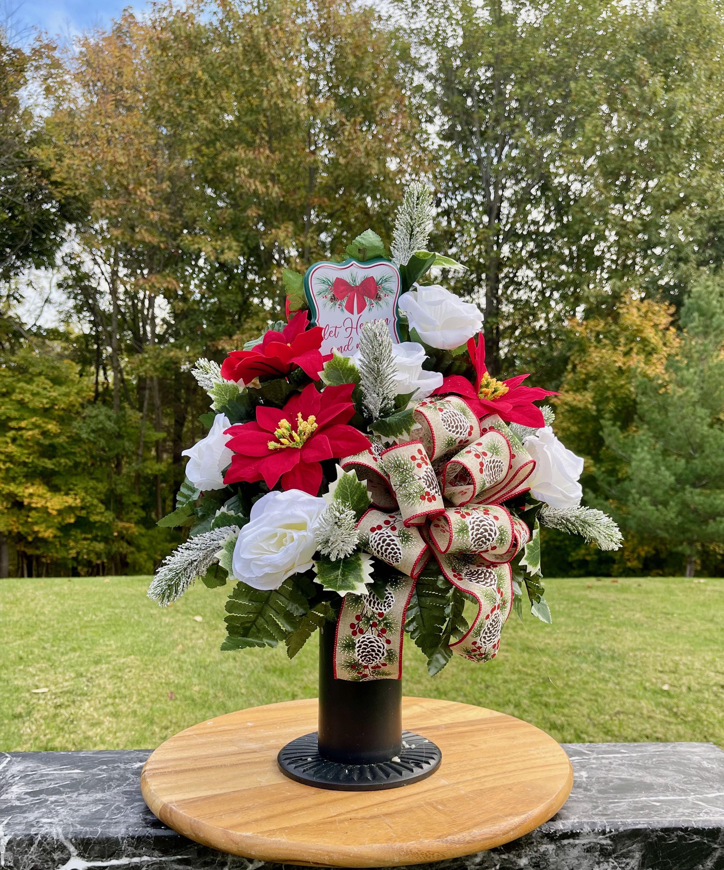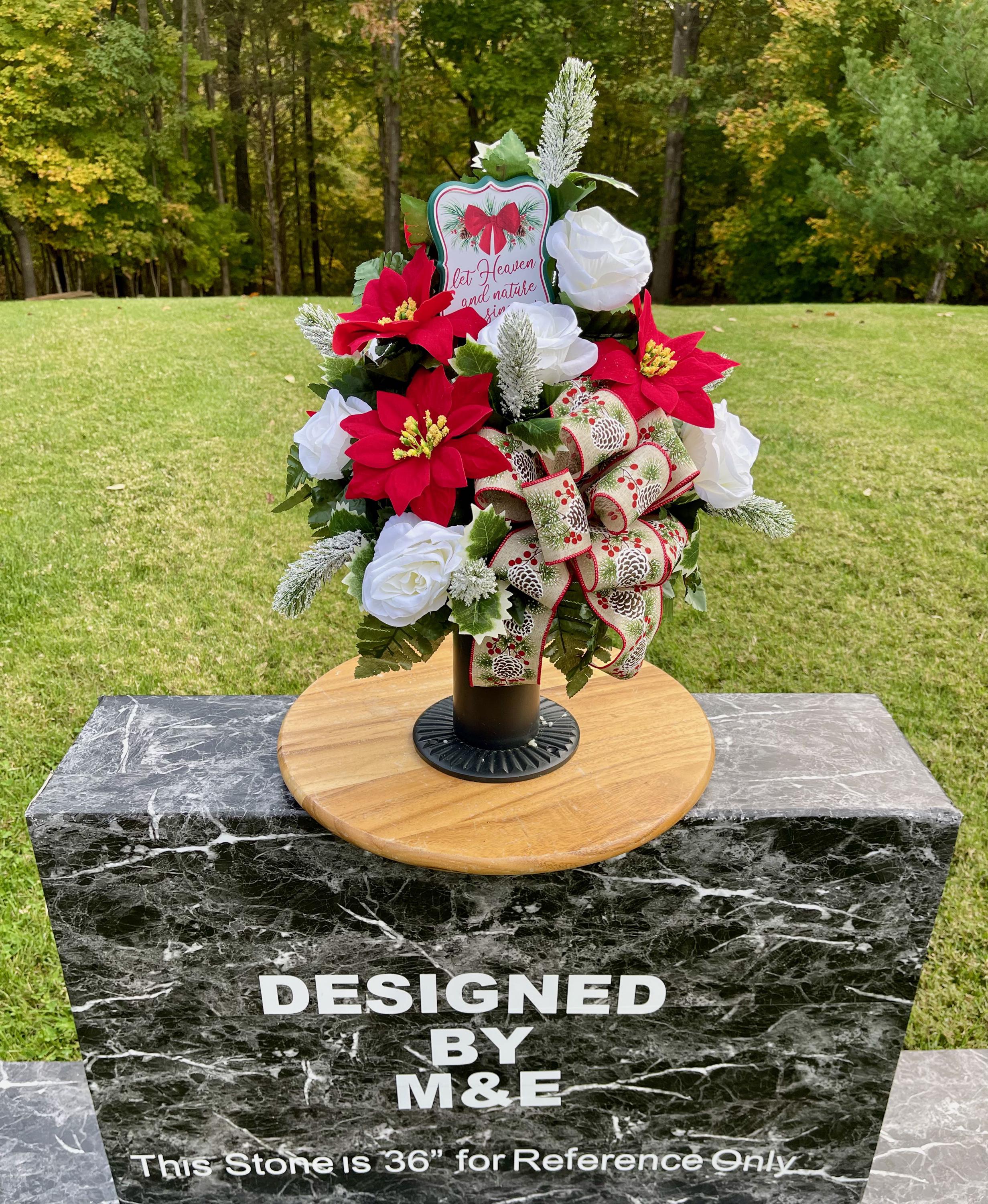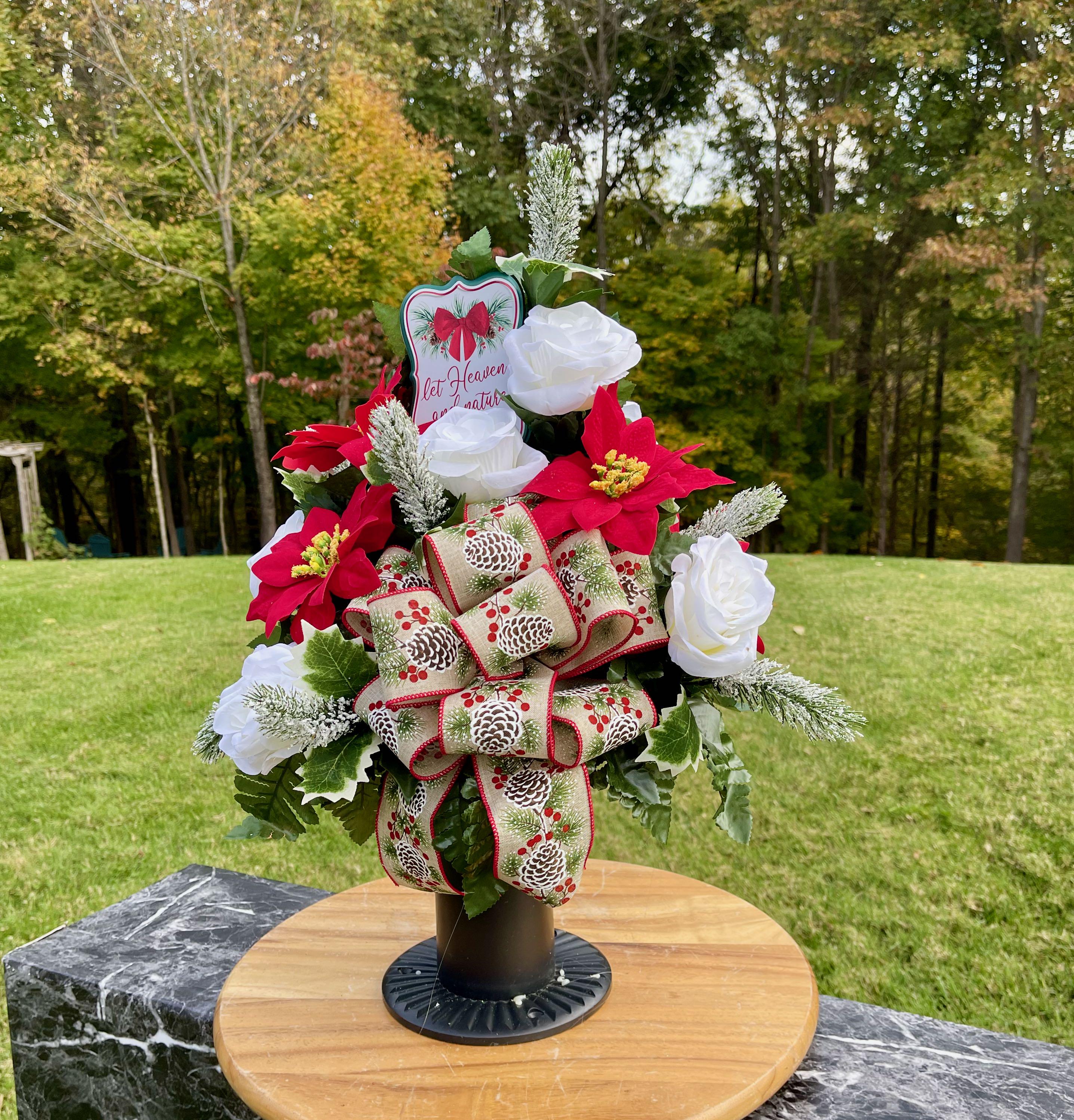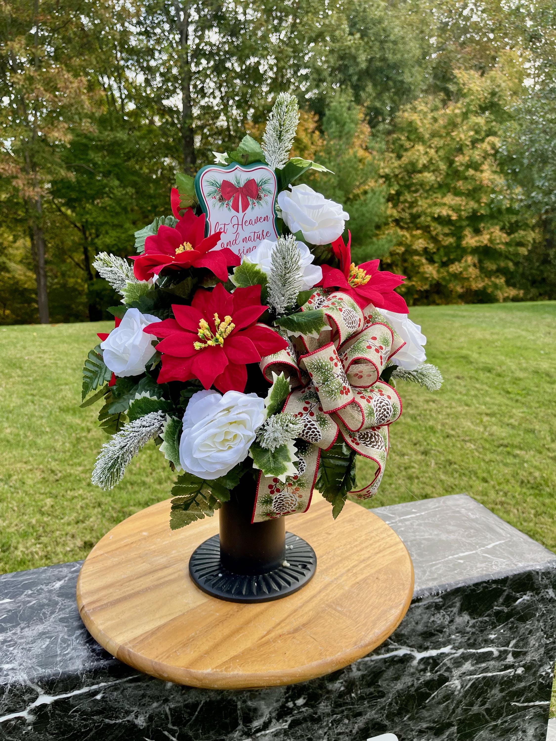 Christmas Cemetery Vase: Let Heaven and Nature Sing Sign with Bow Memorial Flowers