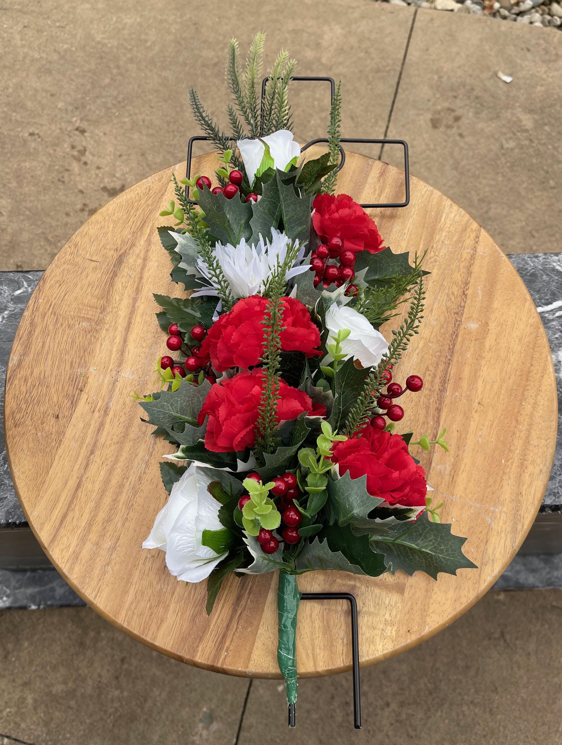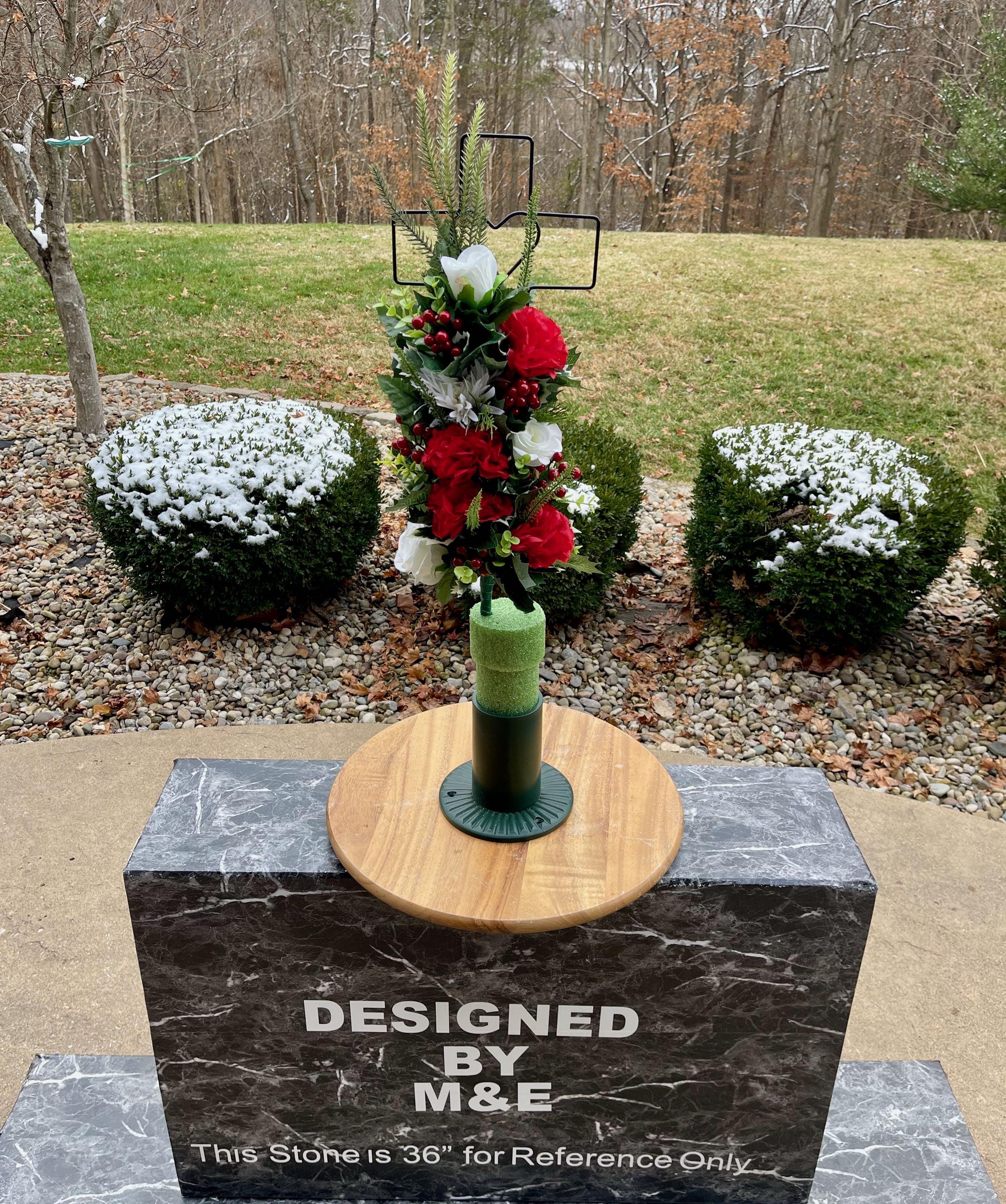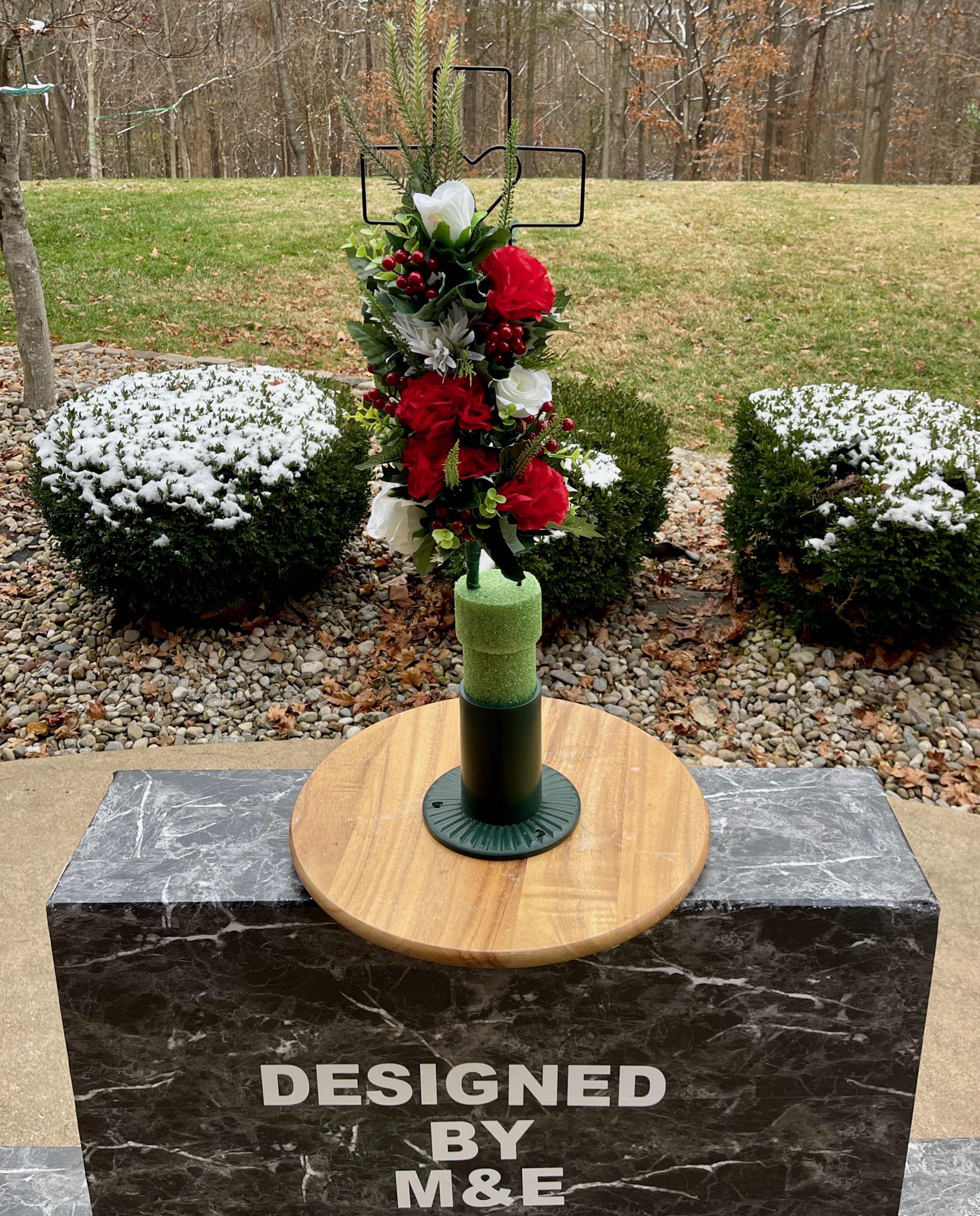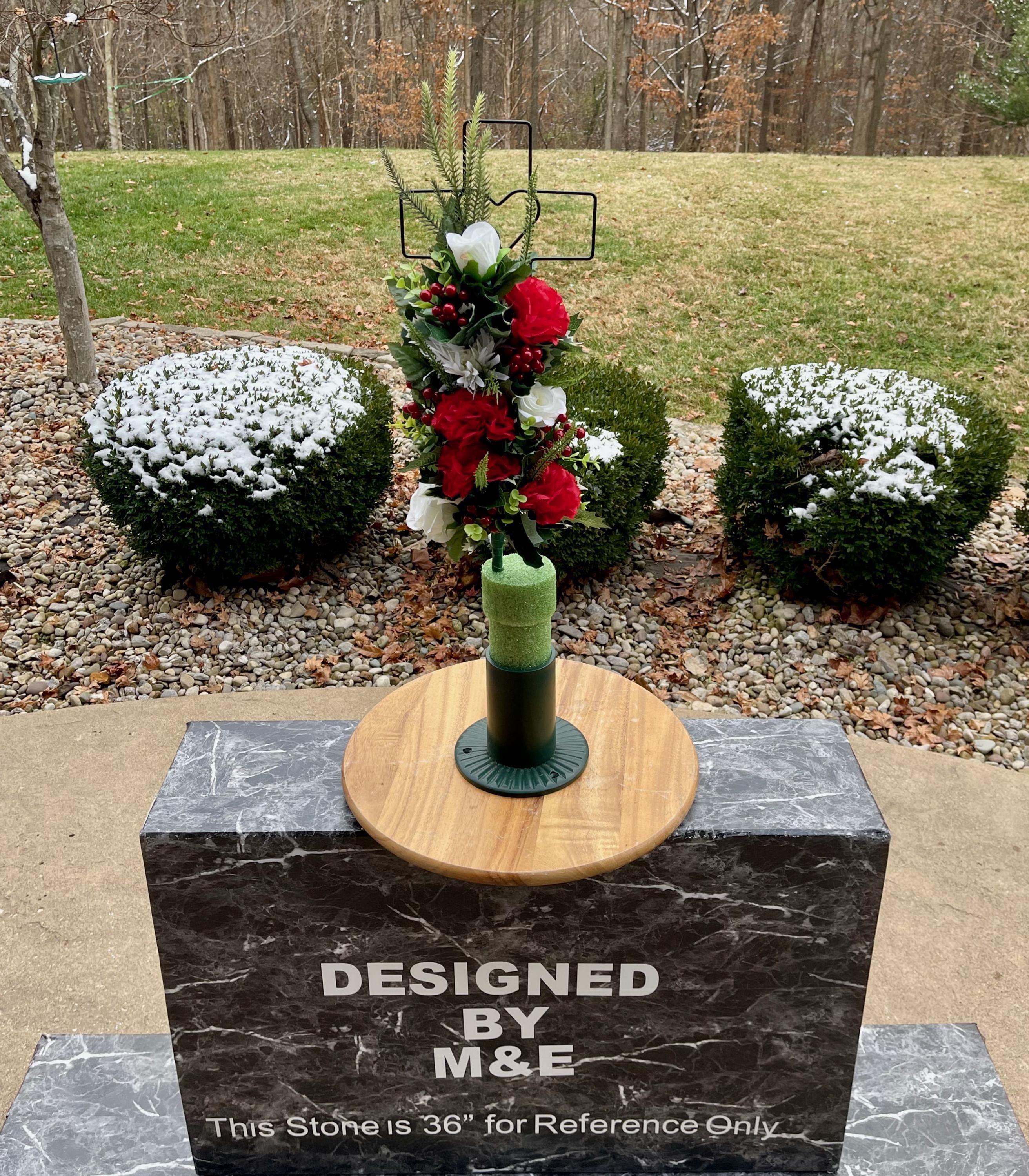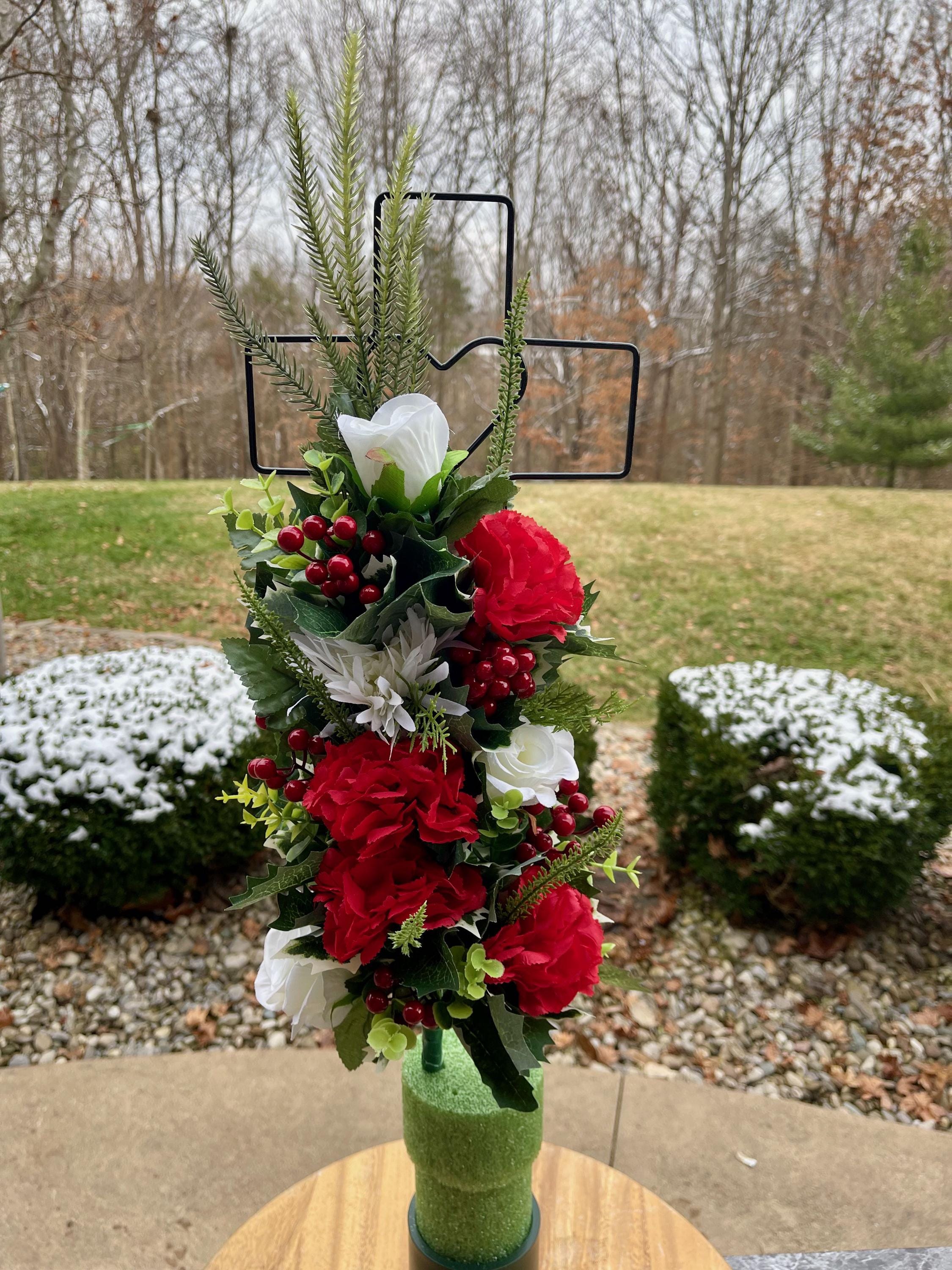 - Vase and Metal Cross arrangements use a “foam” insert; but for photos, they're displayed in a “plastic” holder just for stability—which is not included but can be purchased separately.