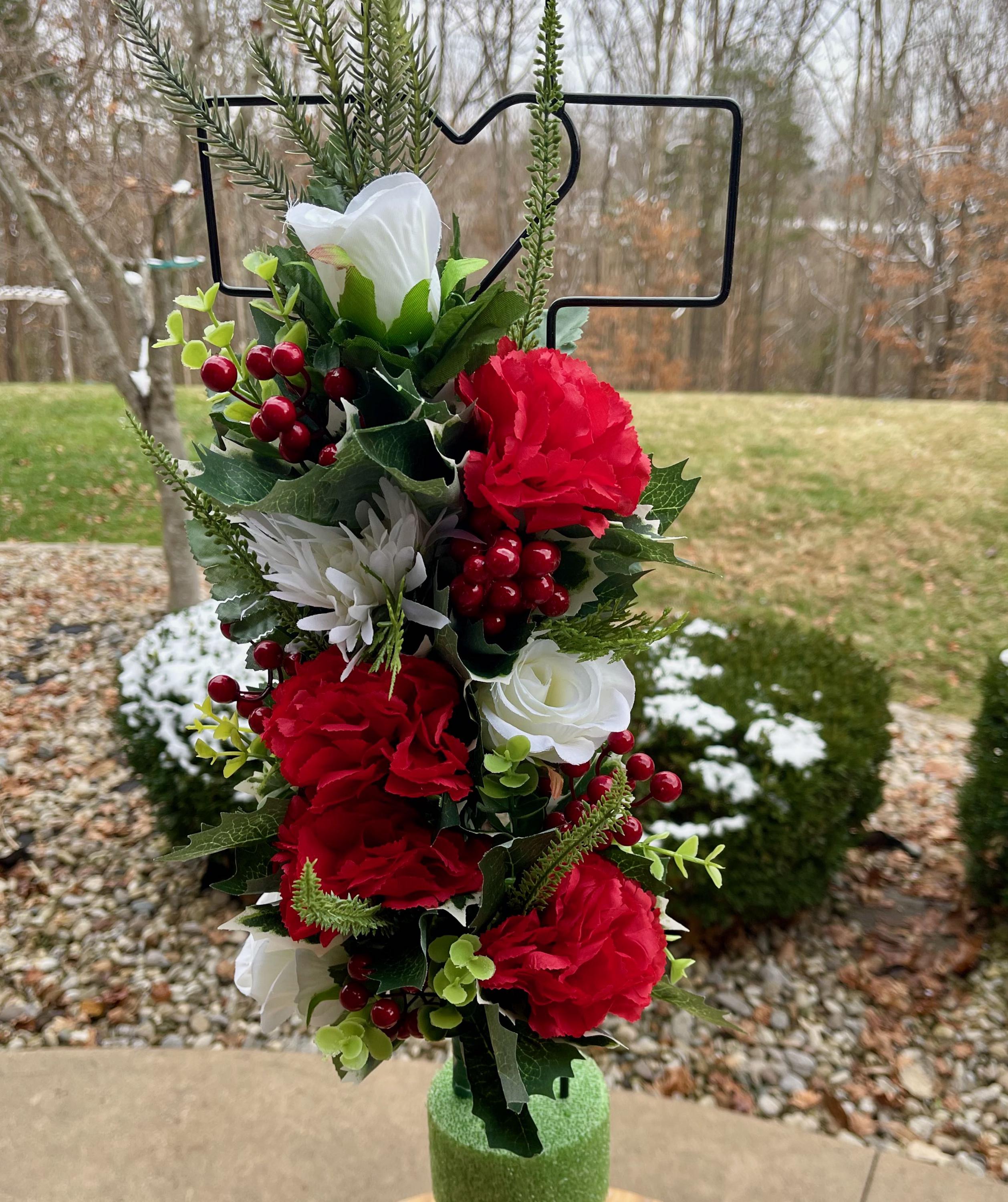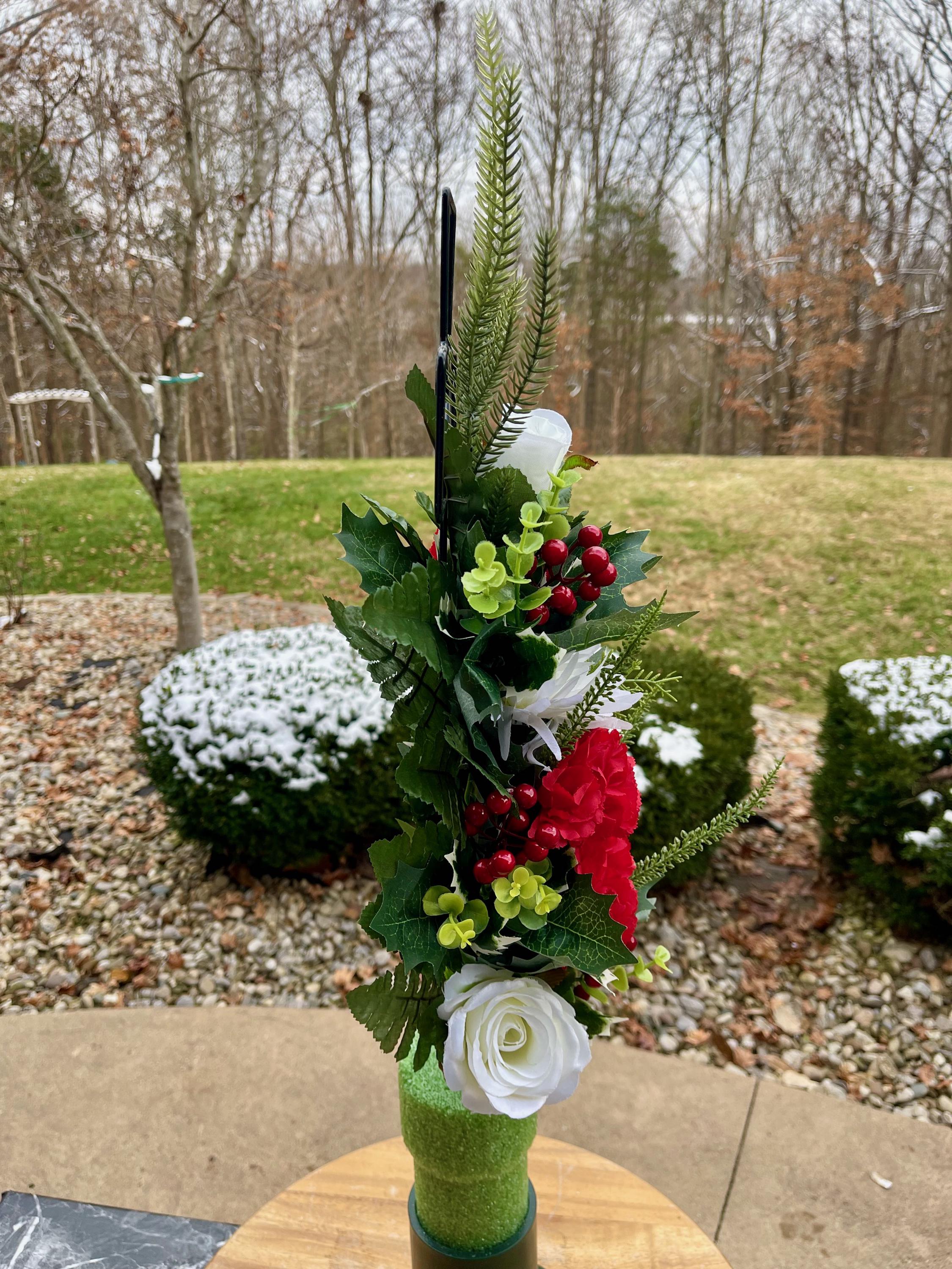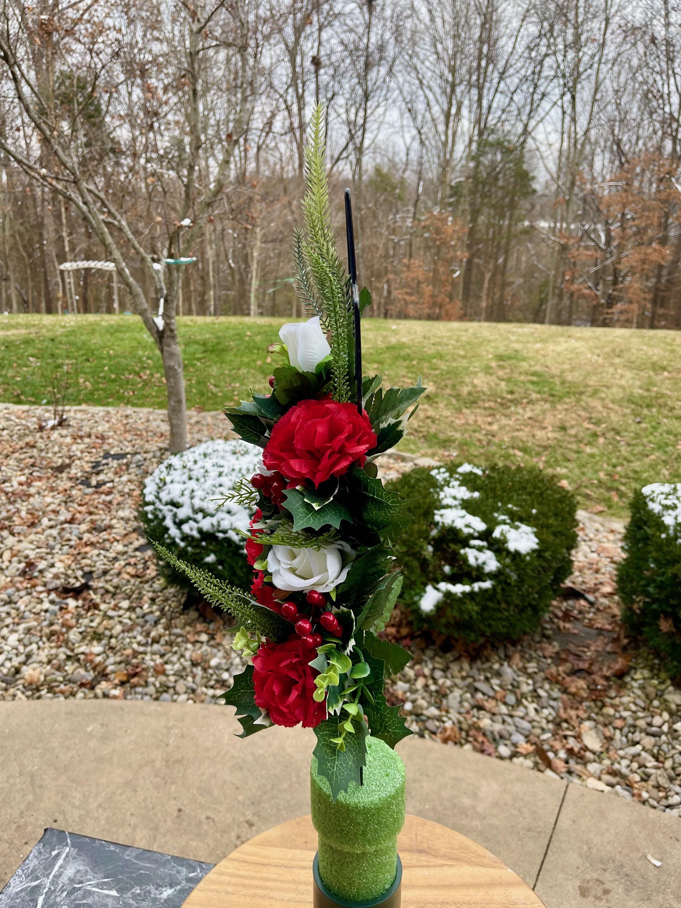 We’re a small, family-operated business consisting of myself, my husband, and my daughter. We personally manage every order and strive for excellent customer service. All our arrangements use high-quality silk flowers, though all silk blooms may fade over time. Each stem is glued into foam to withstand the elements. Designed by M&E uses only premium silks, and we put genuine care into every piece we create. Rest assured, the arrangement shown in our photos is exactly the one you’ll receive, as I design and assemble each one myself. If you’re searching for something unique or have a particular flower, color, or matching vases in mind, please contact me to discuss a custom order.