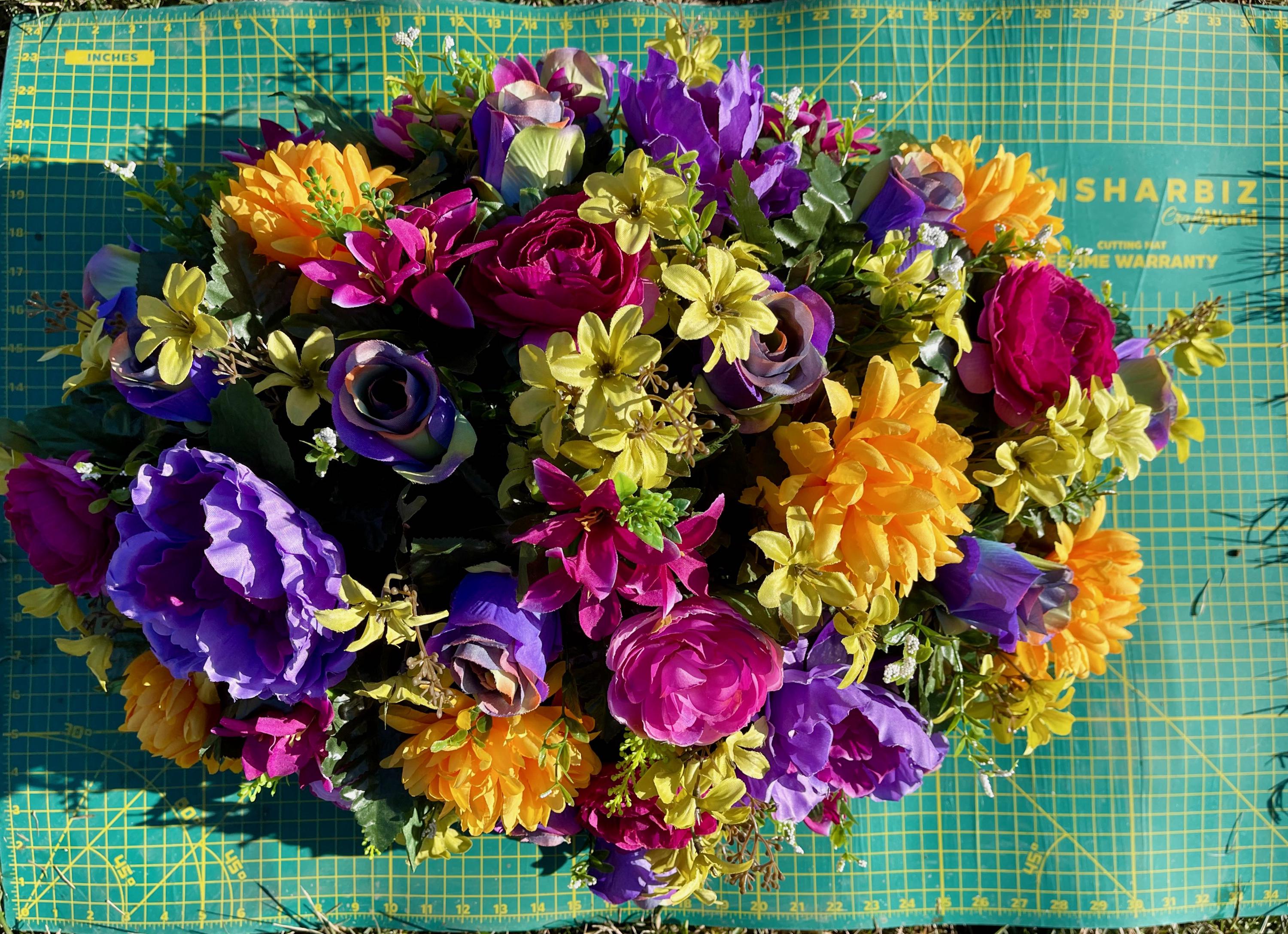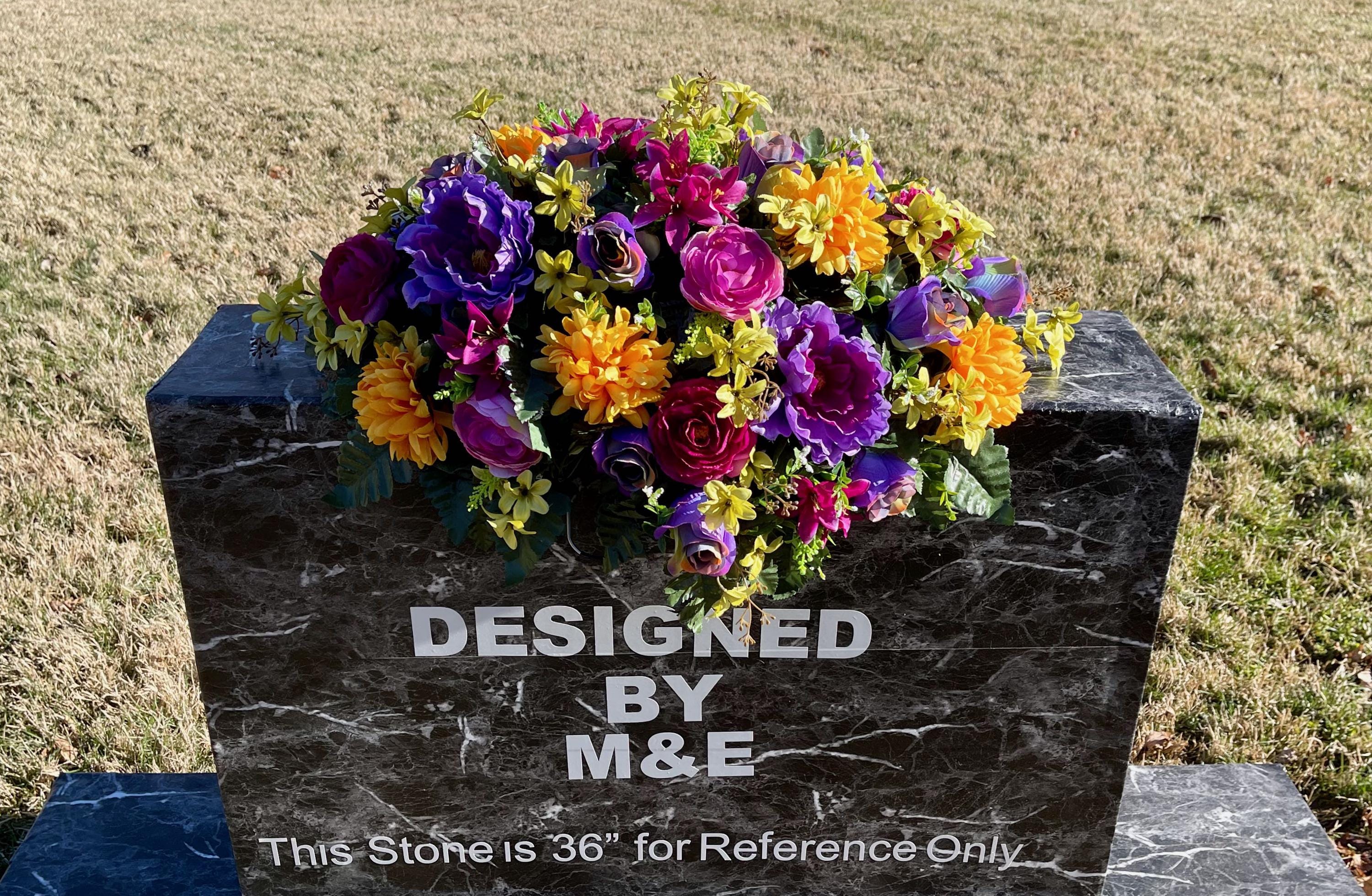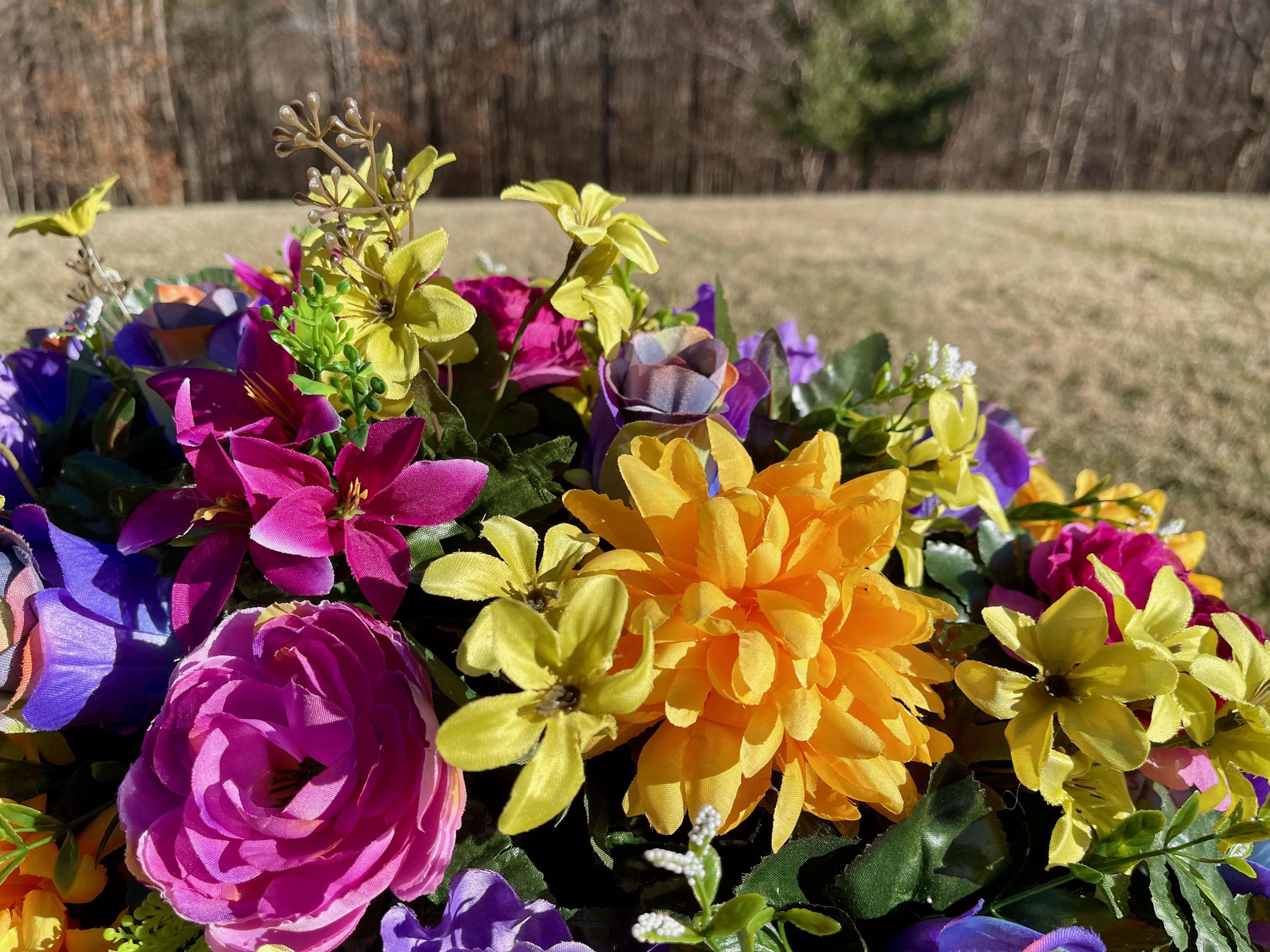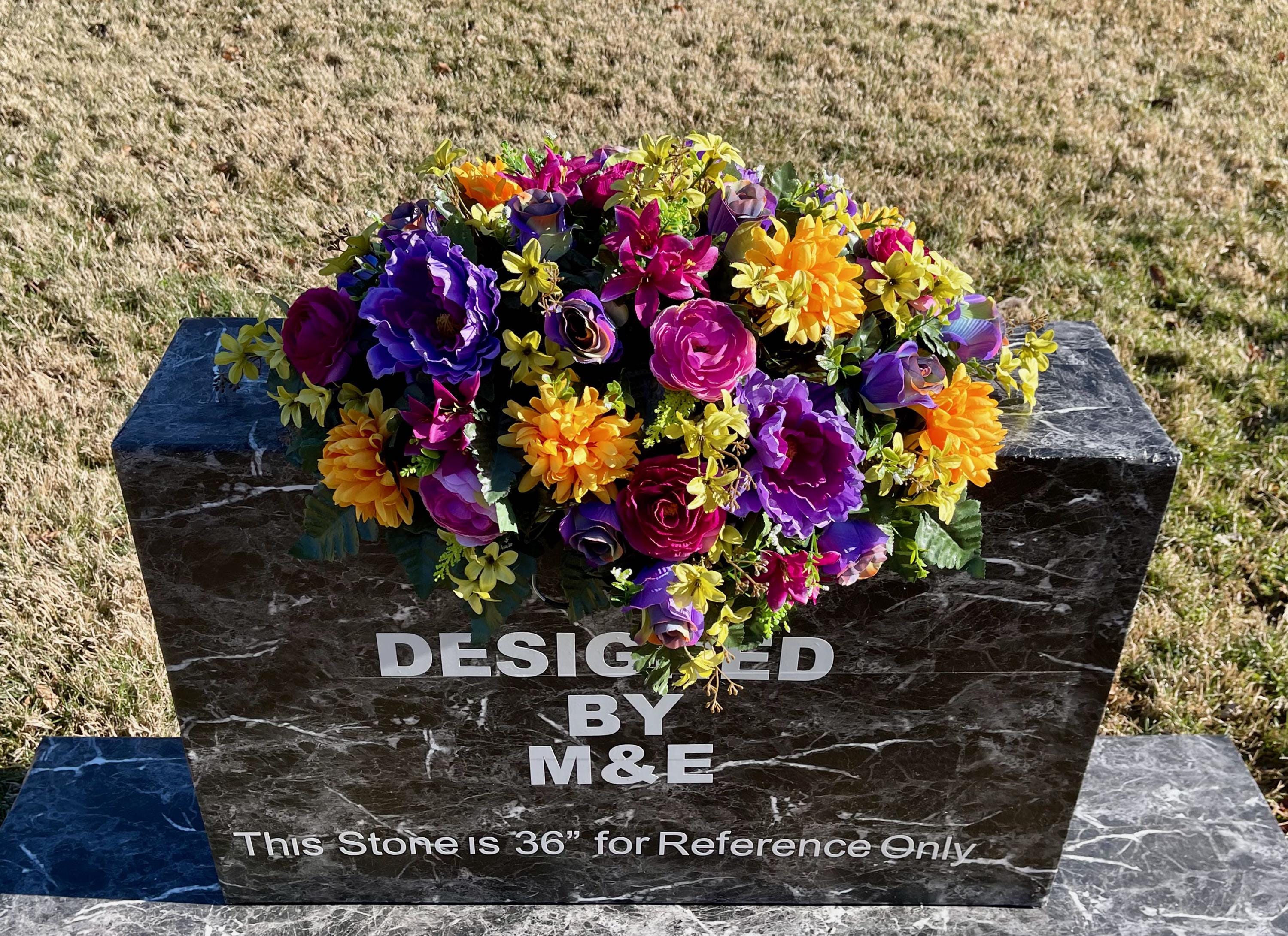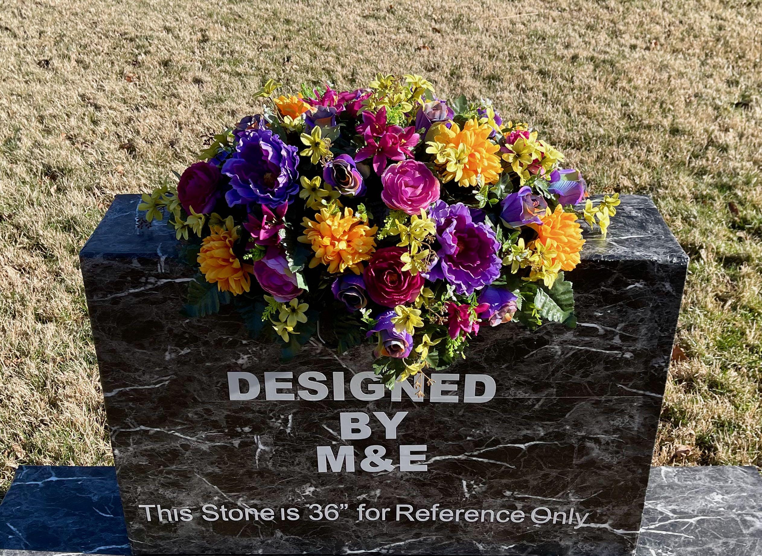 One of a Kind Cemetery Saddle, Bright Multi-Color Flowers, Headstone Flowers, Cemetery Flowers, Grave Arrangement