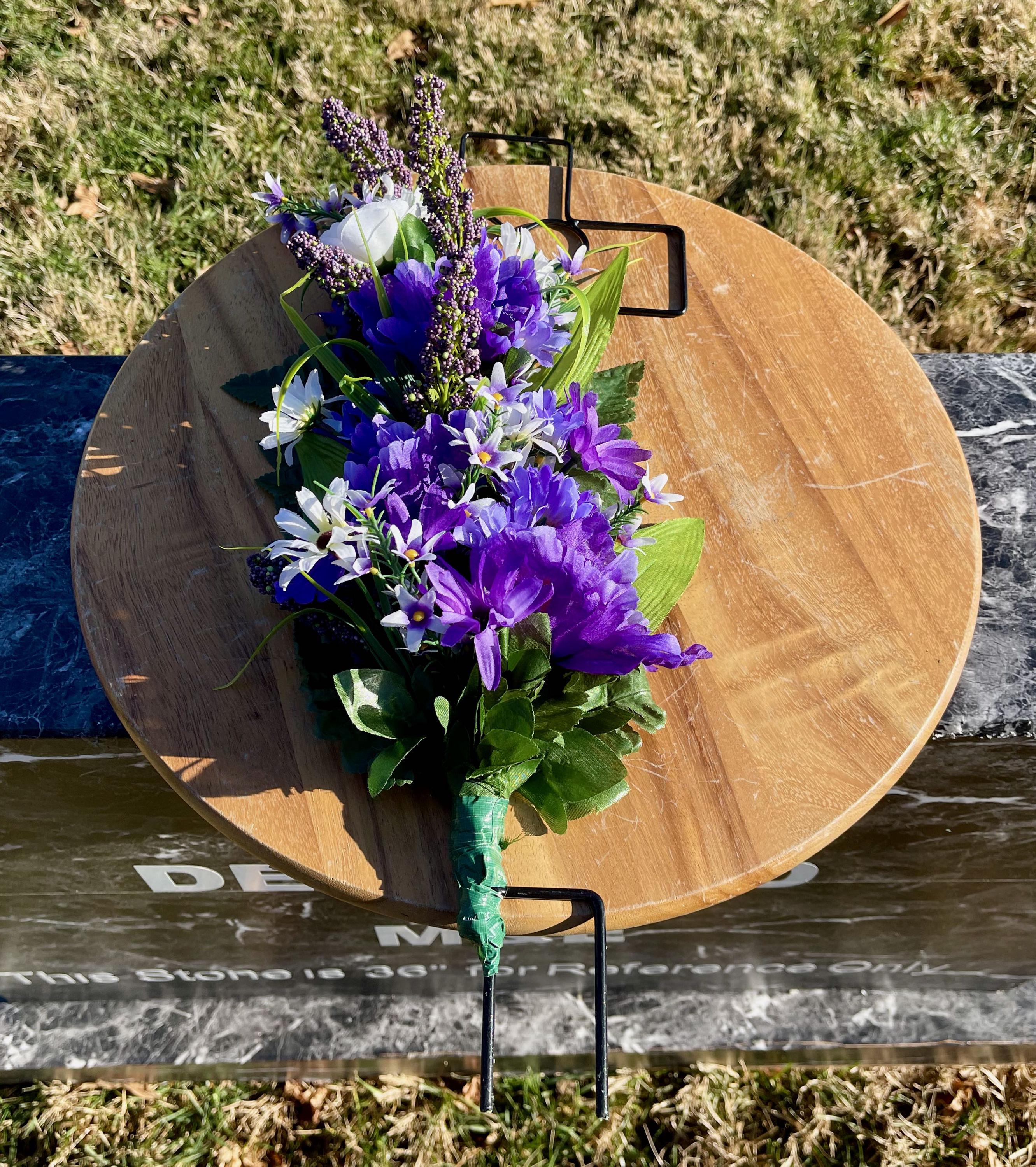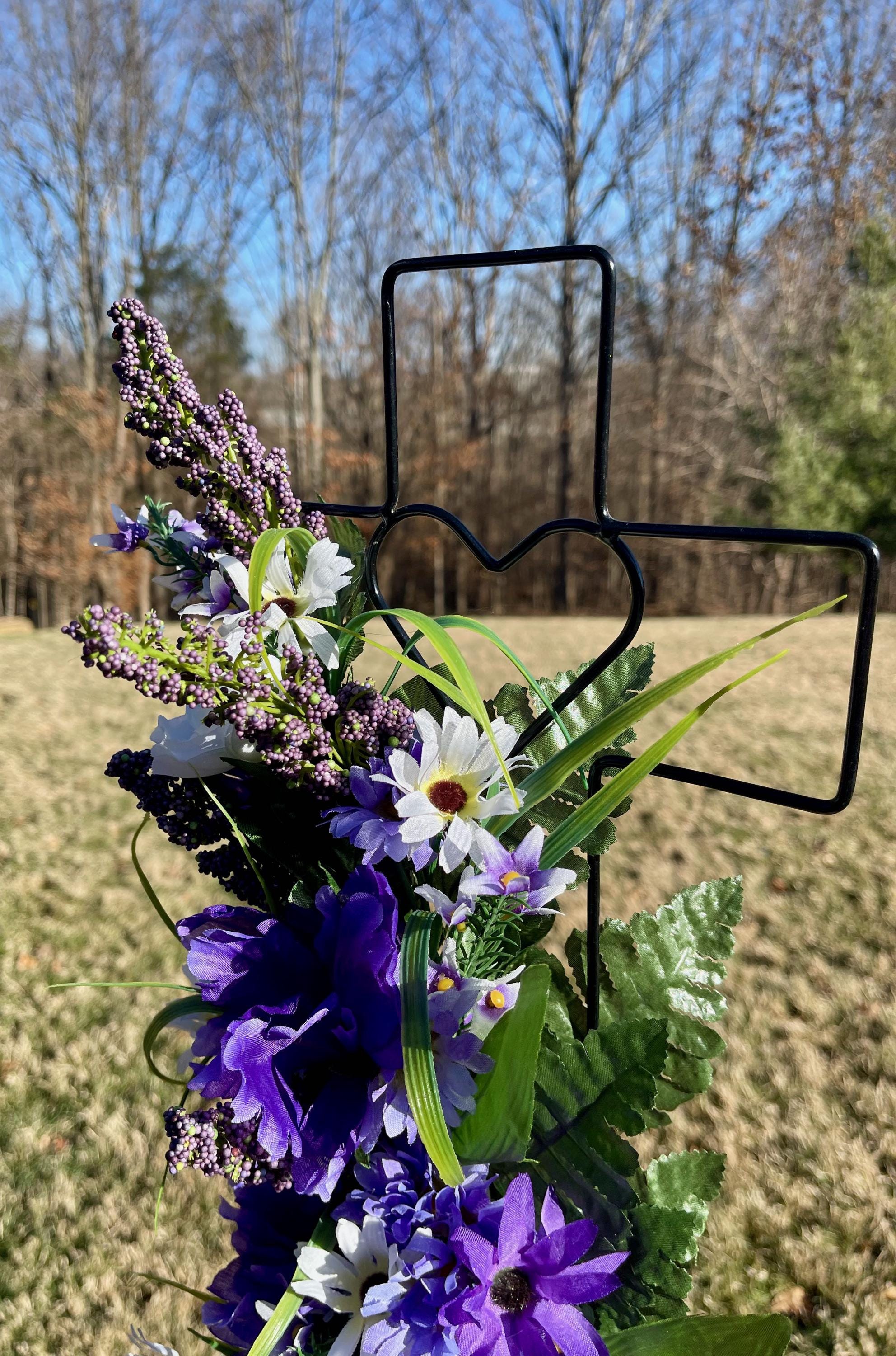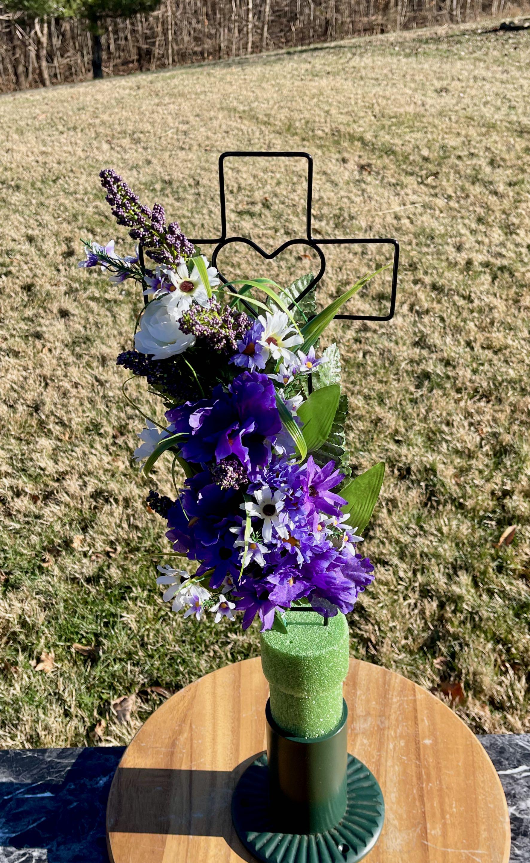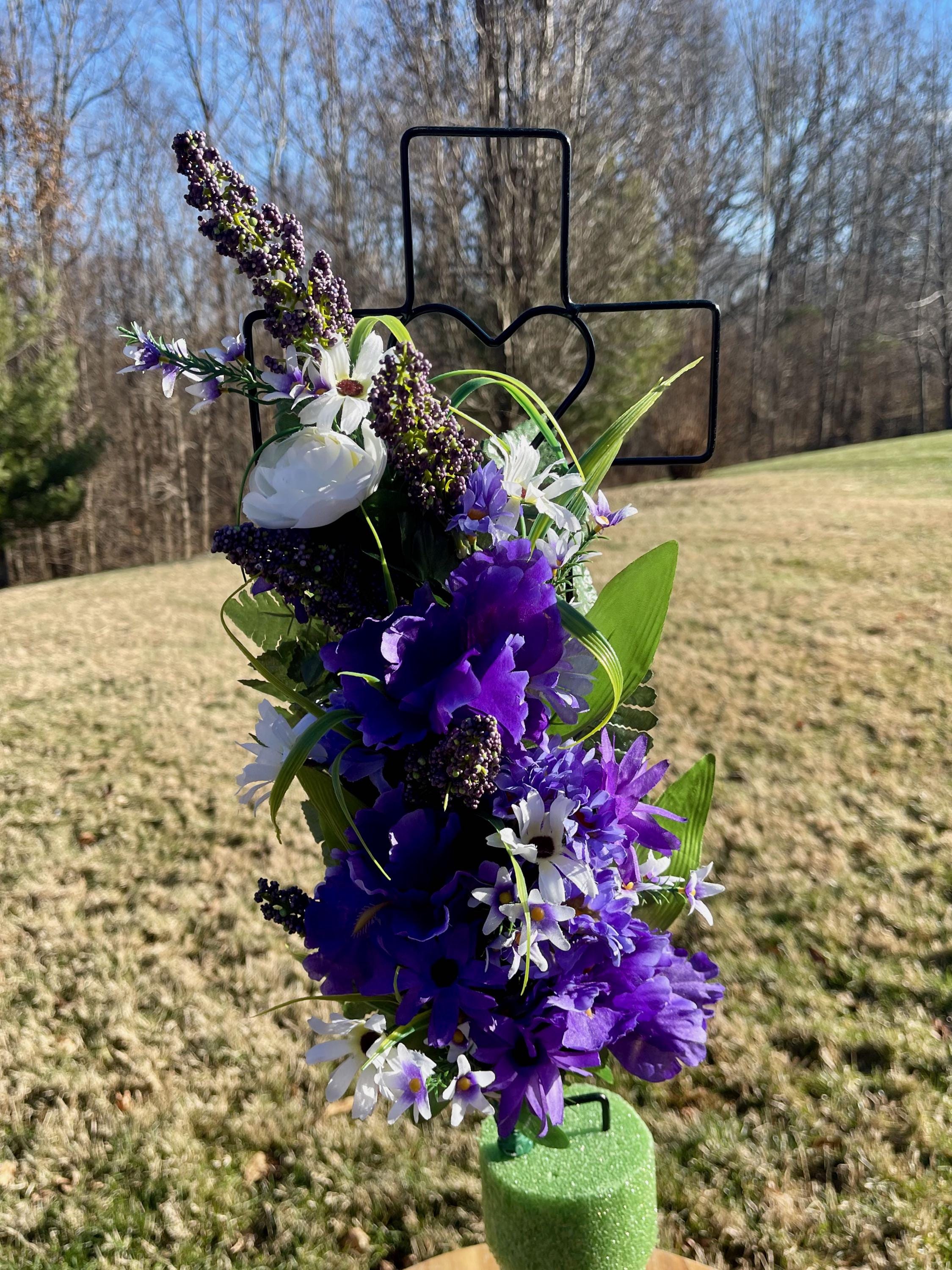 One of a Kind Cemetery Cross Flower Arrangement: Purple and White Silk Memorial Flowers
