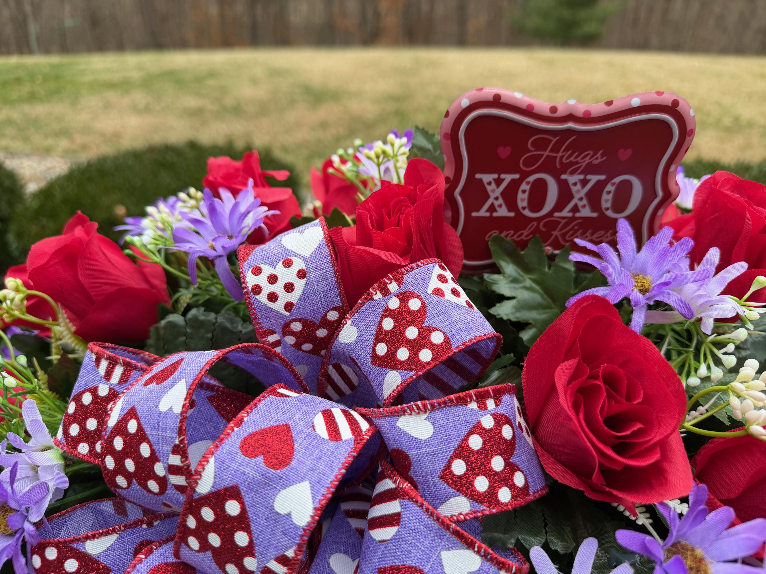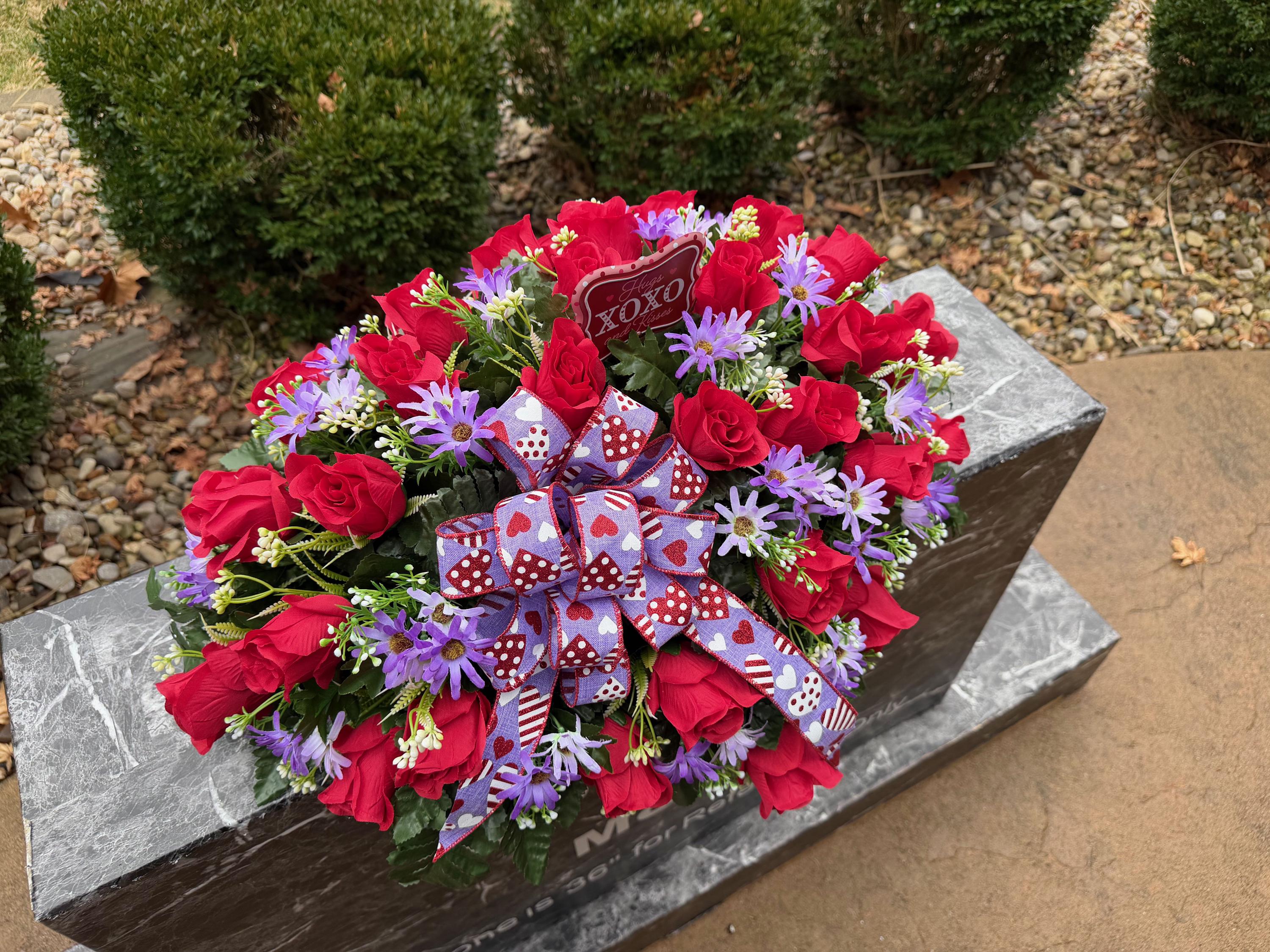 Hugs and Kisses XOXO Cemetery Saddle with Bow, Grave Decoration, Memorial Flowers, Headstone Flowers