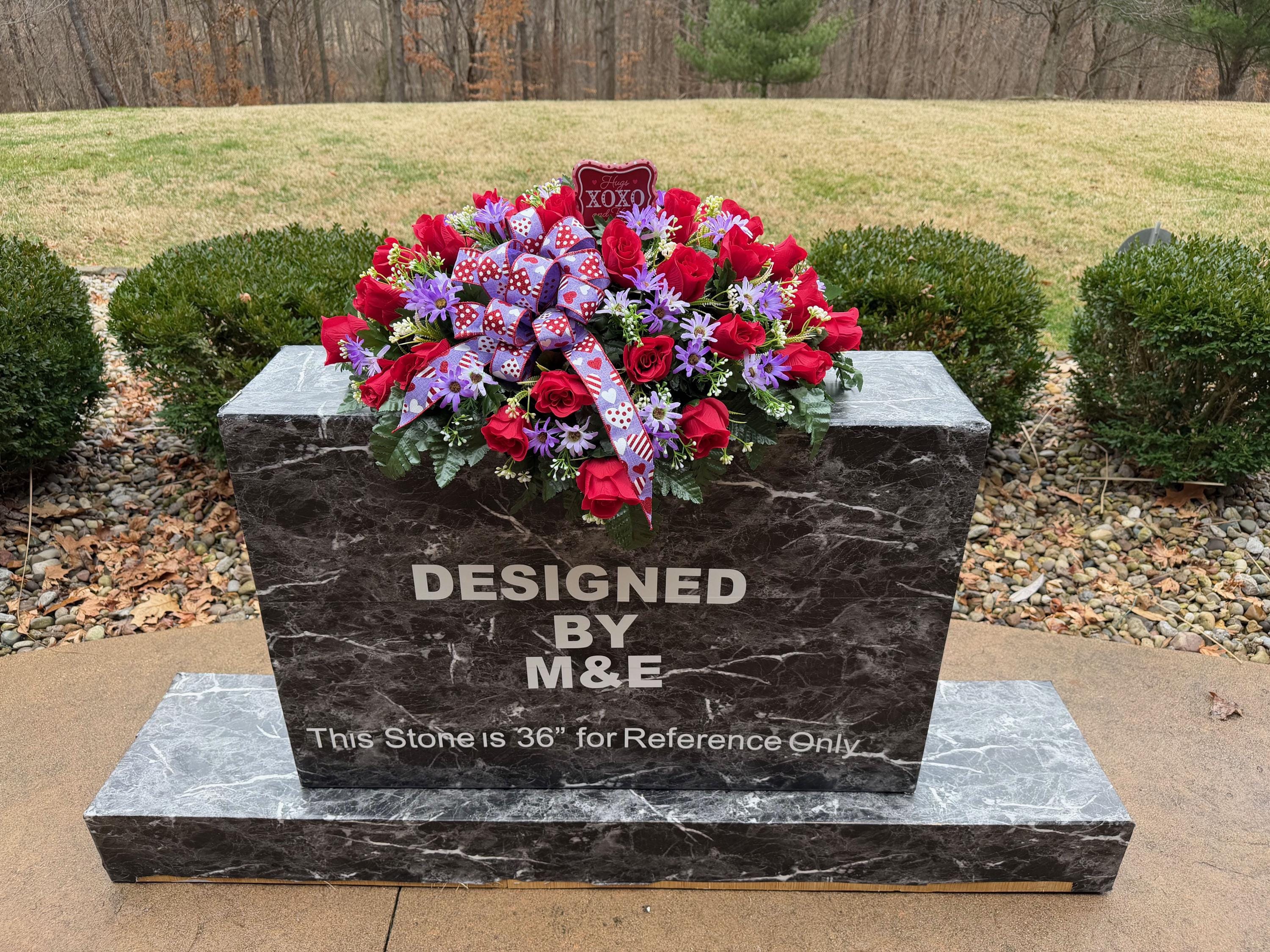 We’re a small, family-operated business consisting of myself, my husband, and my daughter. We personally manage every order and strive for excellent customer service. All our arrangements use high-quality silk flowers, though all silk blooms may fade over time. Each stem is glued into foam to withstand the elements. Designed by M&E uses only premium silks, and we put genuine care into every piece we create. Rest assured, the arrangement shown in our photos is exactly the one you’ll receive, as I design and assemble each one myself. If you’re searching for something unique or have a particular flower, color, or matching vases in mind, please contact me to discuss a custom order.