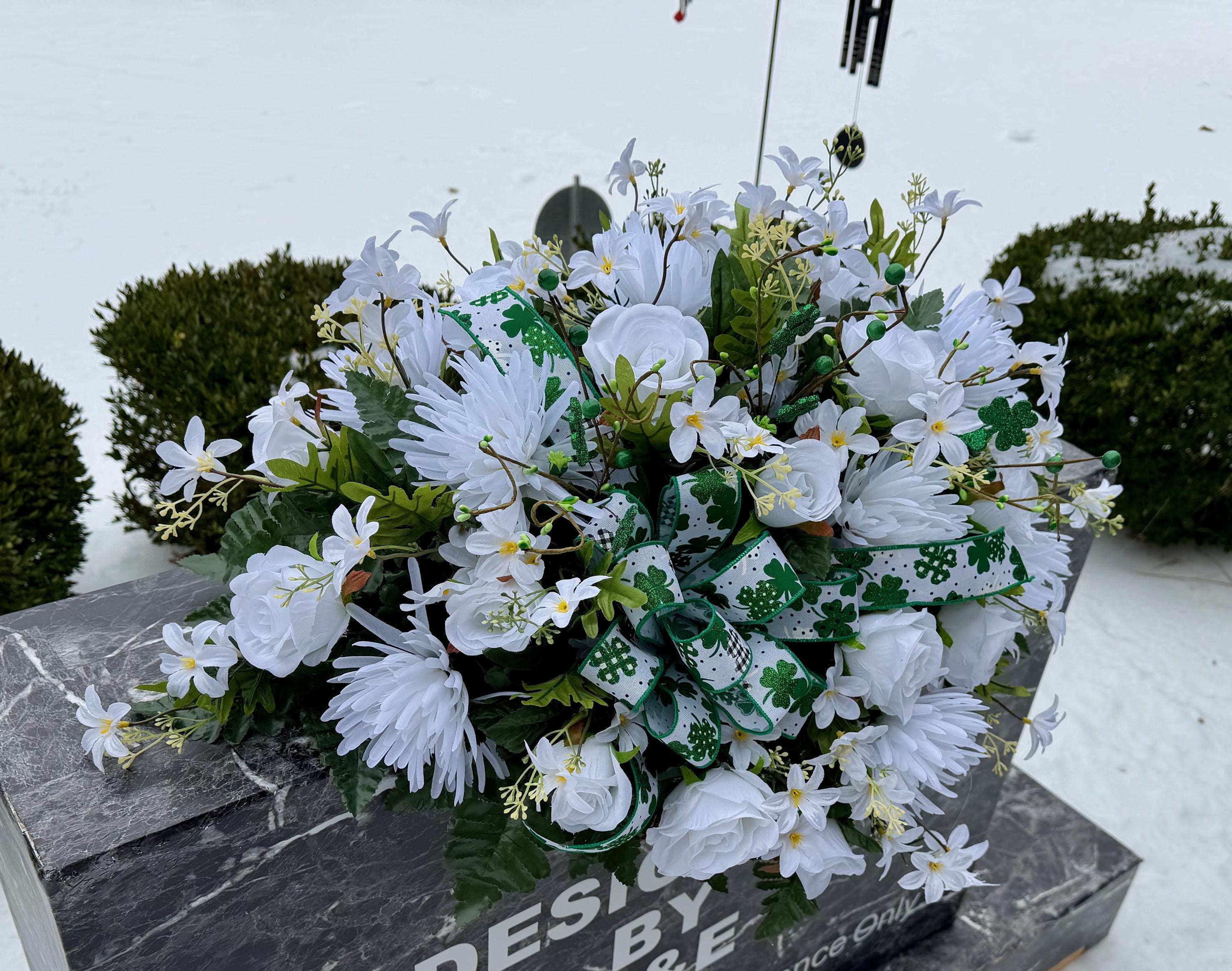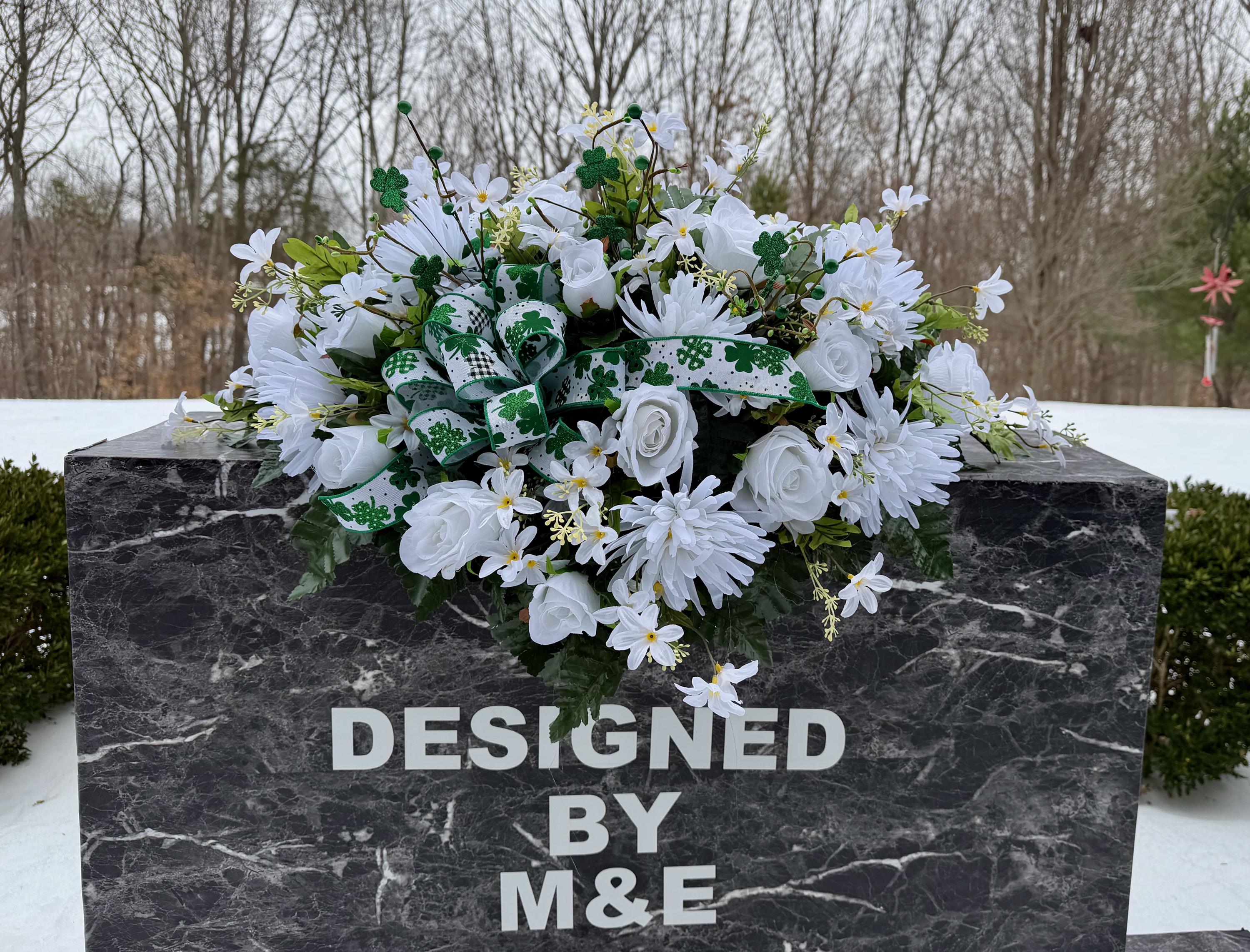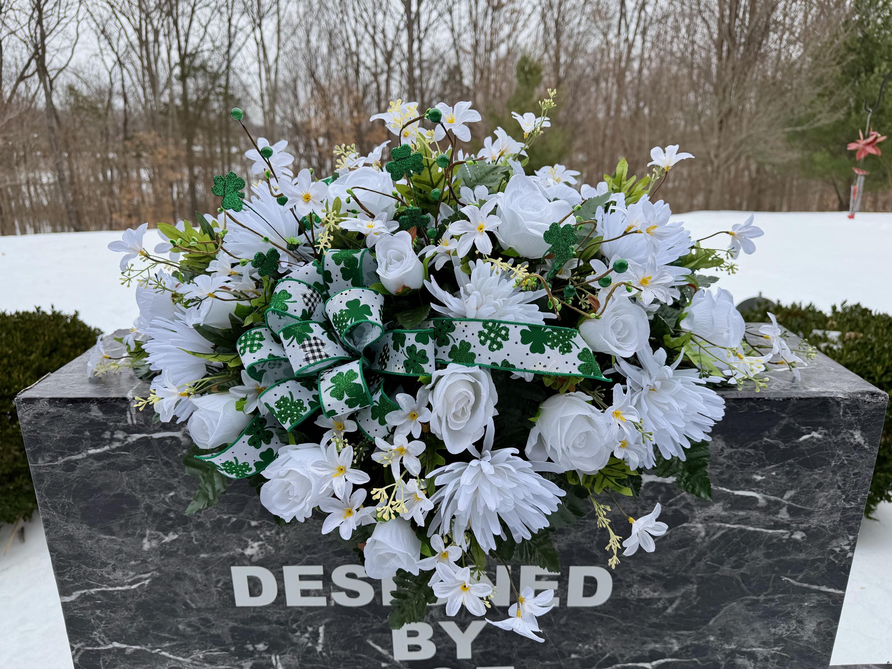 St. Patrick's Day Design with Bow Cemetery Saddle, Headstone Arrangement, Memorial Decoration