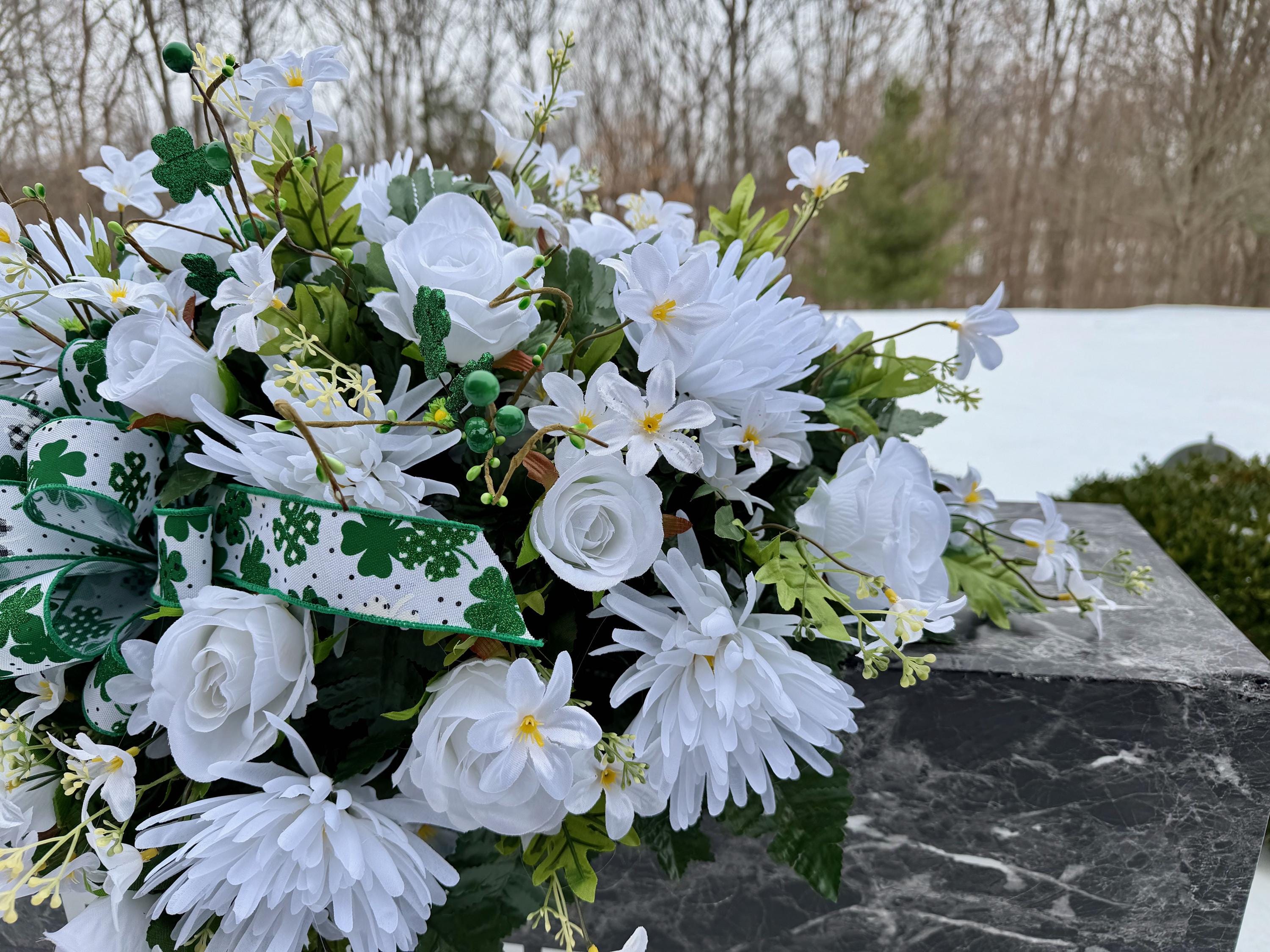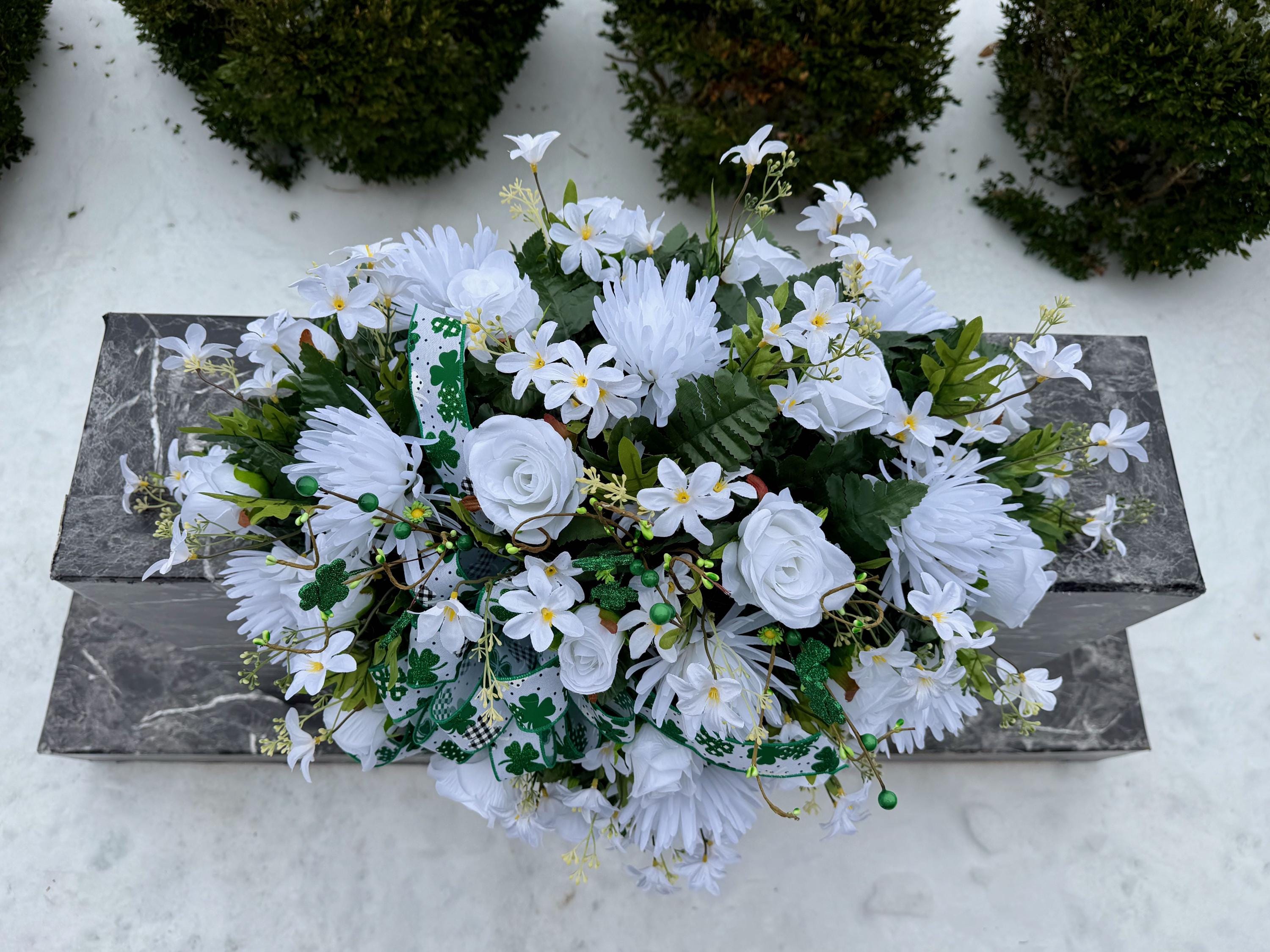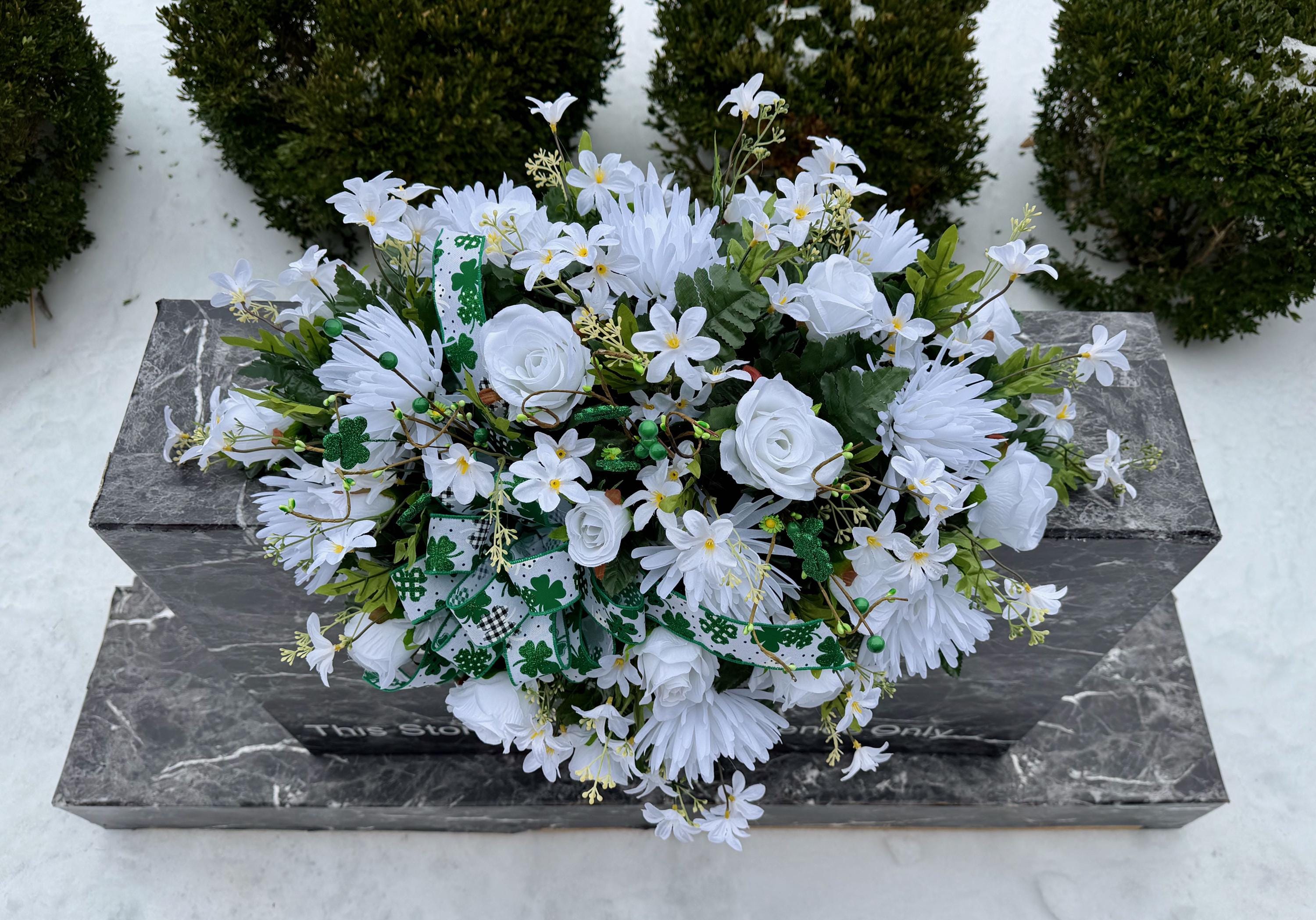 St. Patrick's Day Design with Bow Cemetery Saddle, Headstone Arrangement, Memorial Decoration