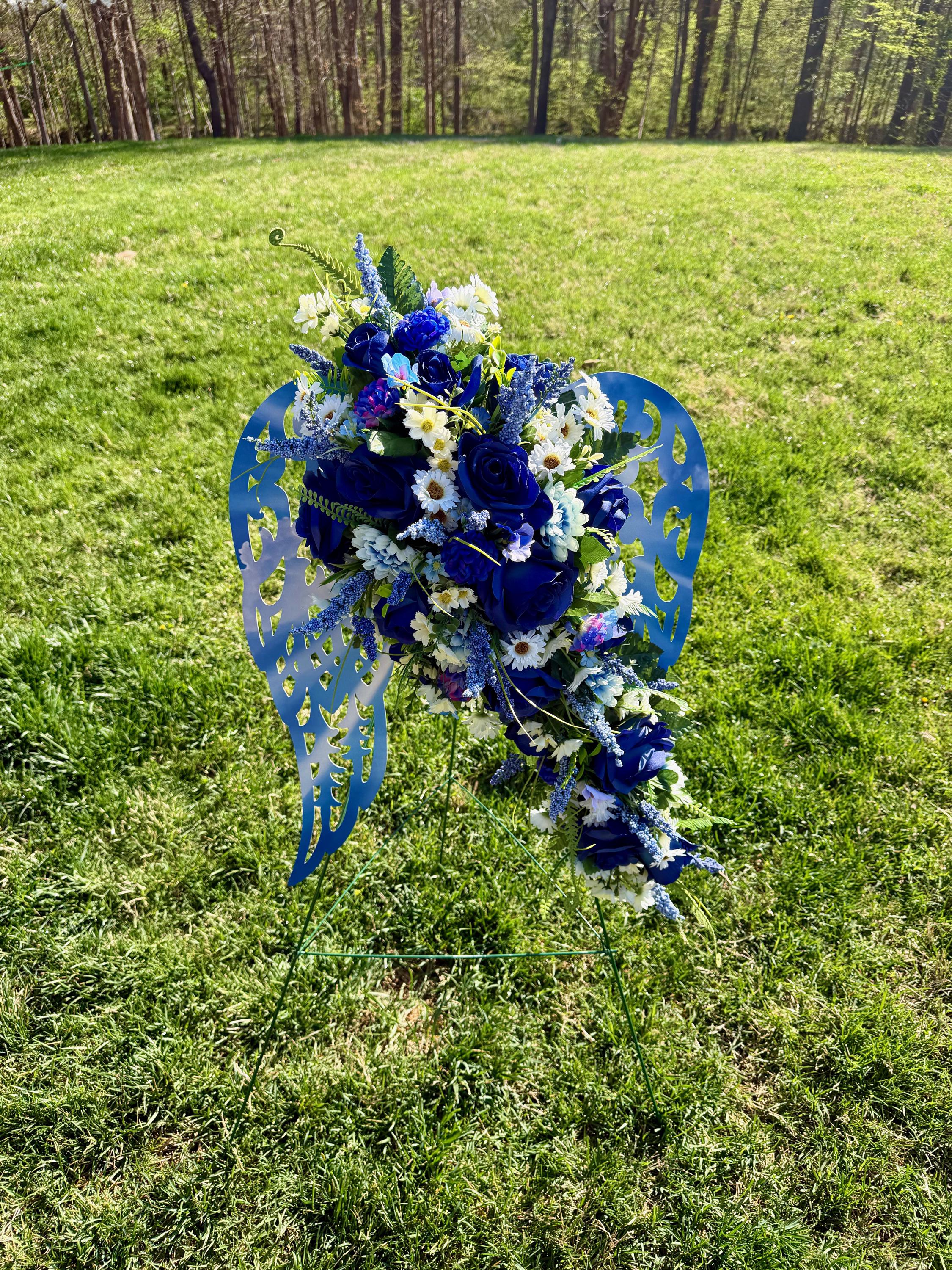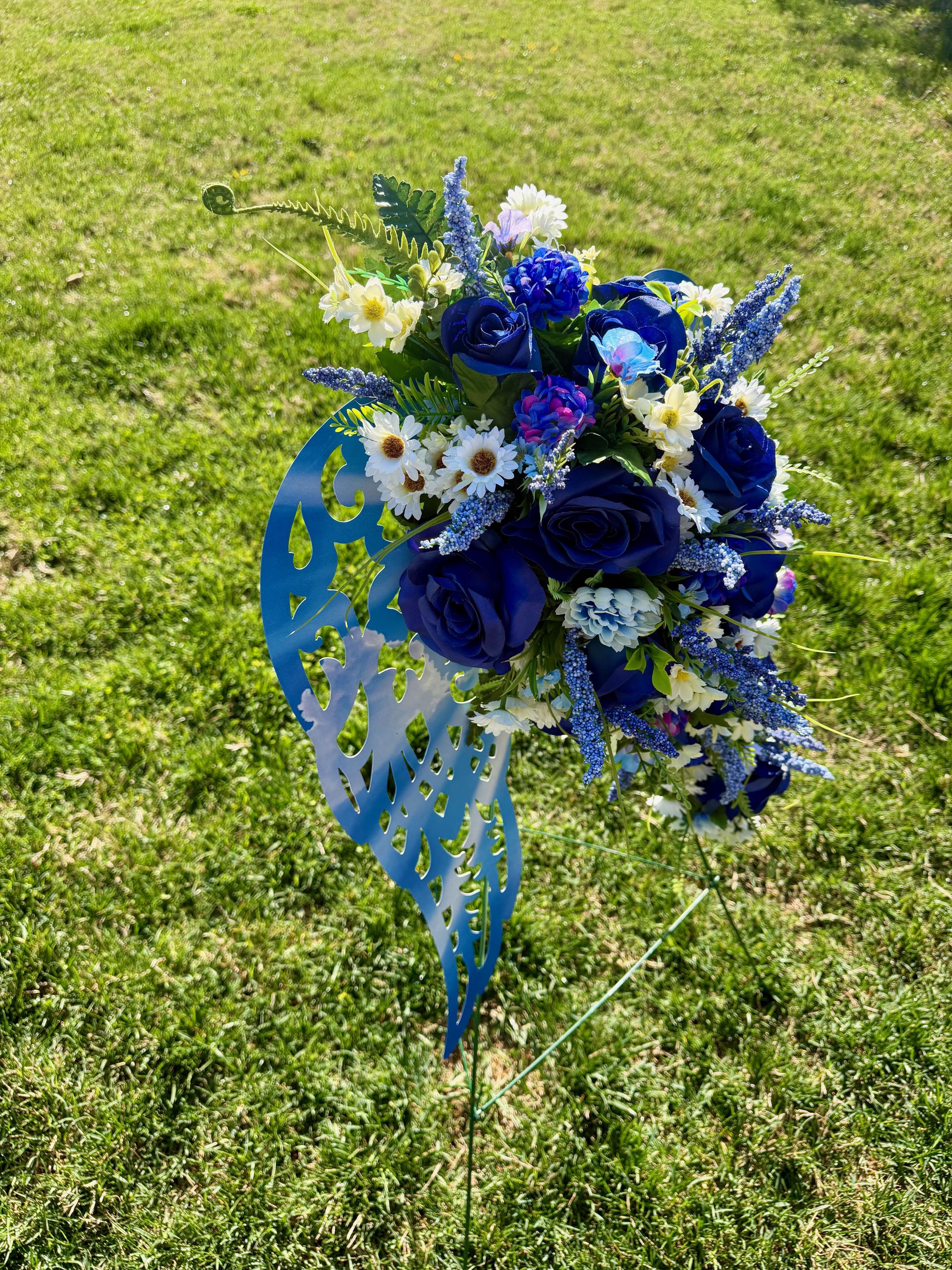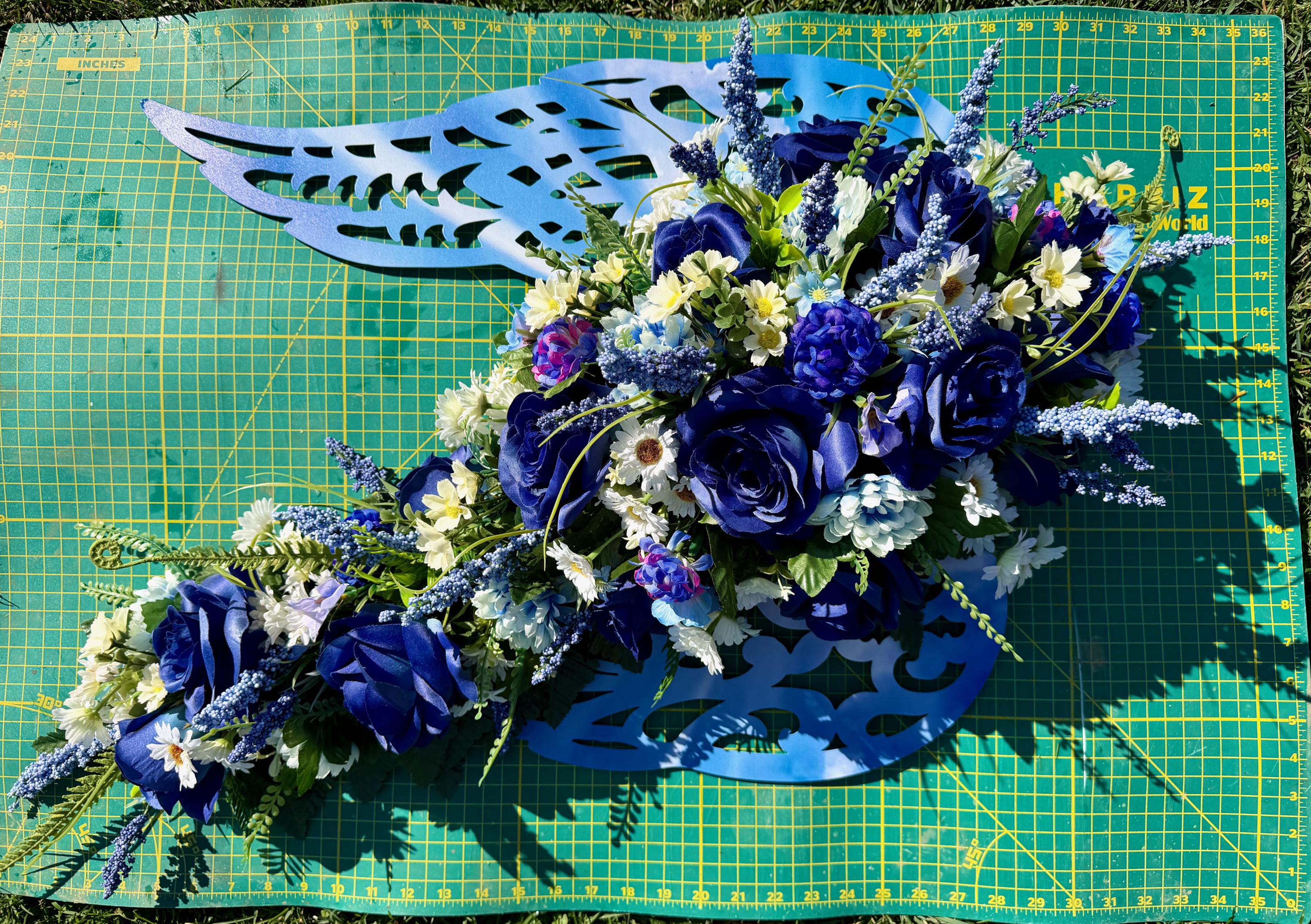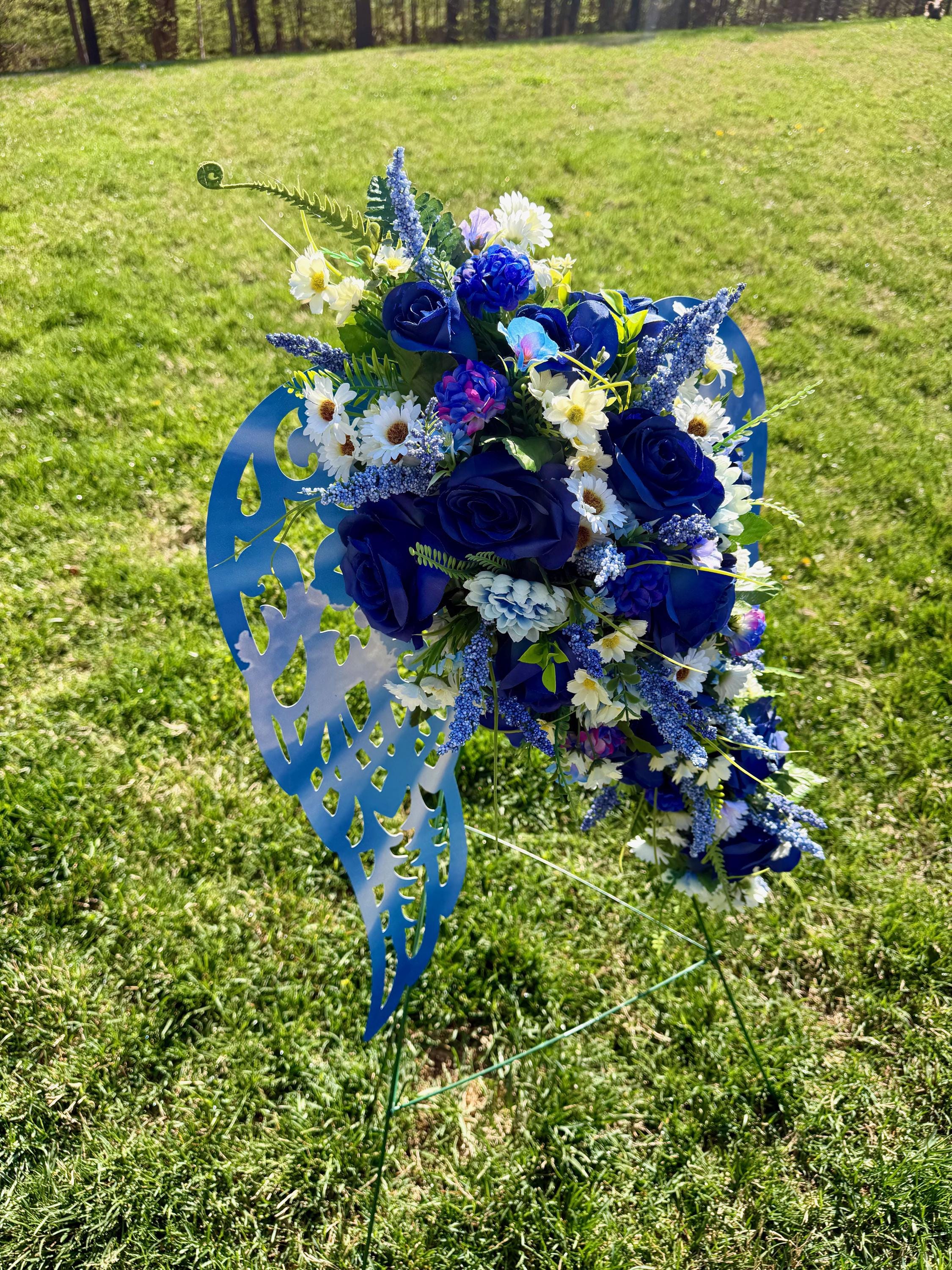 Soft Blue Clouds Angel Wings Cemetery Arrangement, Memorial Flowers, Headstone Decorations,
