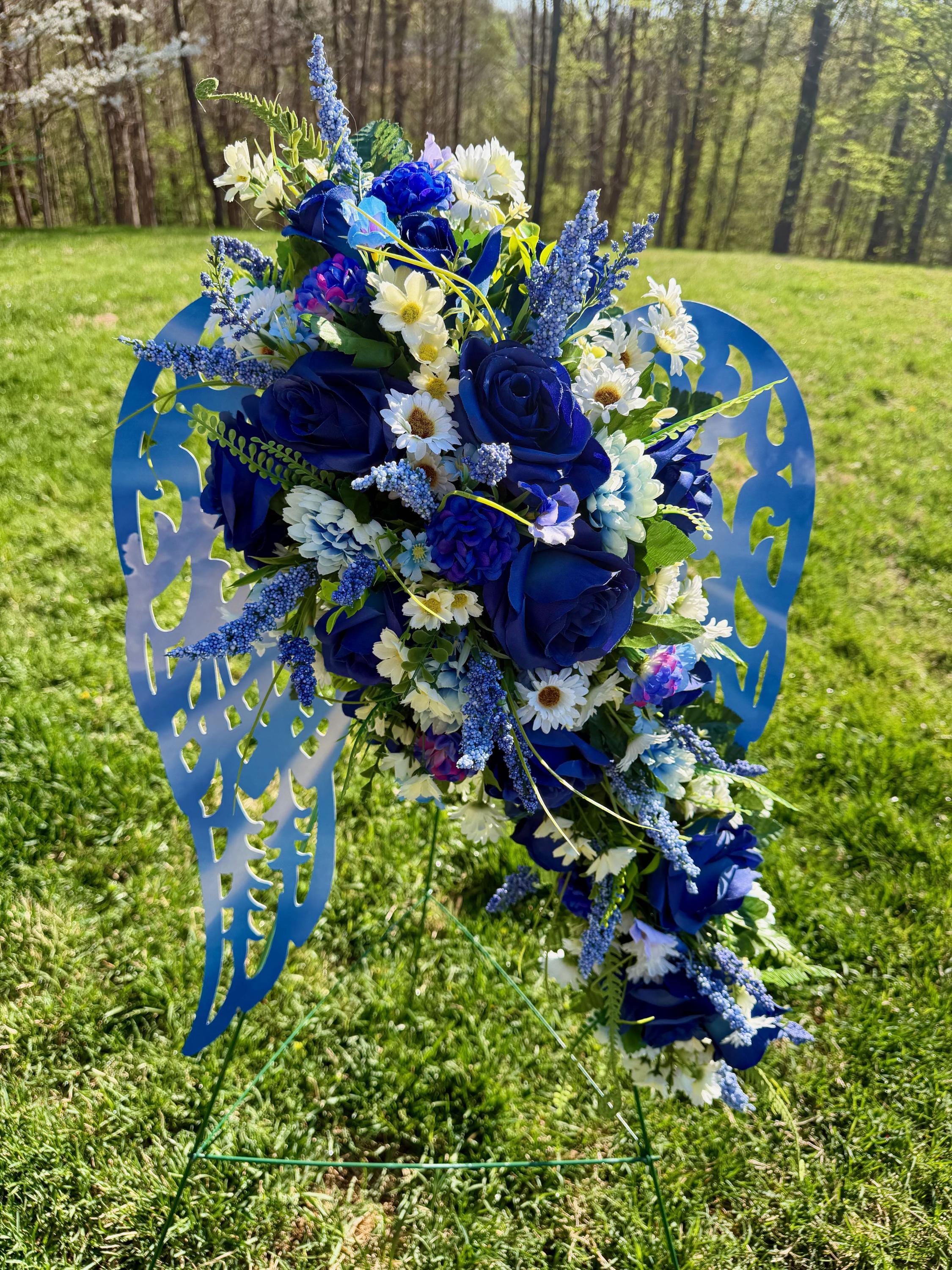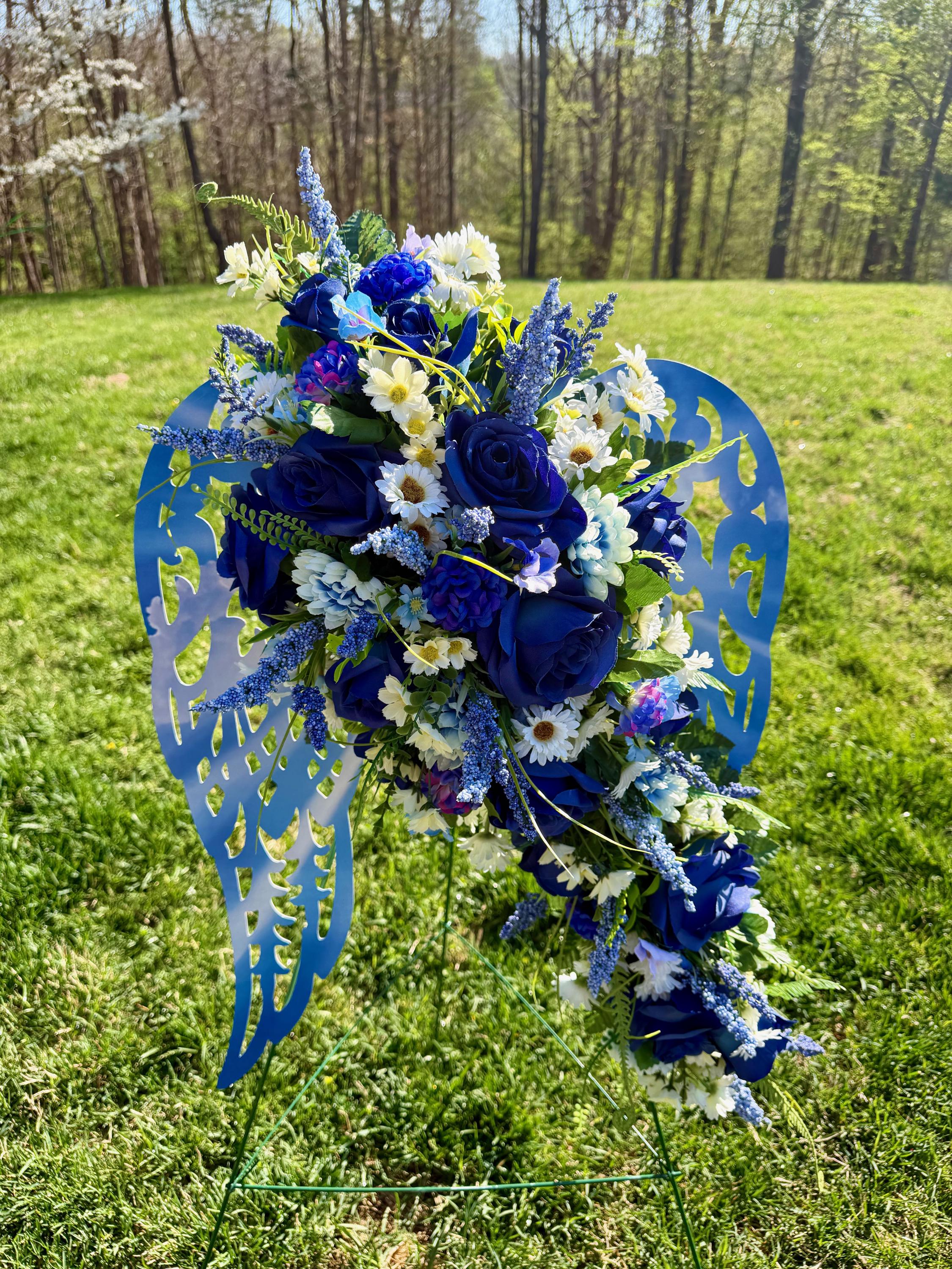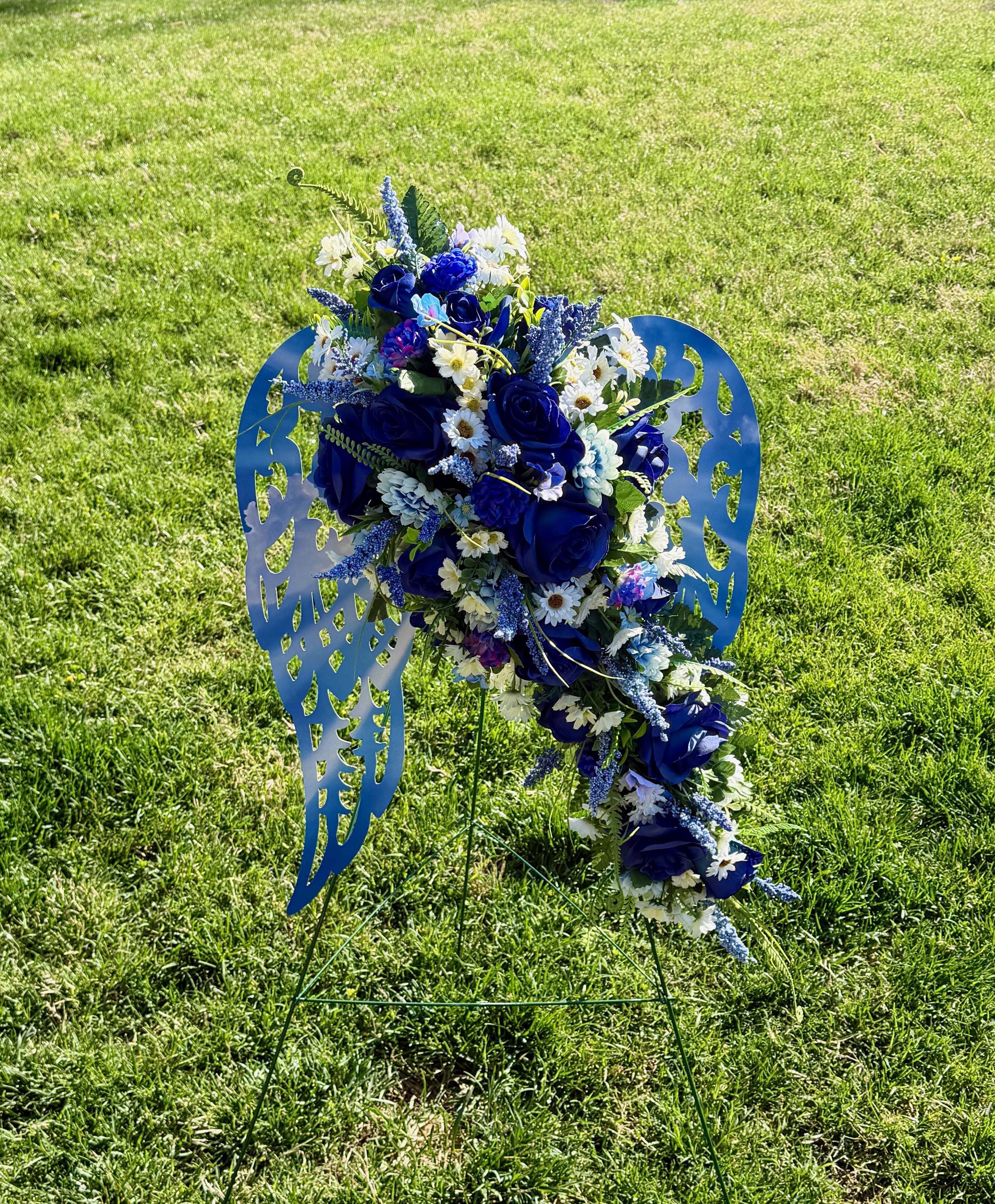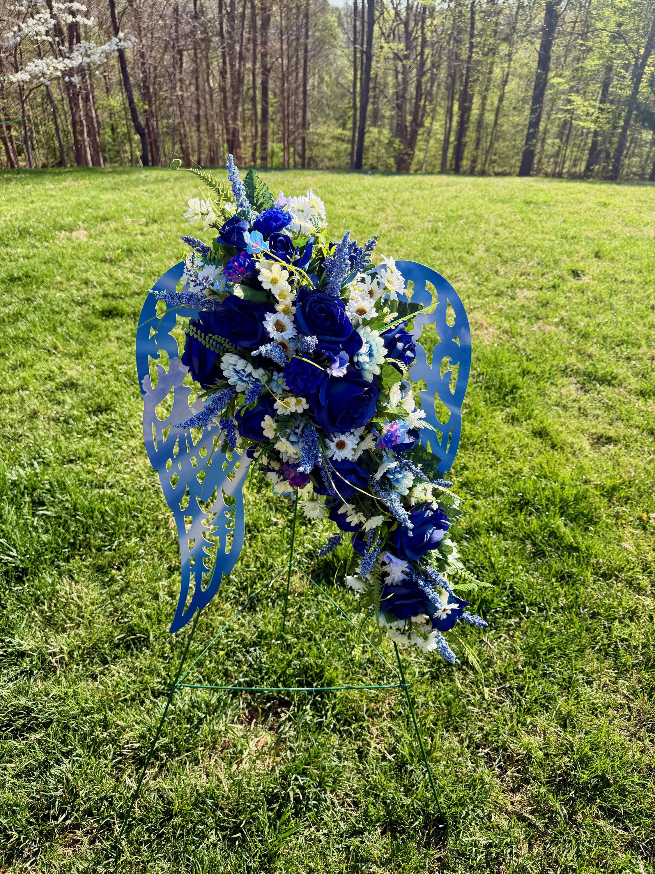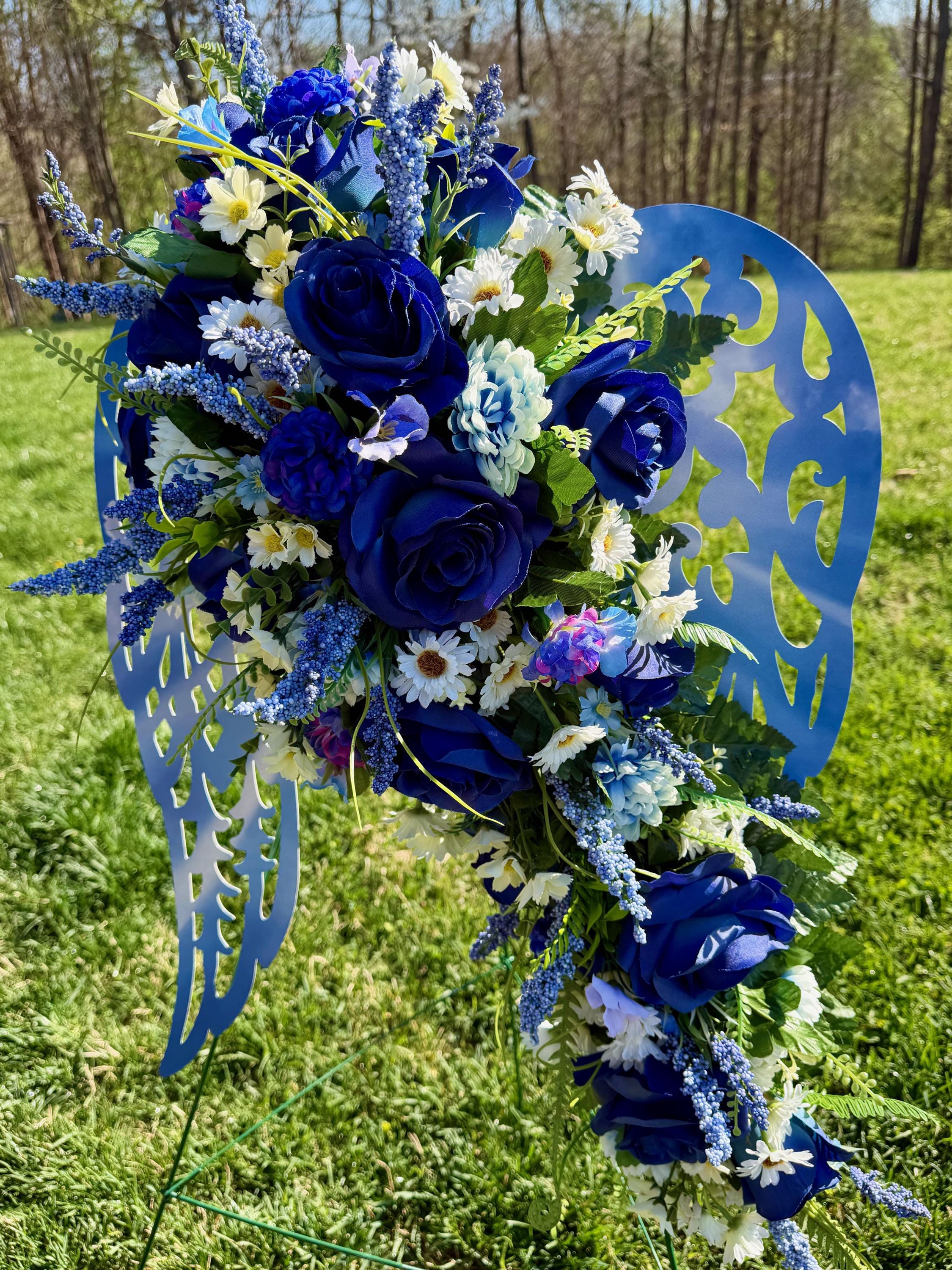 Soft Blue Clouds Angel Wings Cemetery Arrangement, Memorial Flowers, Headstone Decorations,