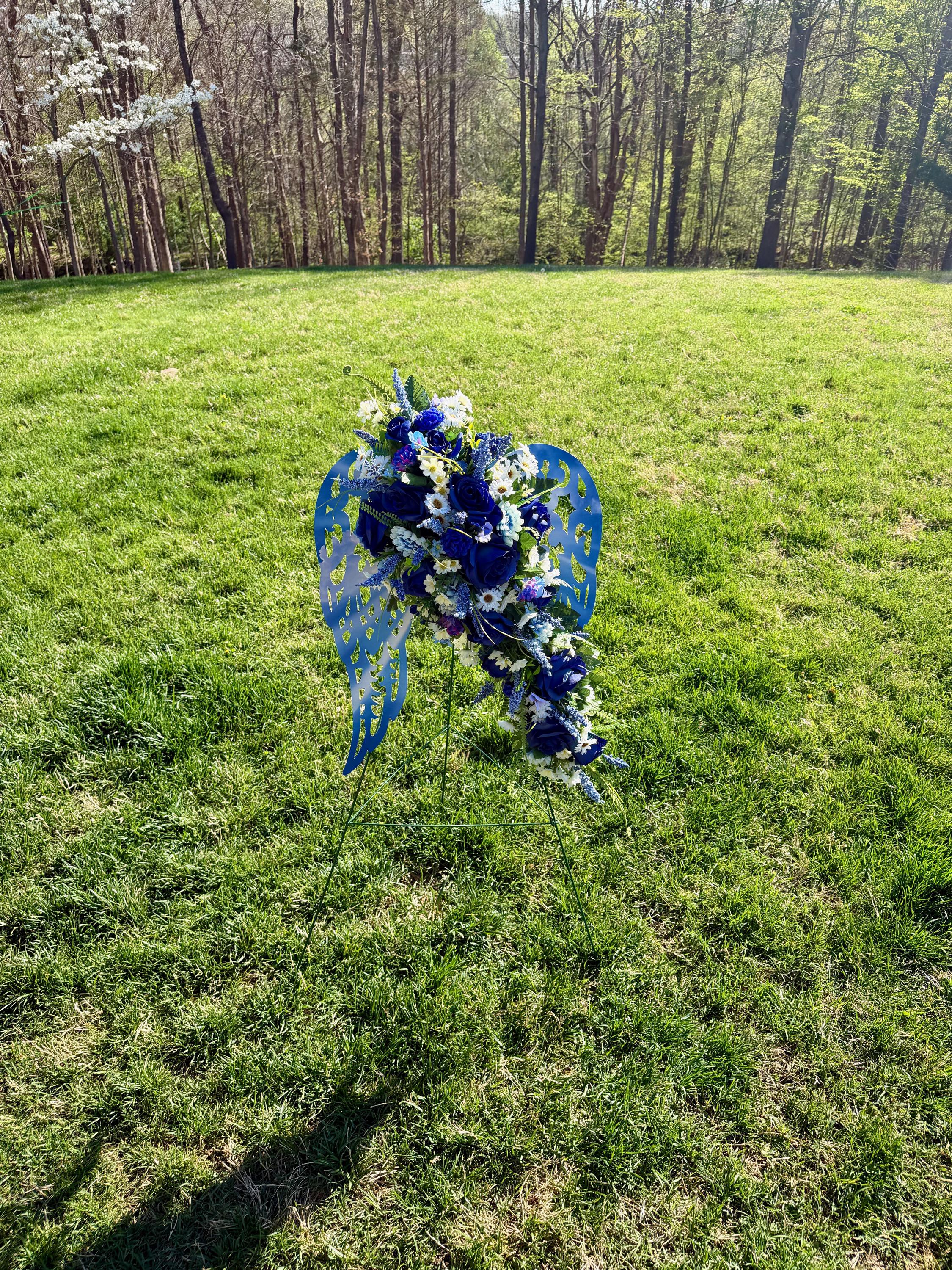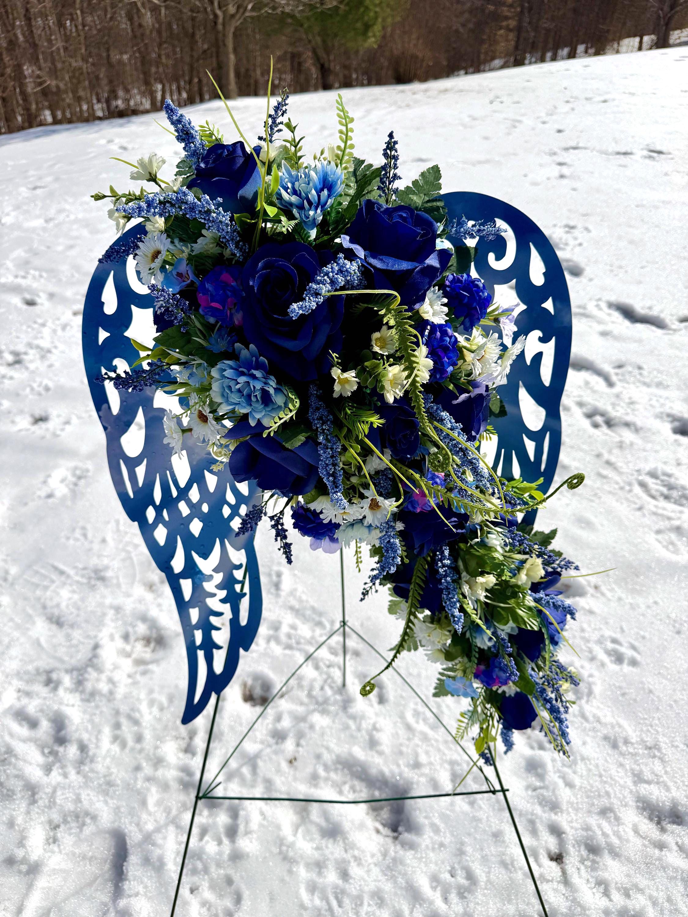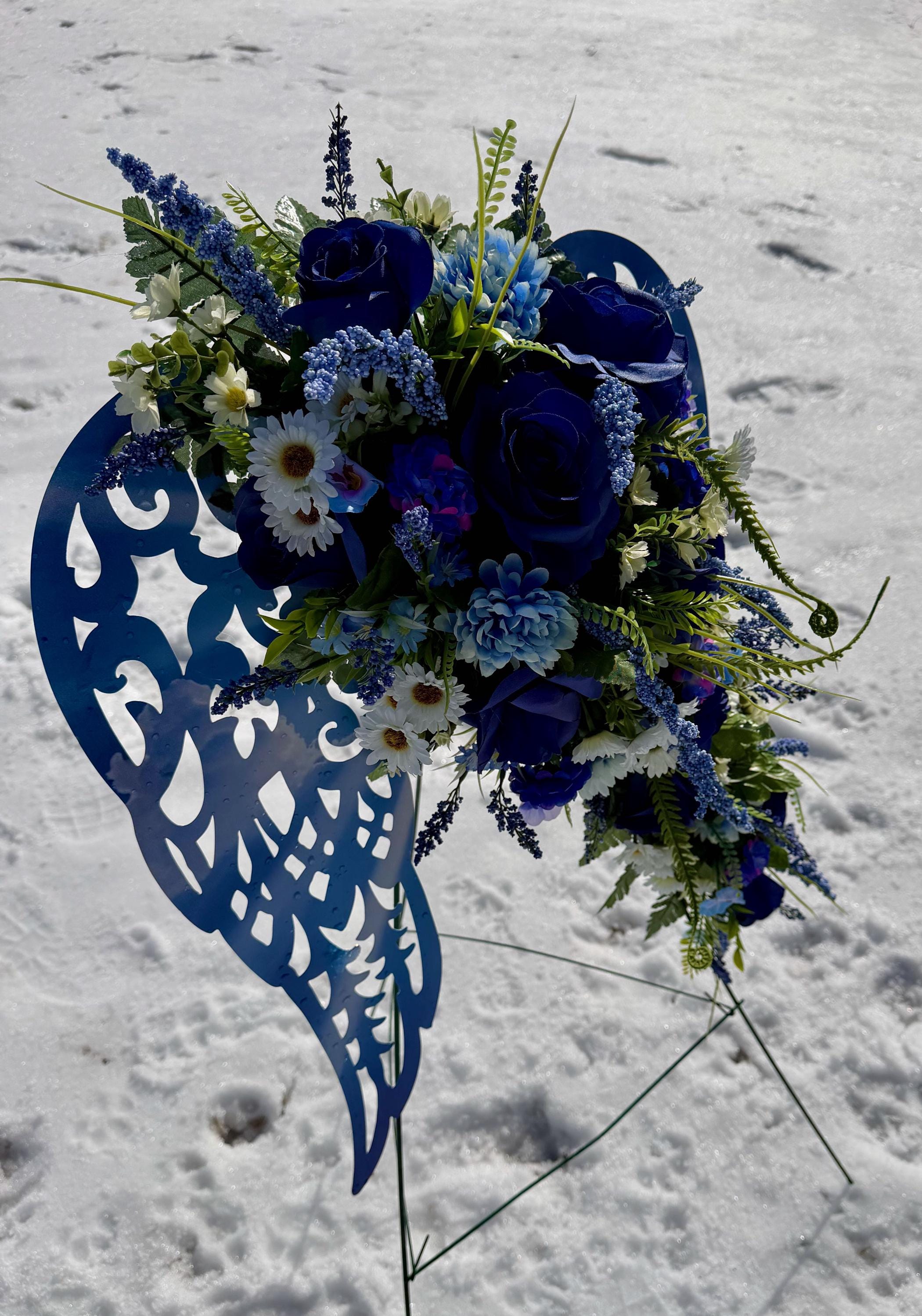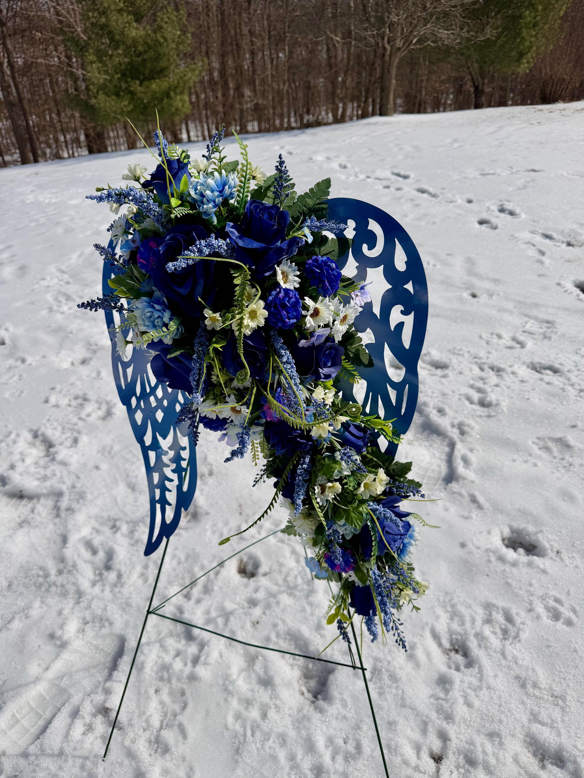 Soft Blue Clouds Angel Wings Cemetery Arrangement, Memorial Flowers, Headstone Decorations,