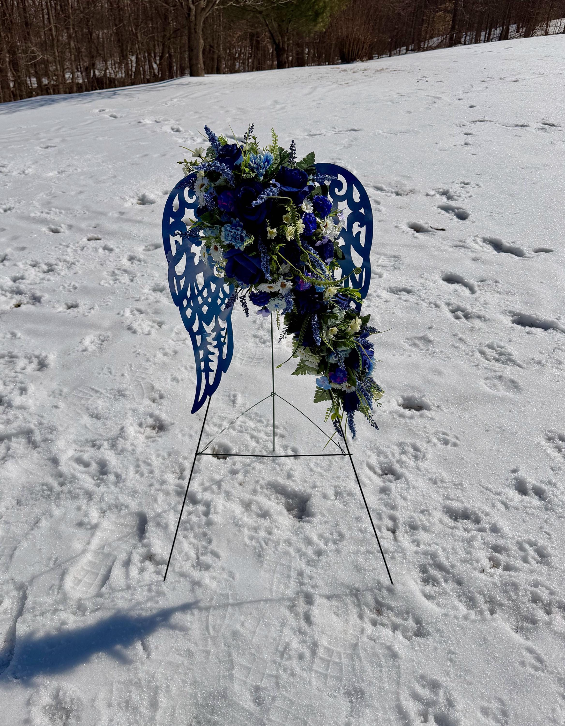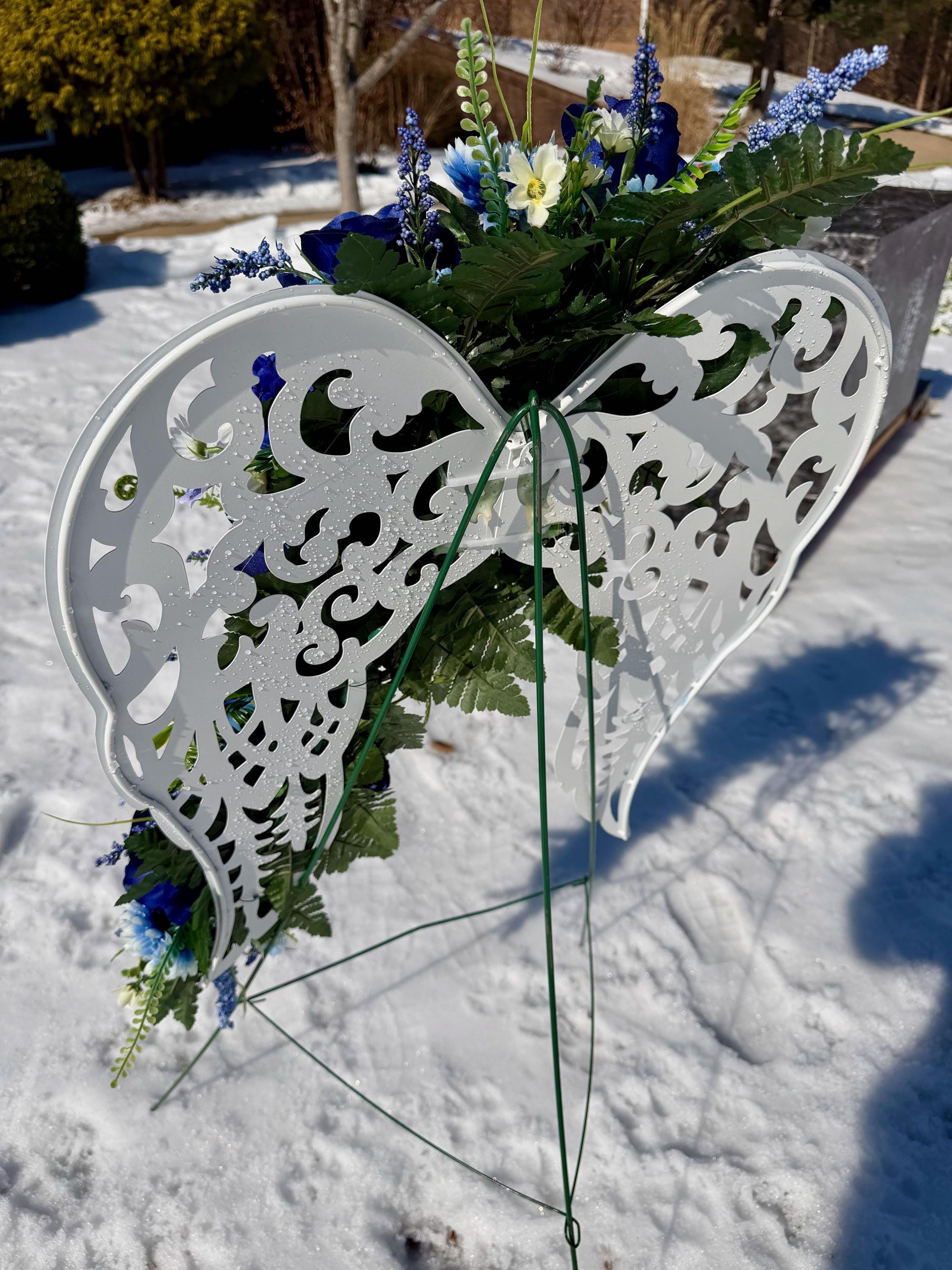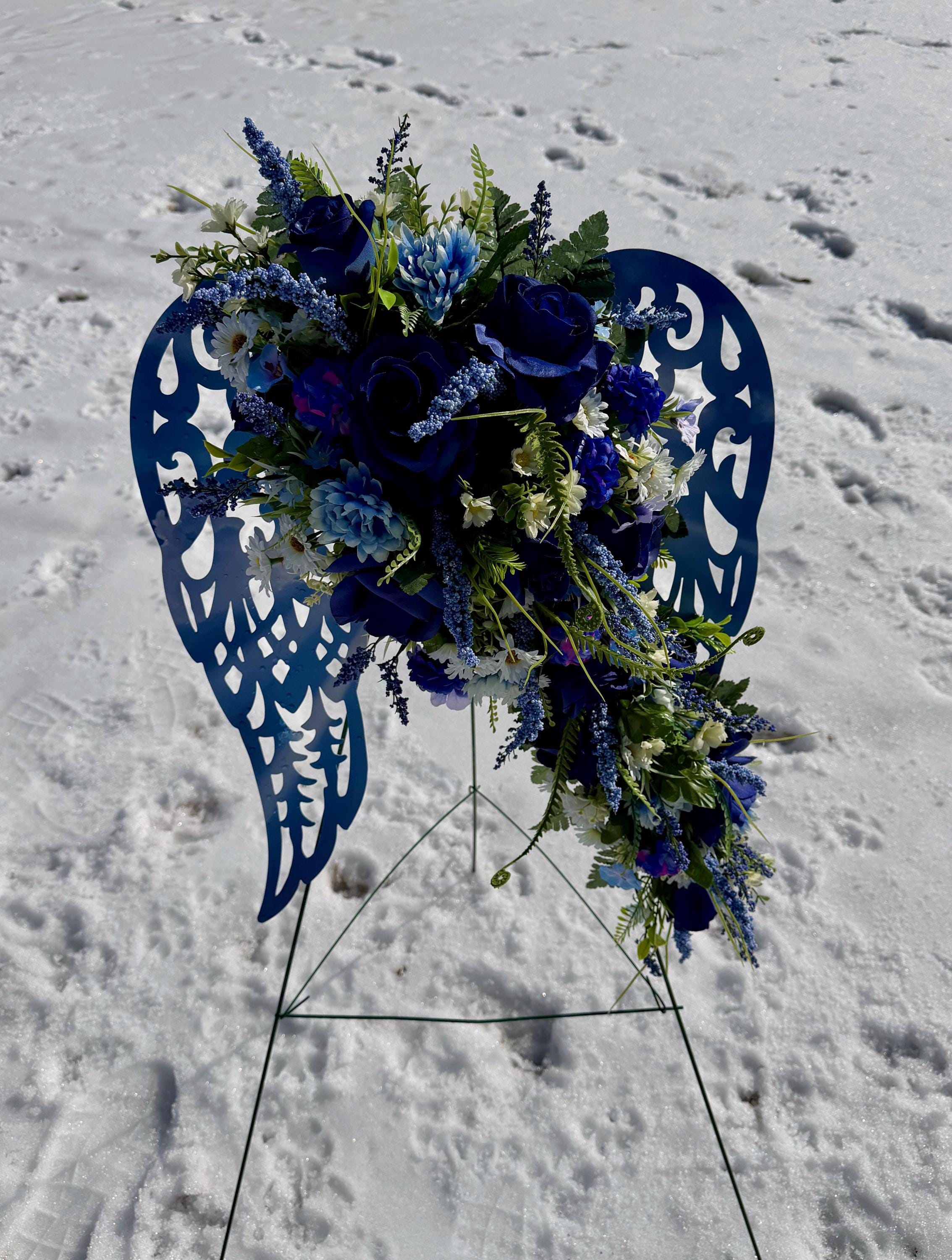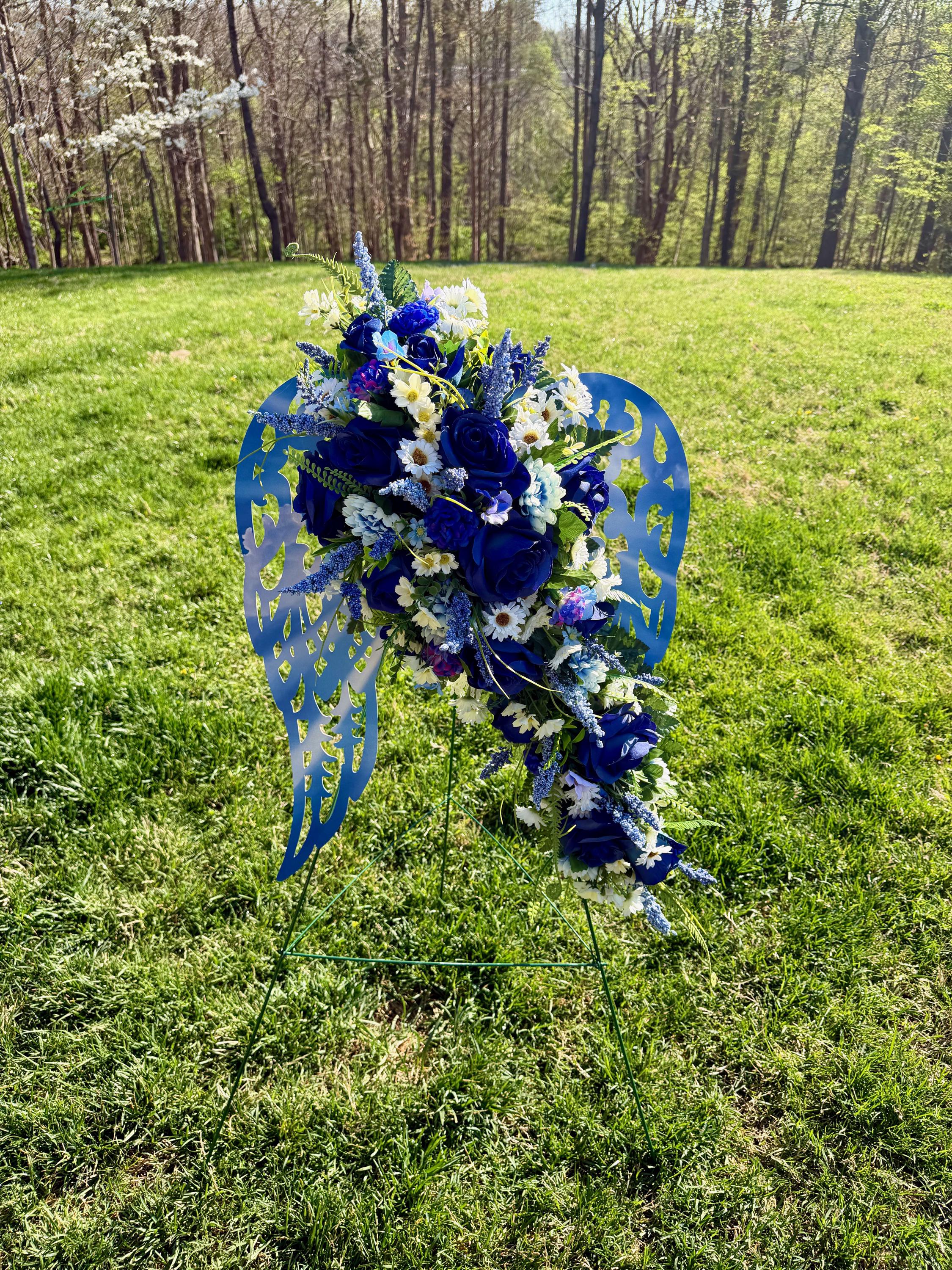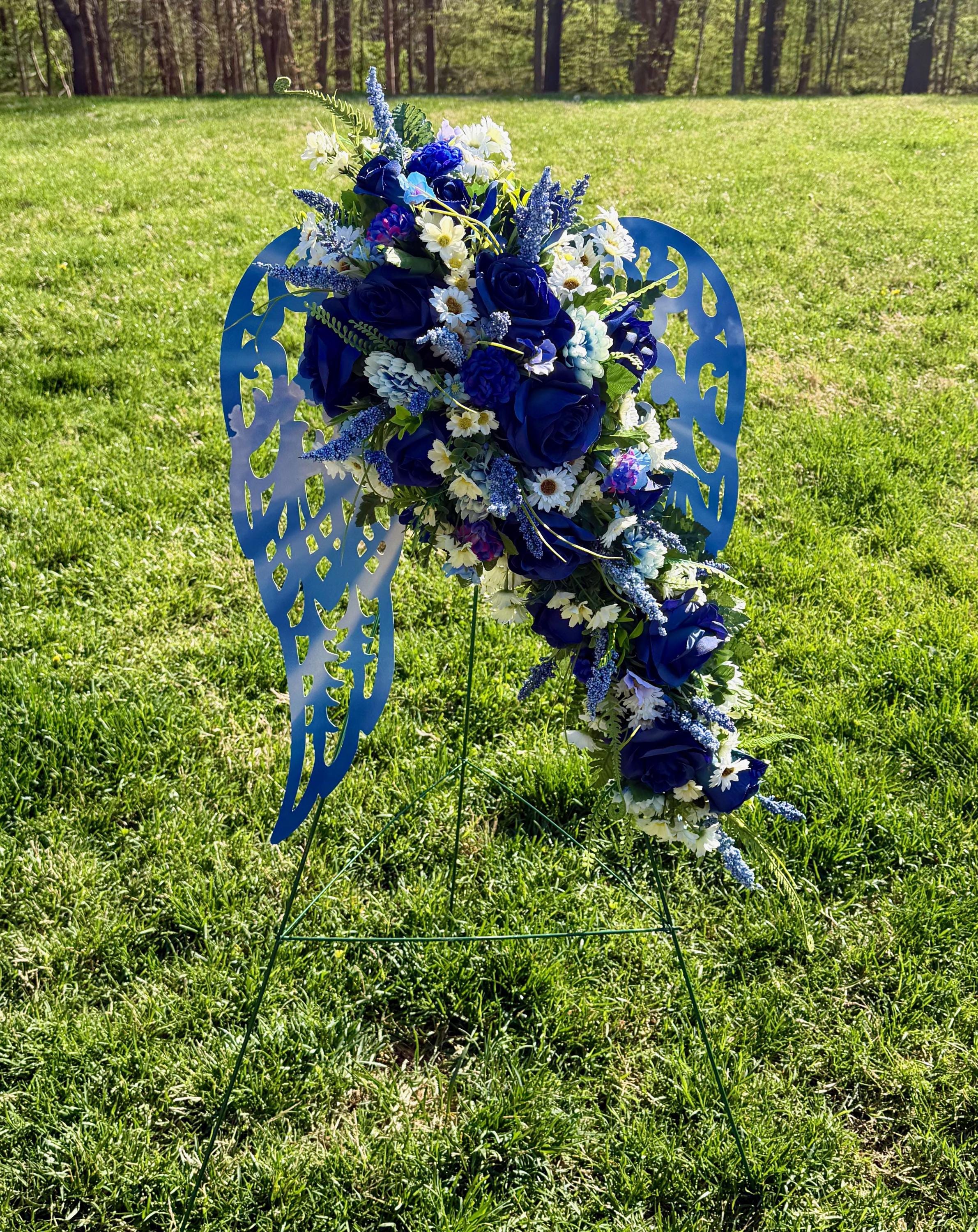Soft Blue Clouds Angel Wings Cemetery Arrangement, Memorial Flowers, Headstone Decorations,