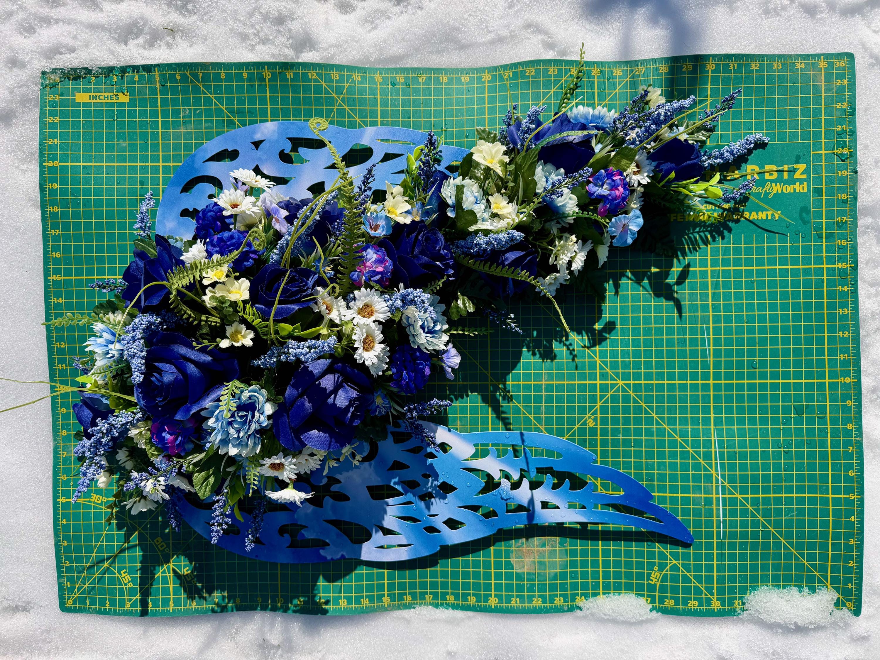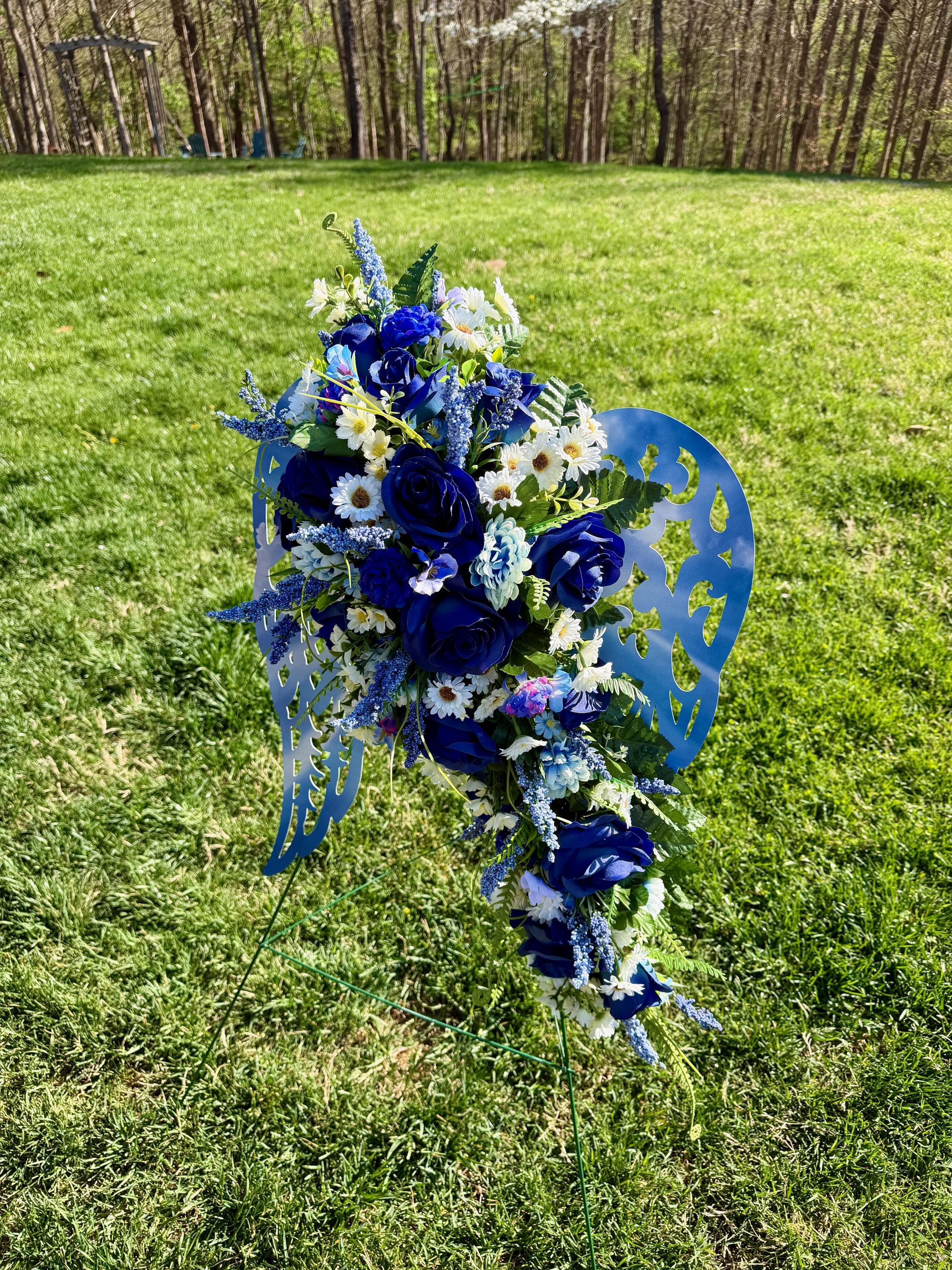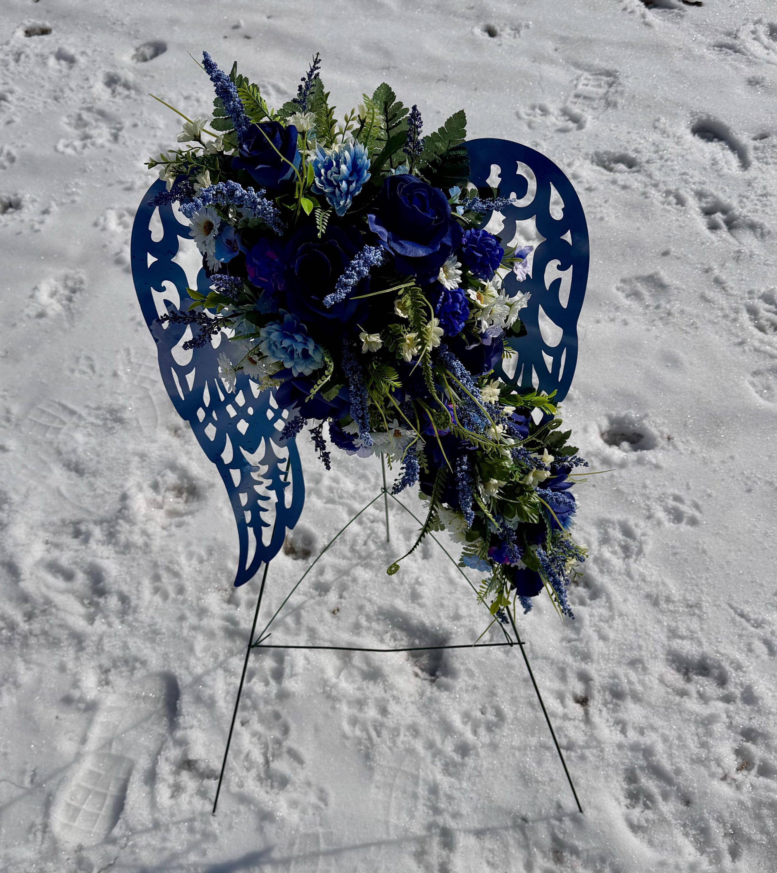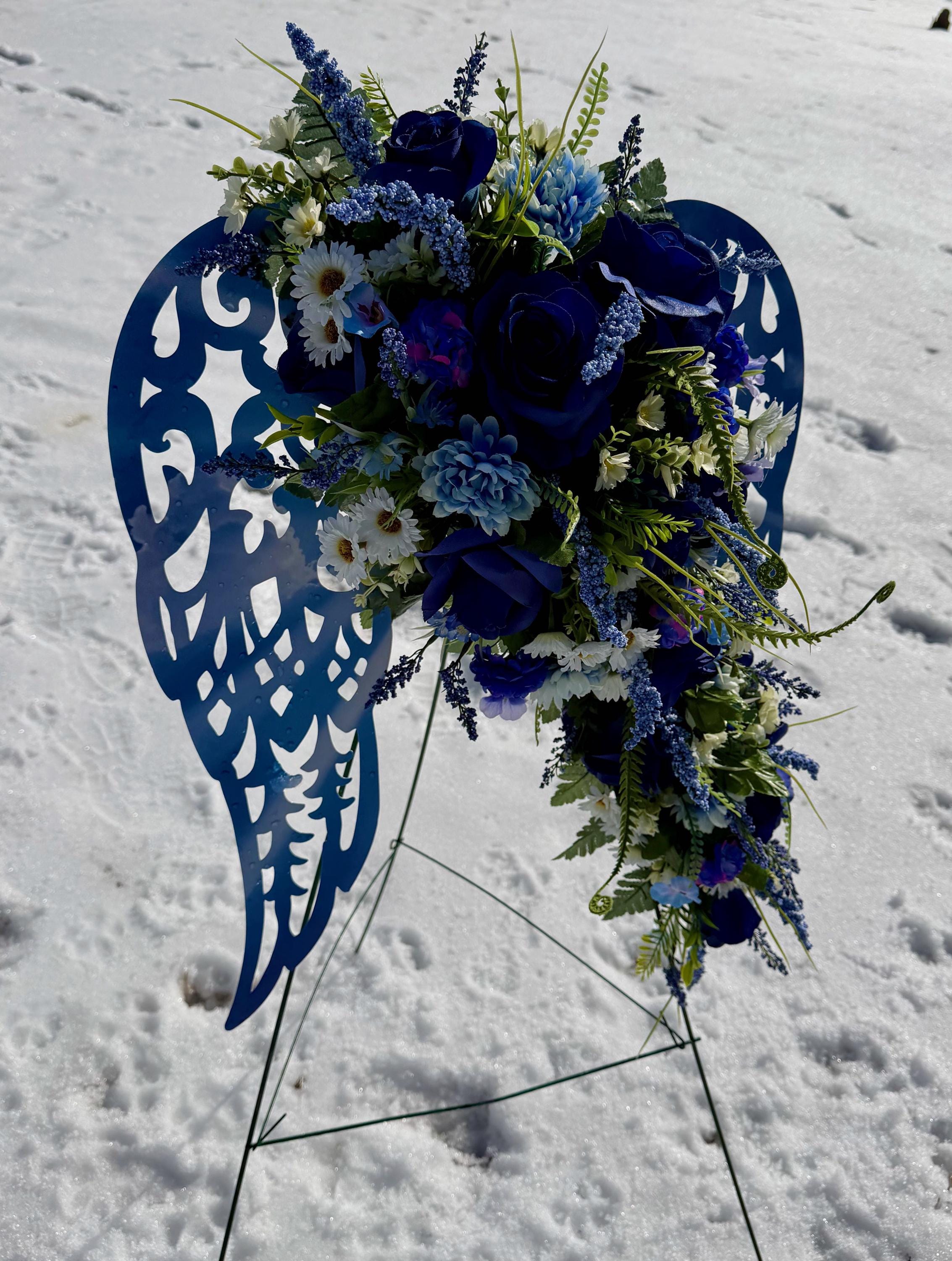 Soft Blue Clouds Angel Wings Cemetery Arrangement, Memorial Flowers, Headstone Decorations,