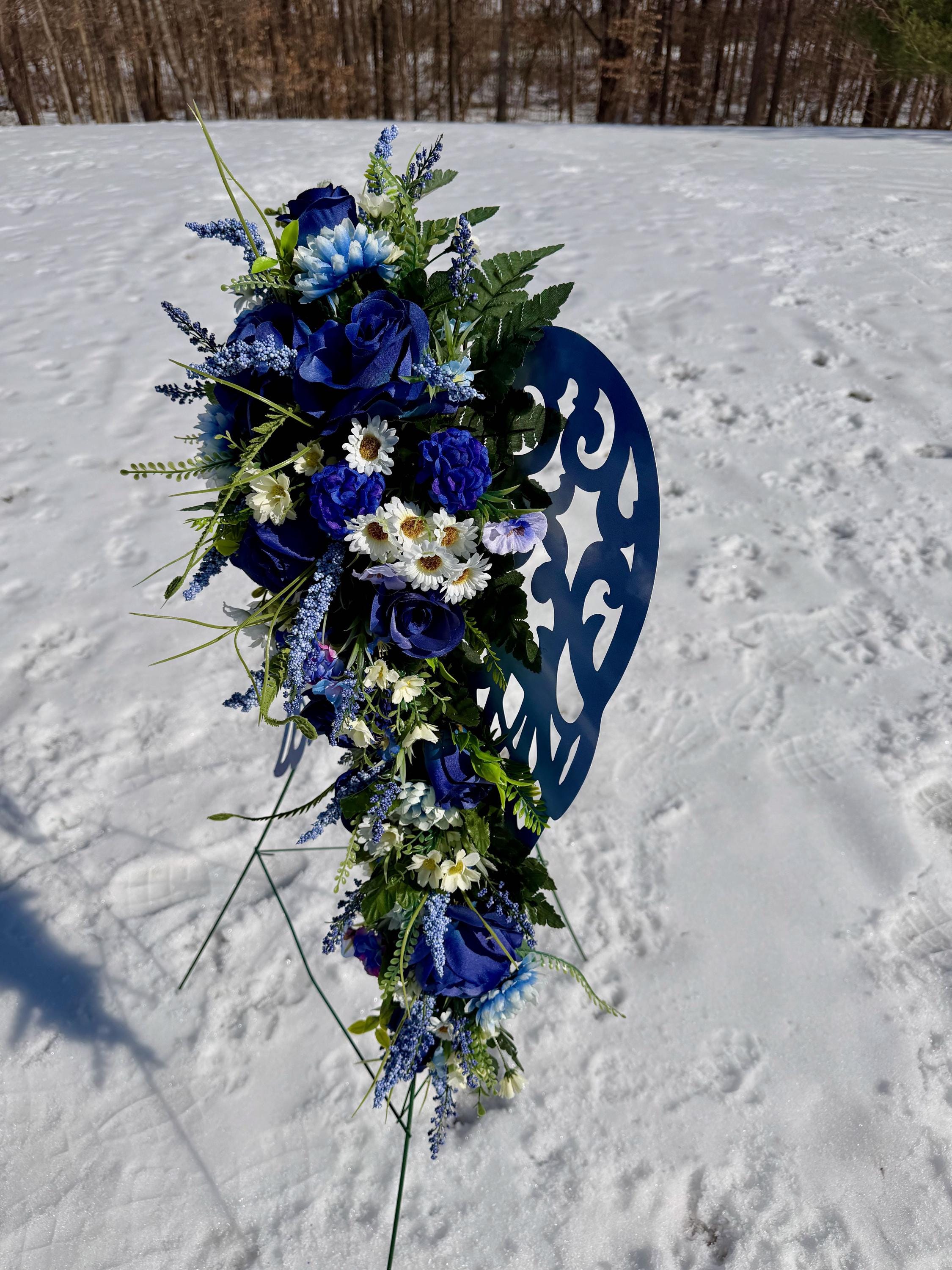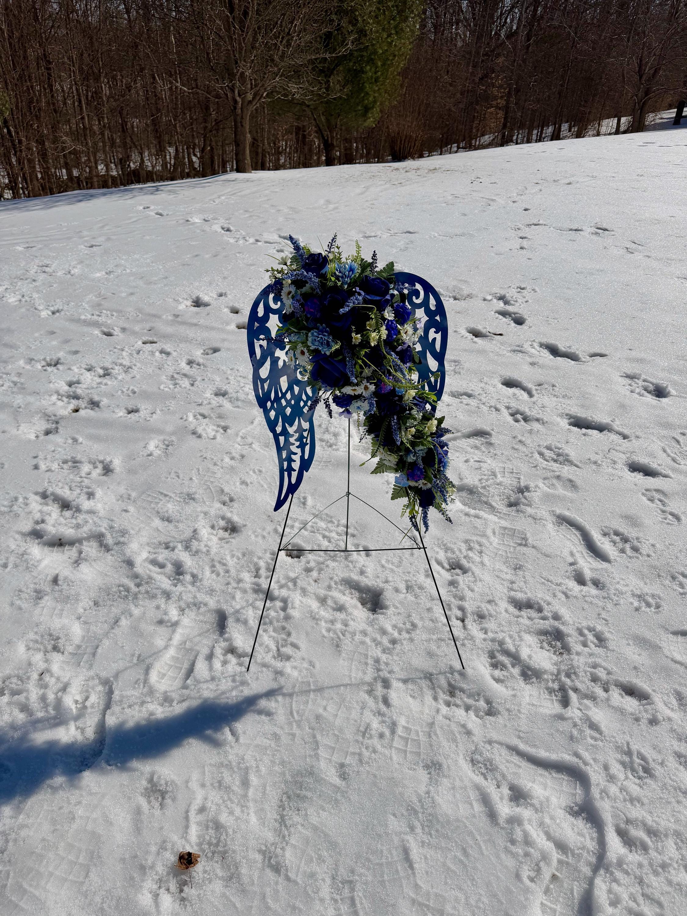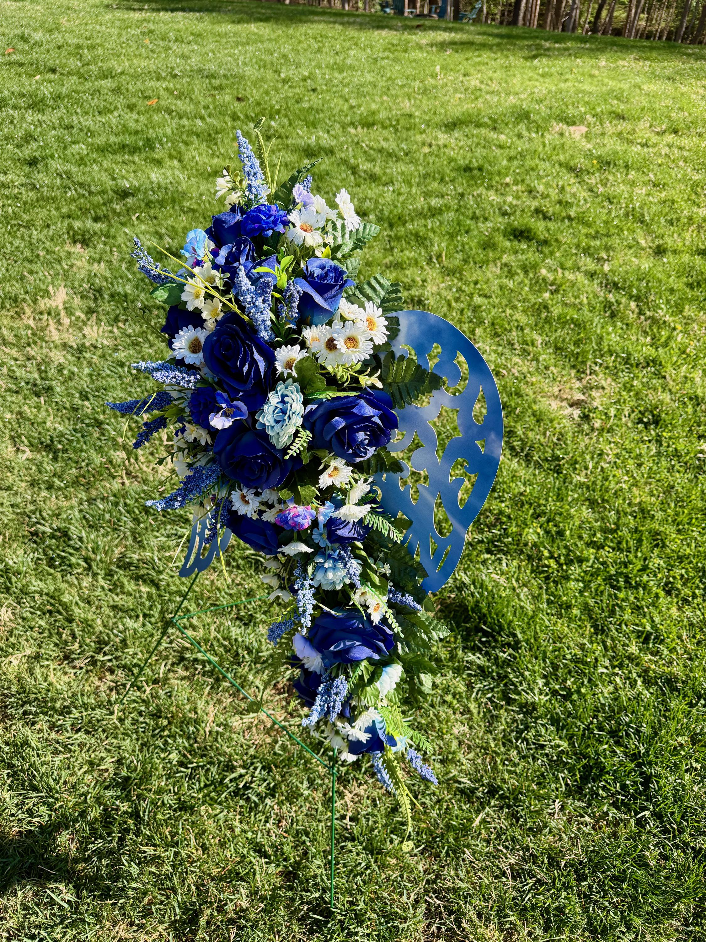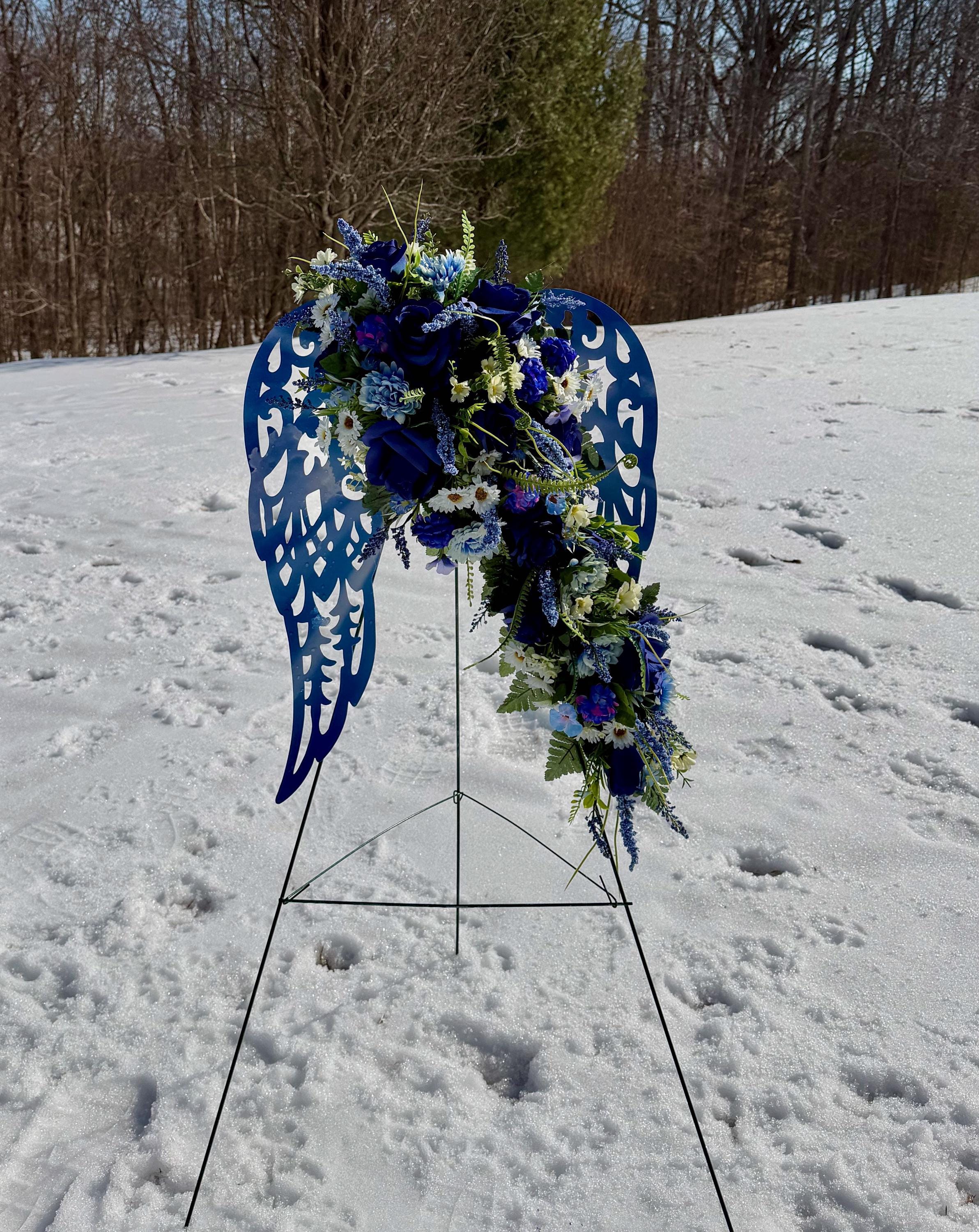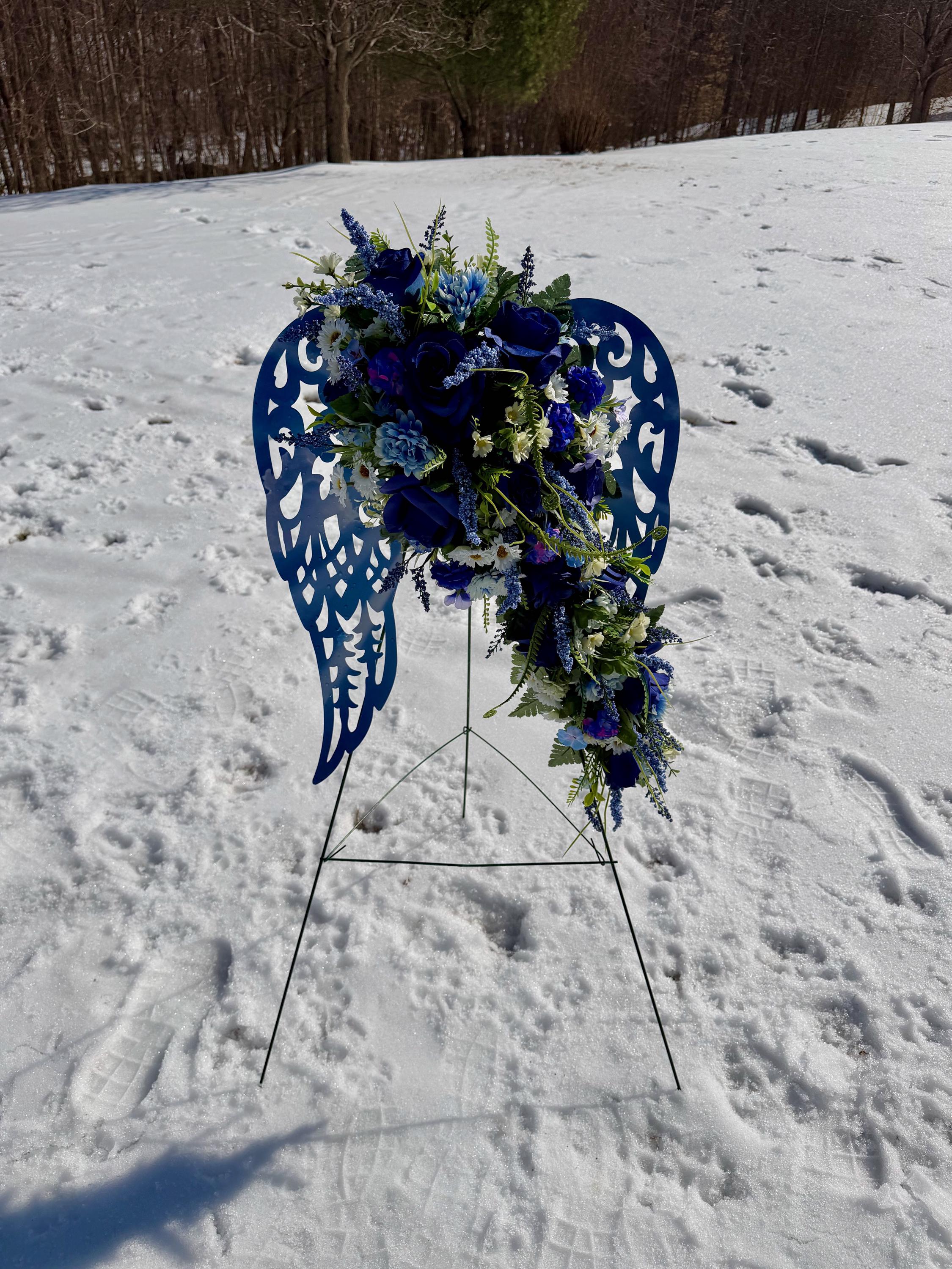 Soft Blue Clouds Angel Wings Cemetery Arrangement, Memorial Flowers, Headstone Decorations,