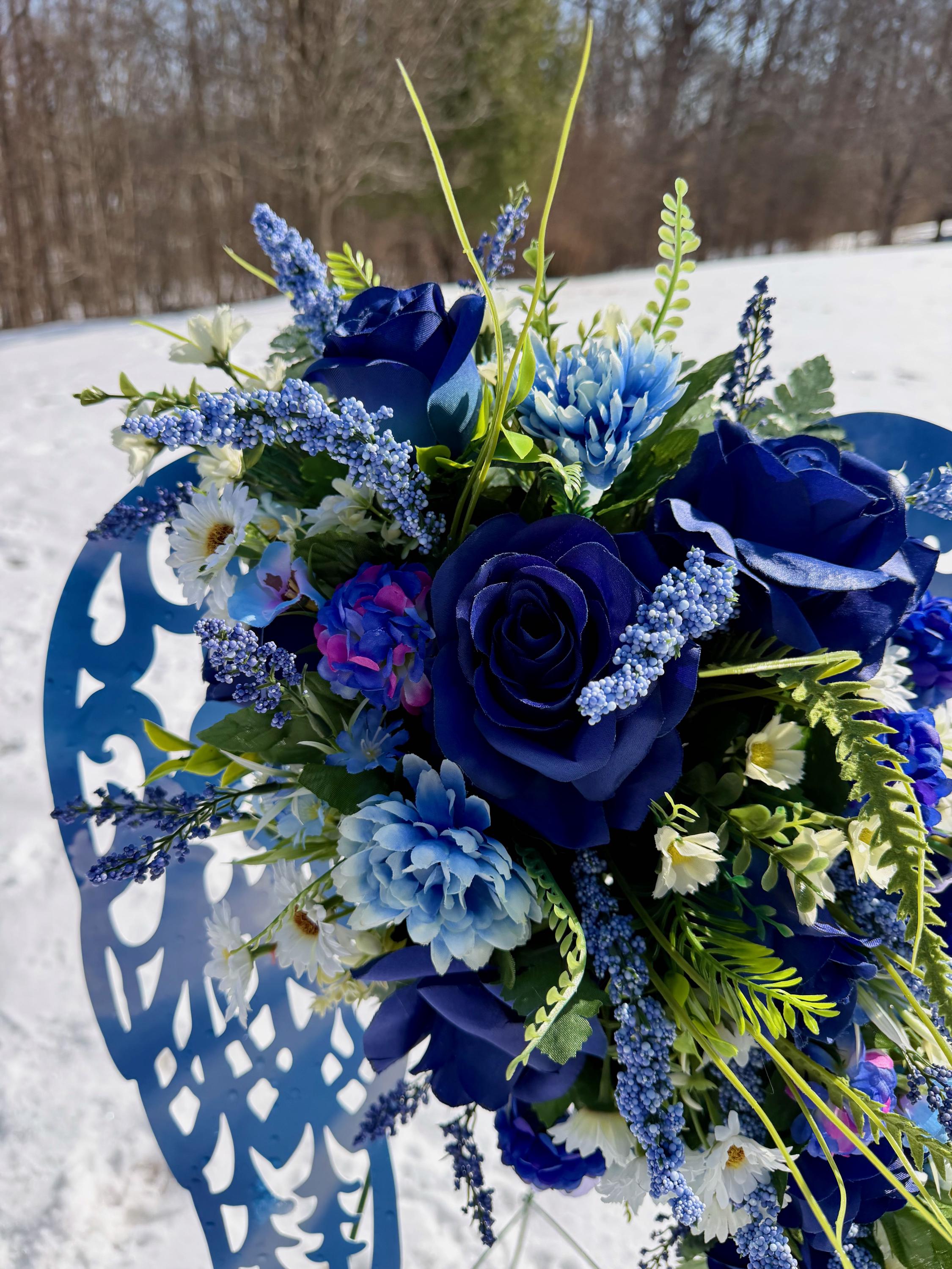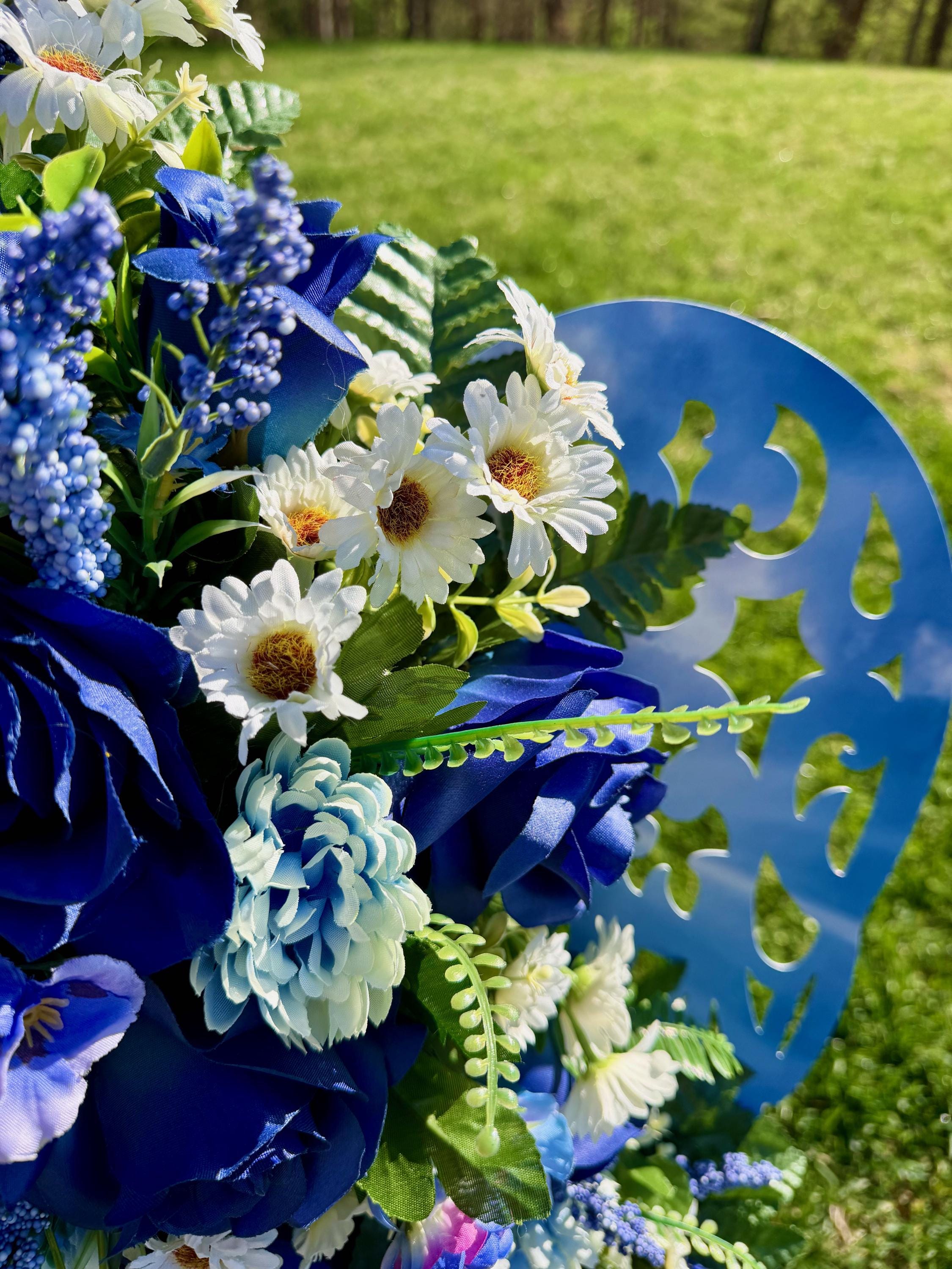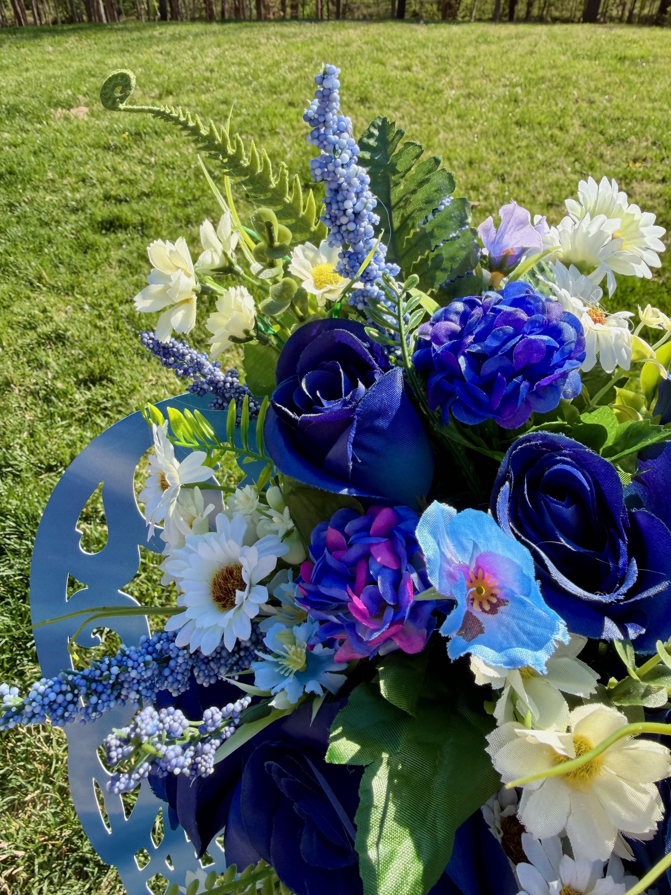 We’re a small, family-operated business consisting of myself, my husband, and my daughter. We personally manage every order and strive for excellent customer service. All our arrangements use high-quality silk flowers, though all silk blooms may fade over time. Each stem is glued into foam to withstand the elements. Designed by M&E uses only premium silks, and we put genuine care into every piece we create. Rest assured, the arrangement shown in our photos is exactly the one you’ll receive, as I design and assemble each one myself. If you’re searching for something unique or have a particular flower, color, or matching vases in mind, please contact me to discuss a custom order.