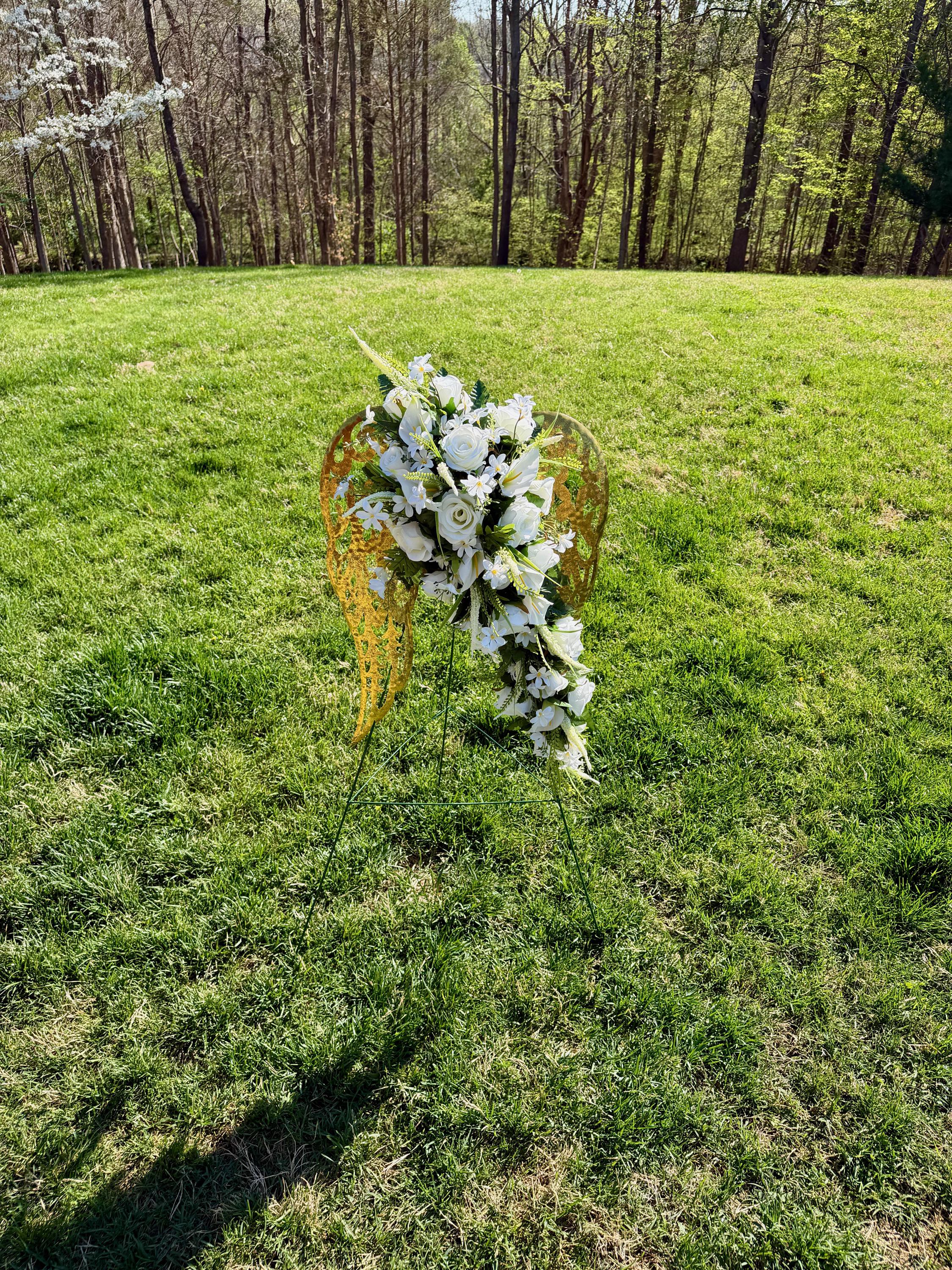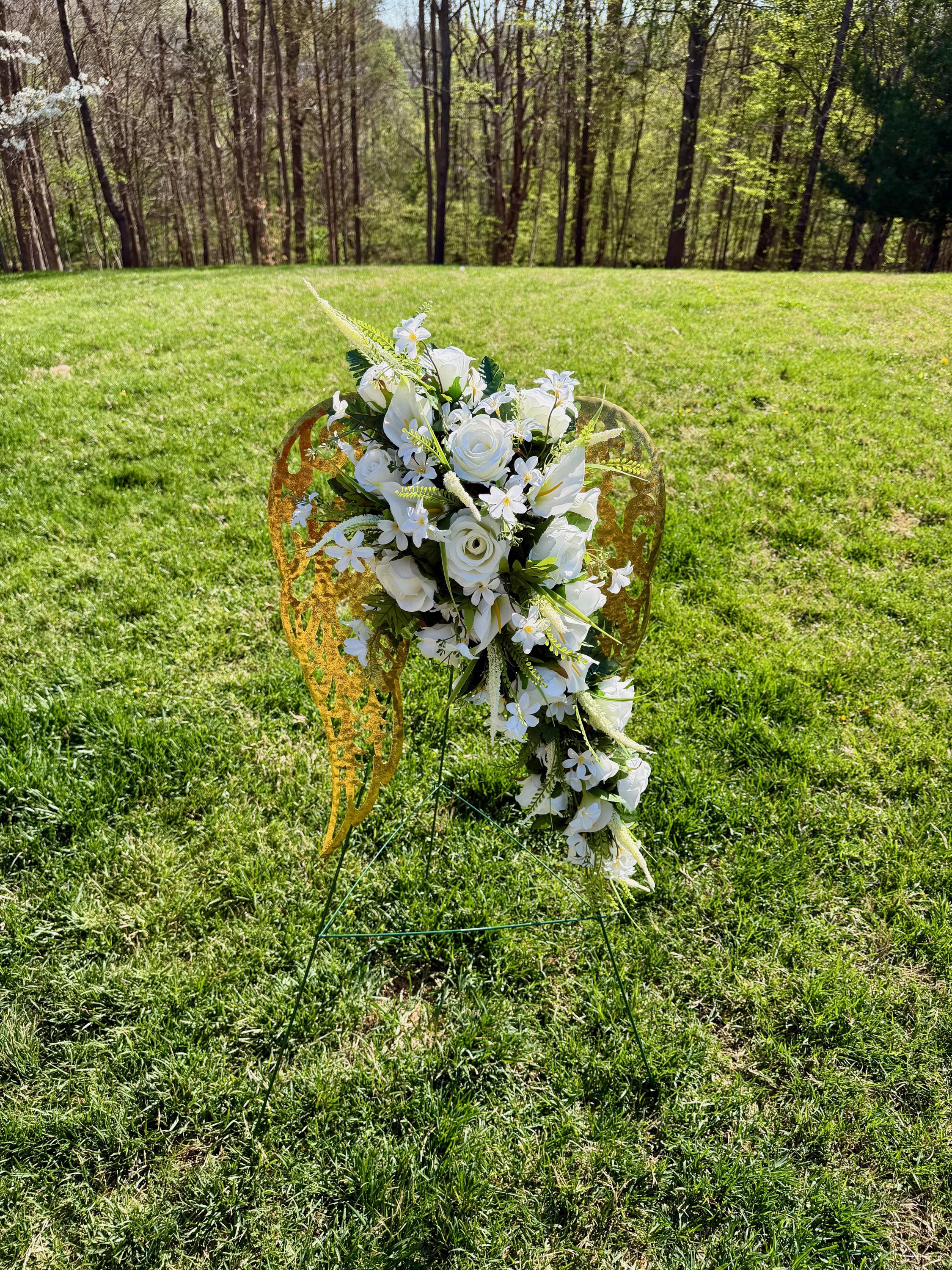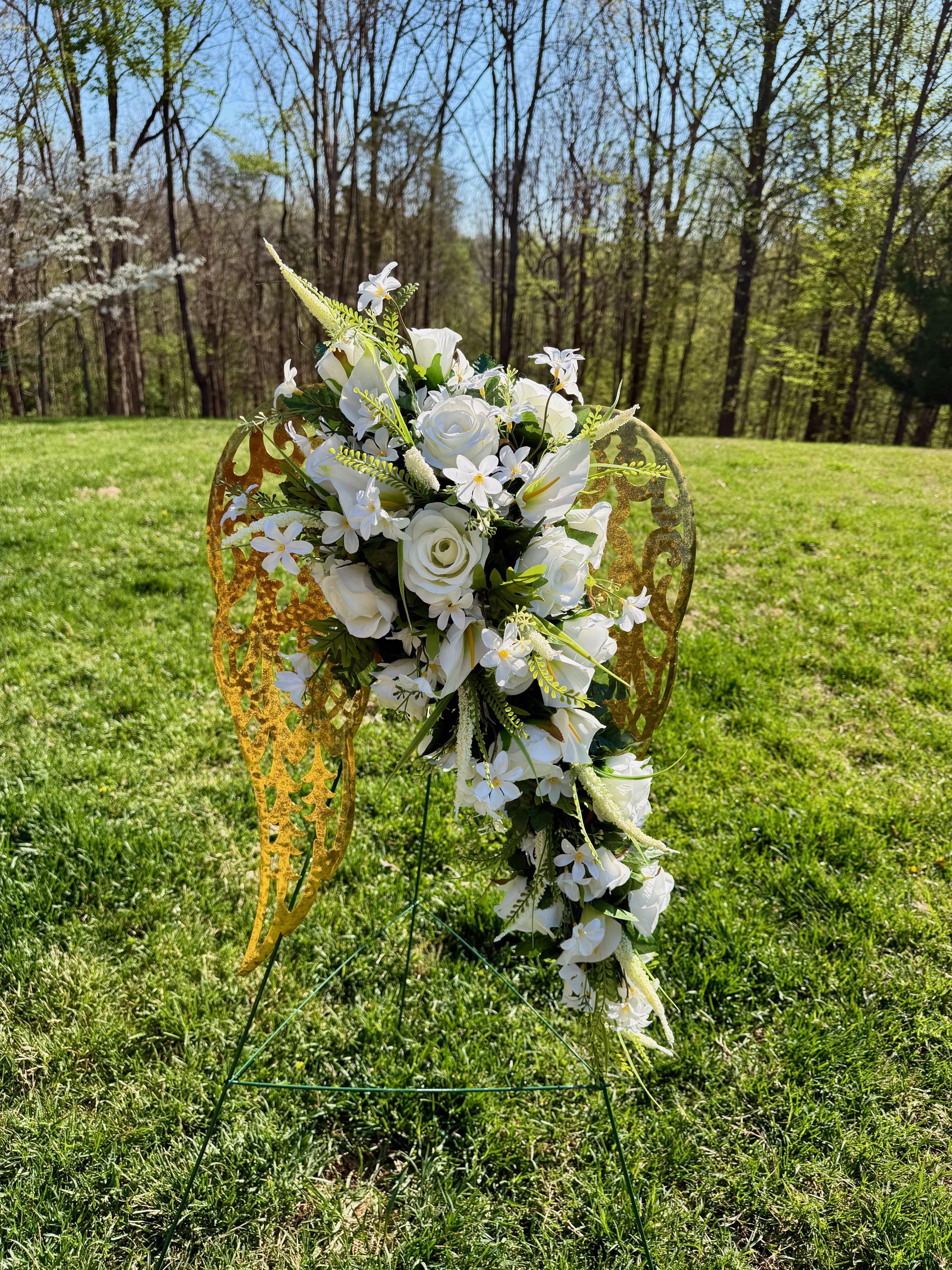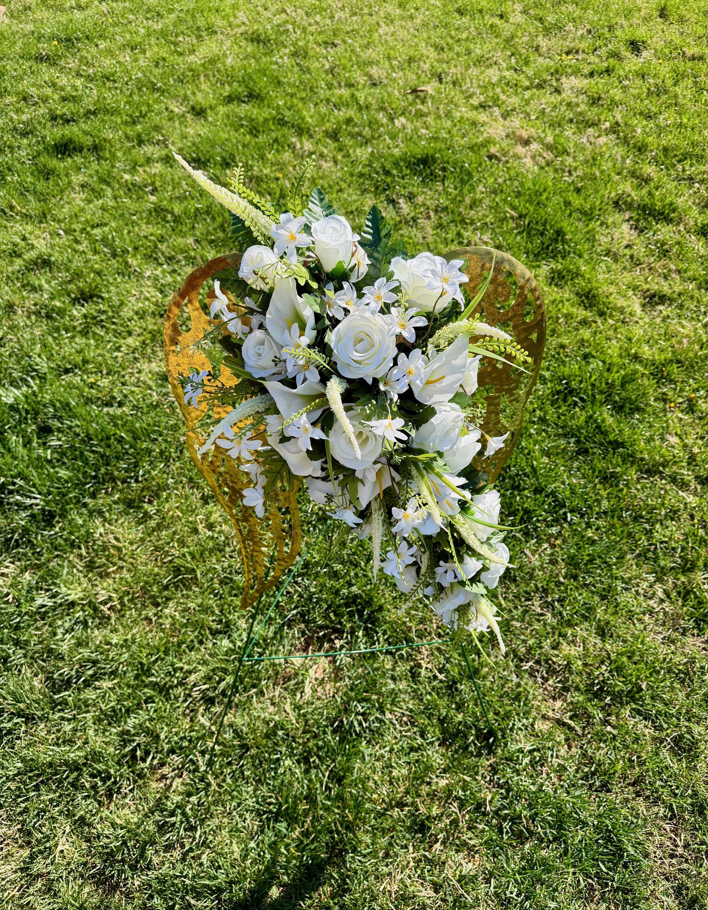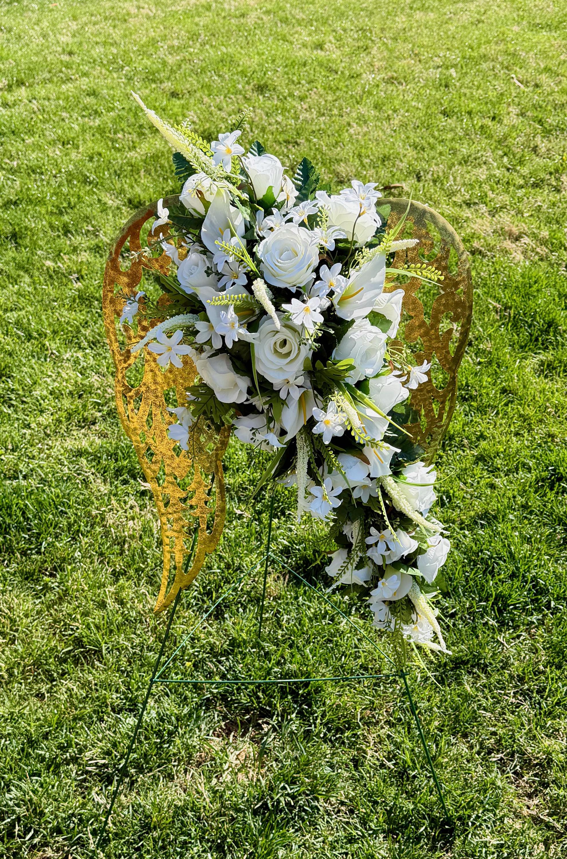 Gold Color Angel Wings Cemetery Arrangement, Memorial Flowers, Headstone Decorations,