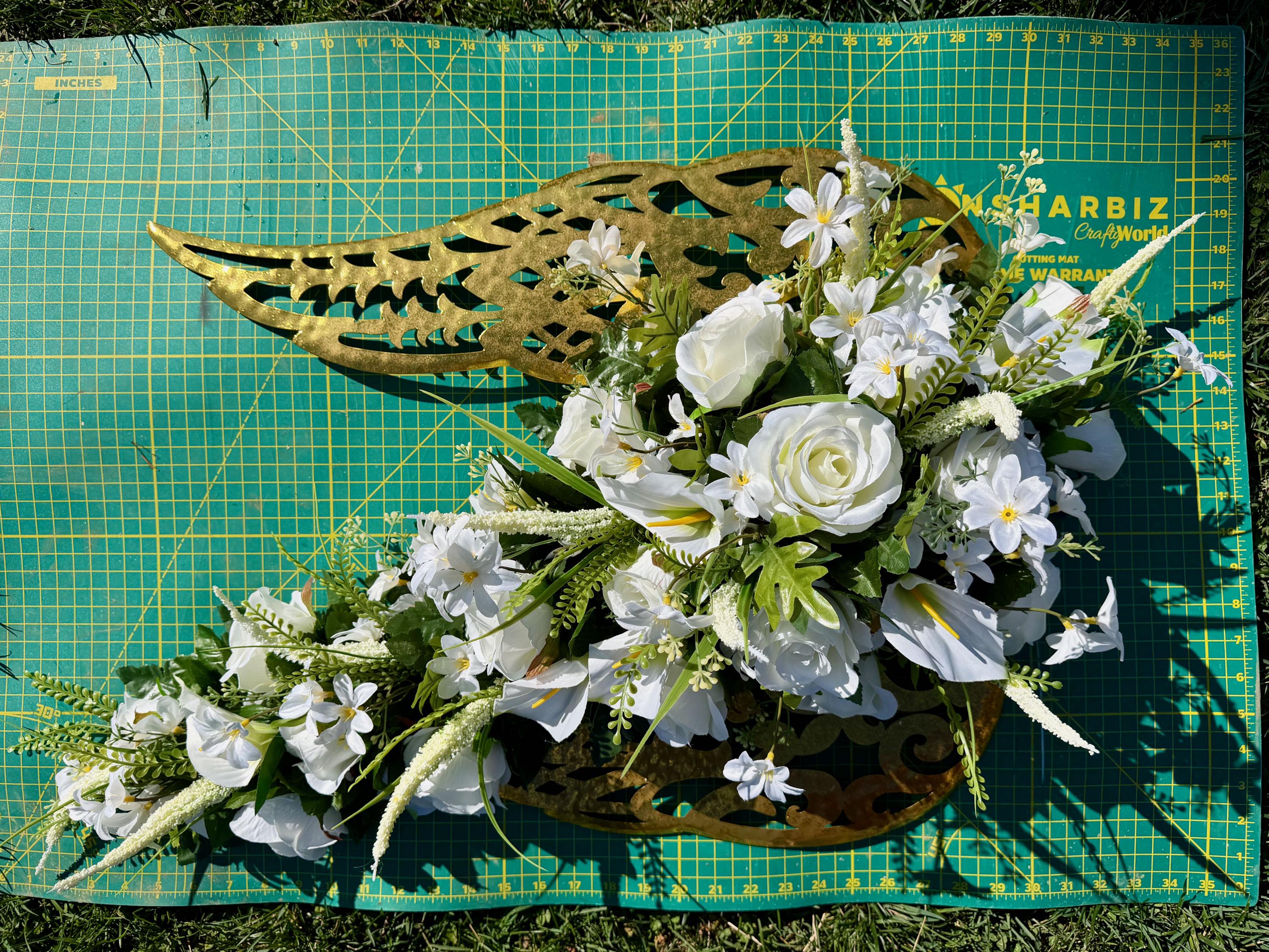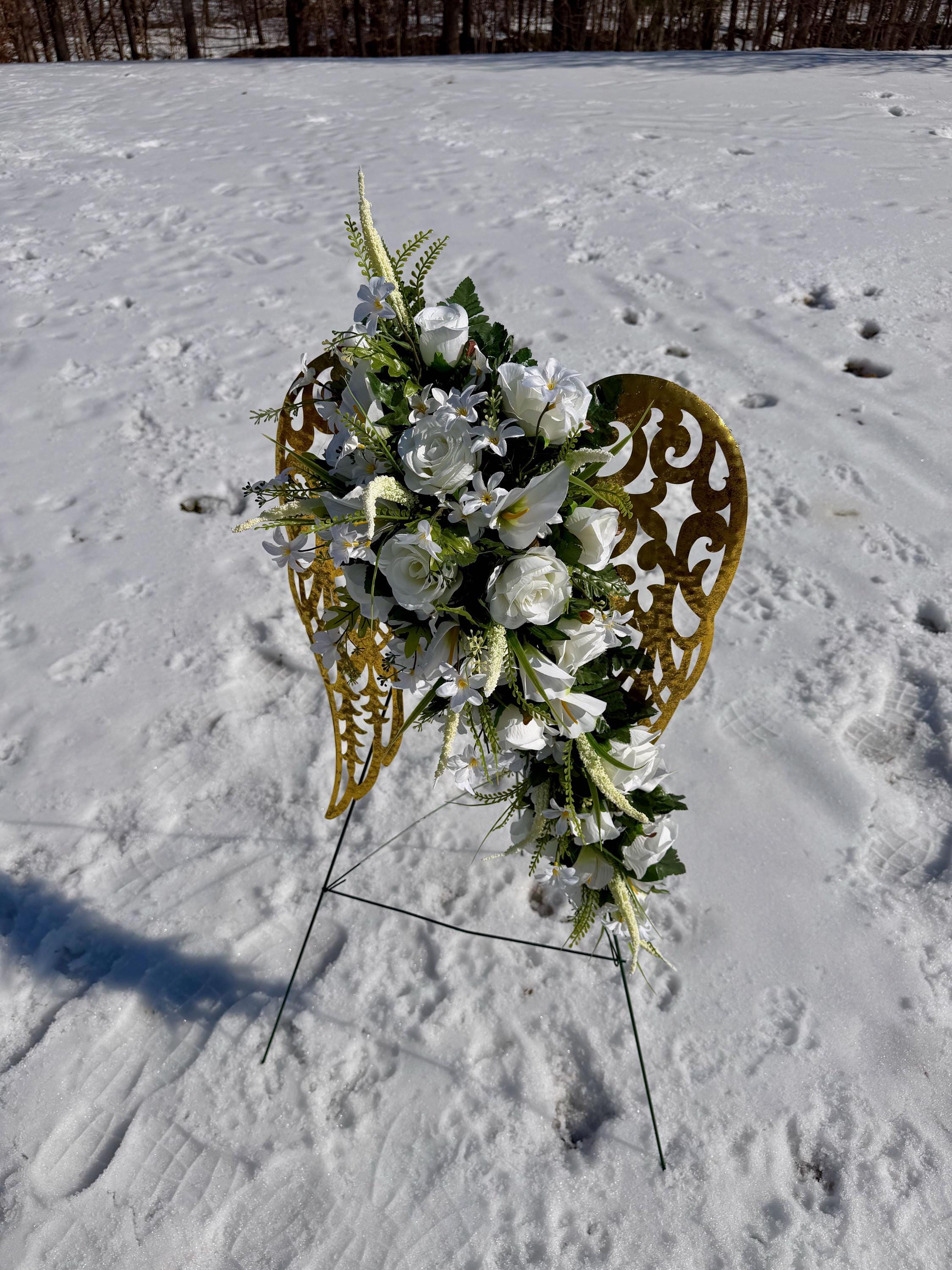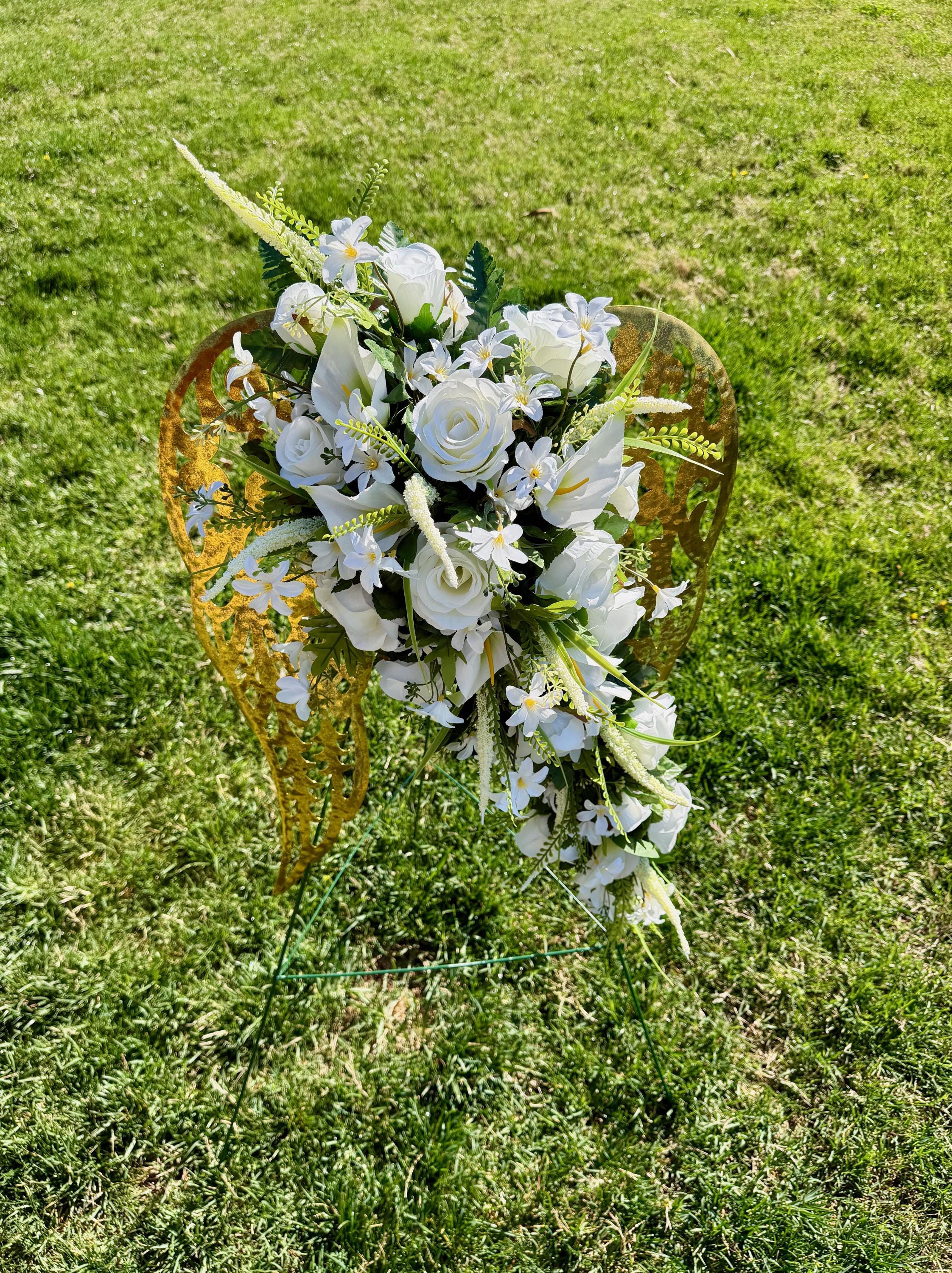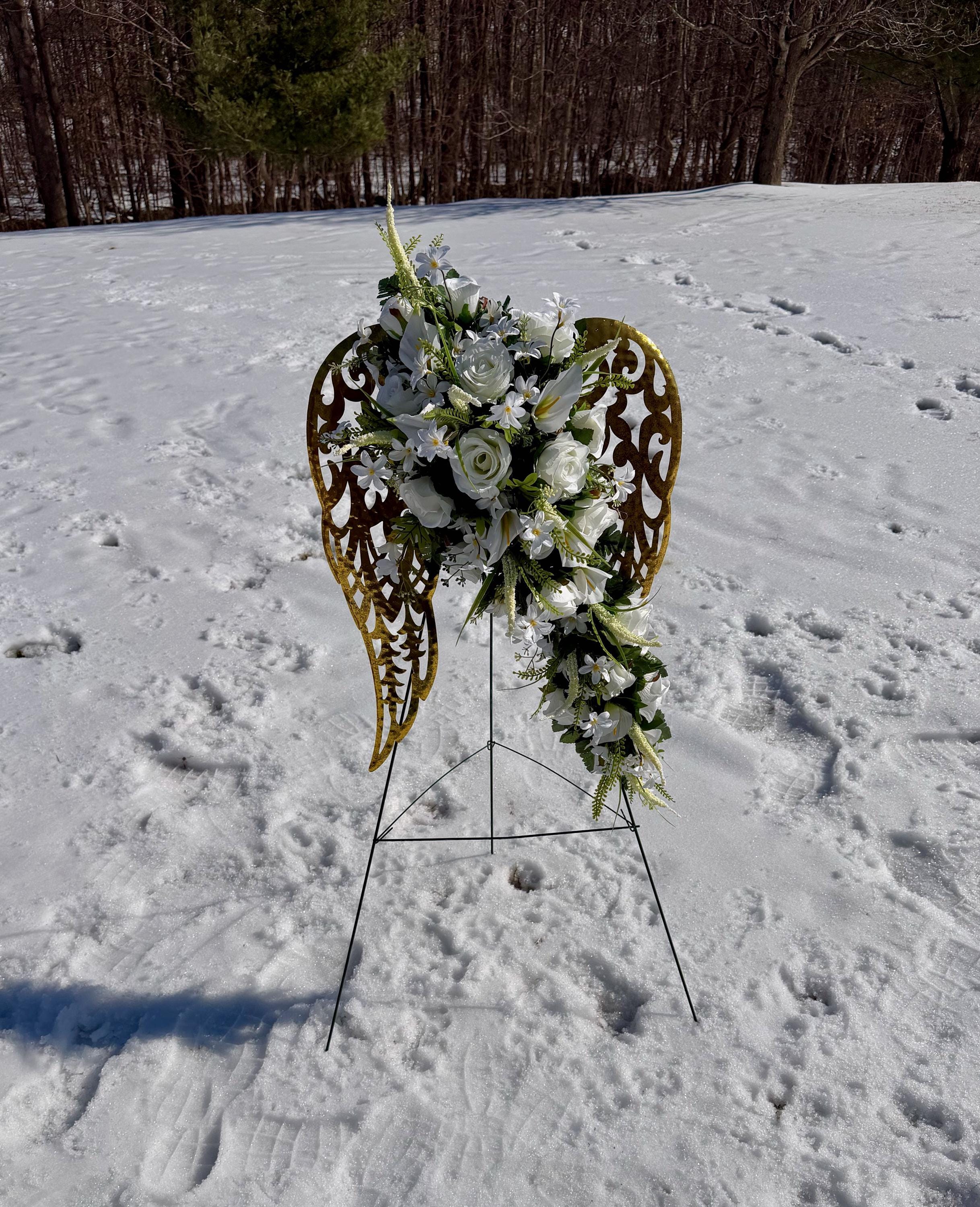 Gold Color Angel Wings Cemetery Arrangement, Memorial Flowers, Headstone Decorations,