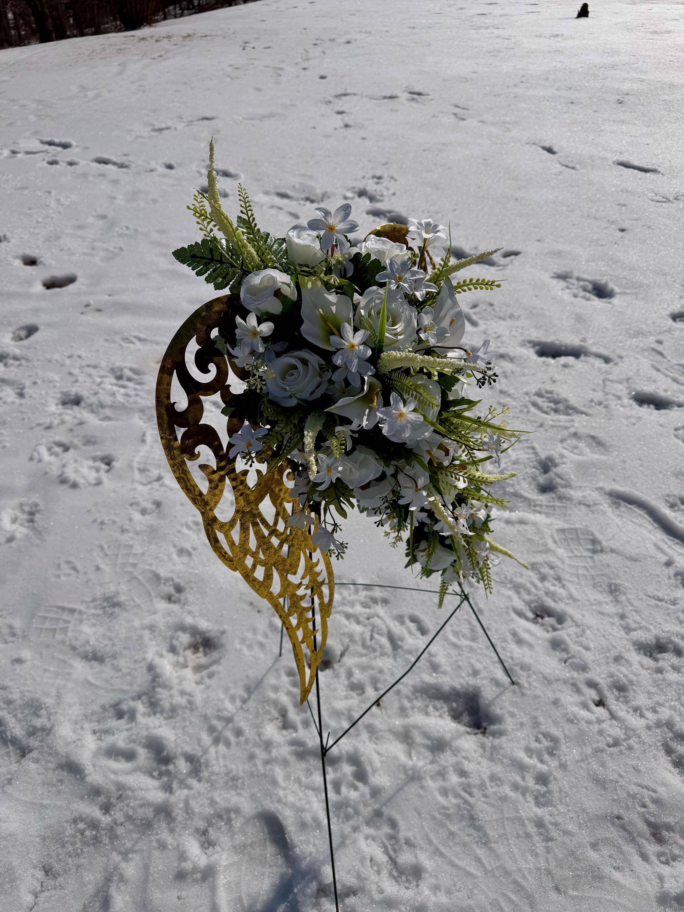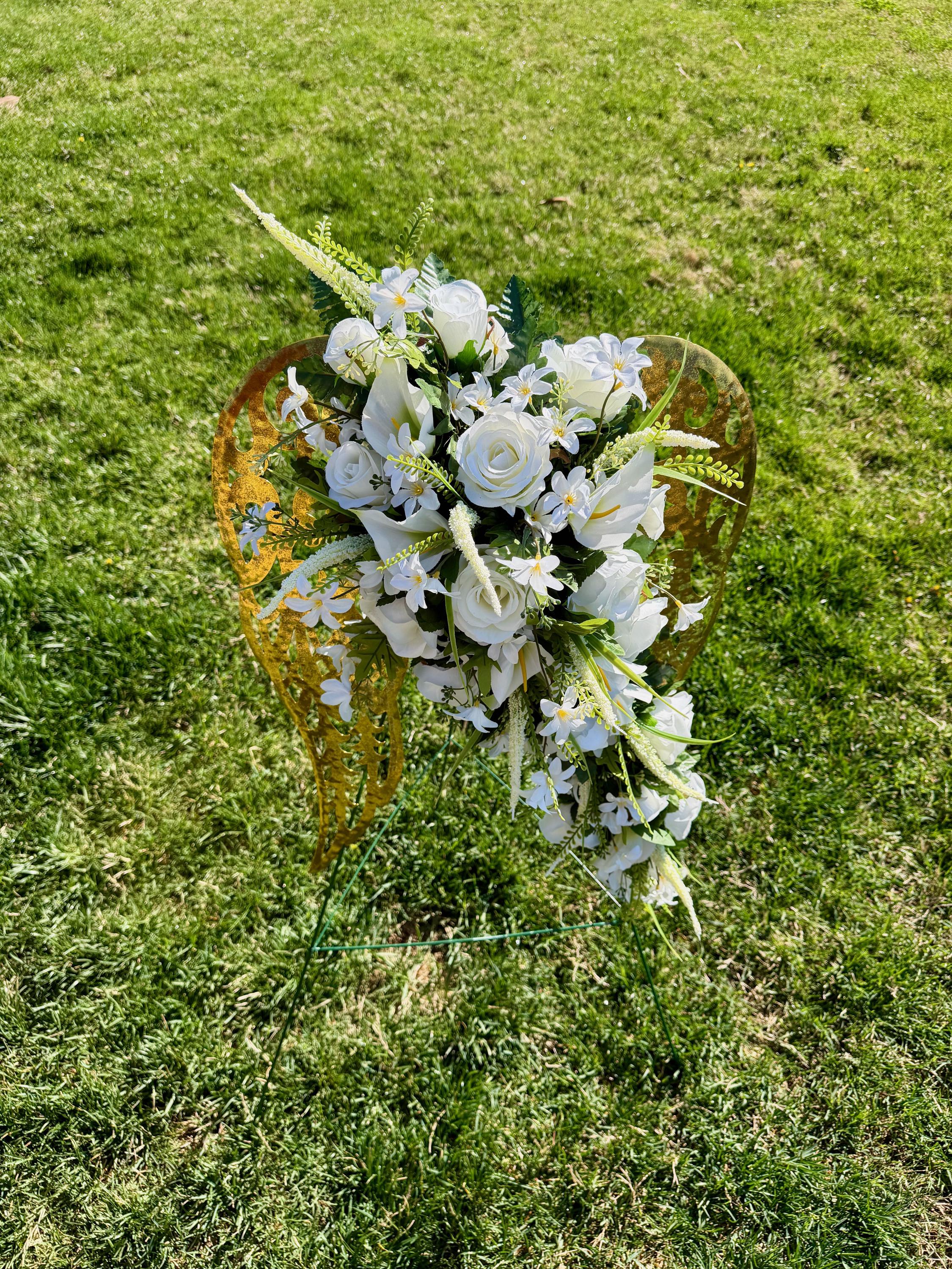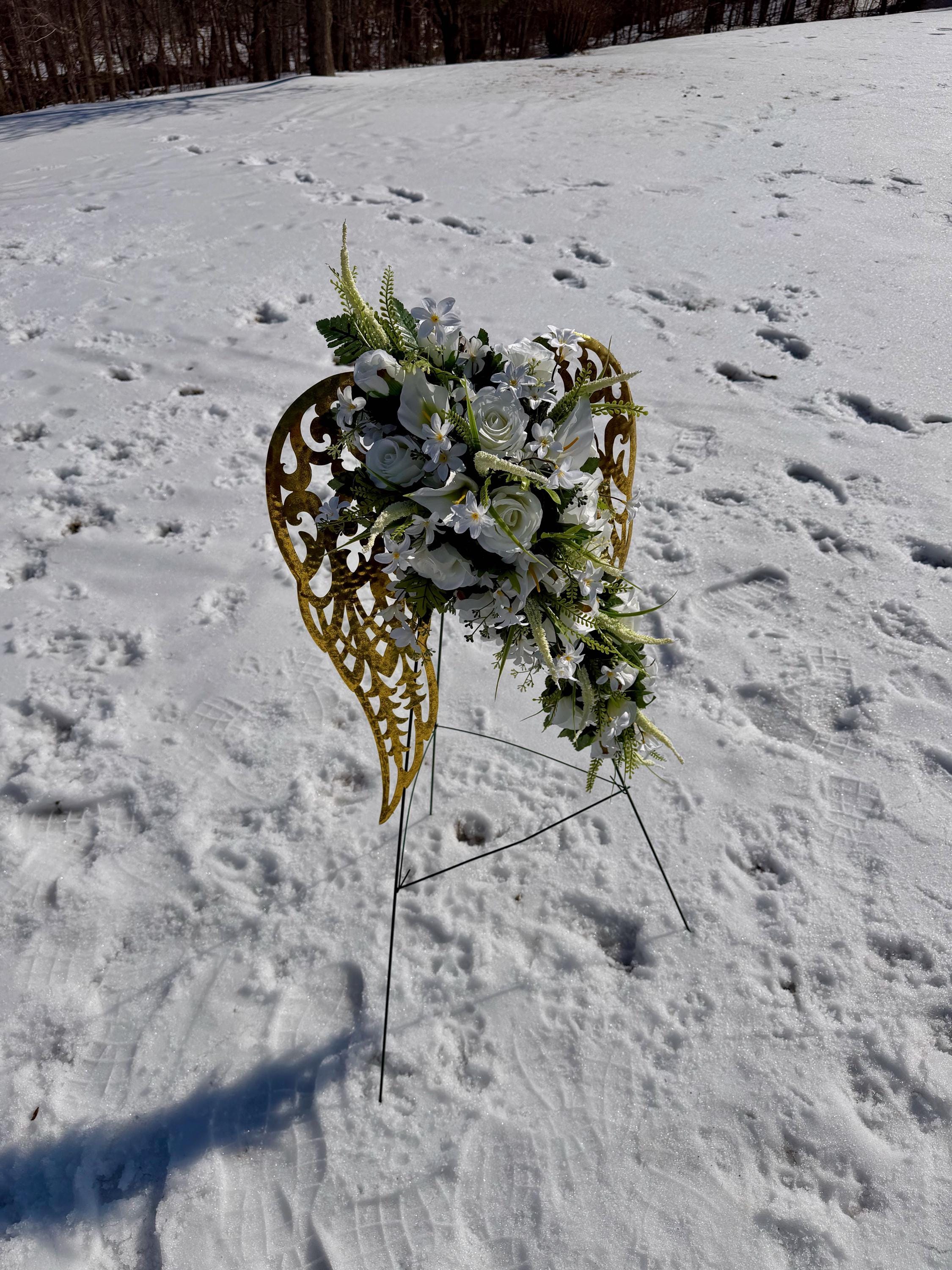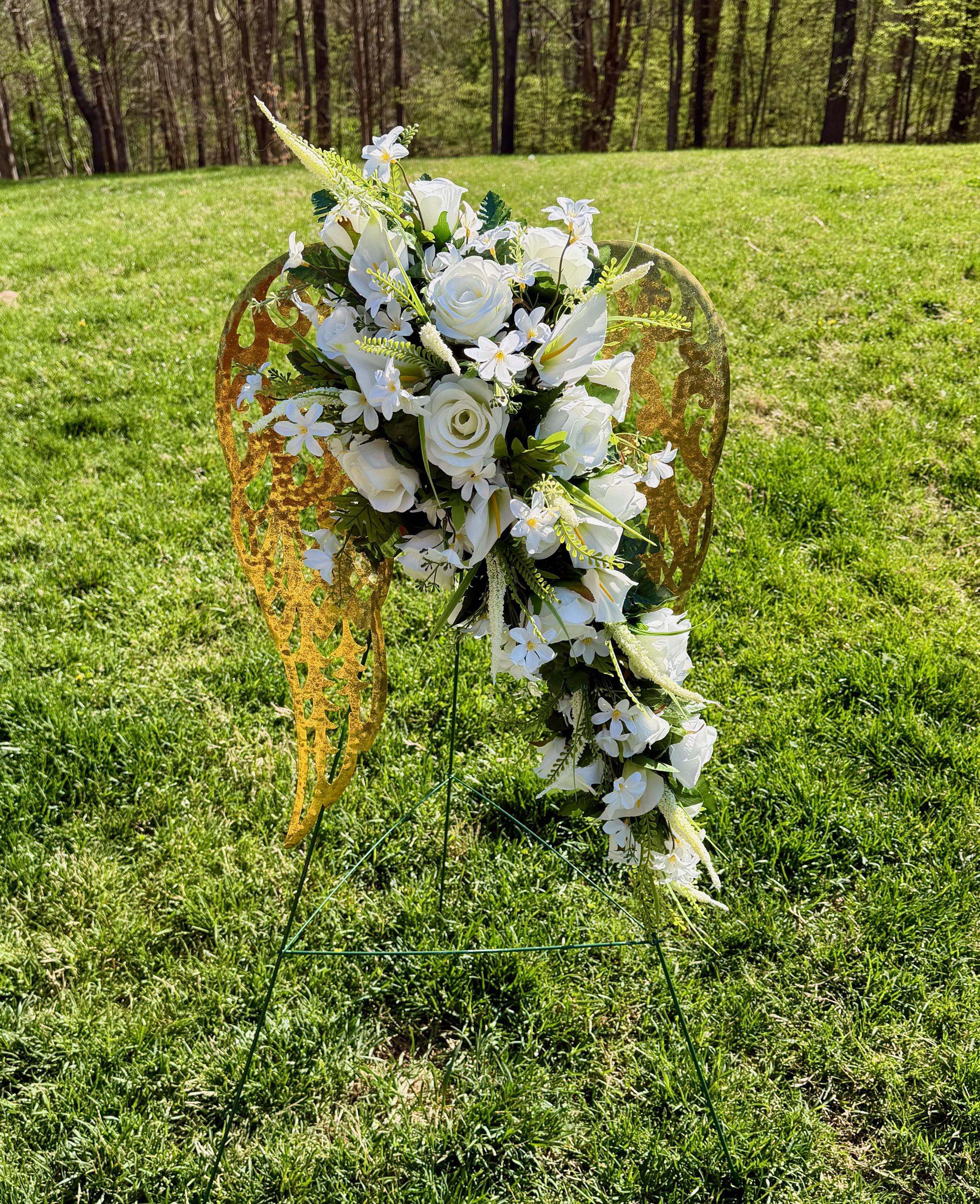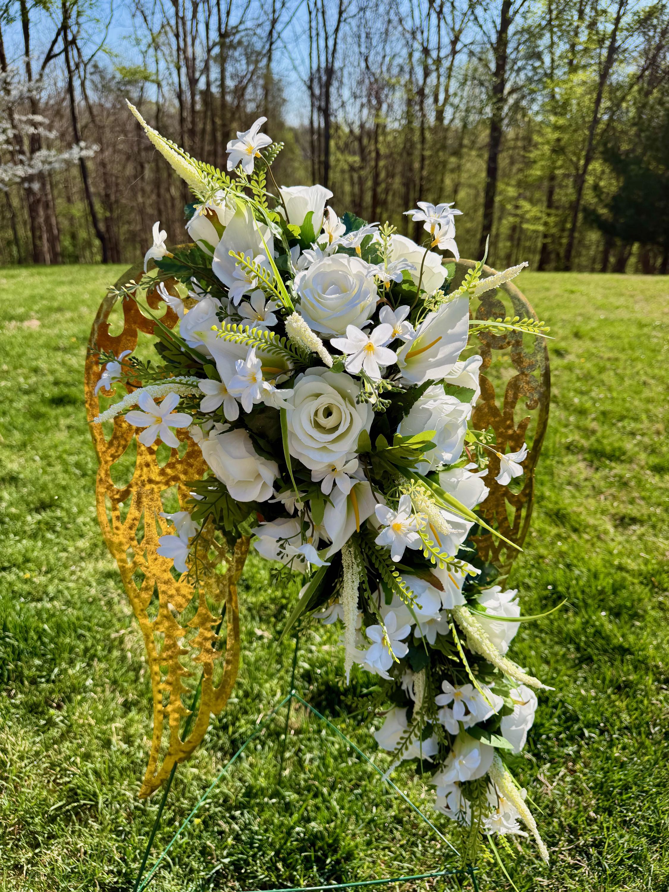 Gold Color Angel Wings Cemetery Arrangement, Memorial Flowers, Headstone Decorations,