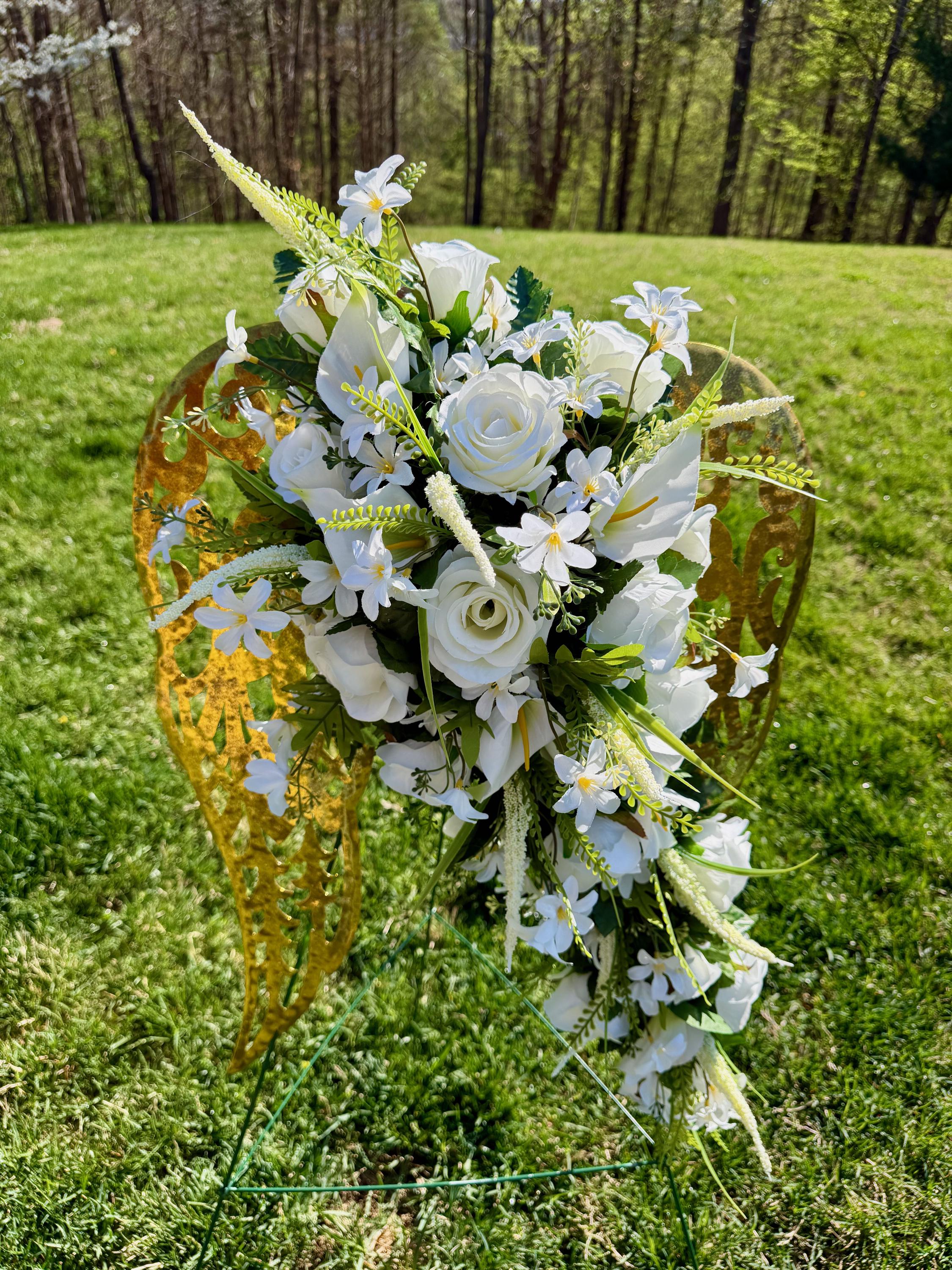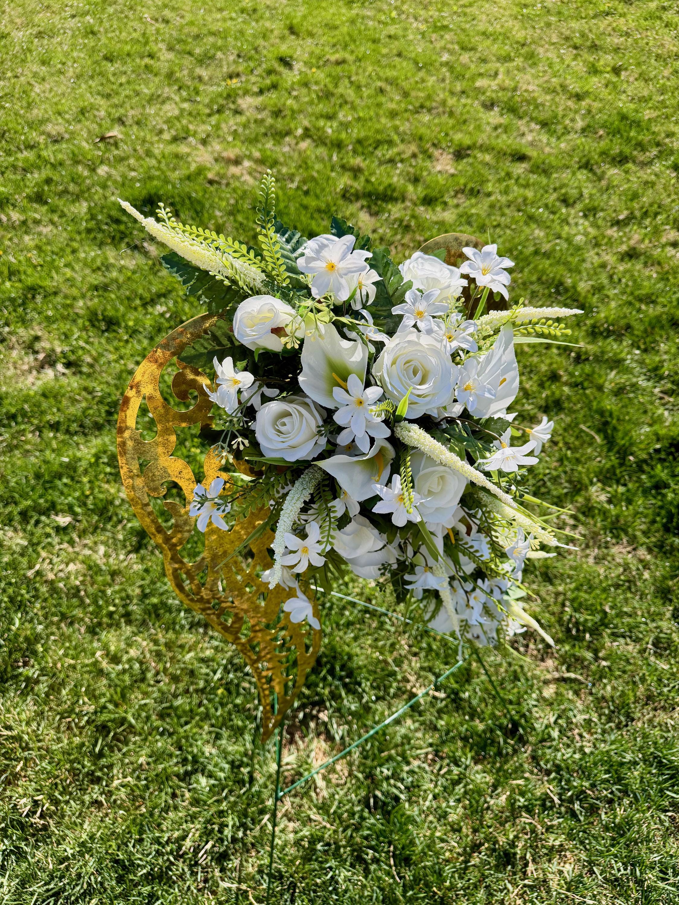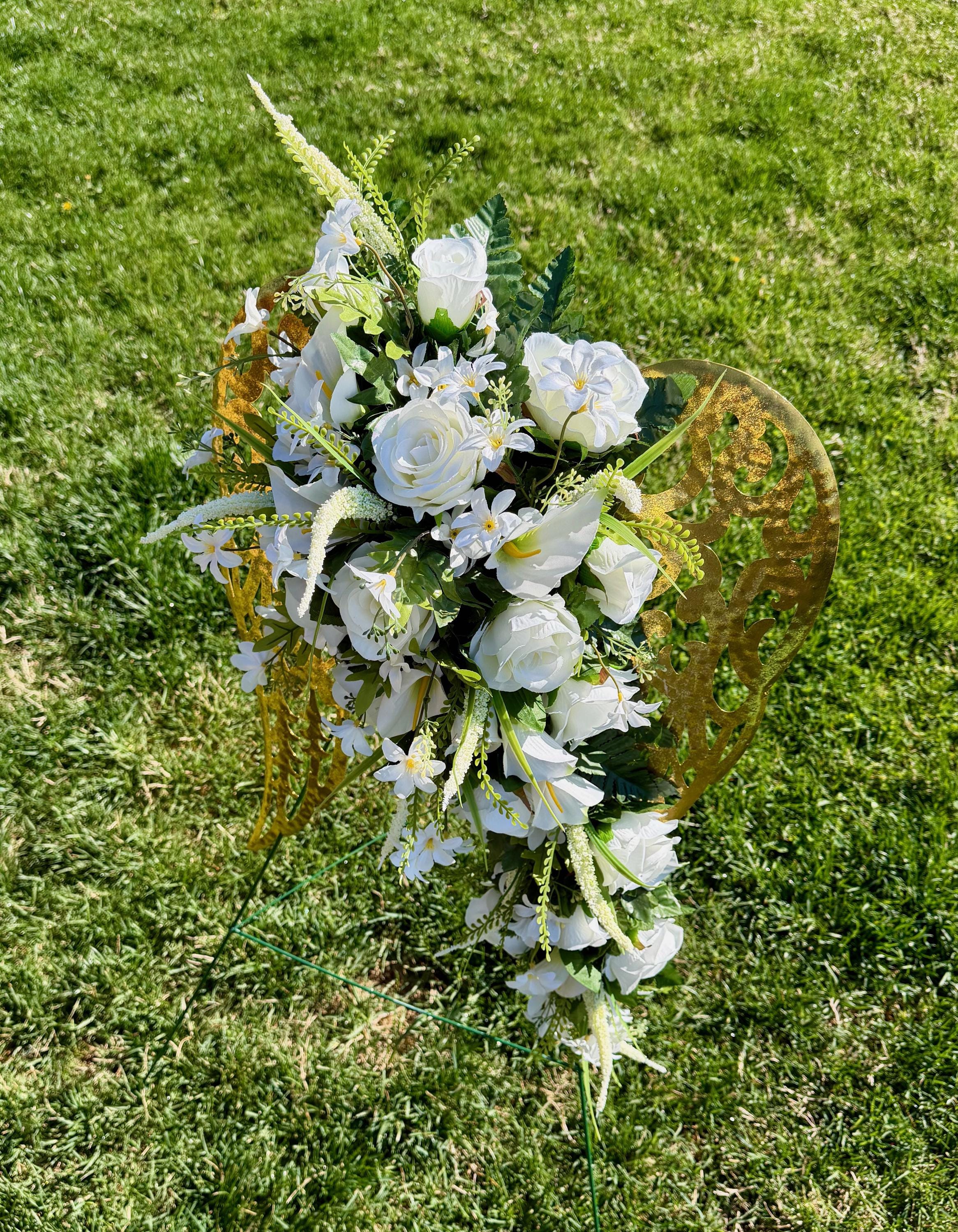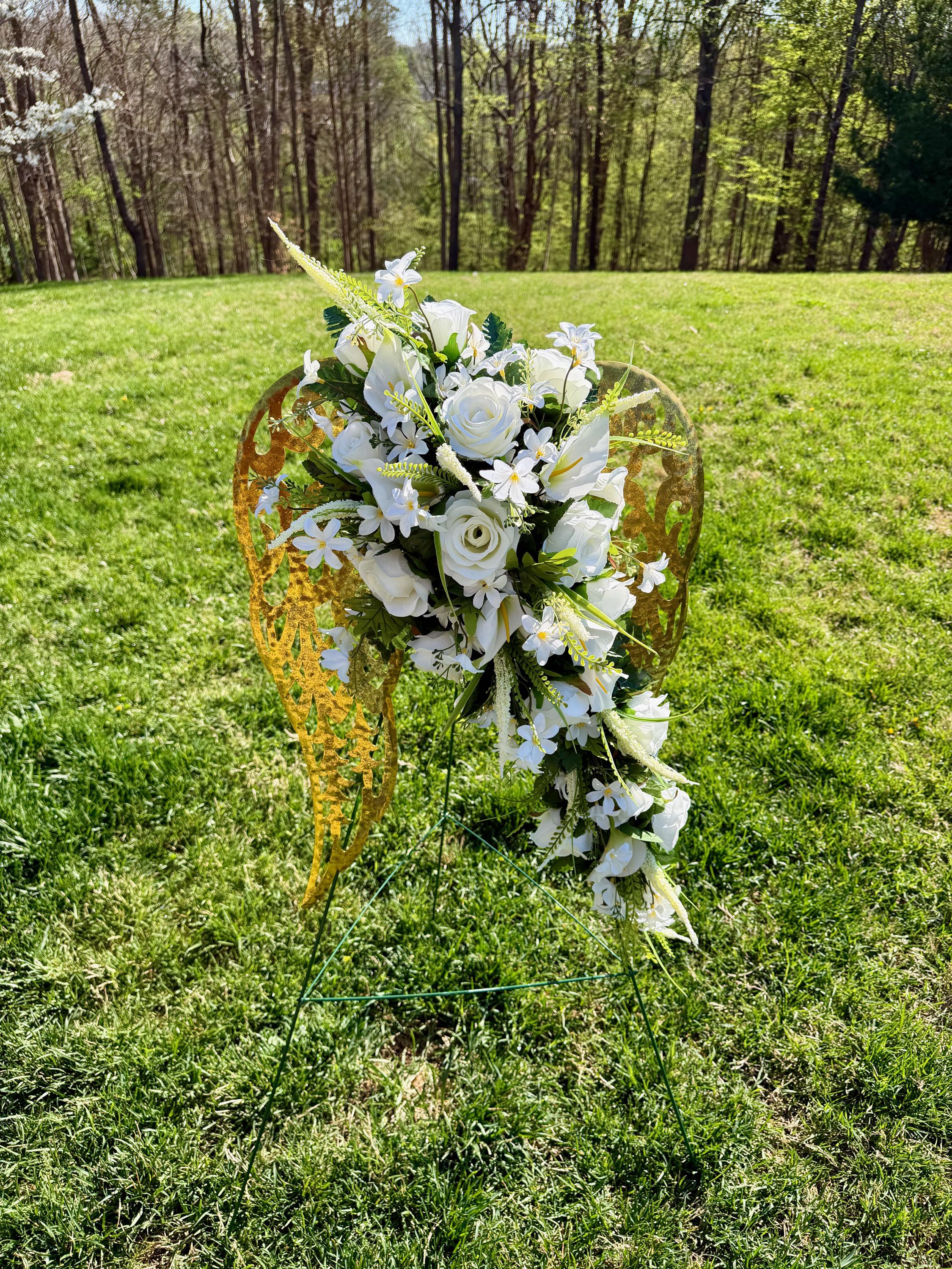Gold Color Angel Wings Cemetery Arrangement, Memorial Flowers, Headstone Decorations,