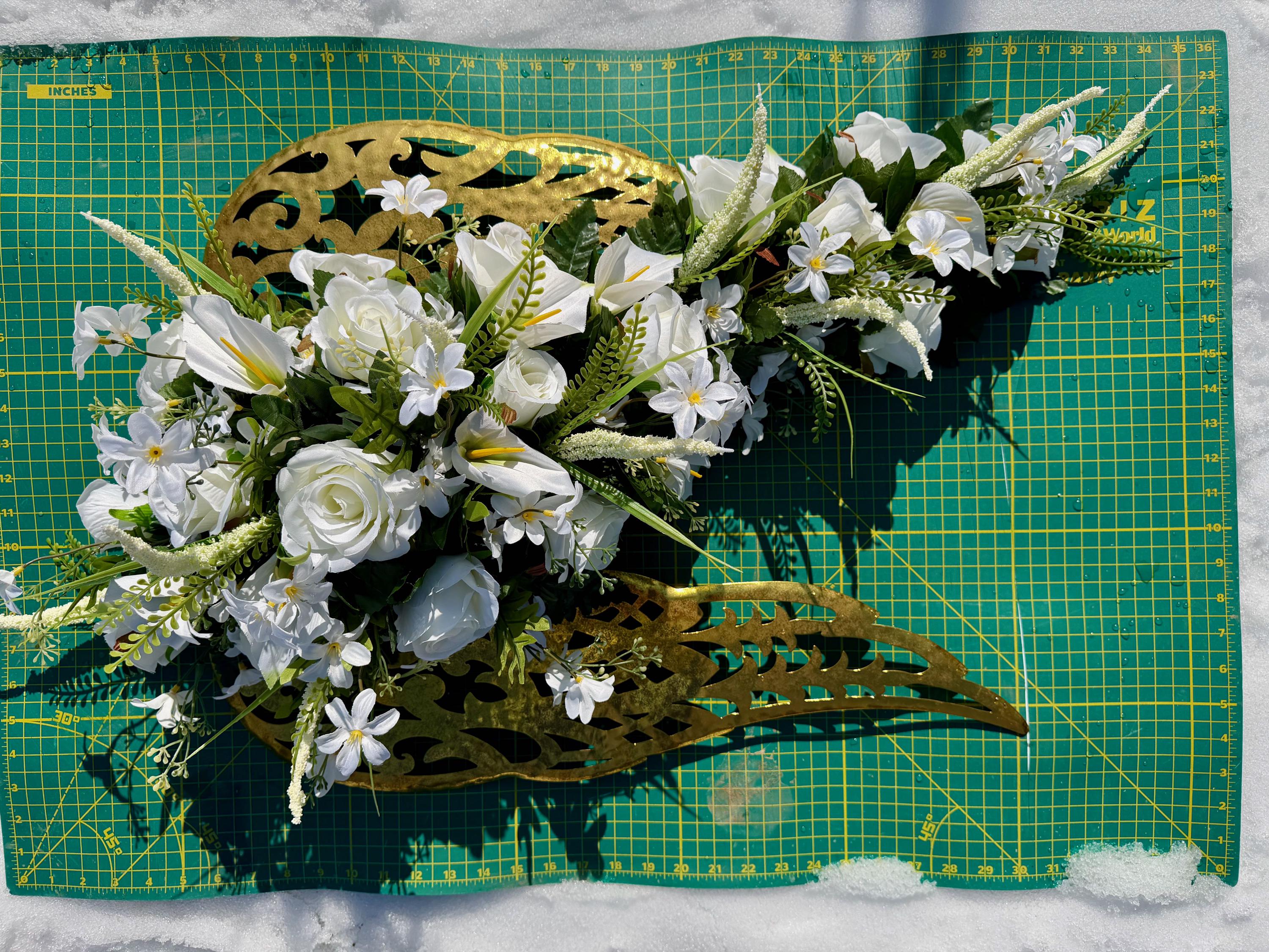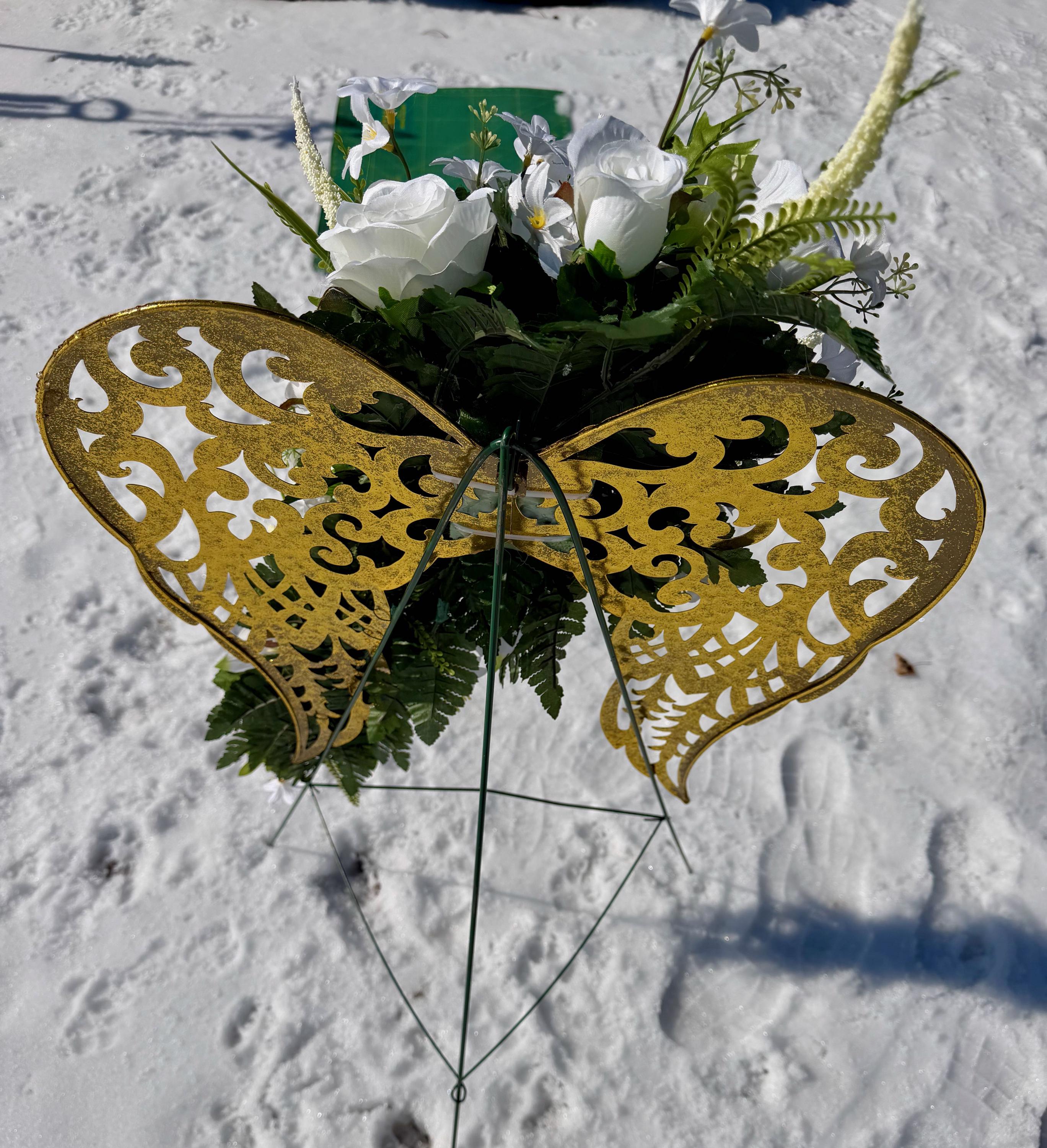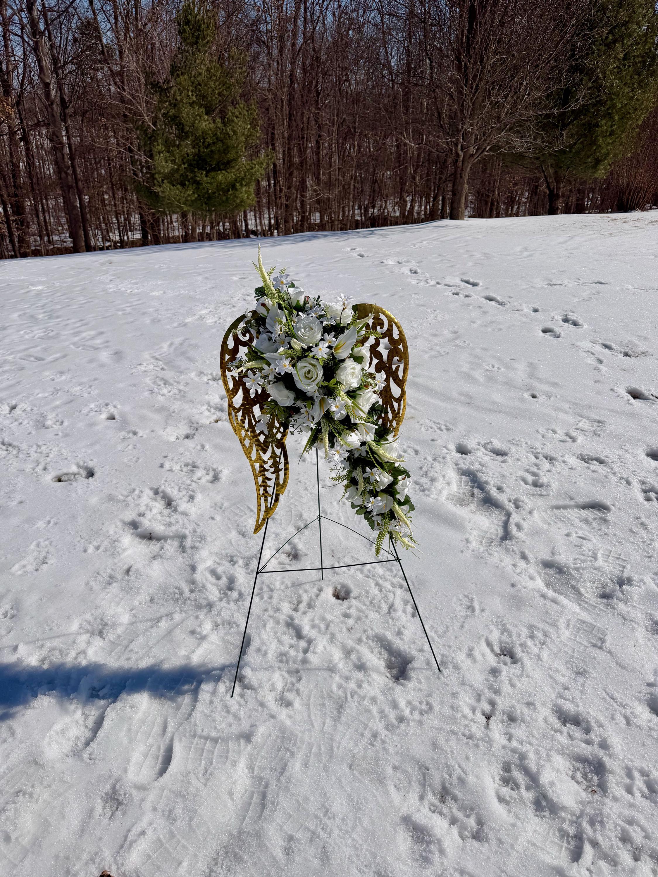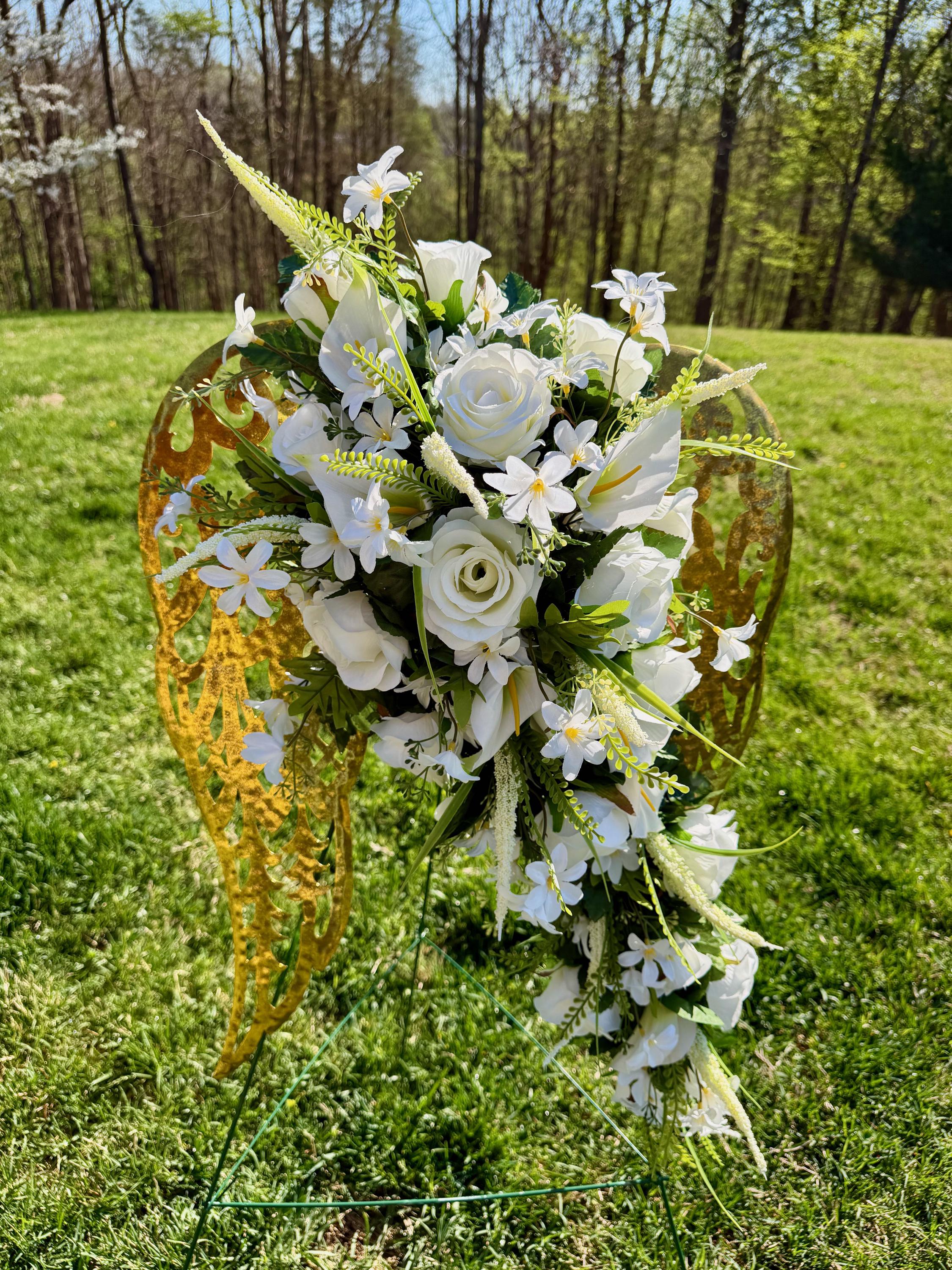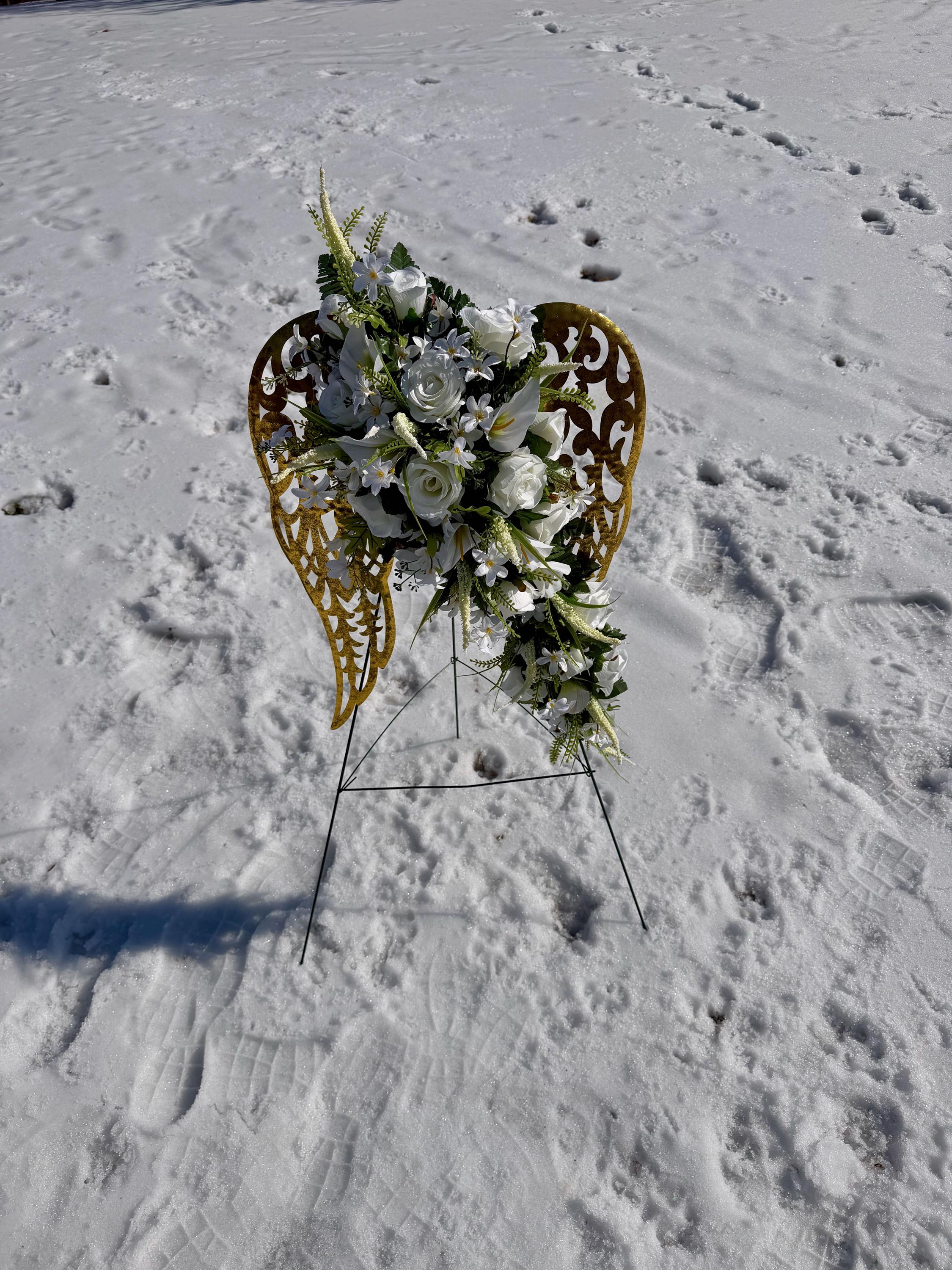 Gold Color Angel Wings Cemetery Arrangement, Memorial Flowers, Headstone Decorations,