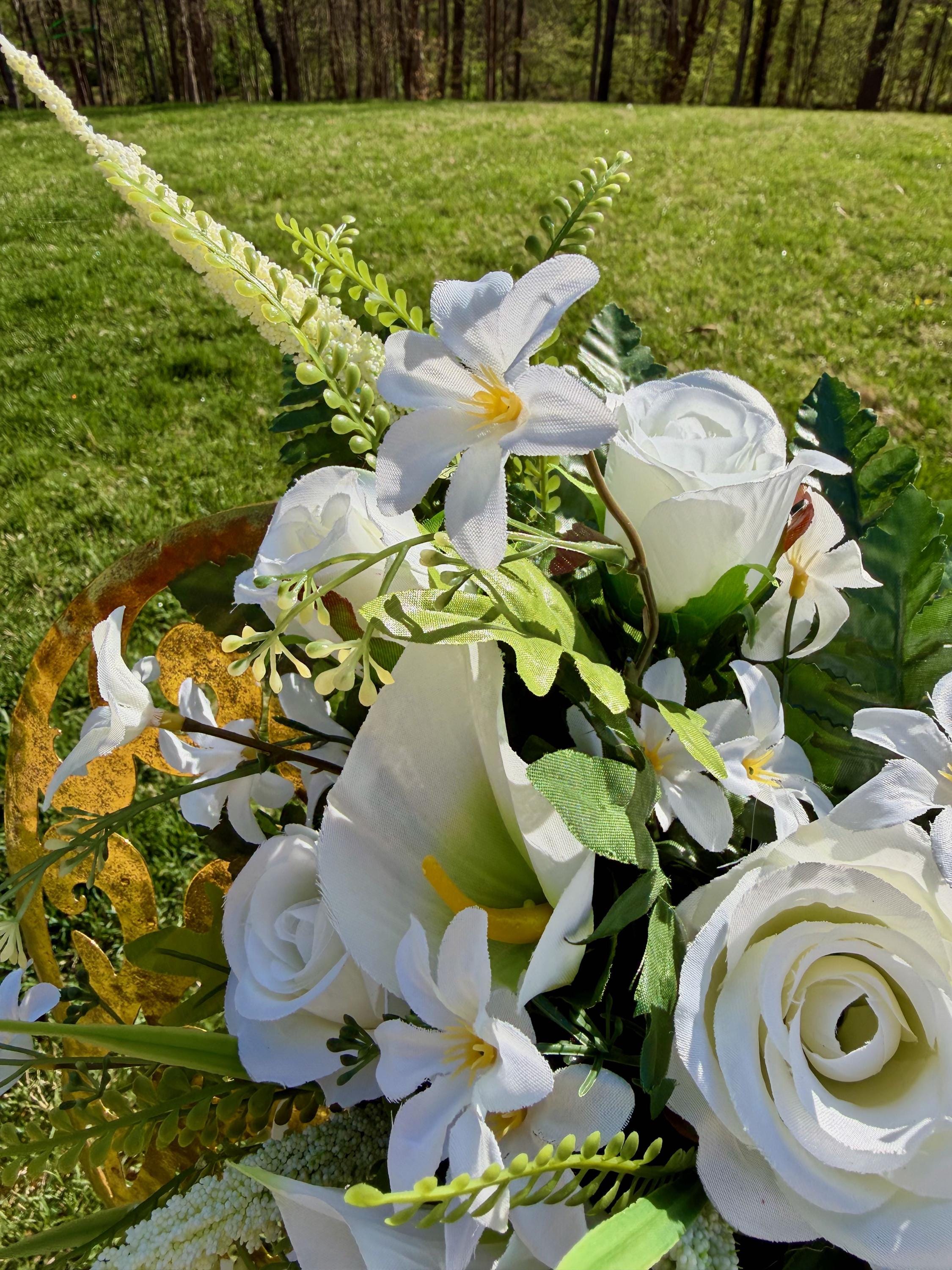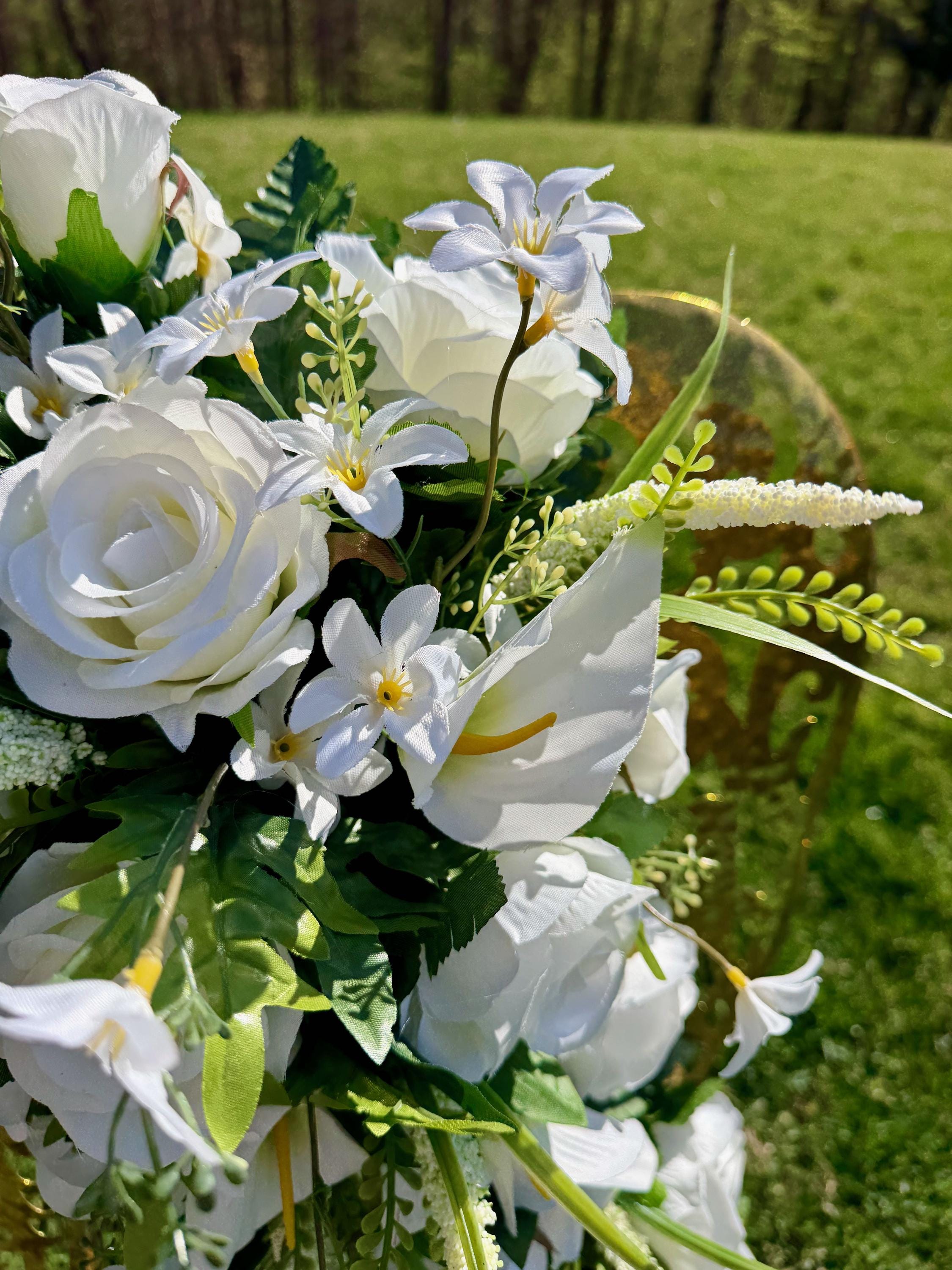 We’re a small, family-operated business consisting of myself, my husband, and my daughter. We personally manage every order and strive for excellent customer service. All our arrangements use high-quality silk flowers, though all silk blooms may fade over time. Each stem is glued into foam to withstand the elements. Designed by M&E uses only premium silks, and we put genuine care into every piece we create. Rest assured, the arrangement shown in our photos is exactly the one you’ll receive, as I design and assemble each one myself. If you’re searching for something unique or have a particular flower, color, or matching vases in mind, please contact me to discuss a custom order.