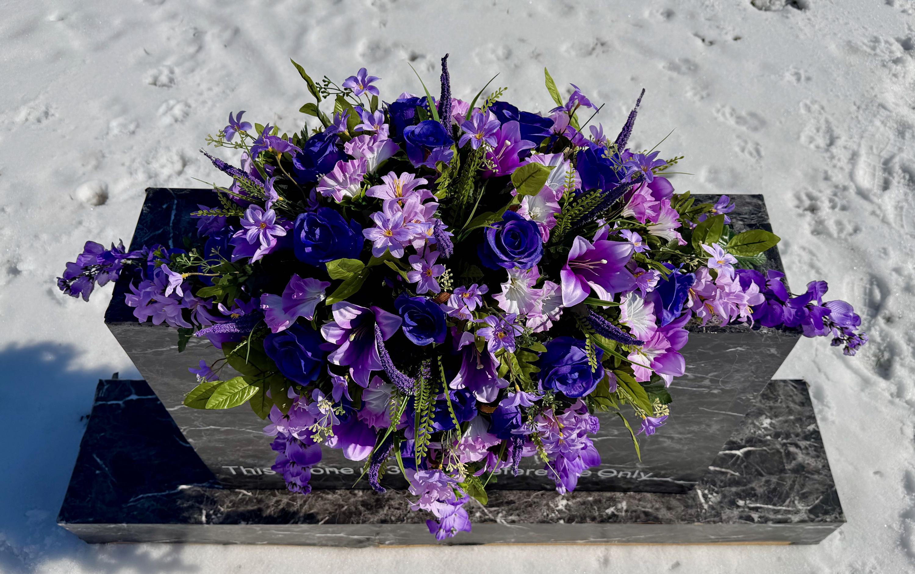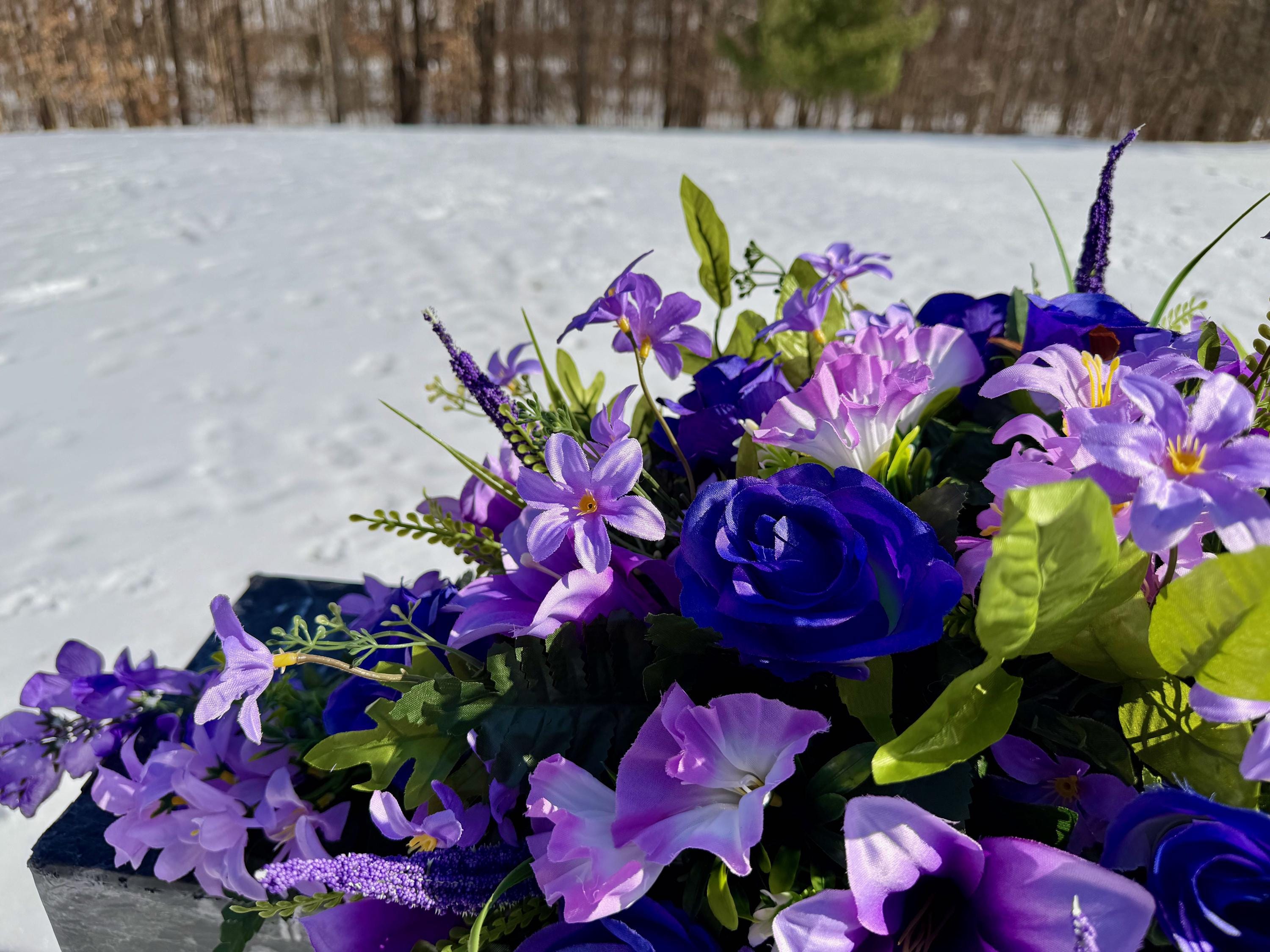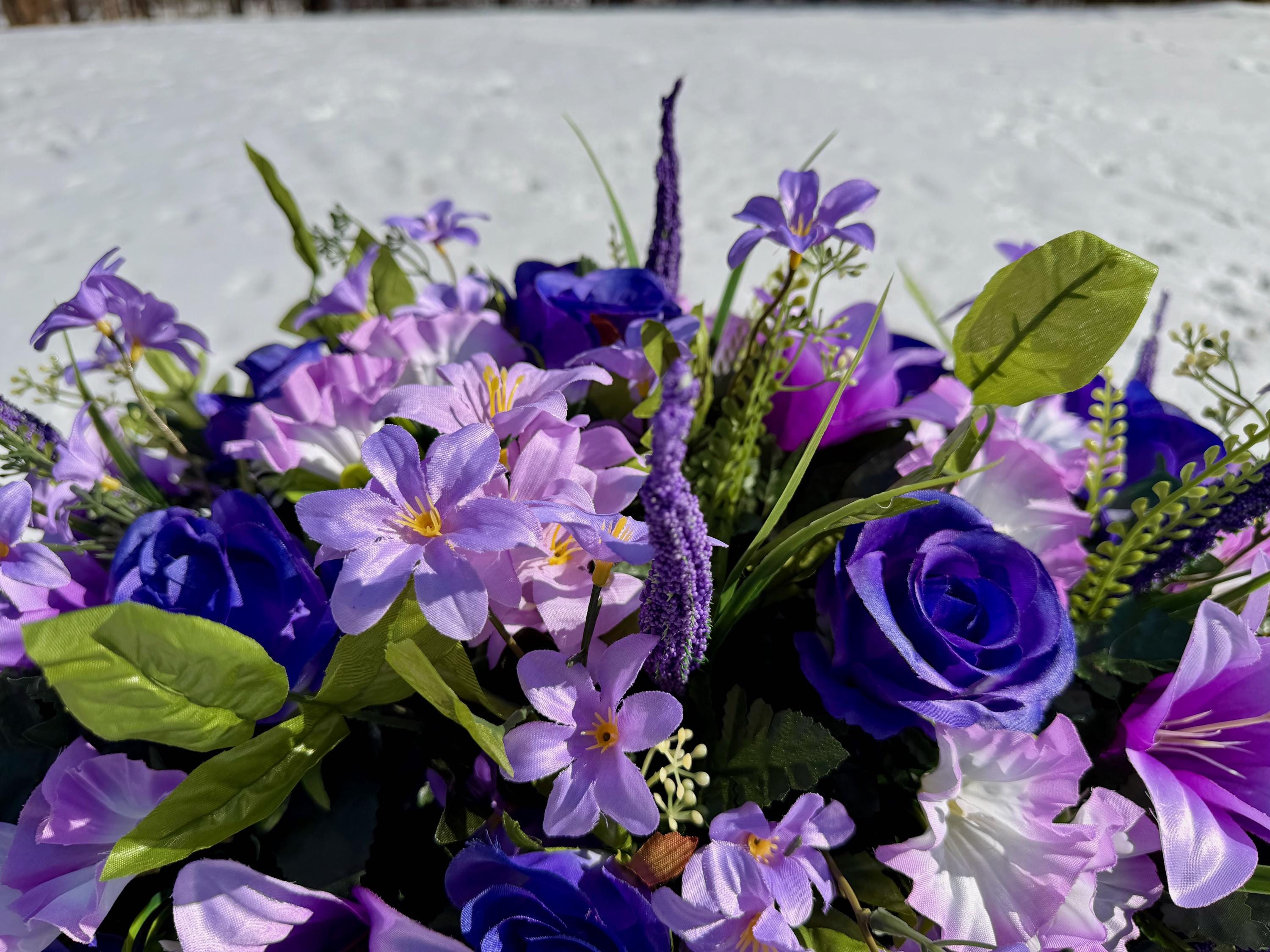 Large Lavender and Purple Quality Silk Flower Cemetery Saddle, Memorial Headstone Arrangement, Grave Flowers