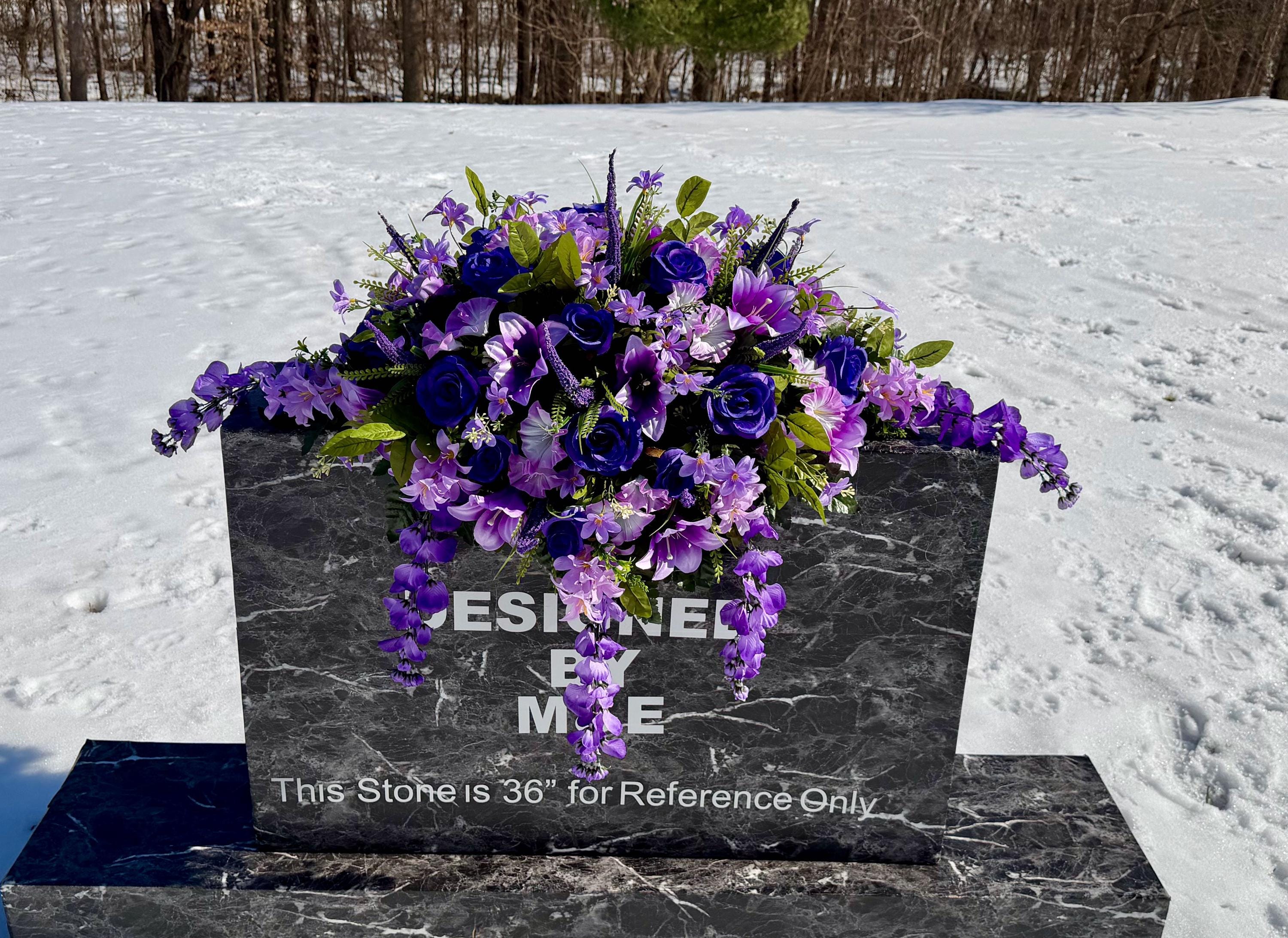 - Saddle arrangement photos are shown on either a 36” or 24” headstone only as examples.