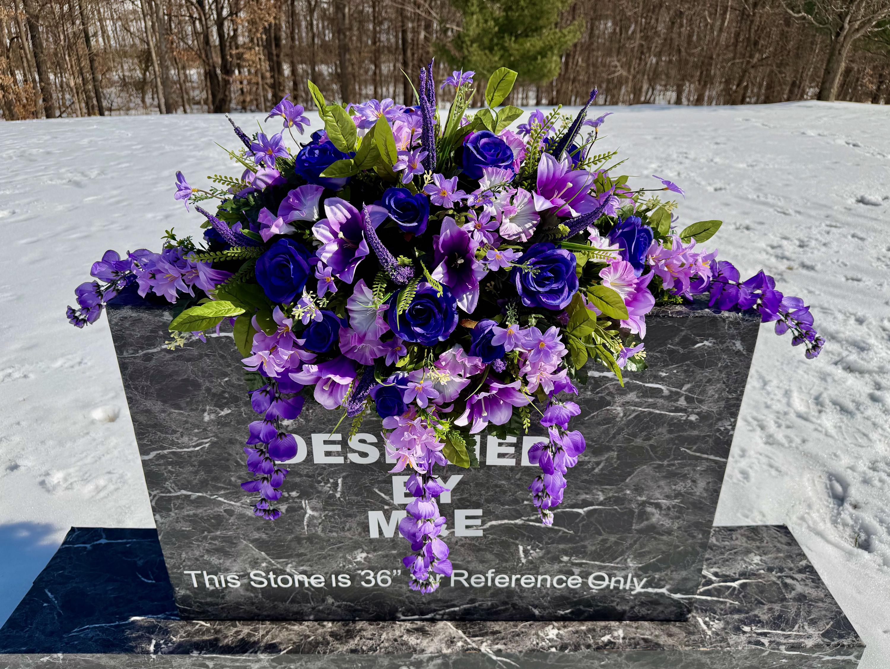 We’re a small, family-operated business consisting of myself, my husband, and my daughter. We personally manage every order and strive for excellent customer service. All our arrangements use high-quality silk flowers, though all silk blooms may fade over time. Each stem is glued into foam to withstand the elements. Designed by M&E uses only premium silks, and we put genuine care into every piece we create. Rest assured, the arrangement shown in our photos is exactly the one you’ll receive, as I design and assemble each one myself. If you’re searching for something unique or have a particular flower, color, or matching vases in mind, please contact me to discuss a custom order.