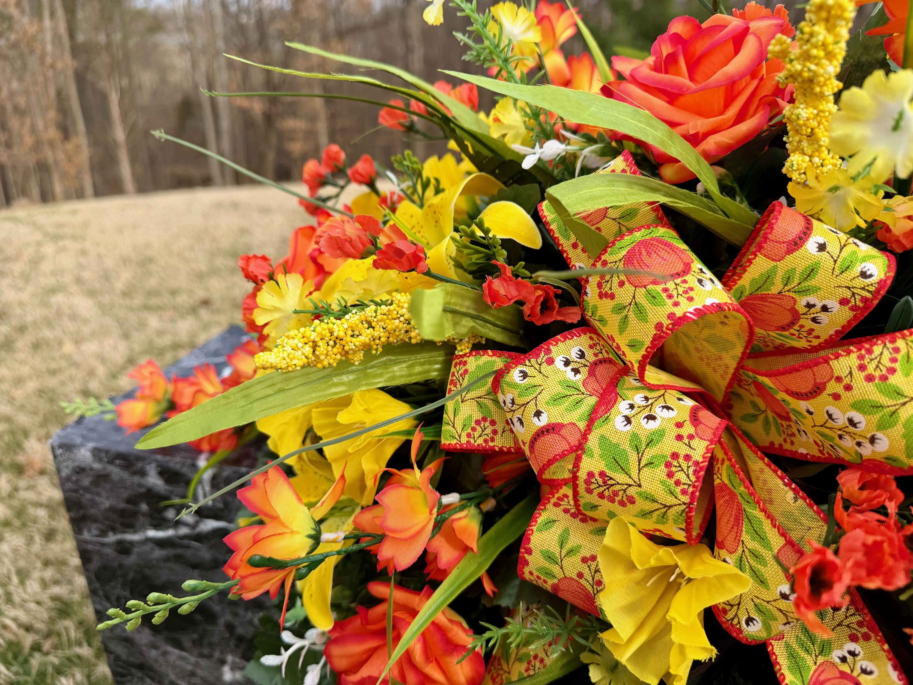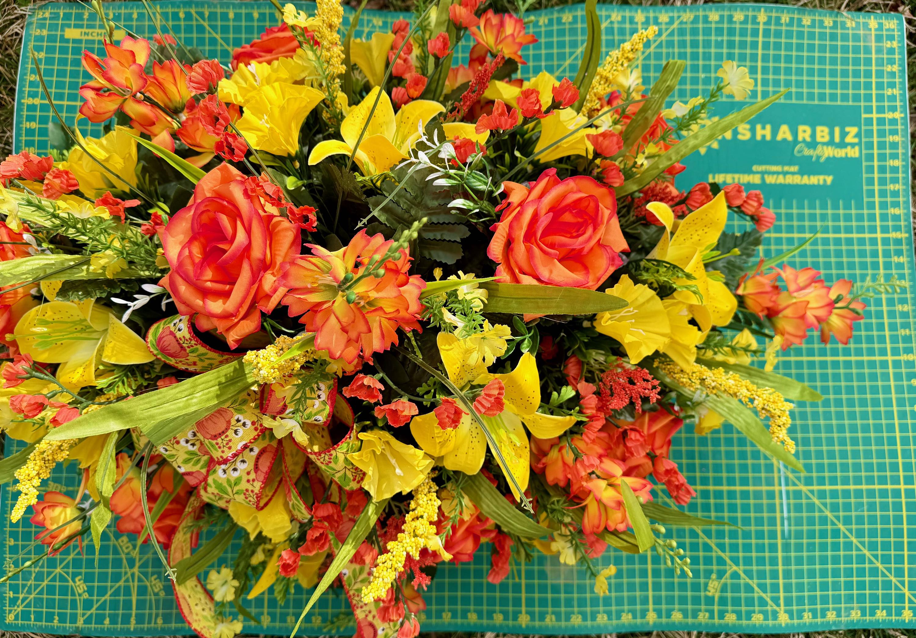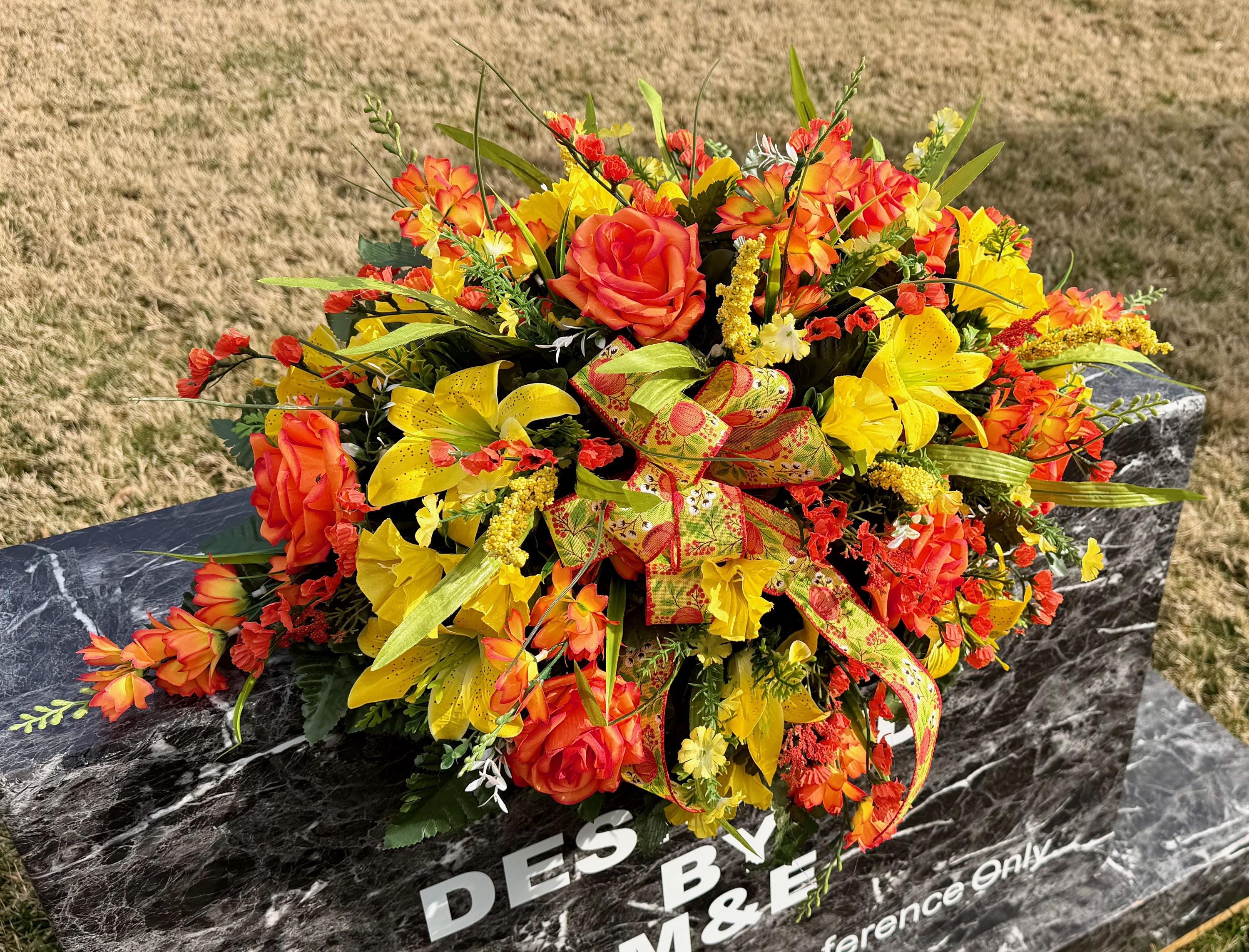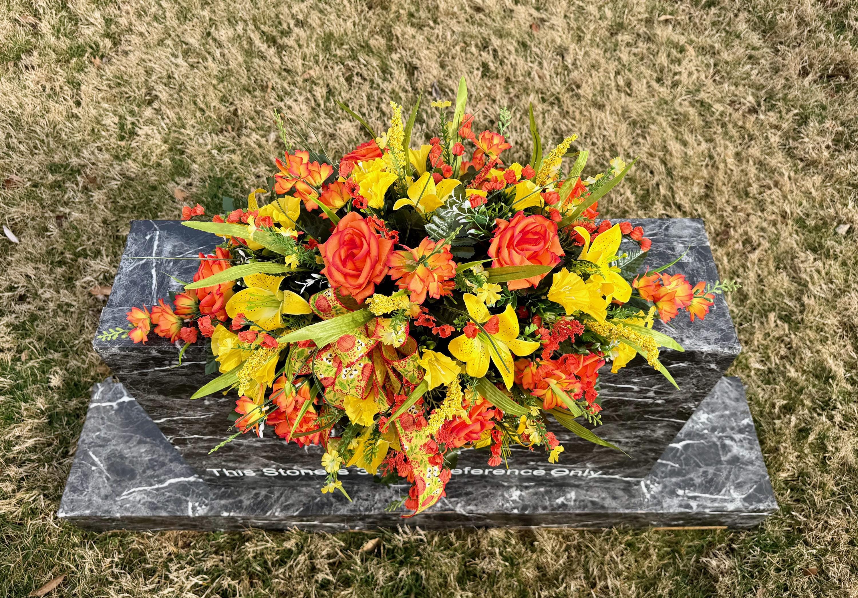 Yellow and Orange Bright Cemetery Saddle, Quality Flowers, Grave Decoration, Memorial Flowers