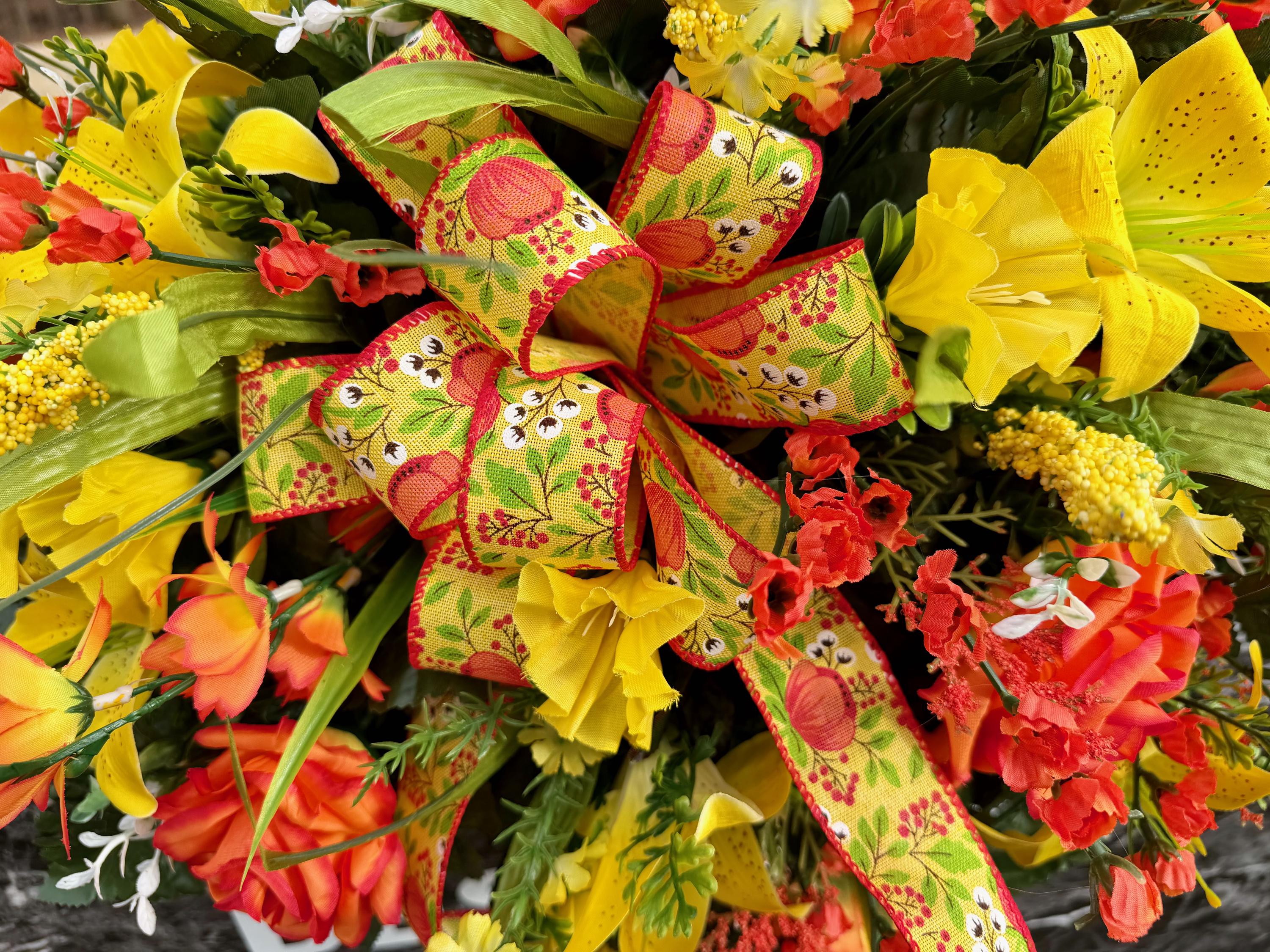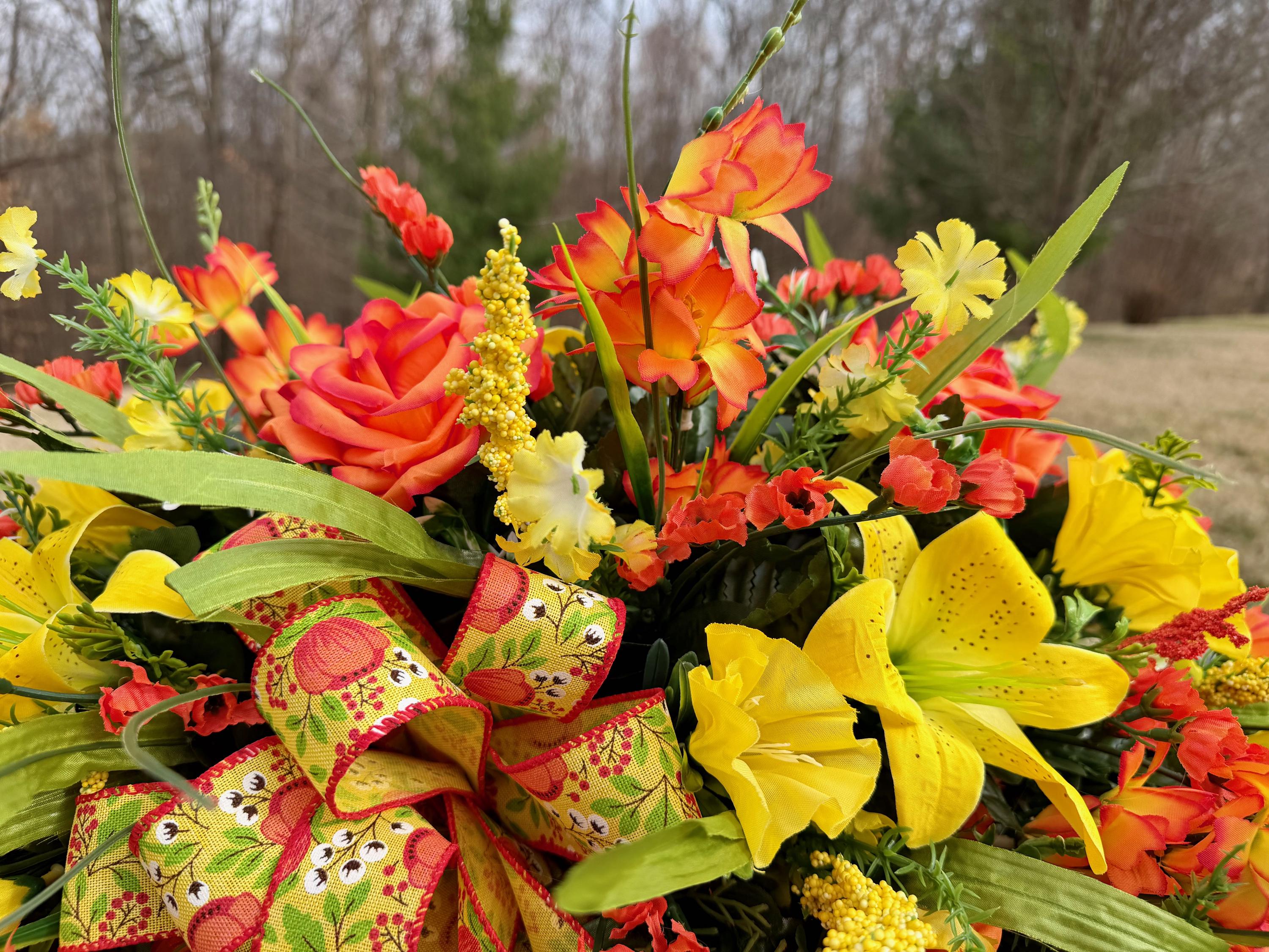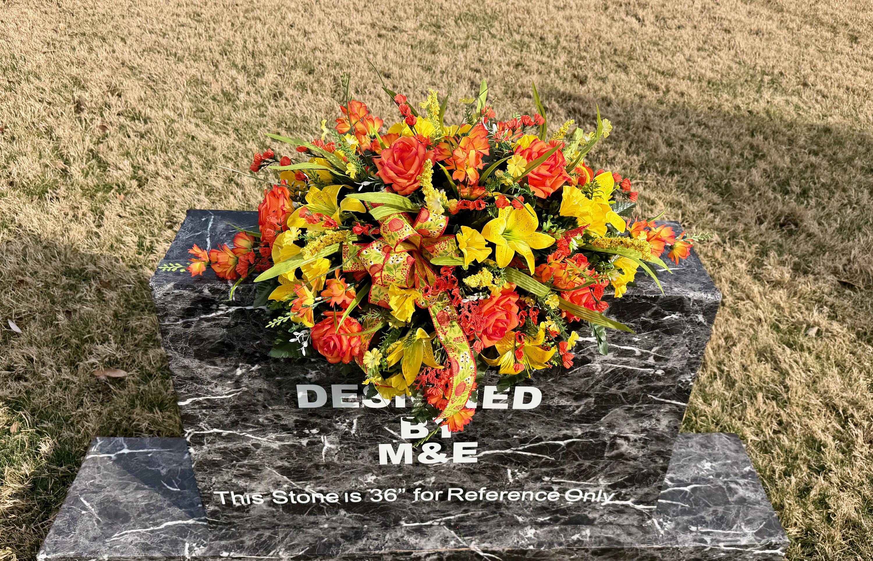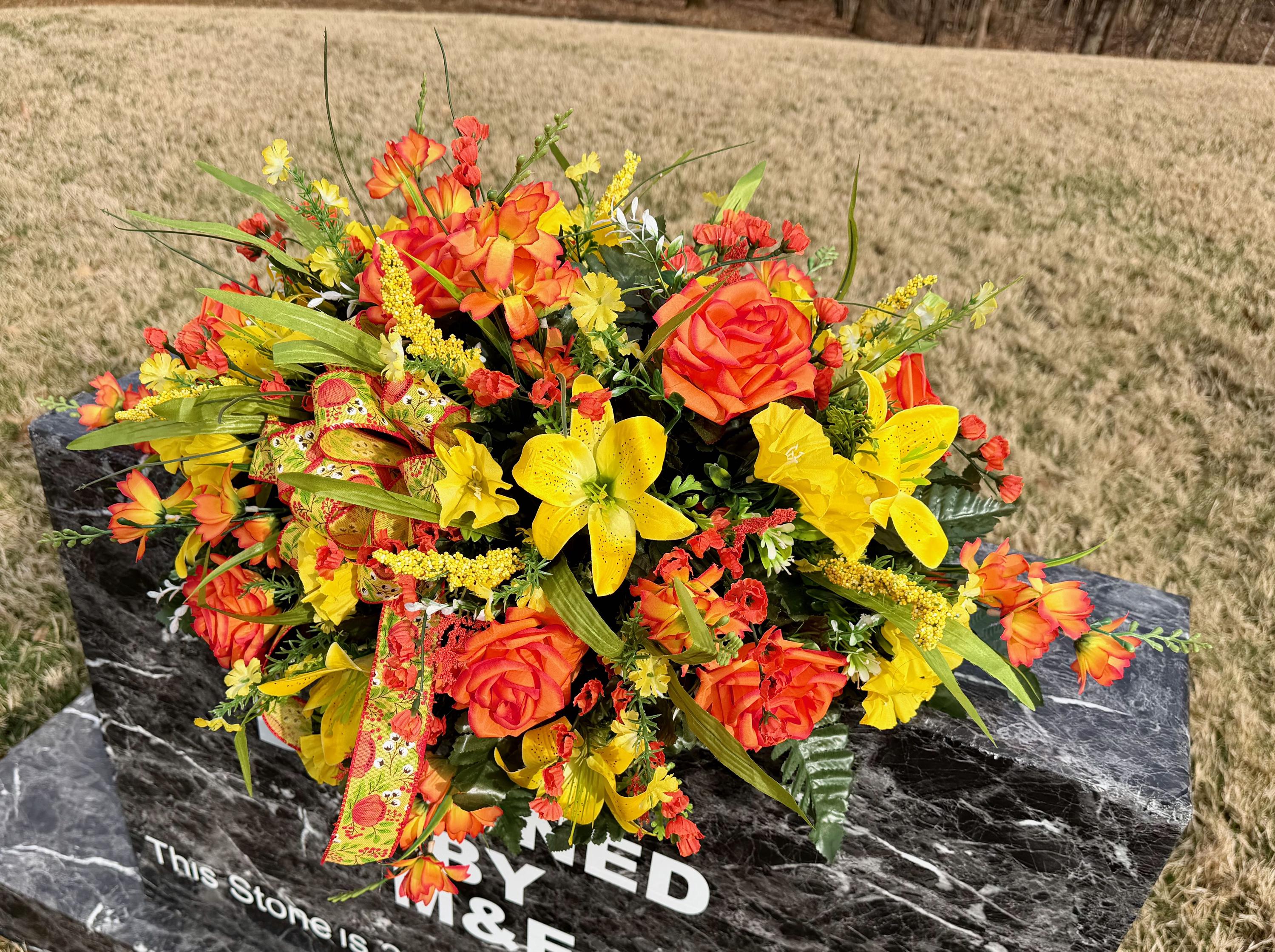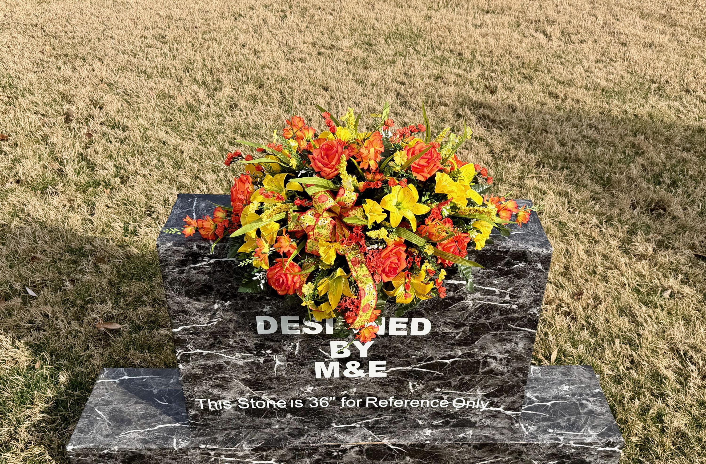 Yellow and Orange Bright Cemetery Saddle, Quality Flowers, Grave Decoration, Memorial Flowers