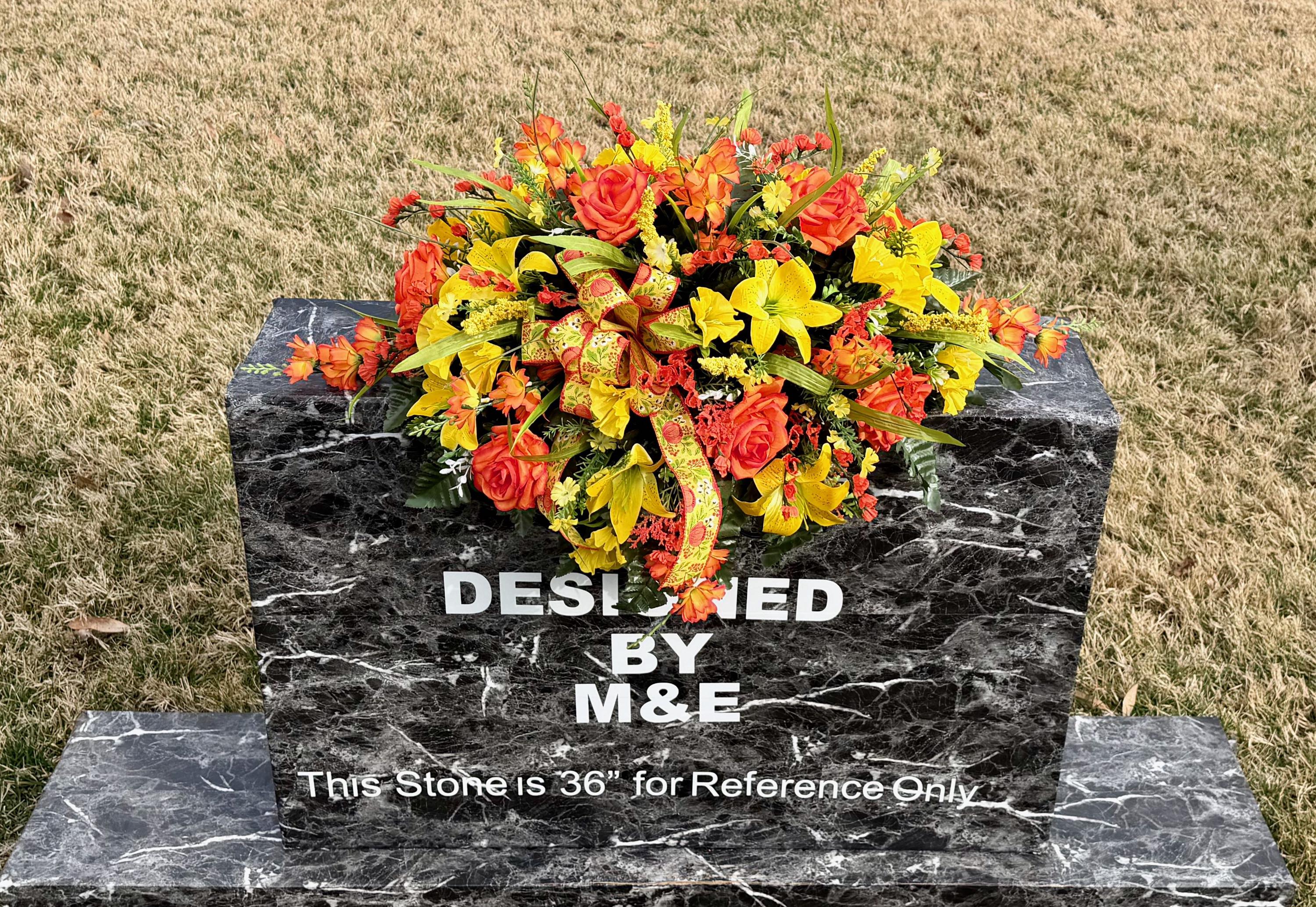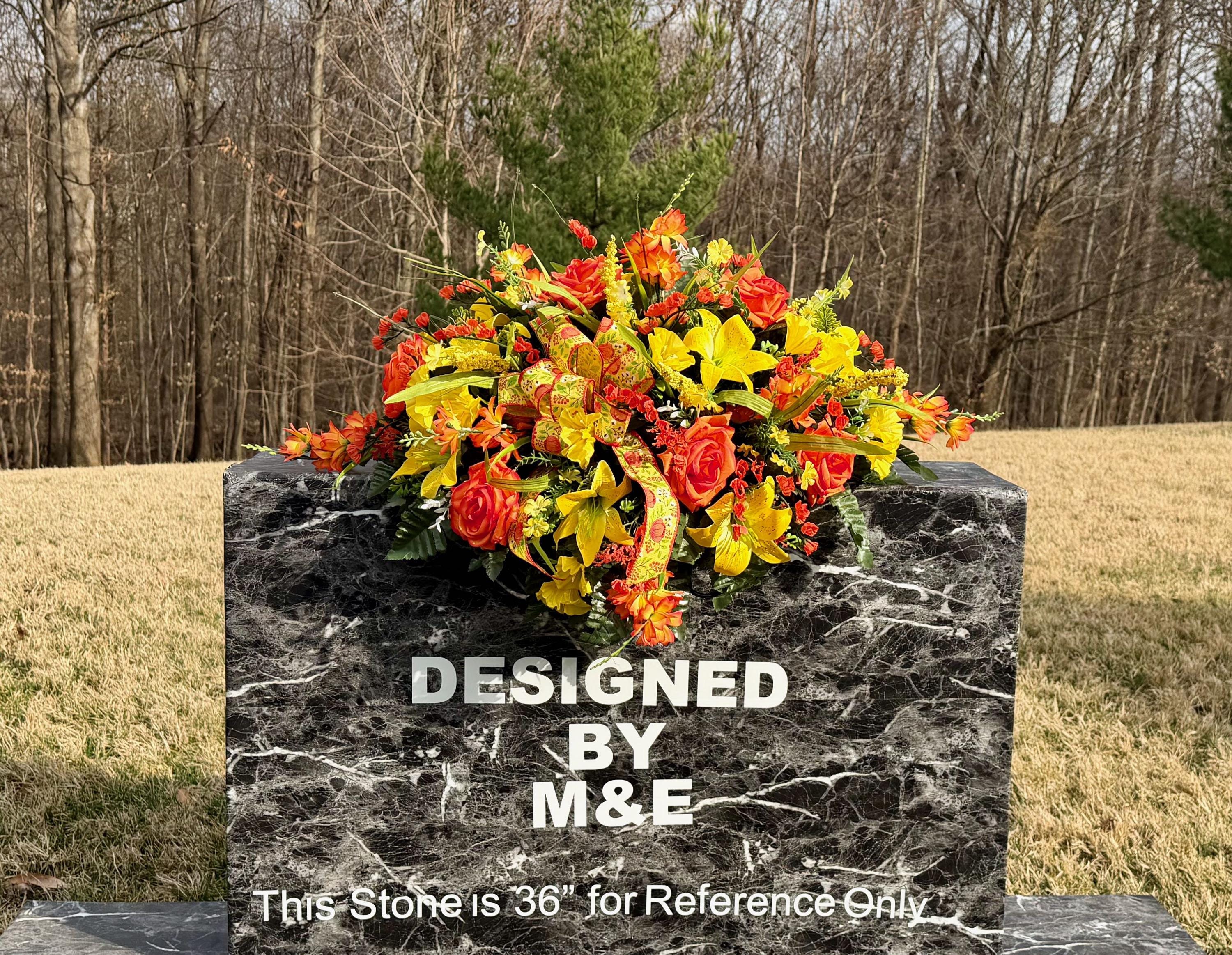 We’re a small, family-operated business consisting of myself, my husband, and my daughter. We personally manage every order and strive for excellent customer service. All our arrangements use high-quality silk flowers, though all silk blooms may fade over time. Each stem is glued into foam to withstand the elements. Designed by M&E uses only premium silks, and we put genuine care into every piece we create. Rest assured, the arrangement shown in our photos is exactly the one you’ll receive, as I design and assemble each one myself. If you’re searching for something unique or have a particular flower, color, or matching vases in mind, please contact me to discuss a custom order.