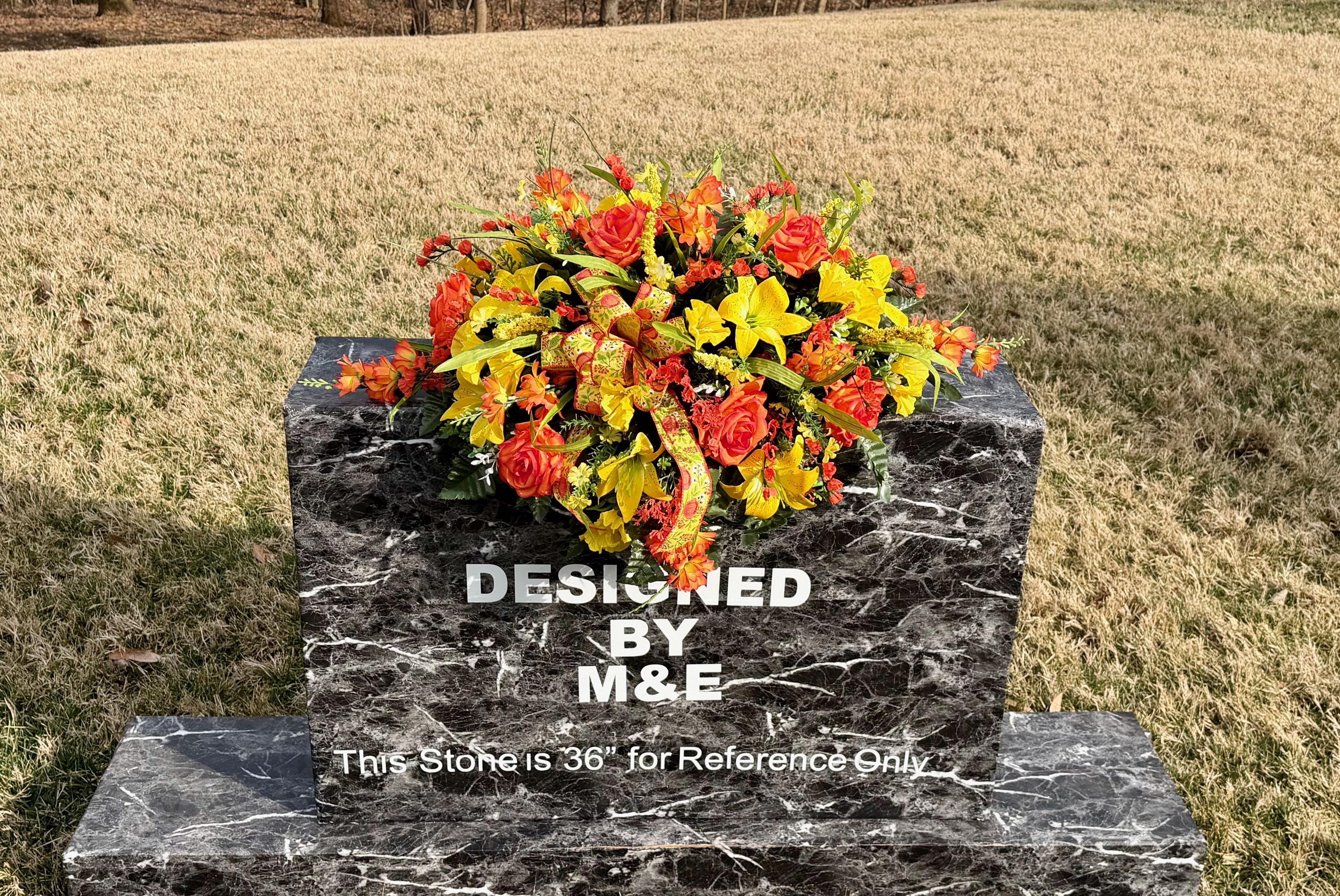 - Saddle arrangement photos are shown on either a 36” or 24” headstone only as examples.