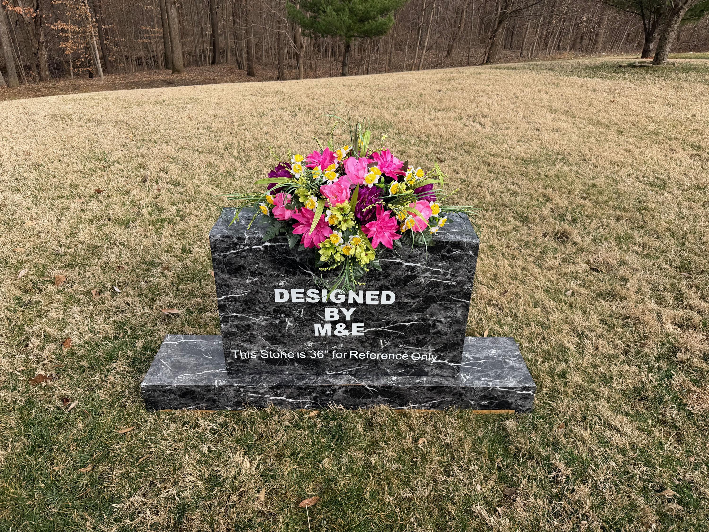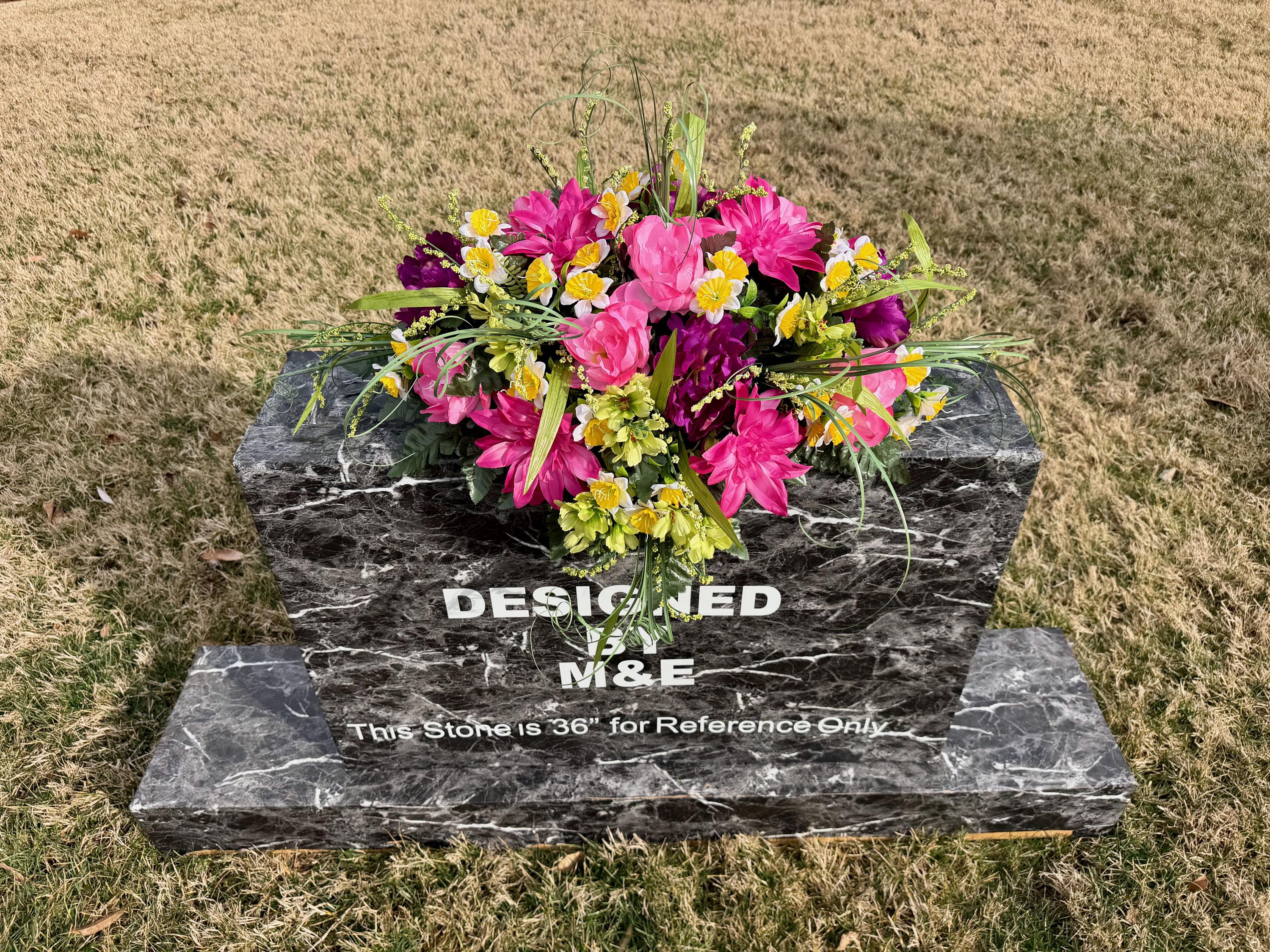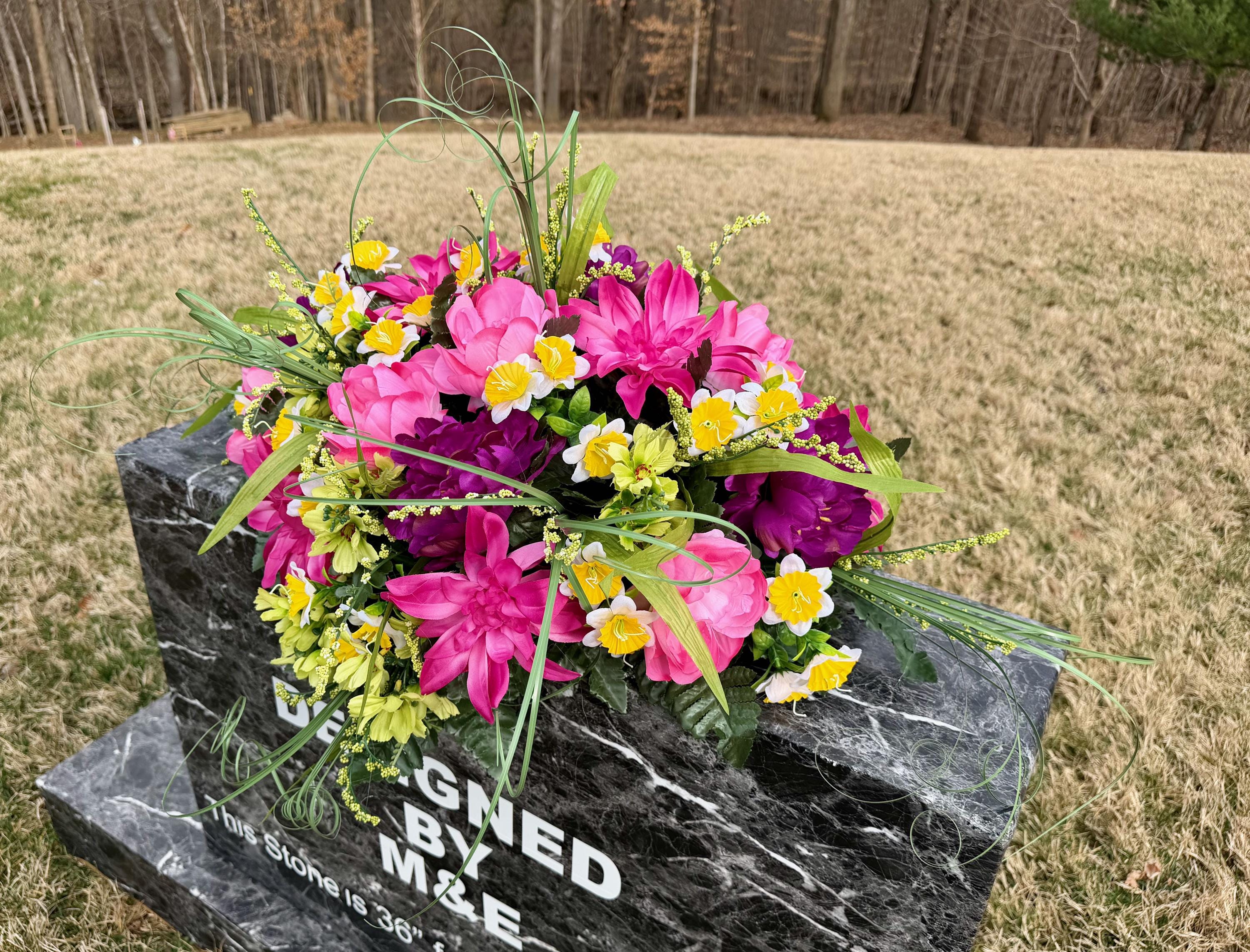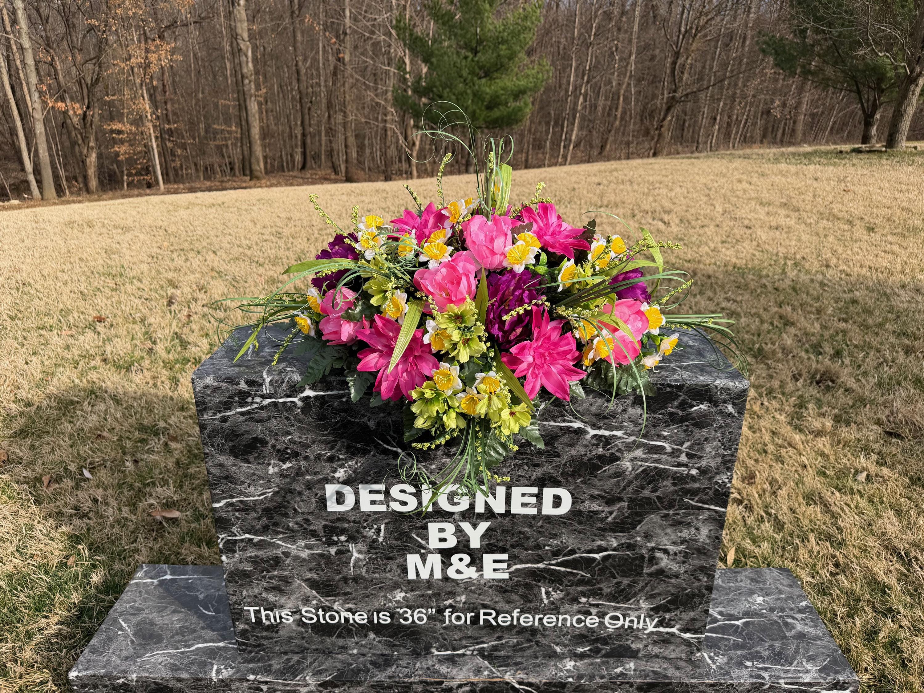 We’re a small, family-operated business consisting of myself, my husband, and my daughter. We personally manage every order and strive for excellent customer service. All our arrangements use high-quality silk flowers, though all silk blooms may fade over time. Each stem is glued into foam to withstand the elements. Designed by M&E uses only premium silks, and we put genuine care into every piece we create. Rest assured, the arrangement shown in our photos is exactly the one you’ll receive, as I design and assemble each one myself. If you’re searching for something unique or have a particular flower, color, or matching vases in mind, please contact me to discuss a custom order.