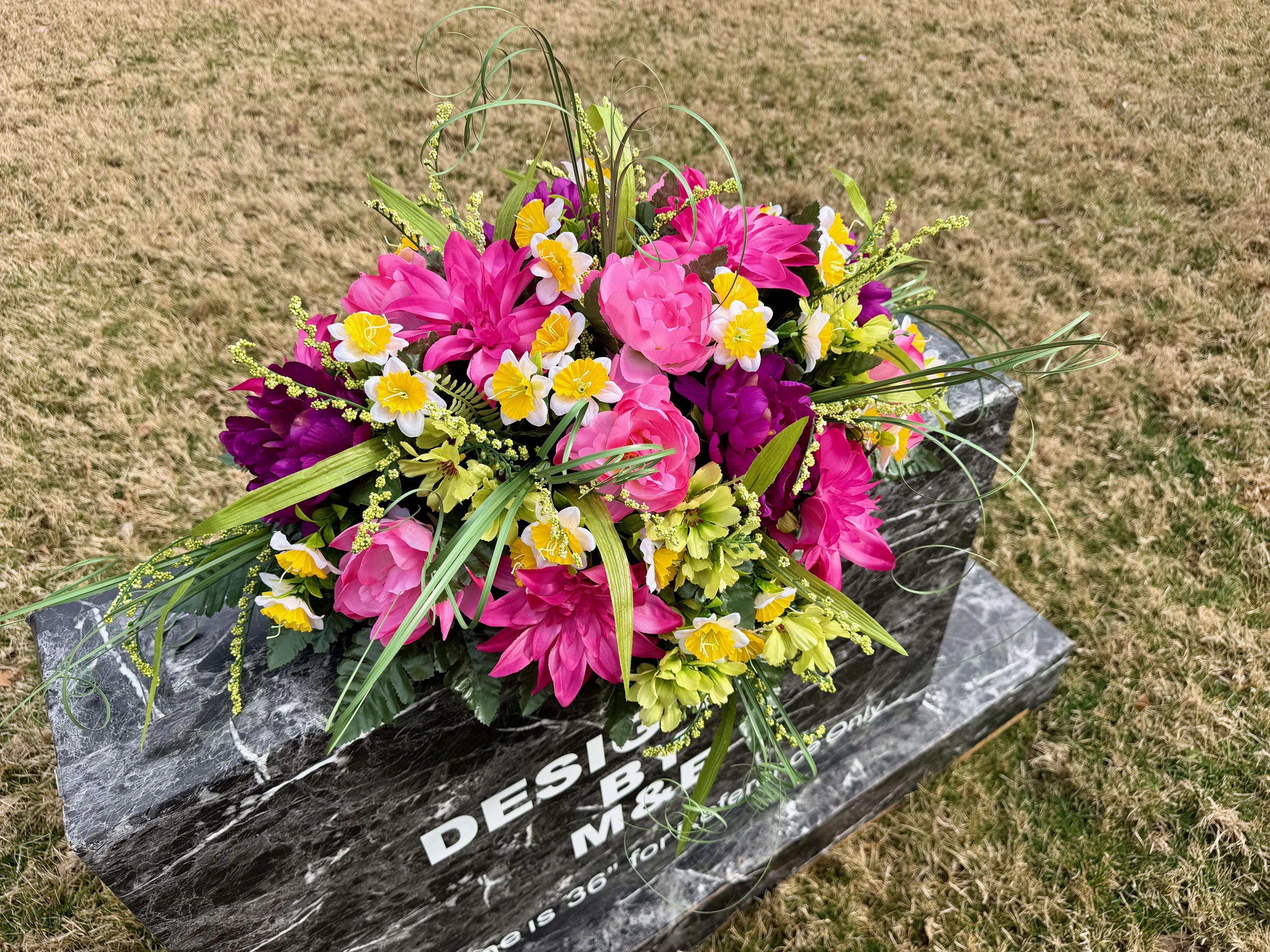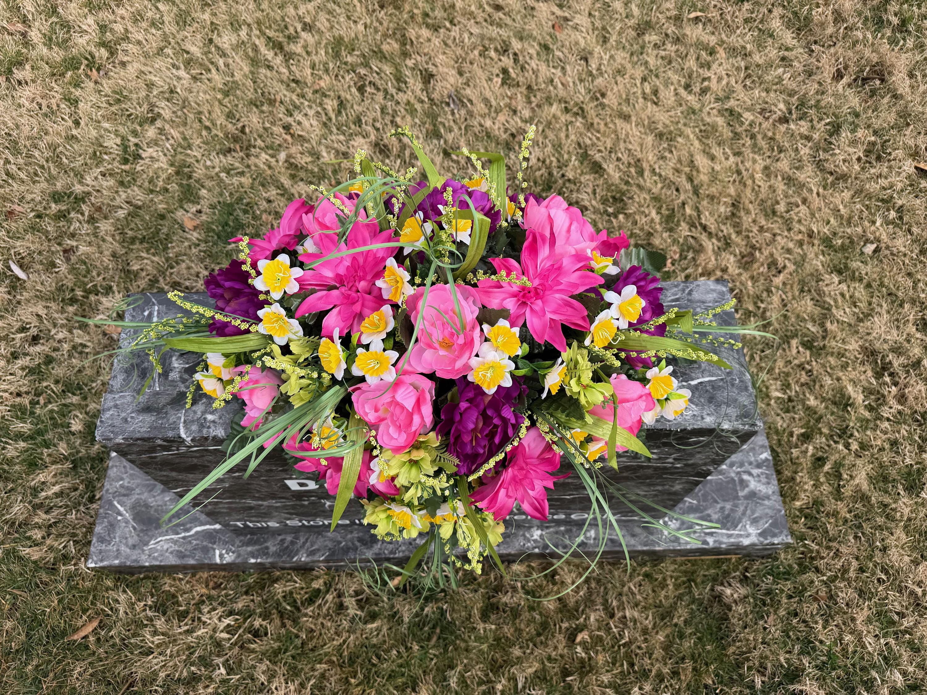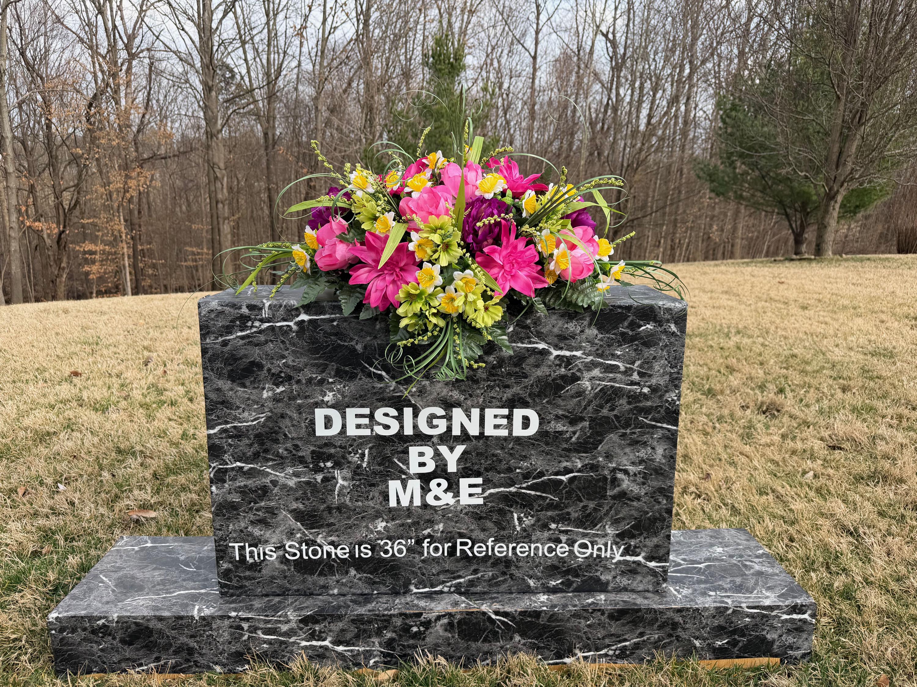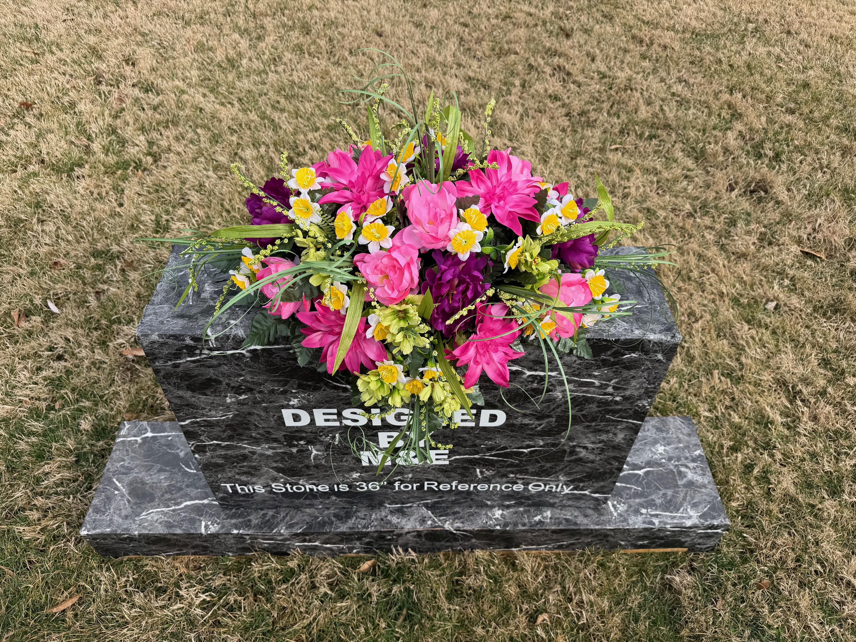 We’re a small, family-operated business consisting of myself, my husband, and my daughter. We personally manage every order and strive for excellent customer service. All our arrangements use high-quality silk flowers, though all silk blooms may fade over time. Each stem is glued into foam to withstand the elements. Designed by M&E uses only premium silks, and we put genuine care into every piece we create. Rest assured, the arrangement shown in our photos is exactly the one you’ll receive, as I design and assemble each one myself. If you’re searching for something unique or have a particular flower, color, or matching vases in mind, please contact me to discuss a custom order.