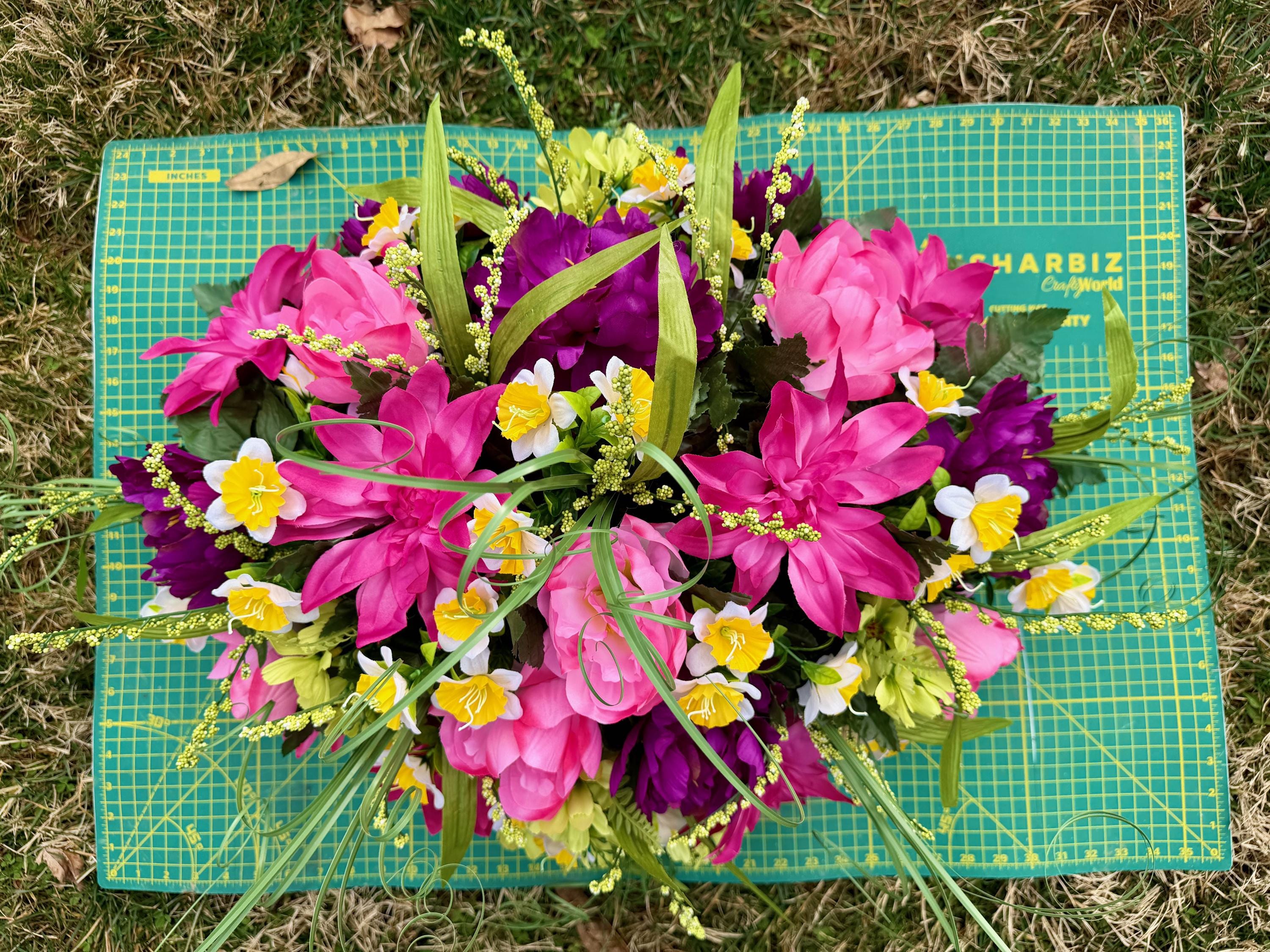 Pink and Yellow Bright Cemetery Saddle, Quality Flowers, Grave Decoration, Memorial Flowers