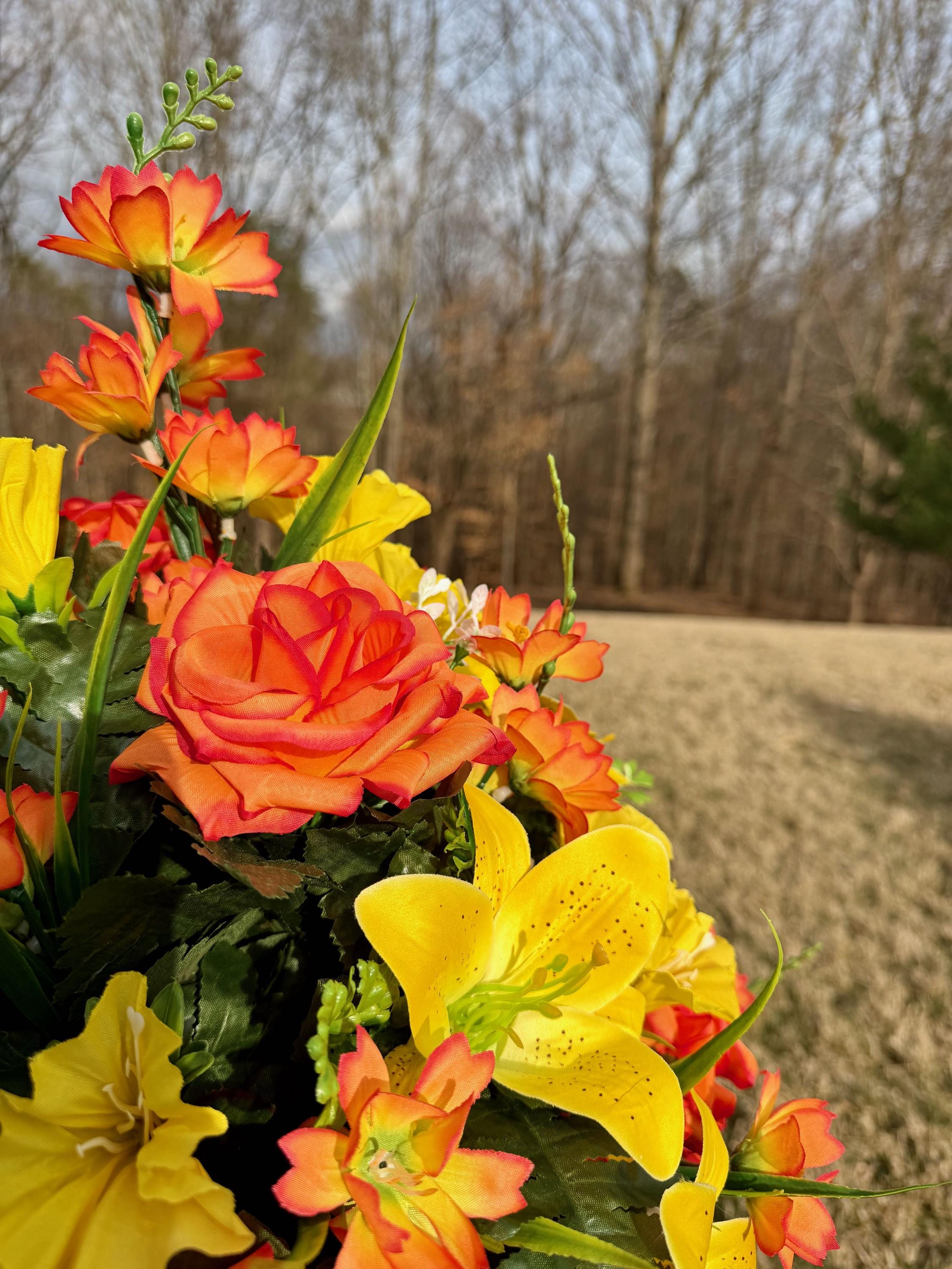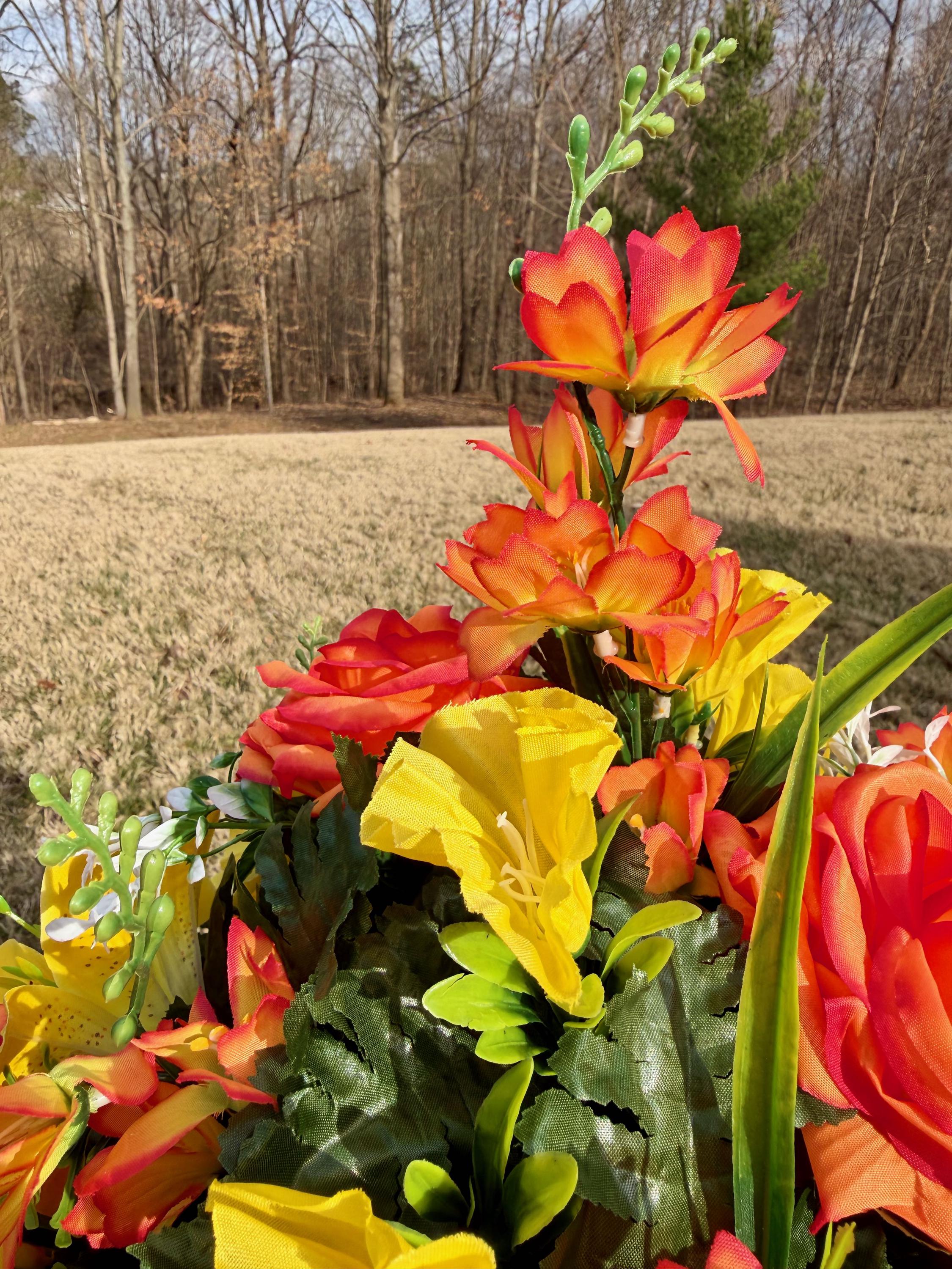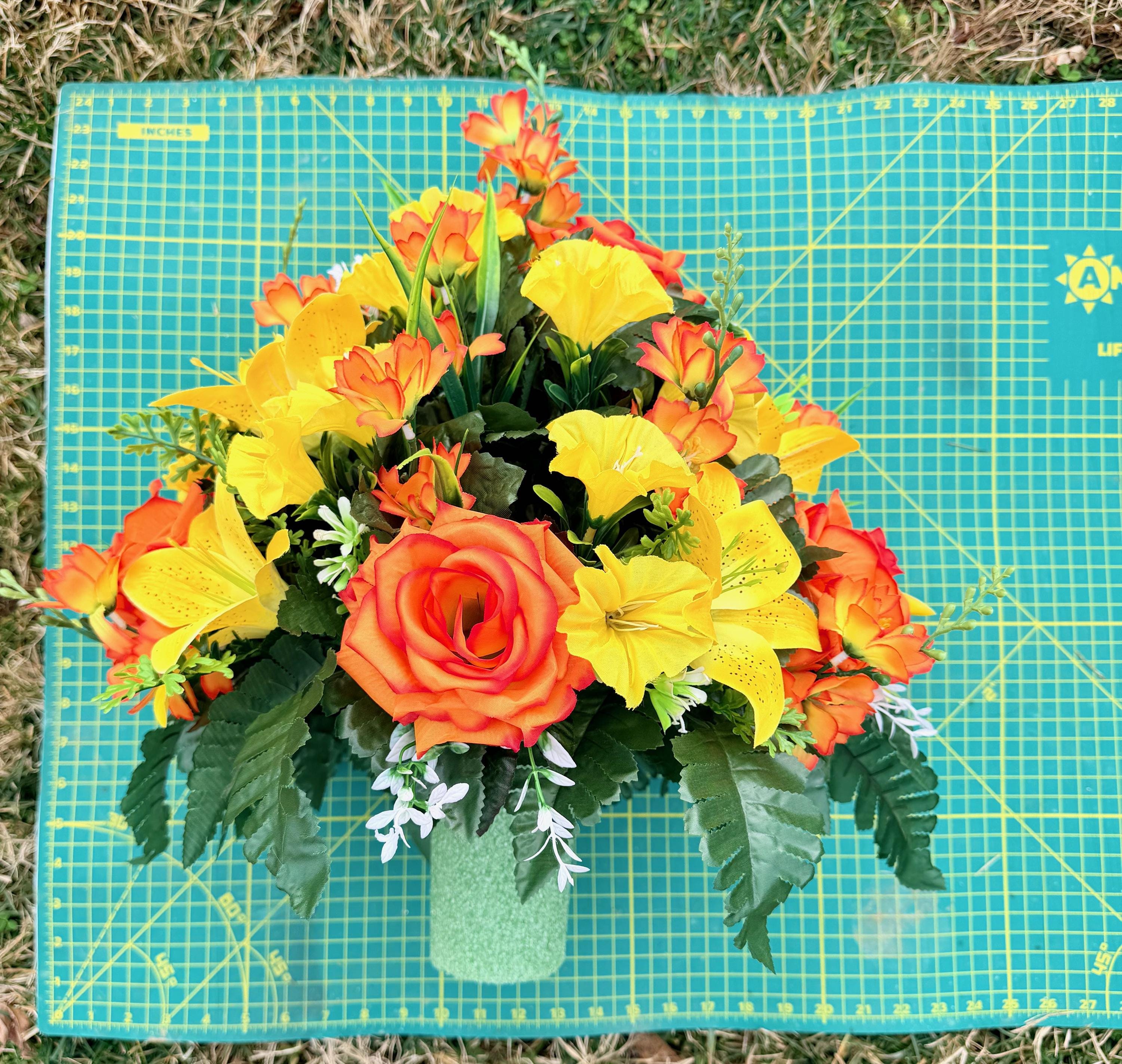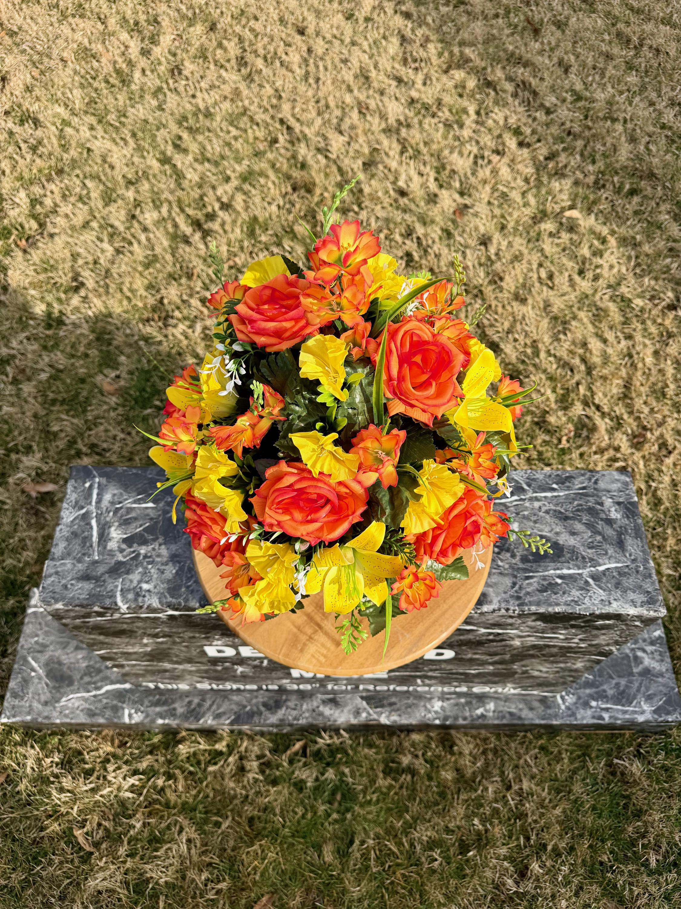 Orange and Yellow Cemetery Vase, Memorial Flowers, Spring Cemetery Arrangement, Sympathy Flowers