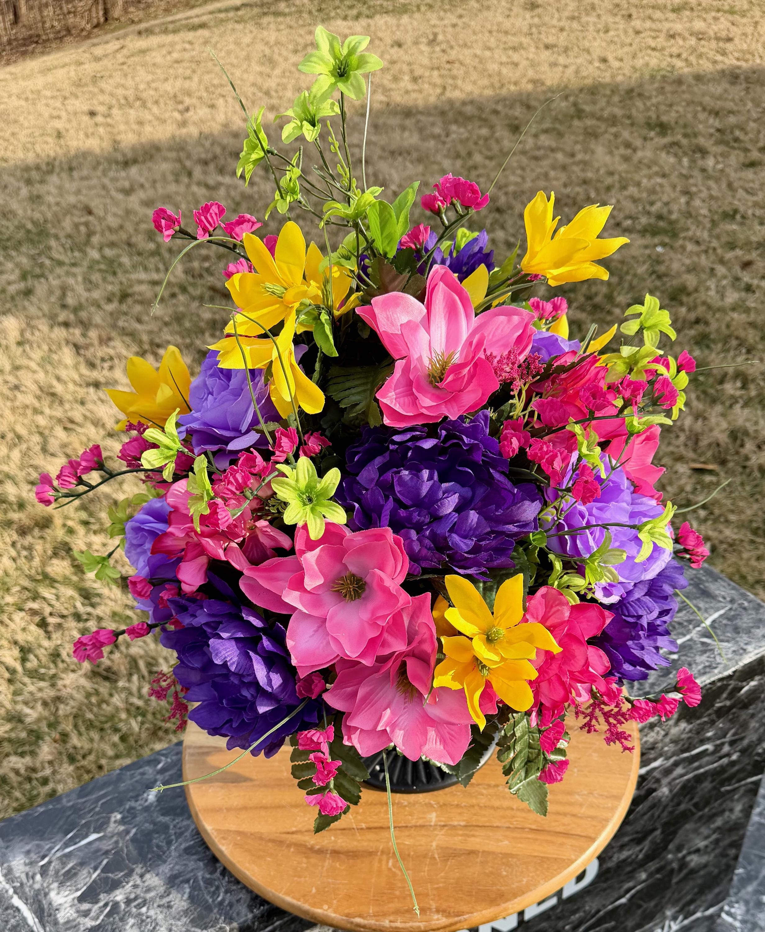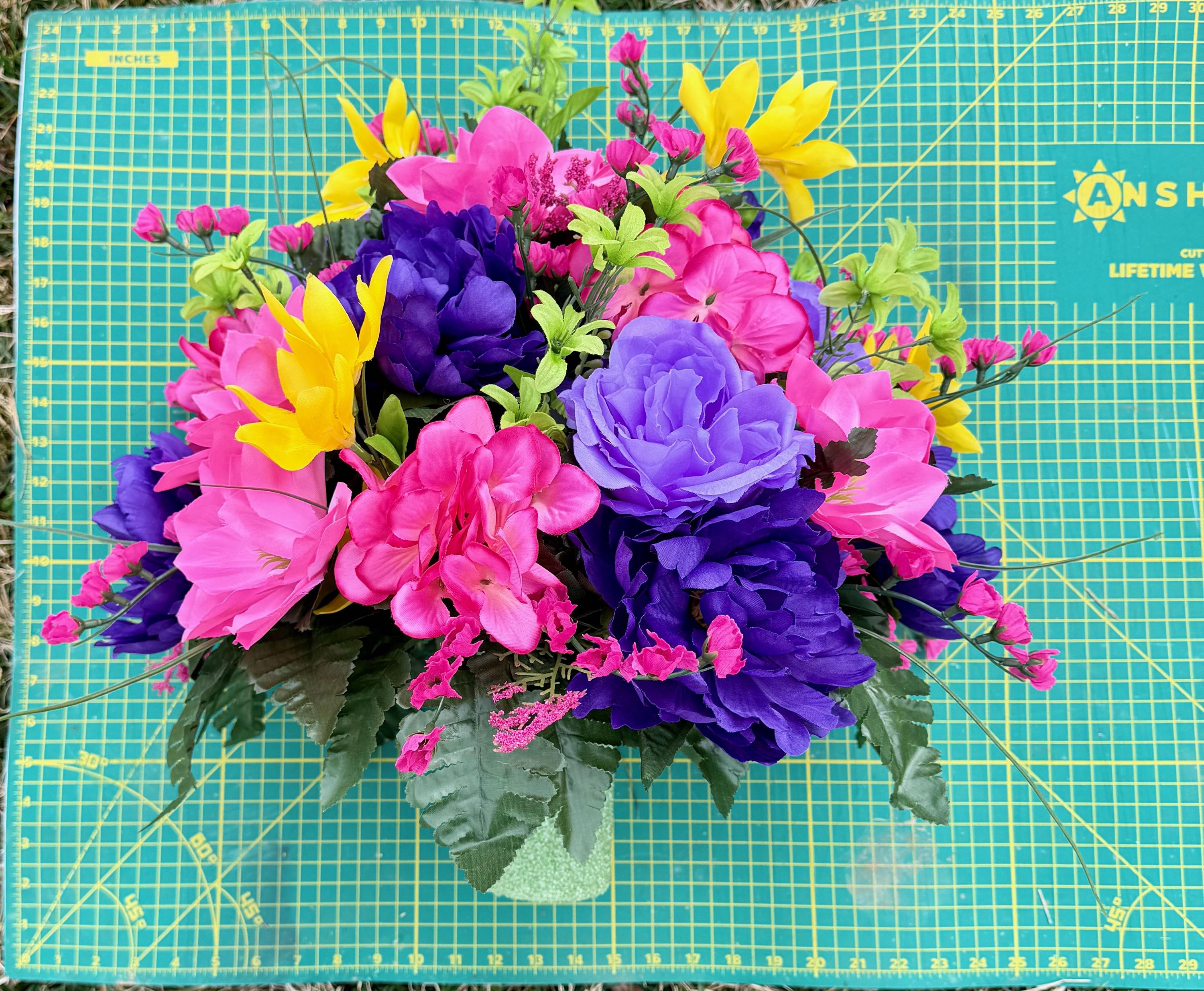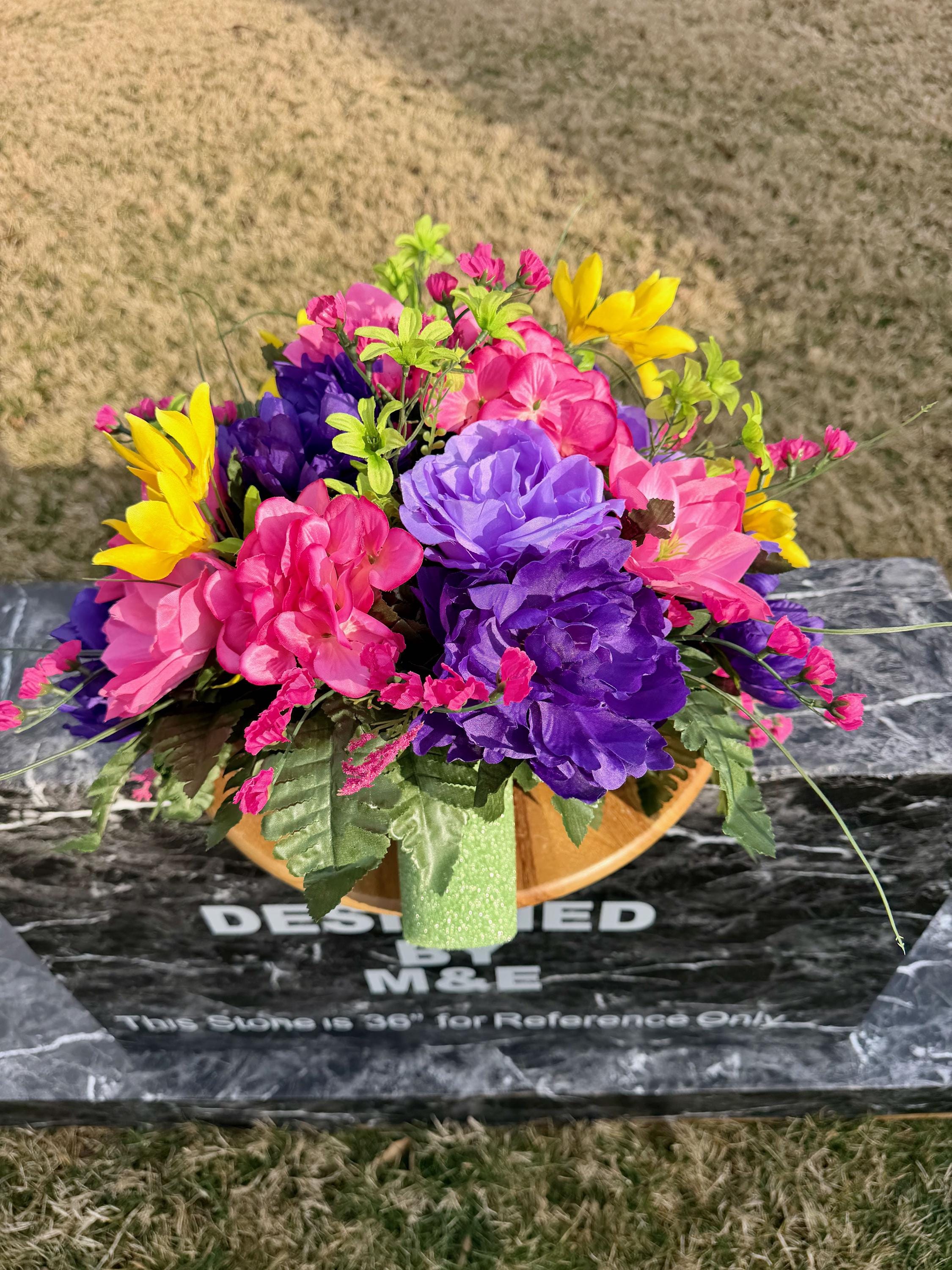 Beautiful Bright Color's Cemetery Vase Arrangement, Headstone Arrangement, Memorial Flowers