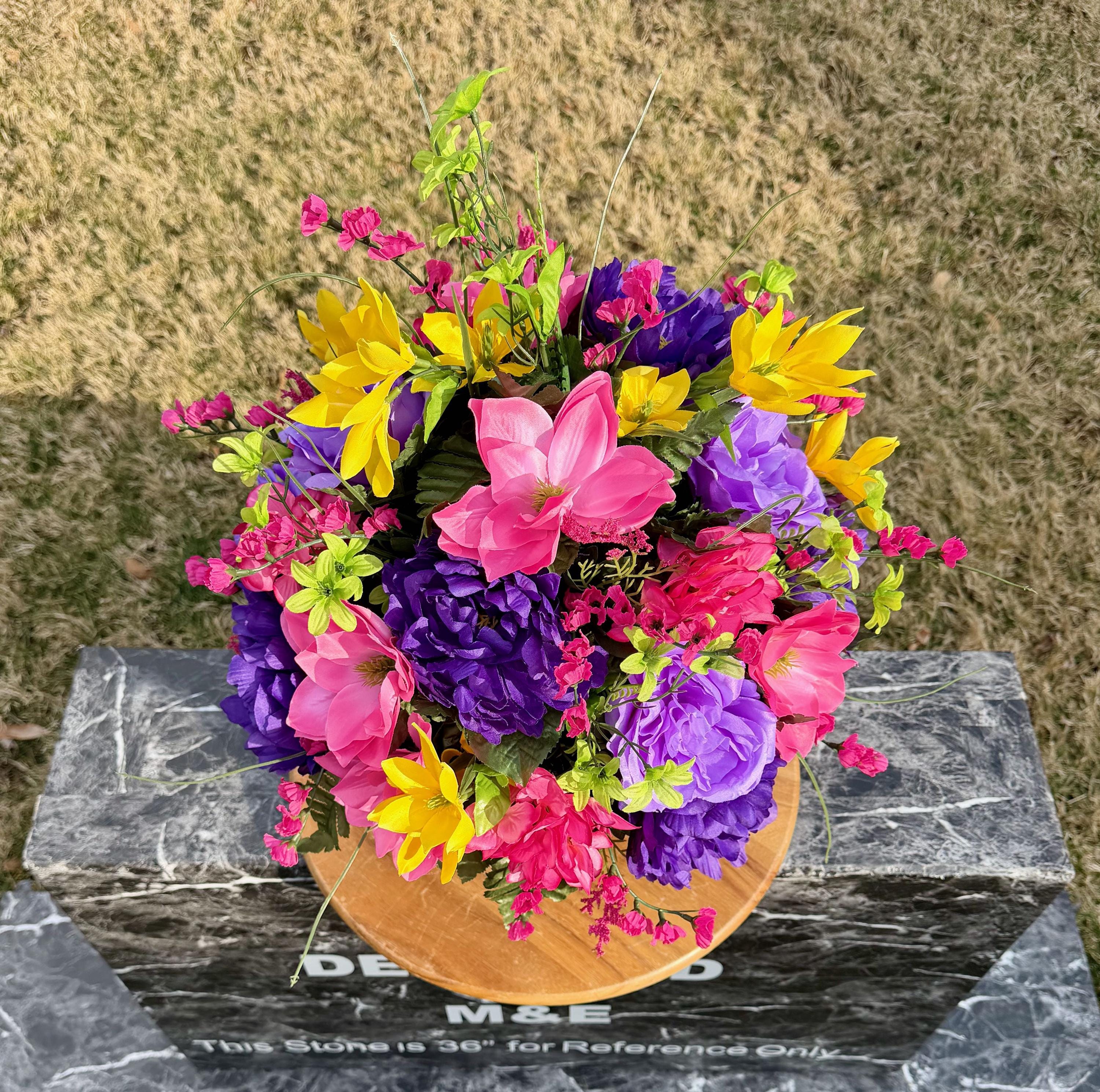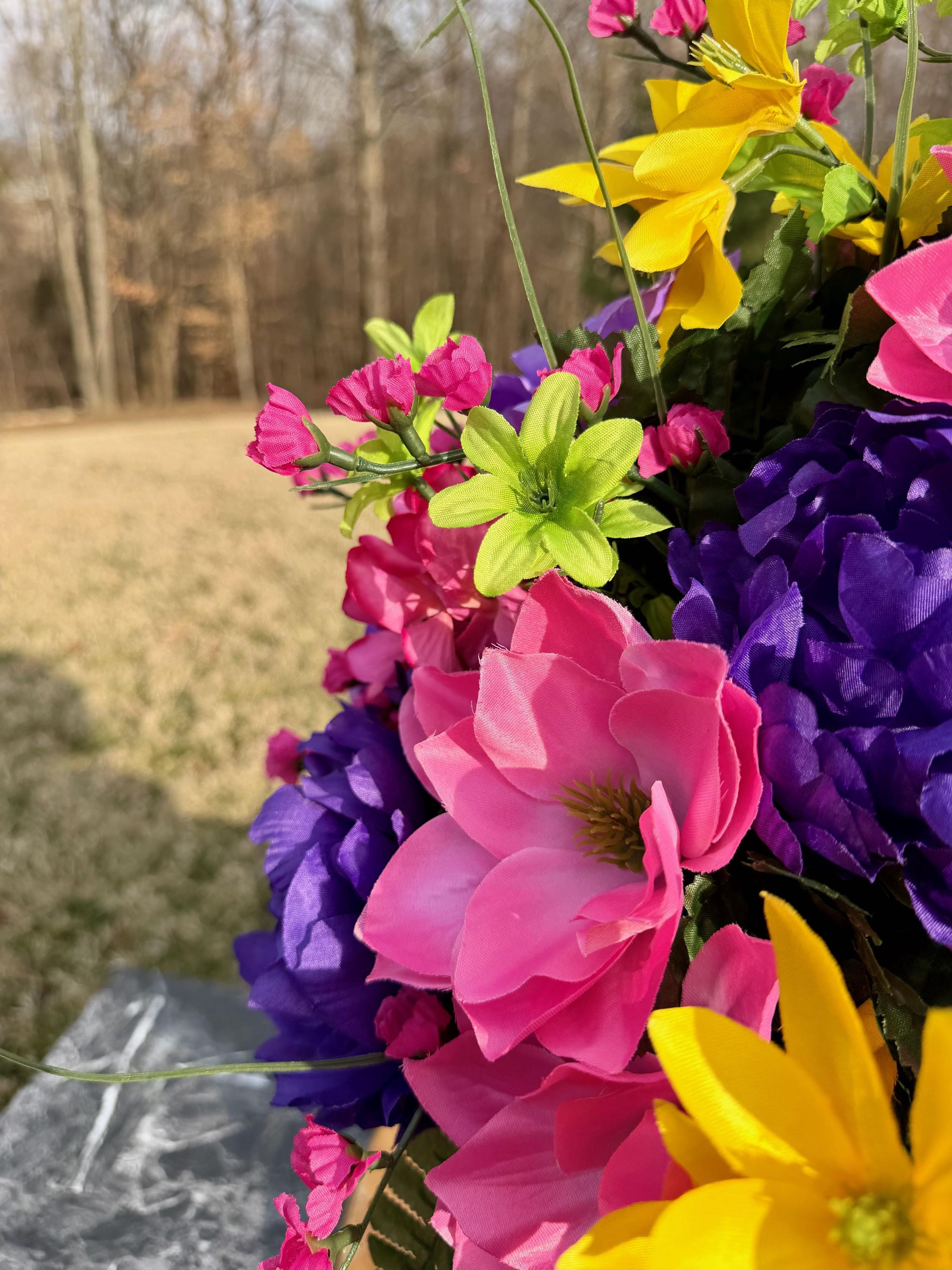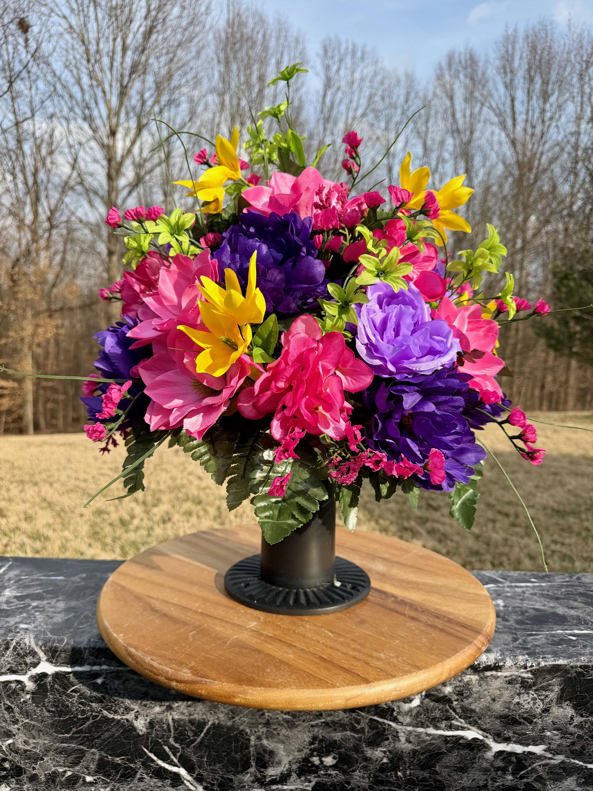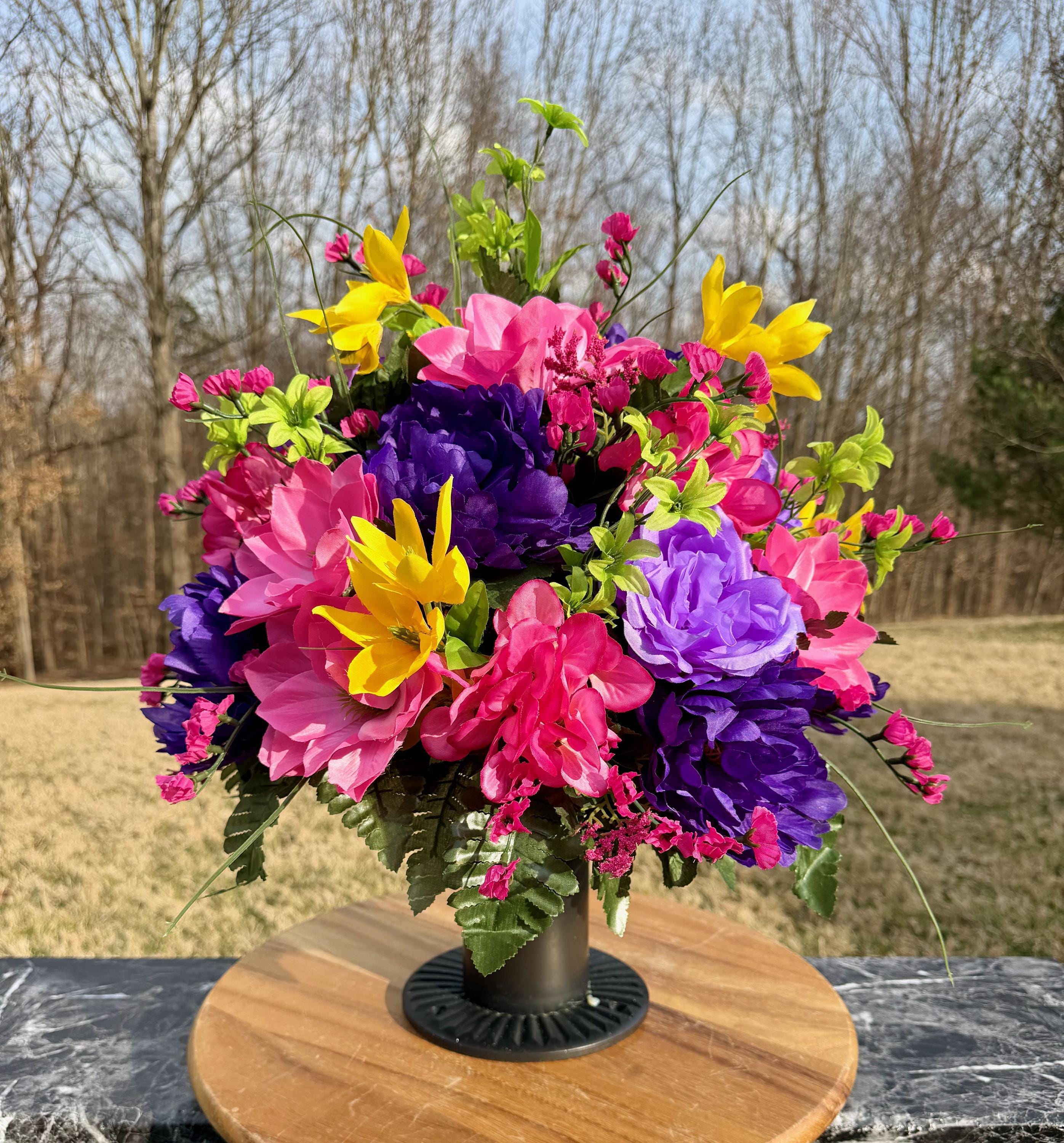 Beautiful Bright Color's Cemetery Vase Arrangement, Headstone Arrangement, Memorial Flowers