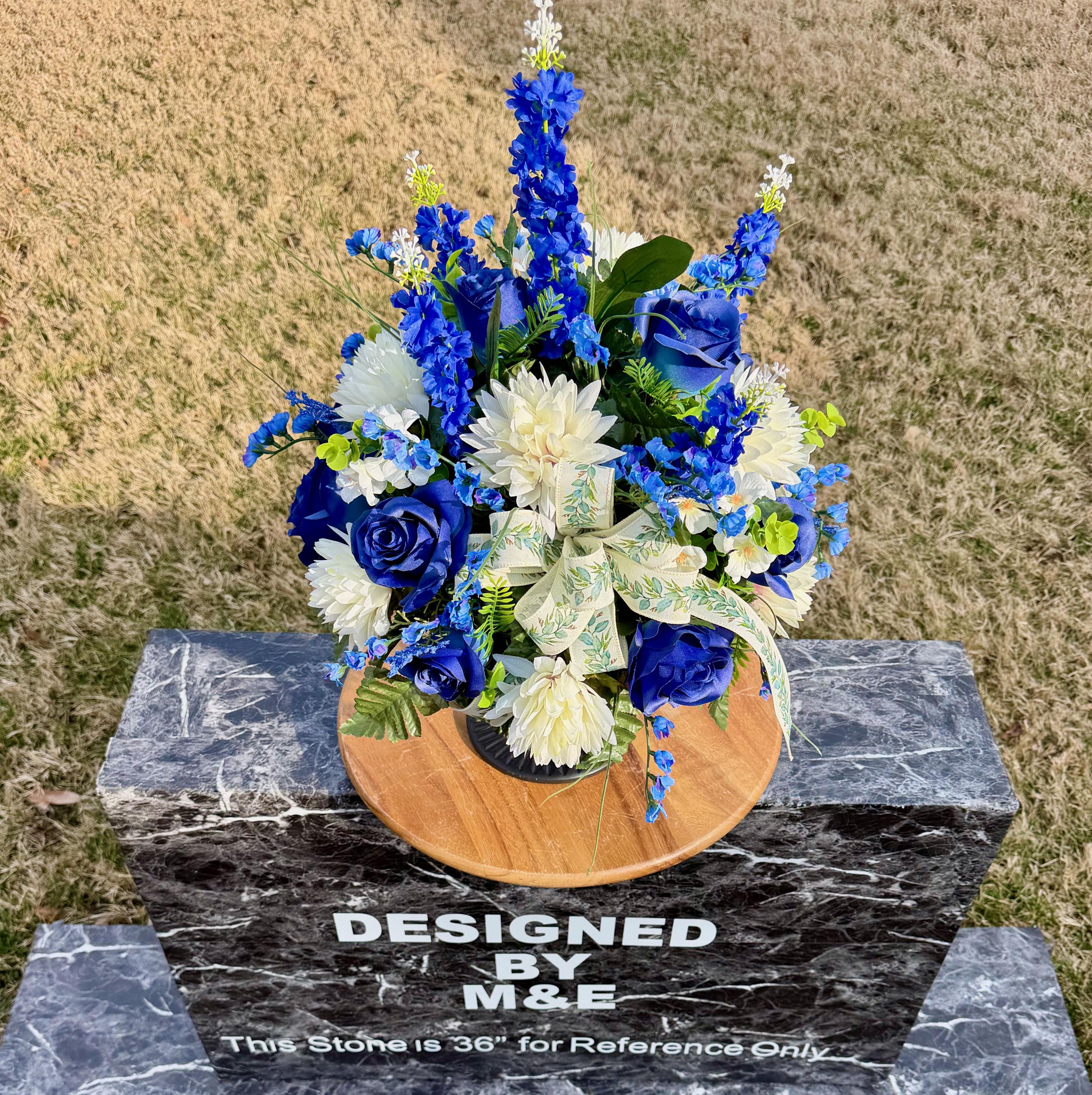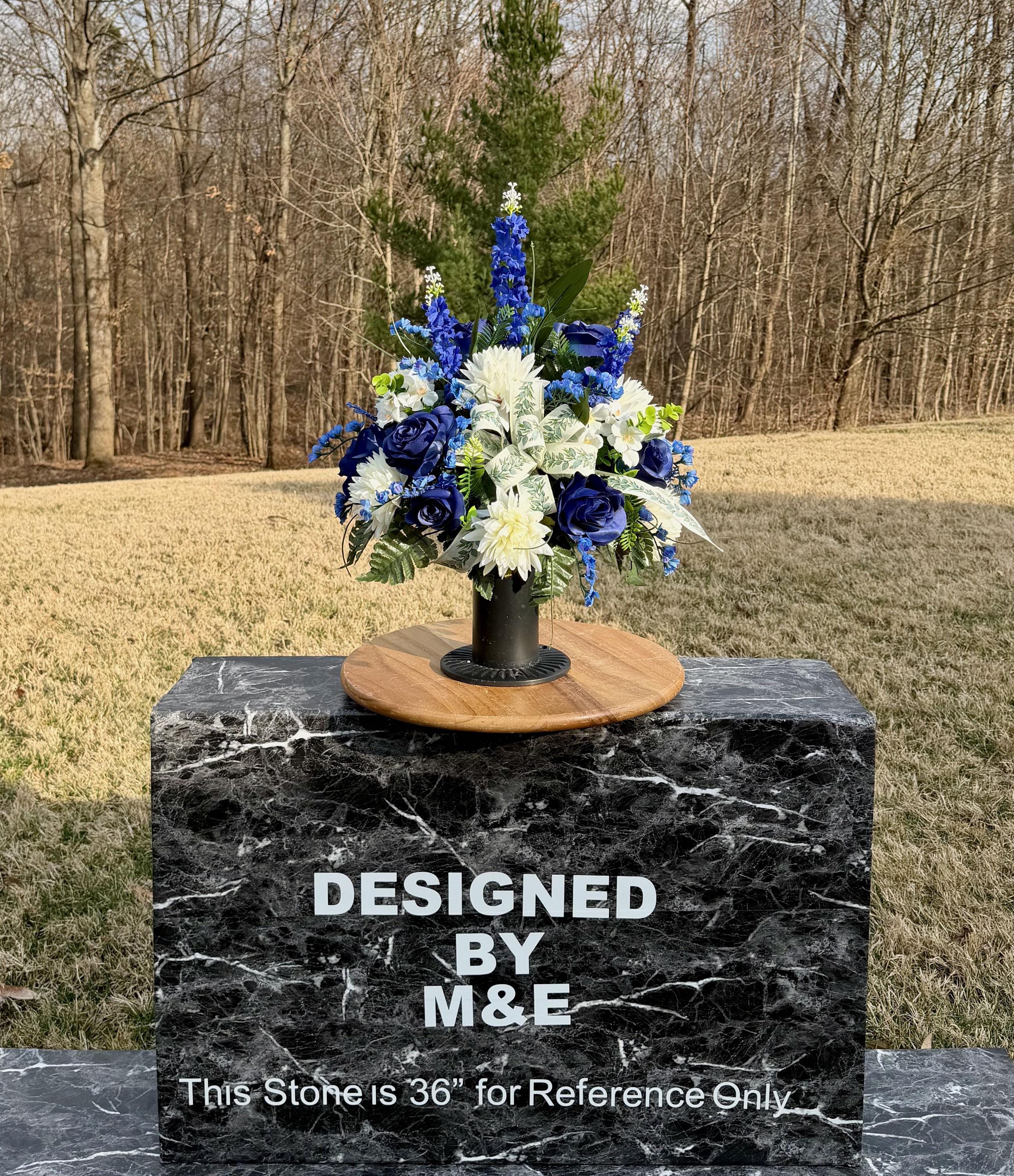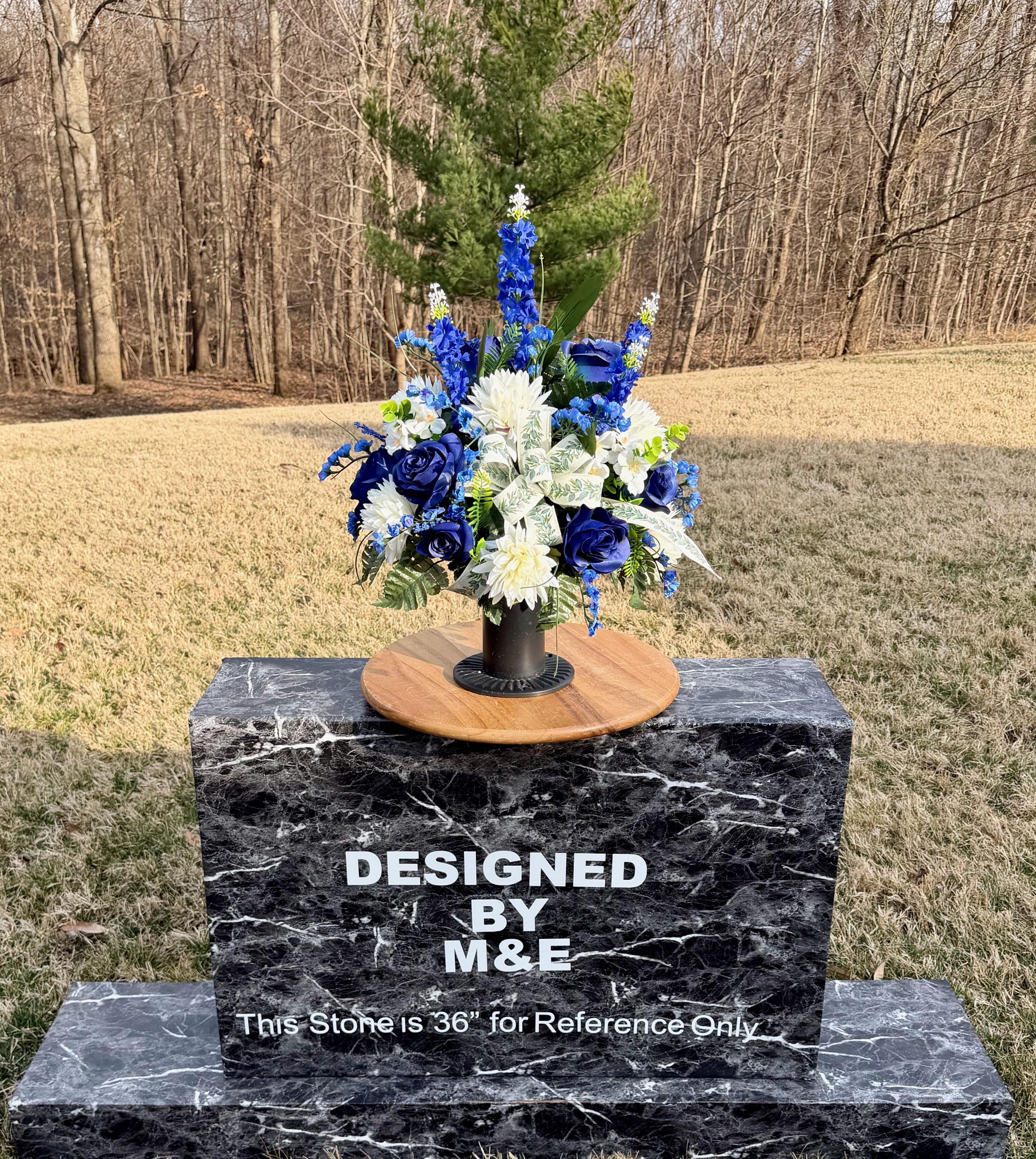We’re a small, family-operated business consisting of myself, my husband, and my daughter. We personally manage every order and strive for excellent customer service. All our arrangements use high-quality silk flowers, though all silk blooms may fade over time. Each stem is glued into foam to withstand the elements. Designed by M&E uses only premium silks, and we put genuine care into every piece we create. Rest assured, the arrangement shown in our photos is exactly the one you’ll receive, as I design and assemble each one myself. If you’re searching for something unique or have a particular flower, color, or matching vases in mind, please contact me to discuss a custom order.