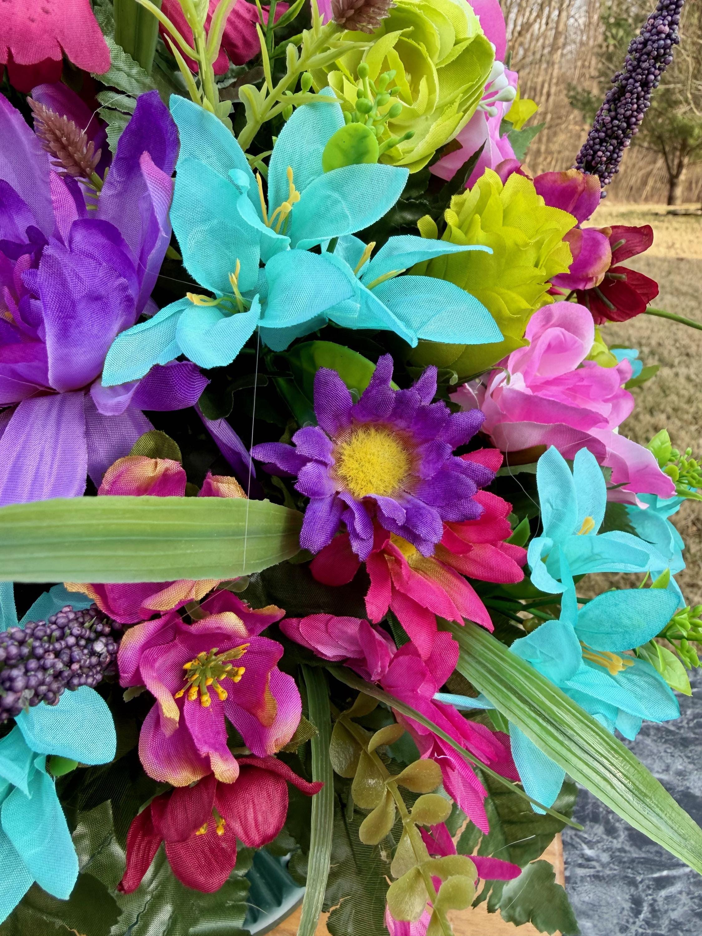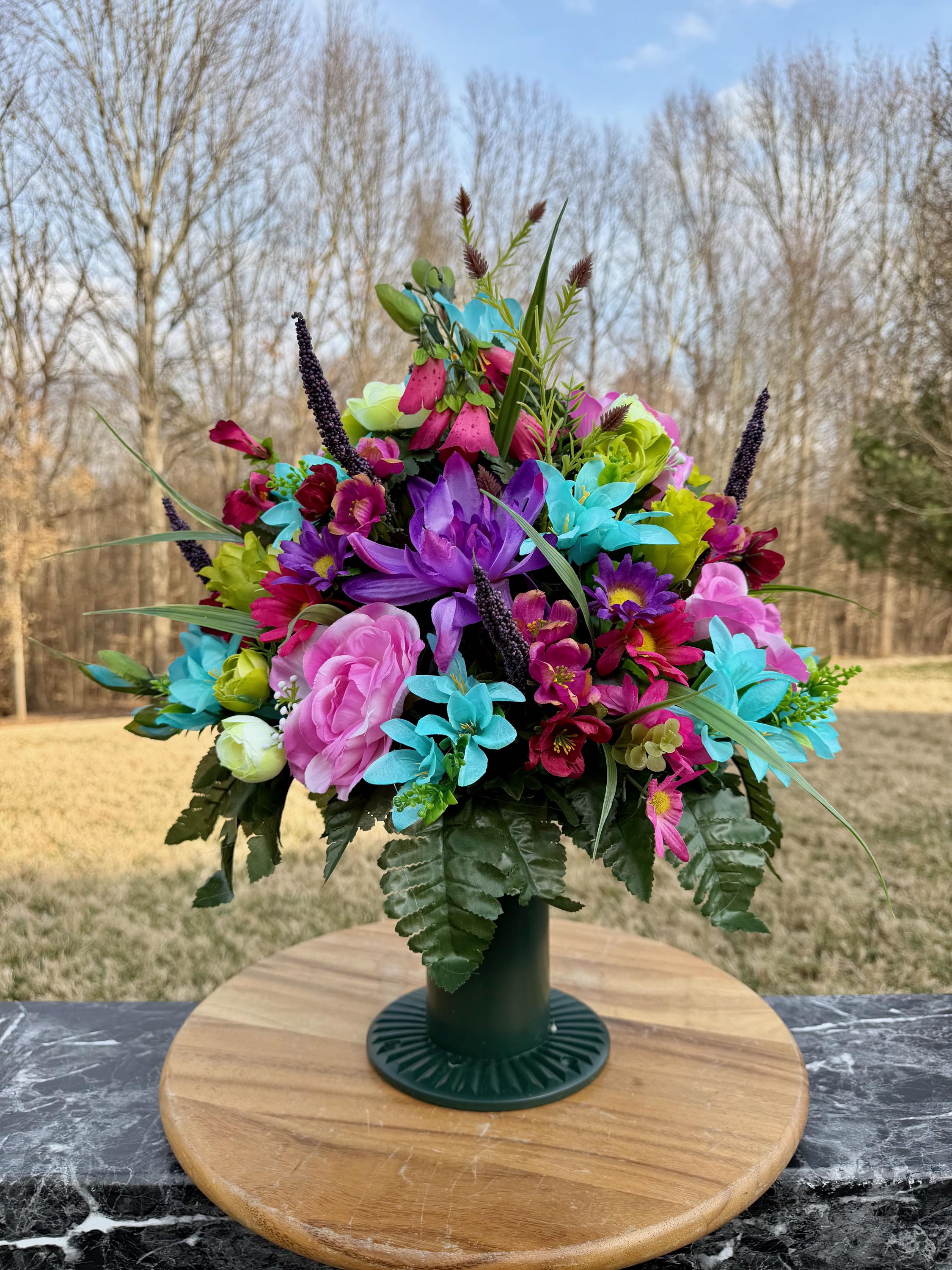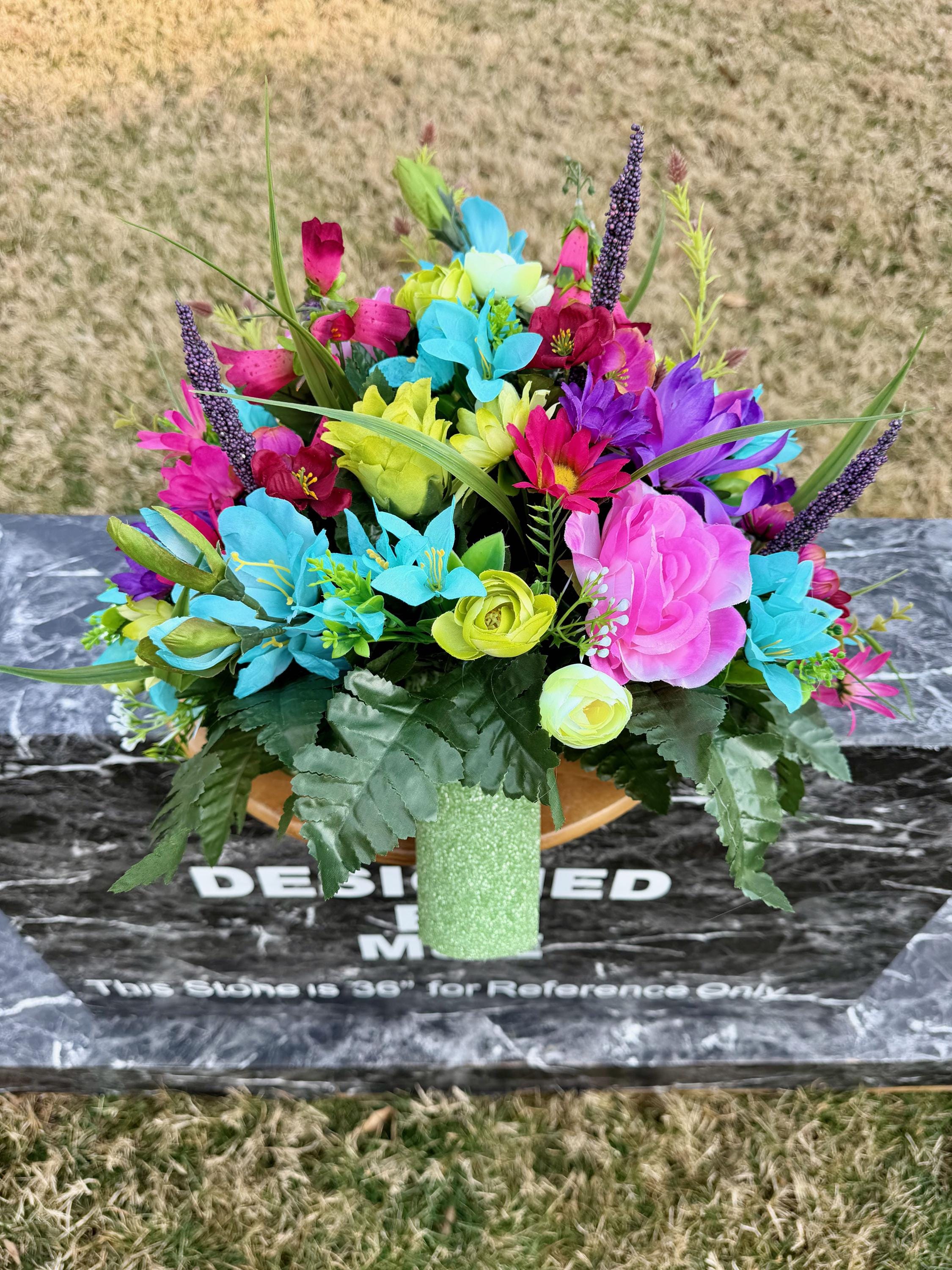 Bright Pastel Colors Cemetery Vase Arrangement, Headstone Arrangement, Memorial Flowers