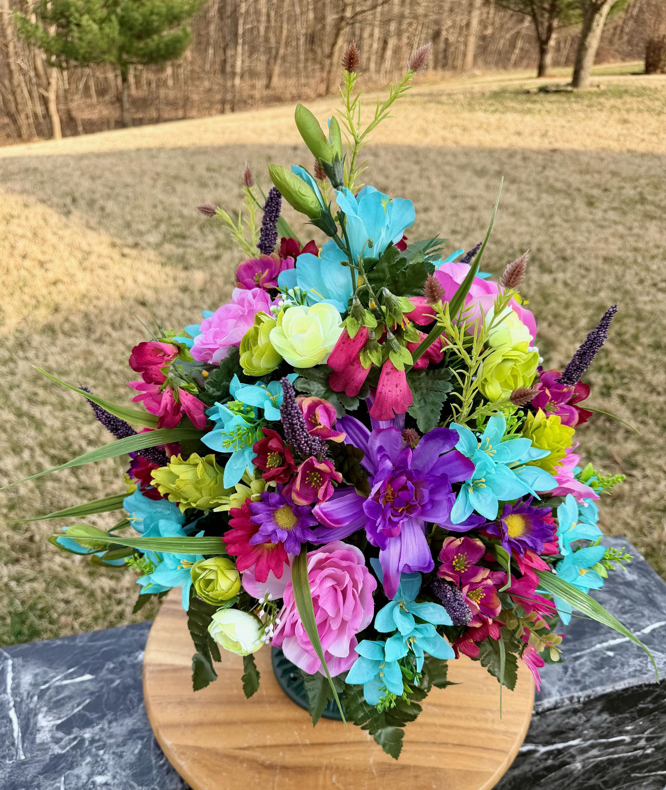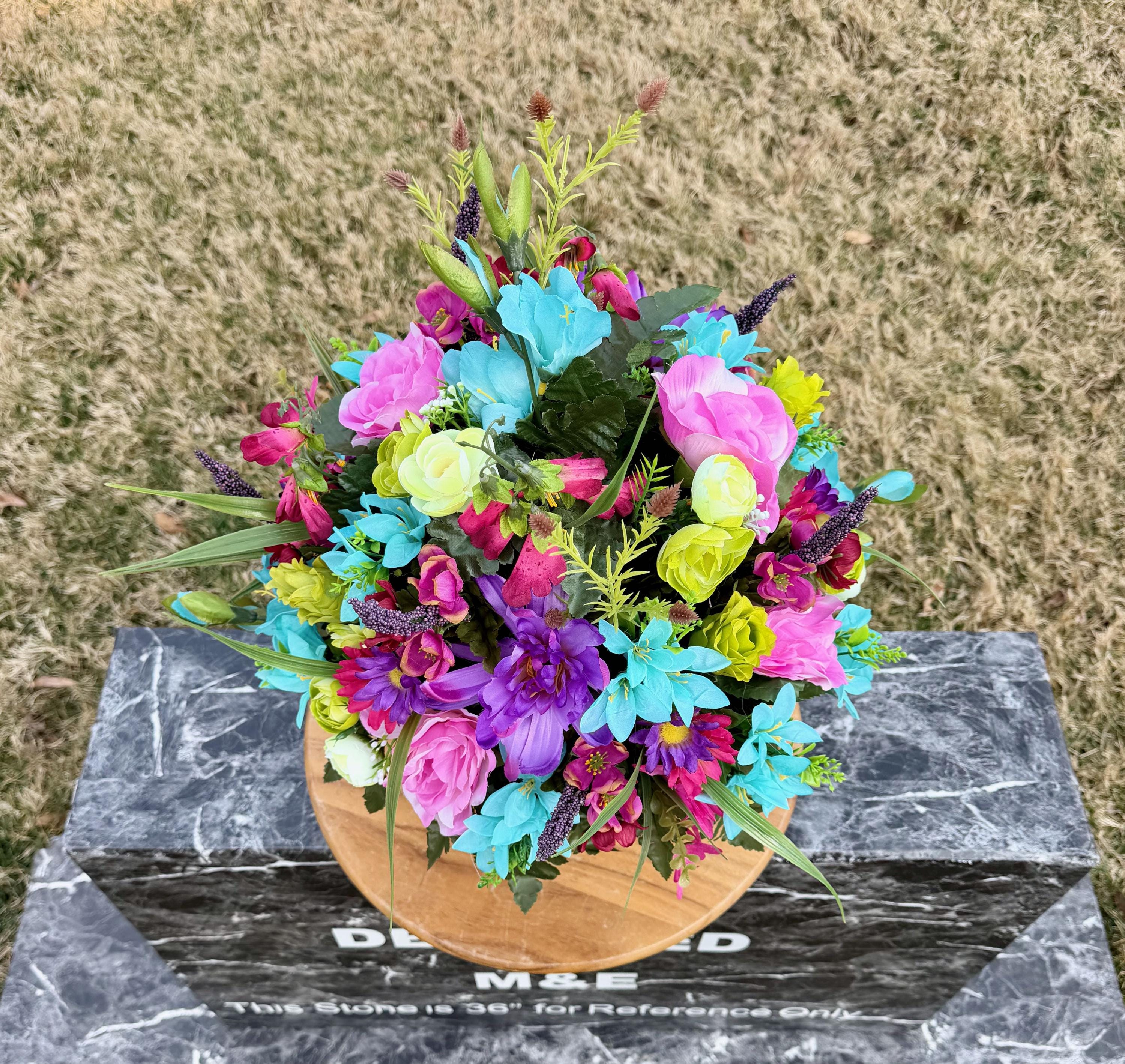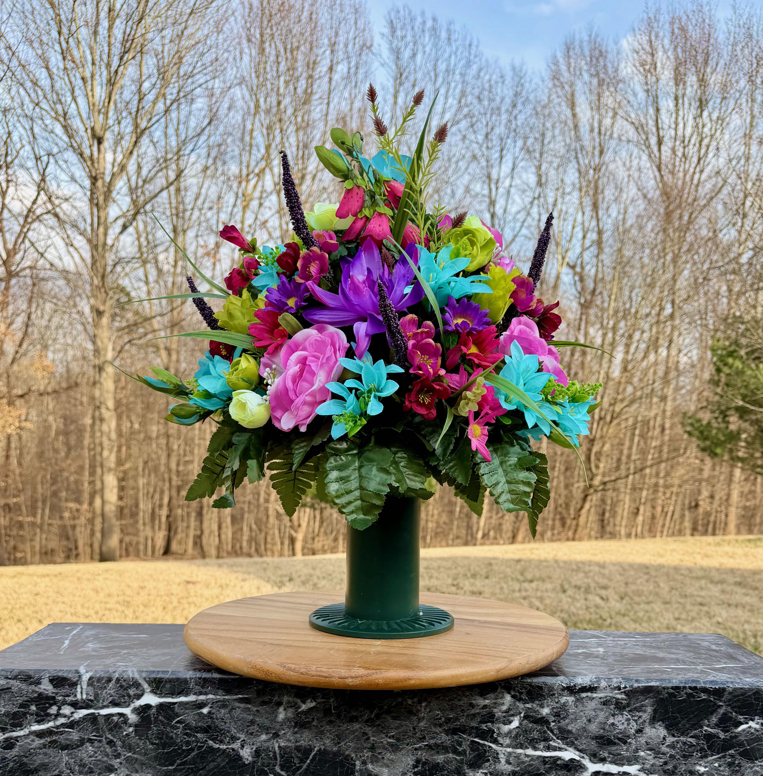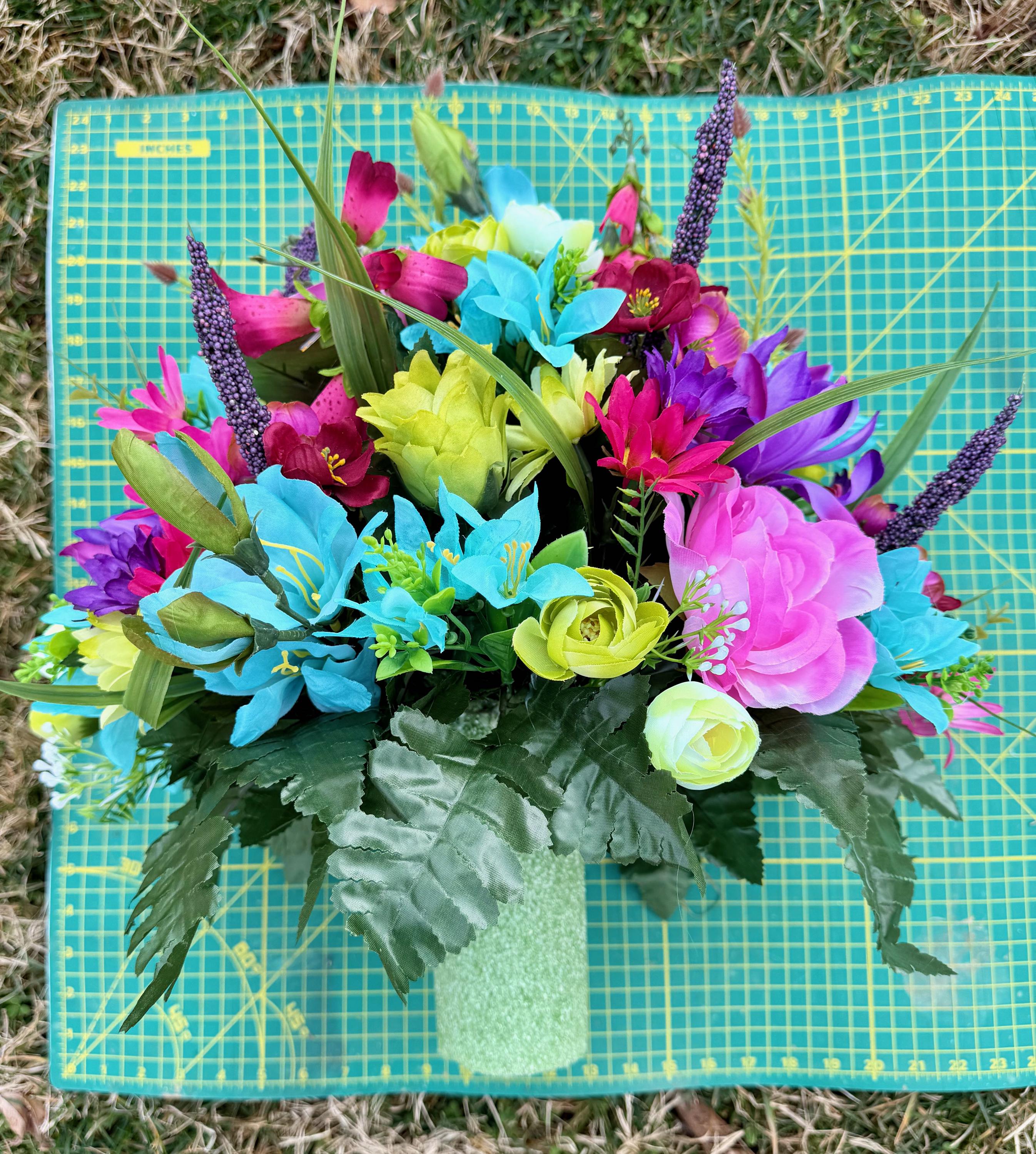 Bright Pastel Colors Cemetery Vase Arrangement, Headstone Arrangement, Memorial Flowers