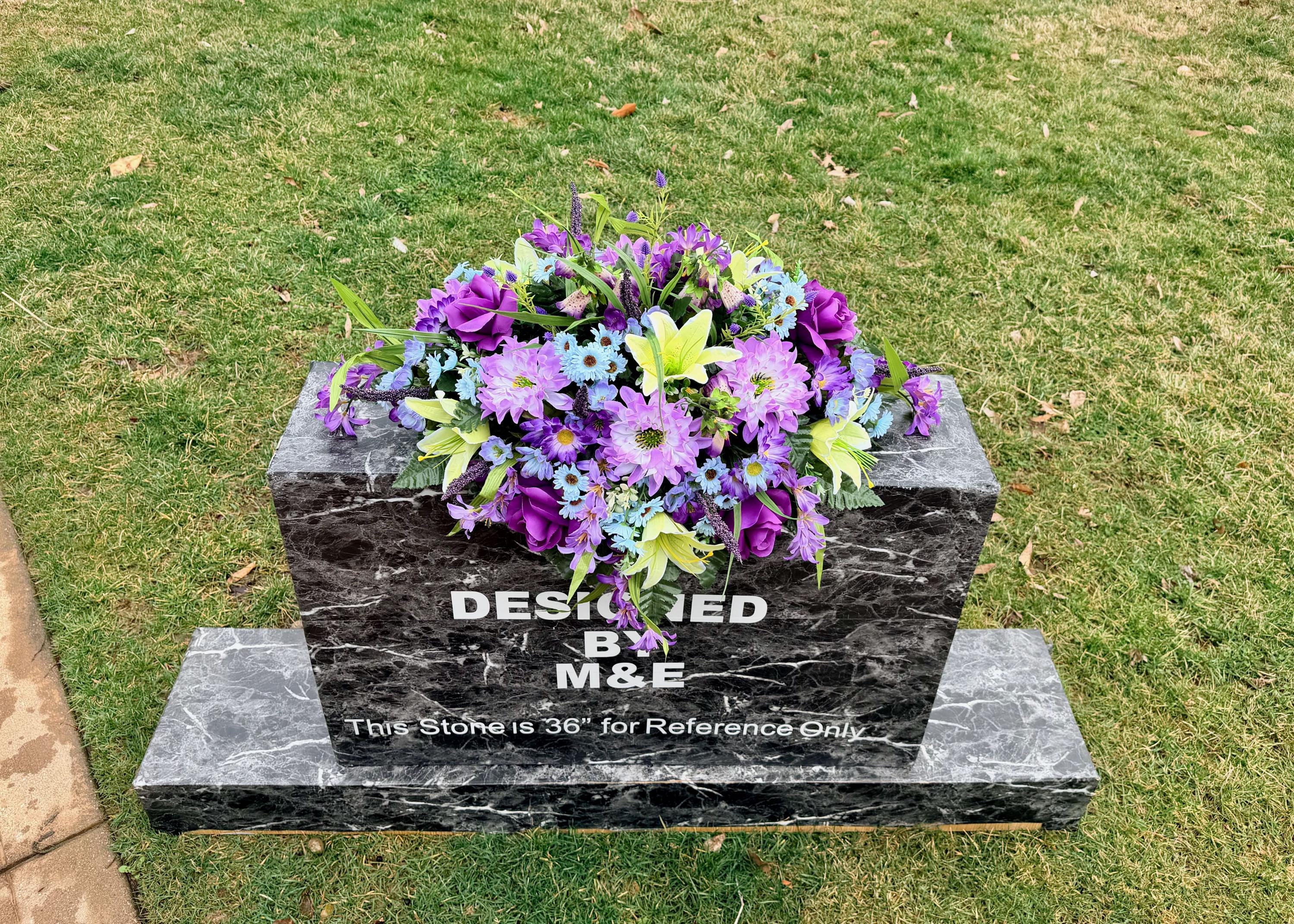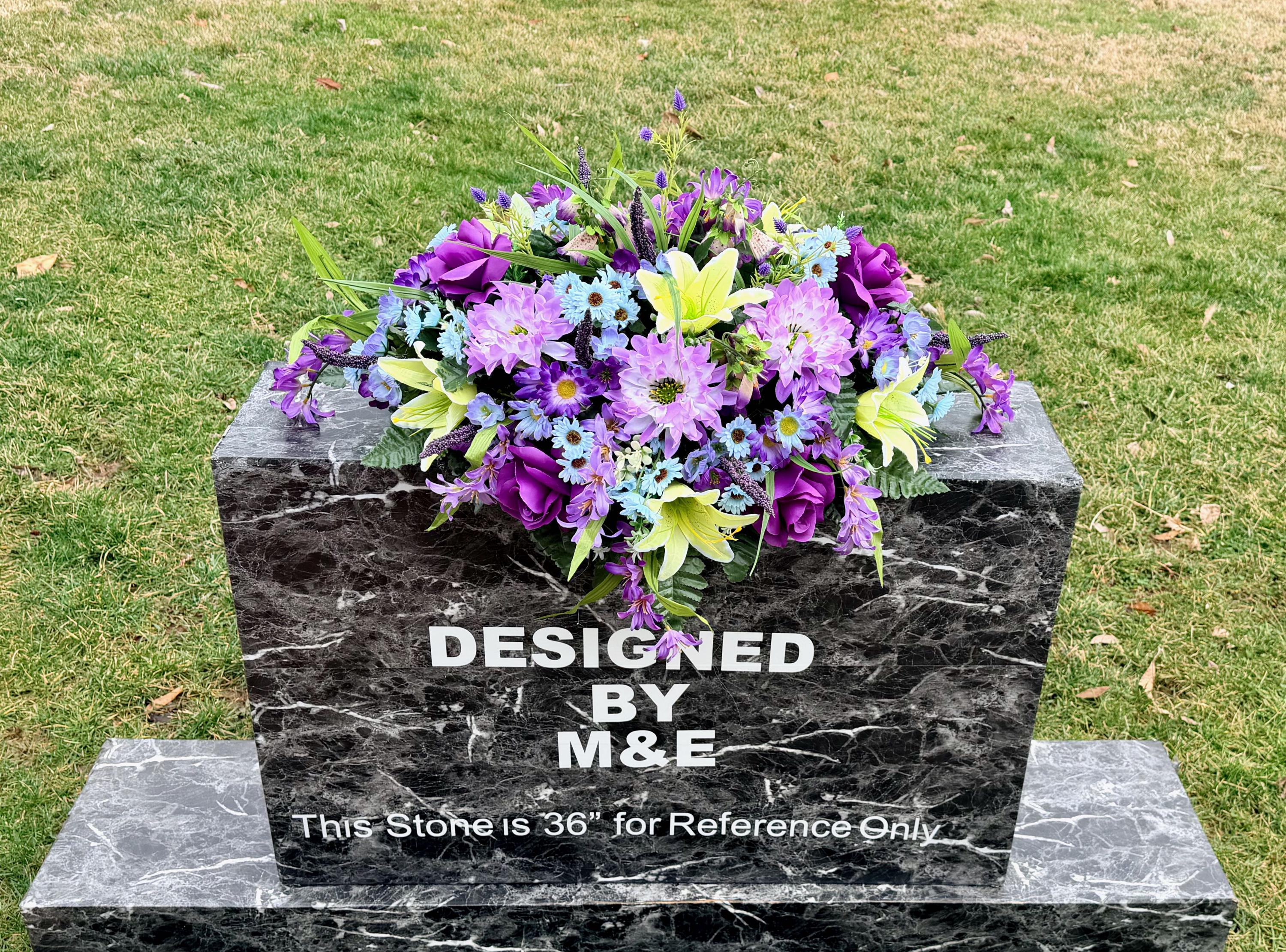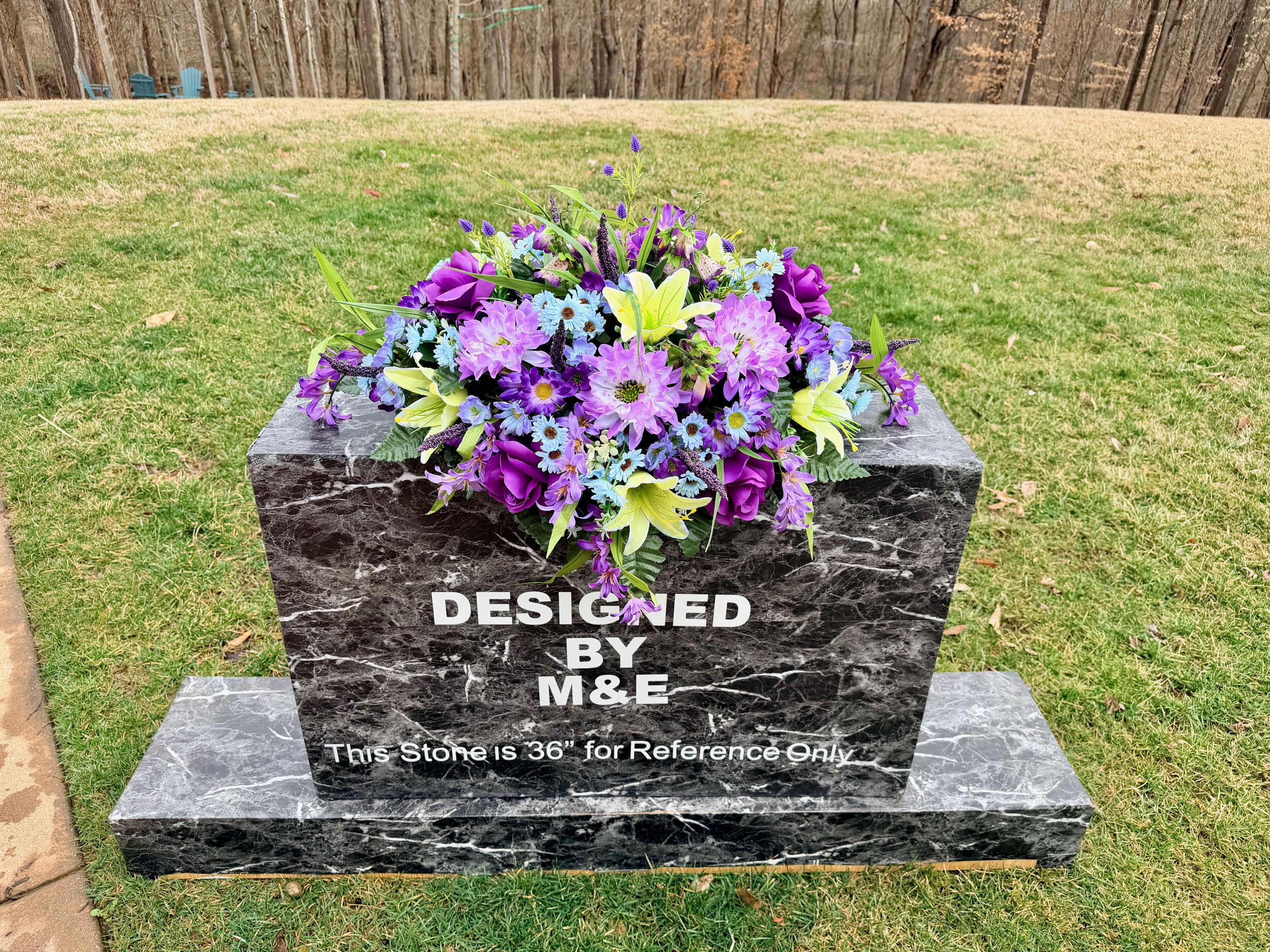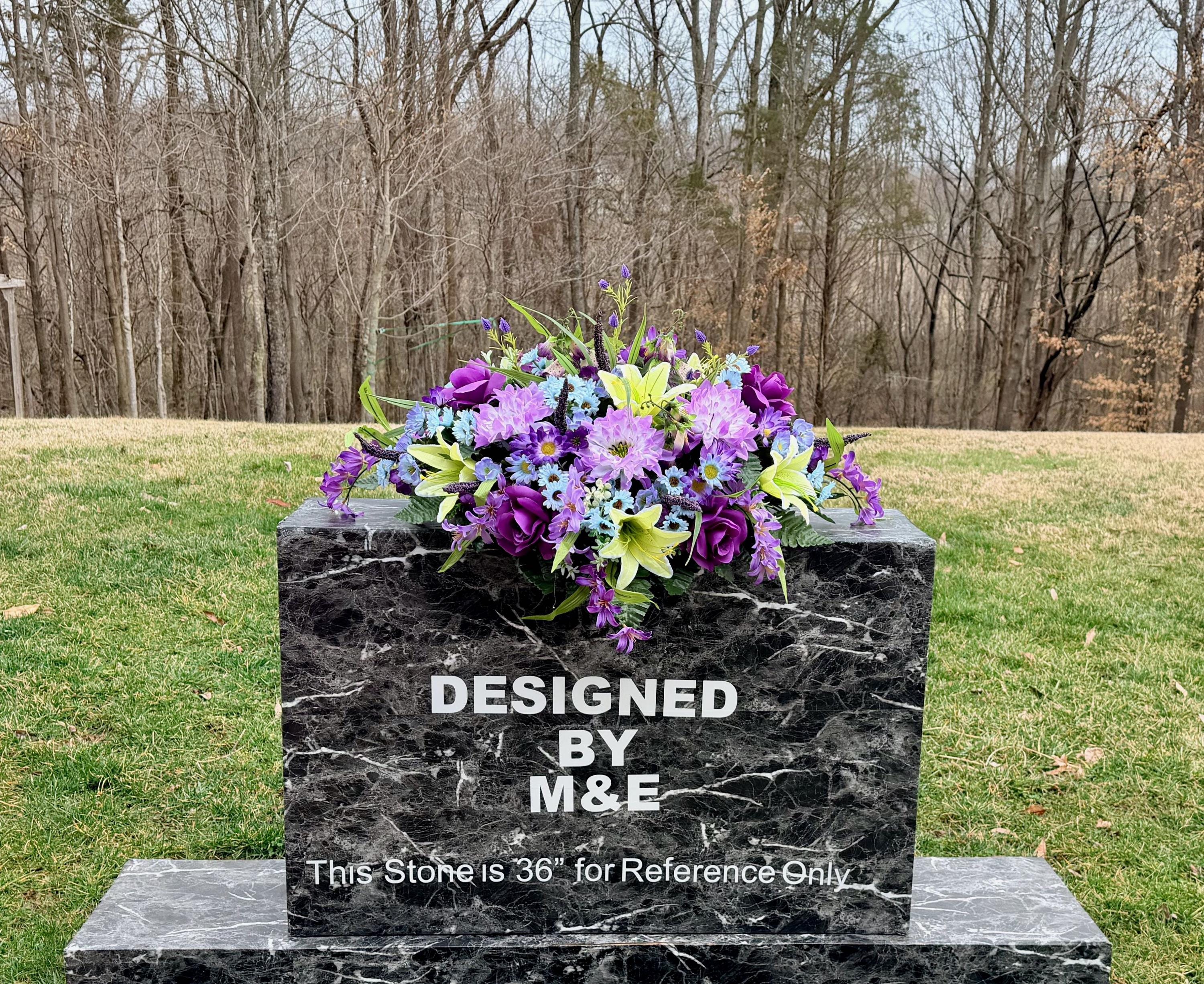 We’re a small, family-operated business consisting of myself, my husband, and my daughter. We personally manage every order and strive for excellent customer service. All our arrangements use high-quality silk flowers, though all silk blooms may fade over time. Each stem is glued into foam to withstand the elements. Designed by M&E uses only premium silks, and we put genuine care into every piece we create. Rest assured, the arrangement shown in our photos is exactly the one you’ll receive, as I design and assemble each one myself. If you’re searching for something unique or have a particular flower, color, or matching vases in mind, please contact me to discuss a custom order.