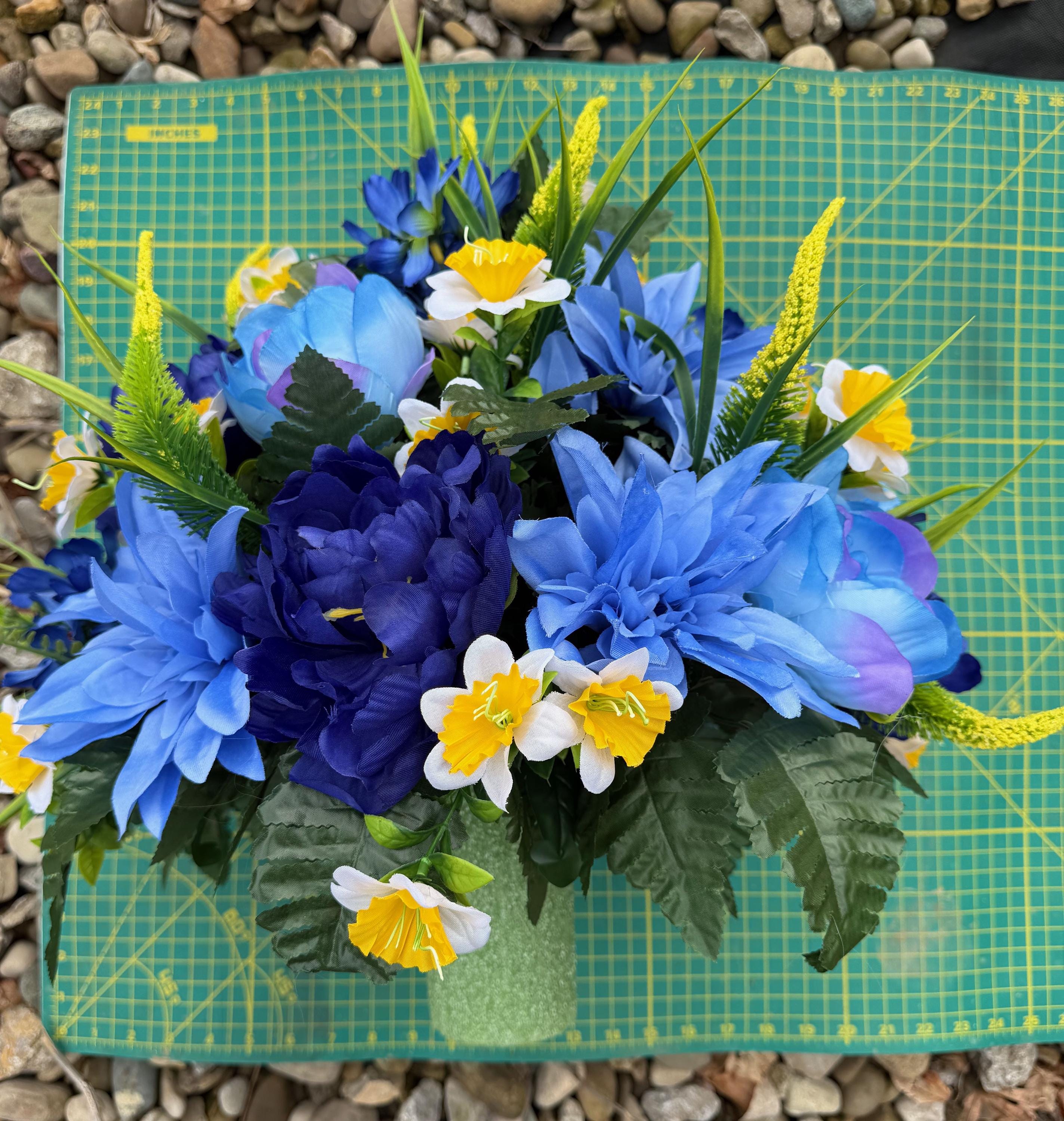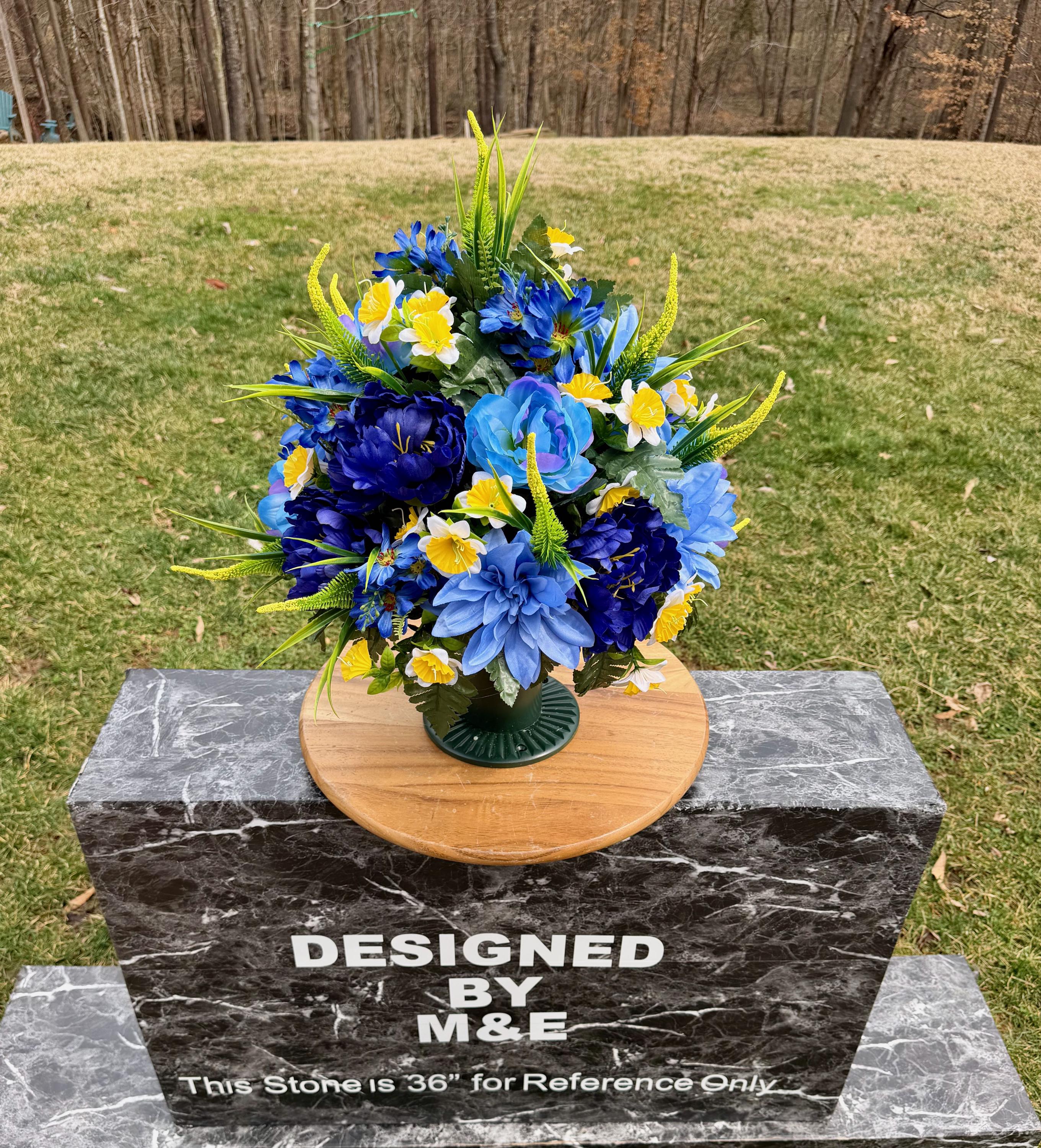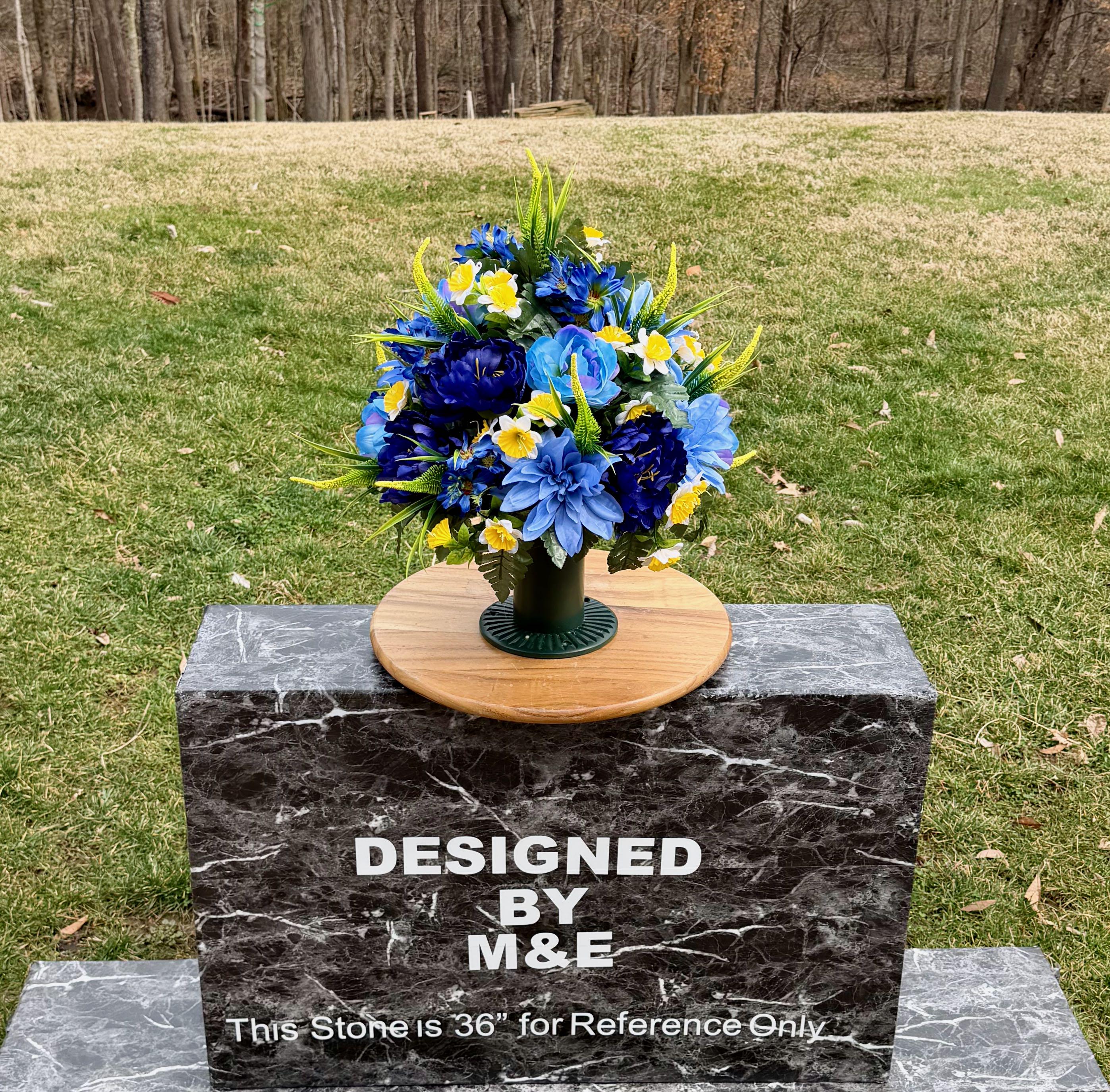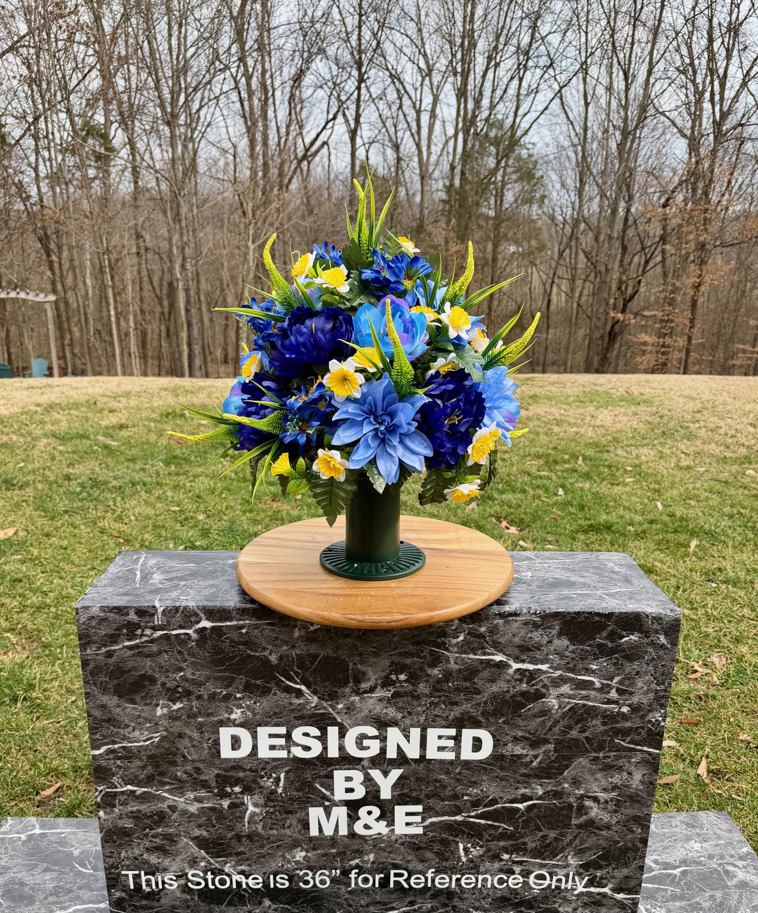 Blue and Yellow Cemetery Vase Arrangement, Headstone Arrangement, Memorial Flowers