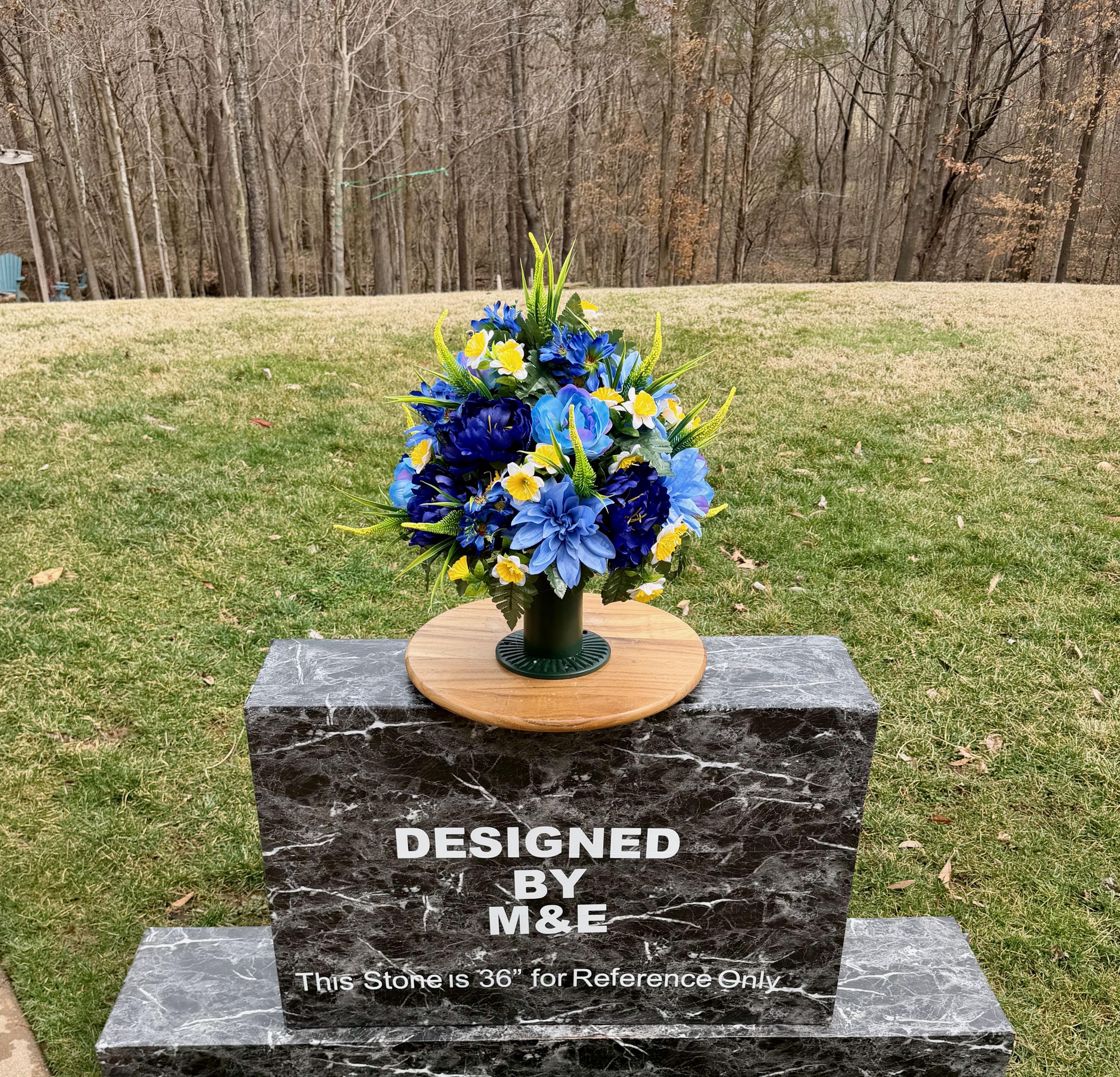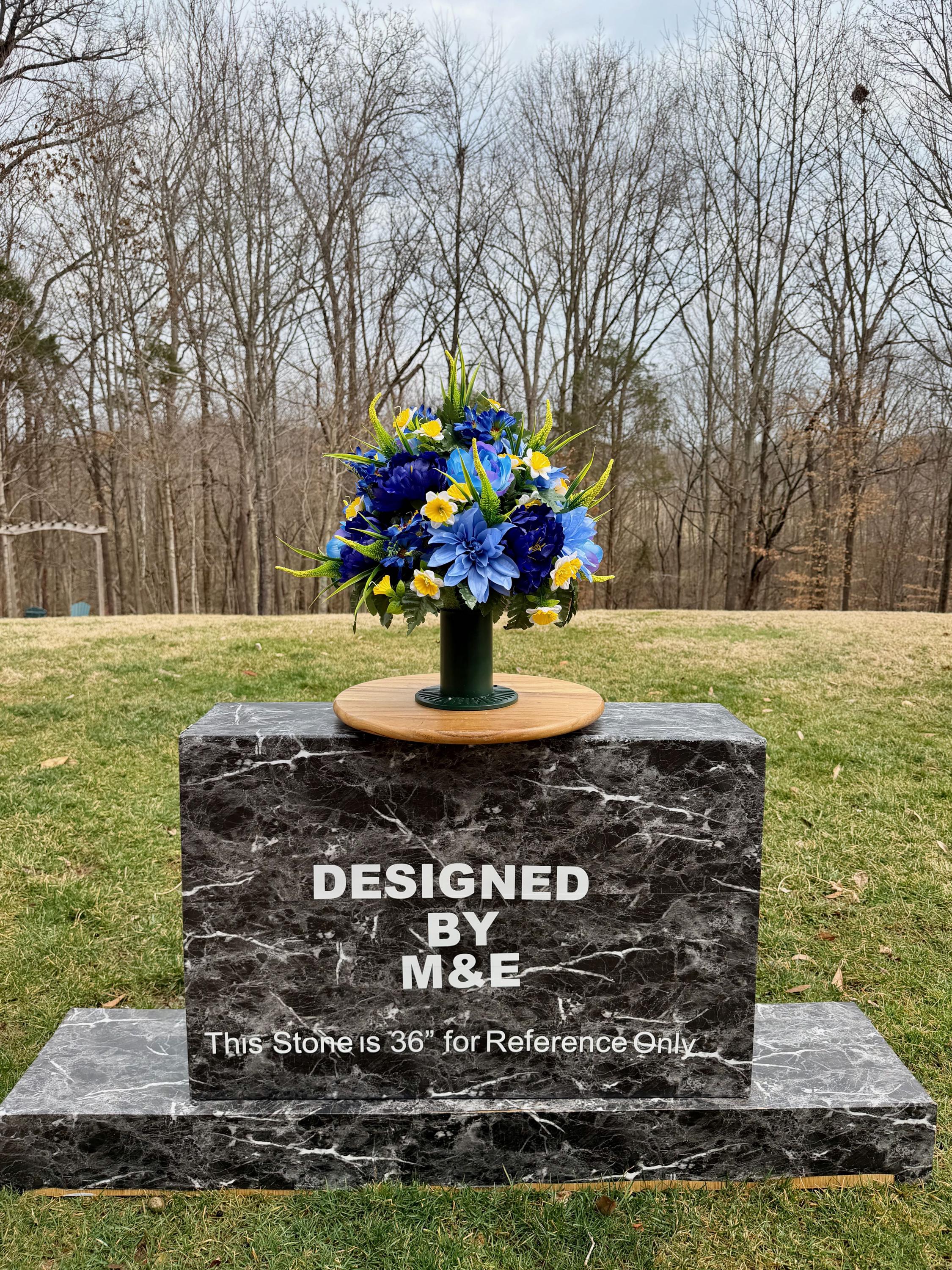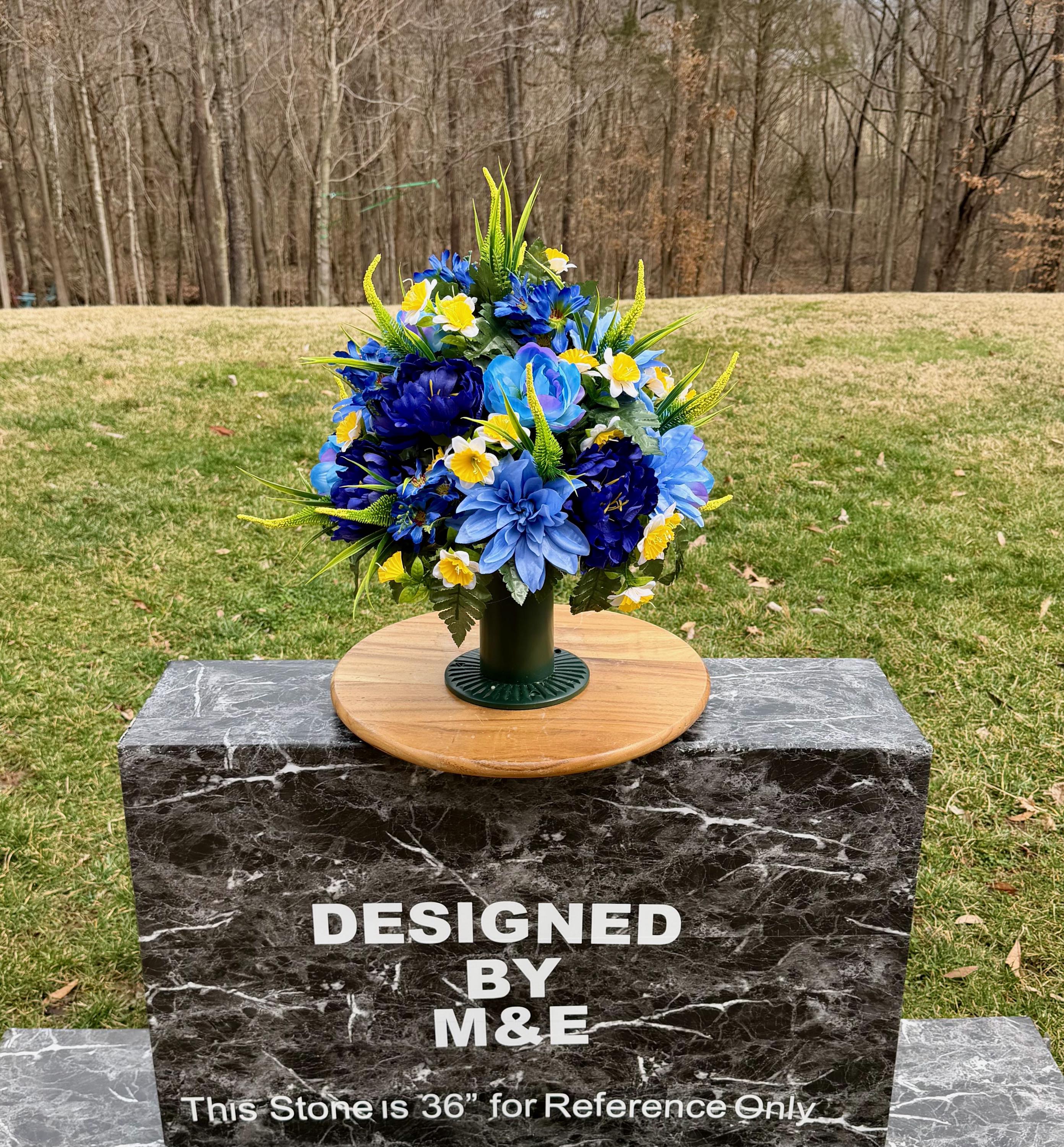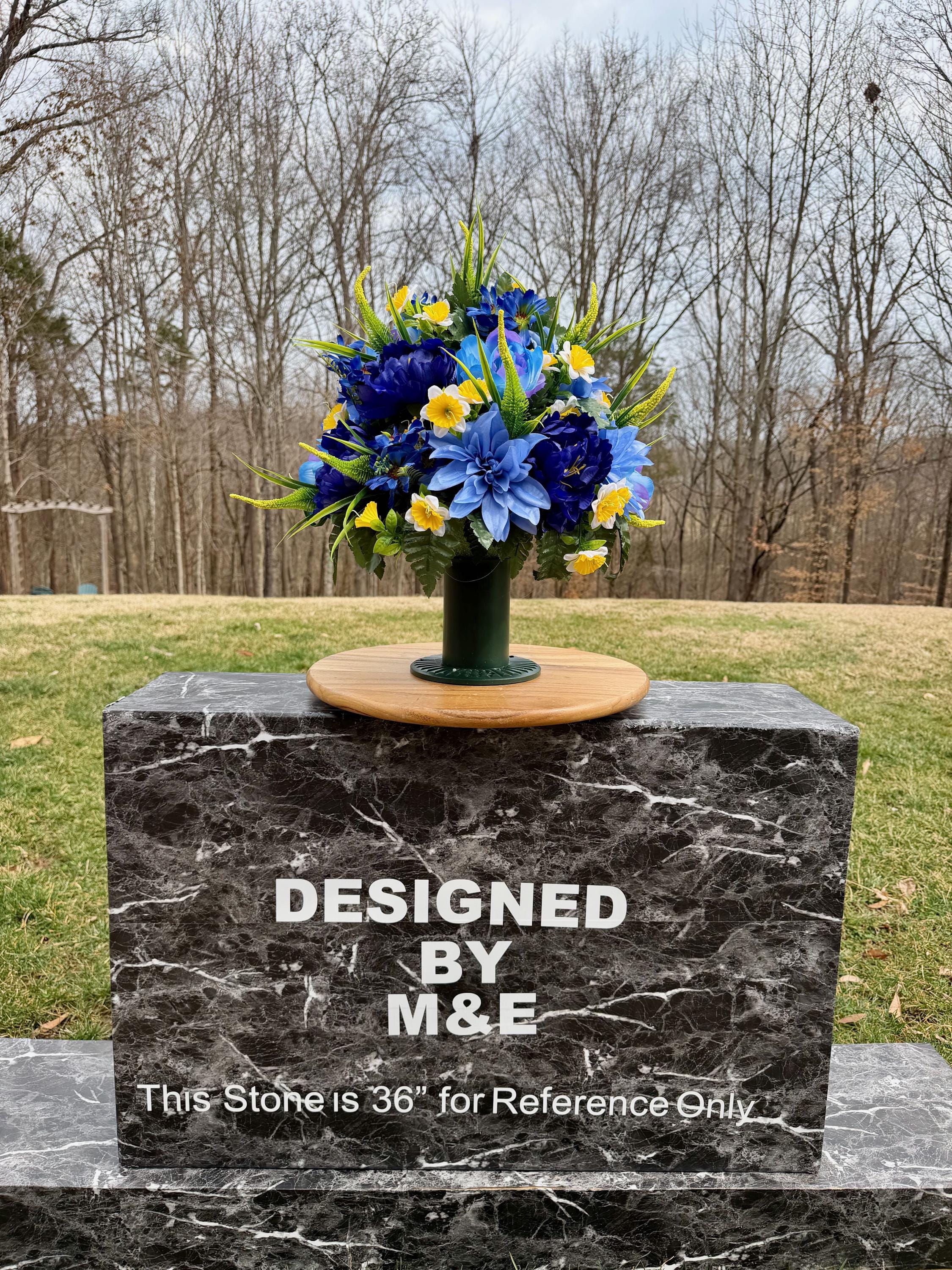 Blue and Yellow Cemetery Vase Arrangement, Headstone Arrangement, Memorial Flowers