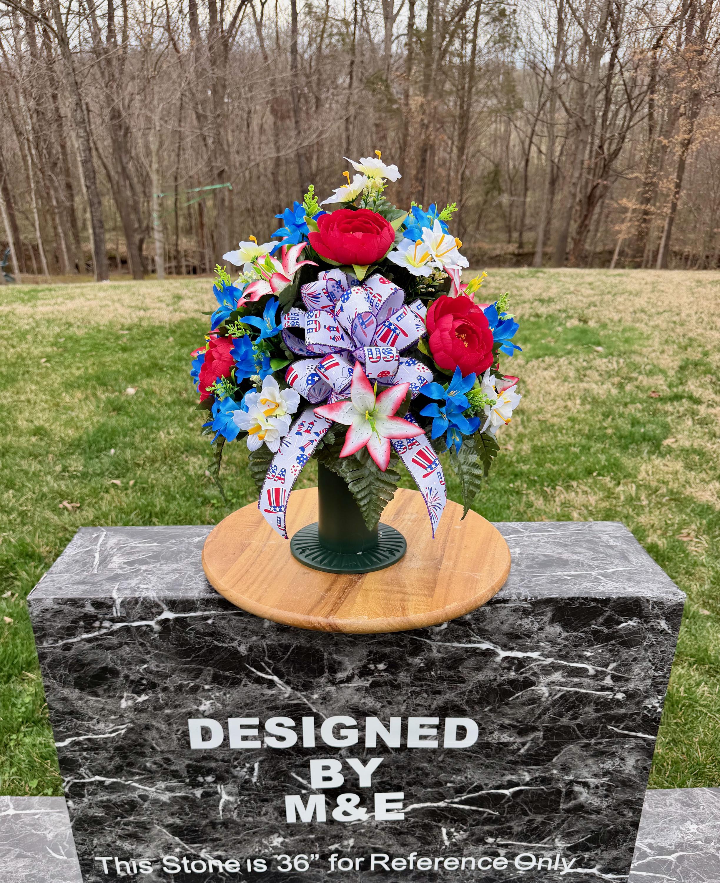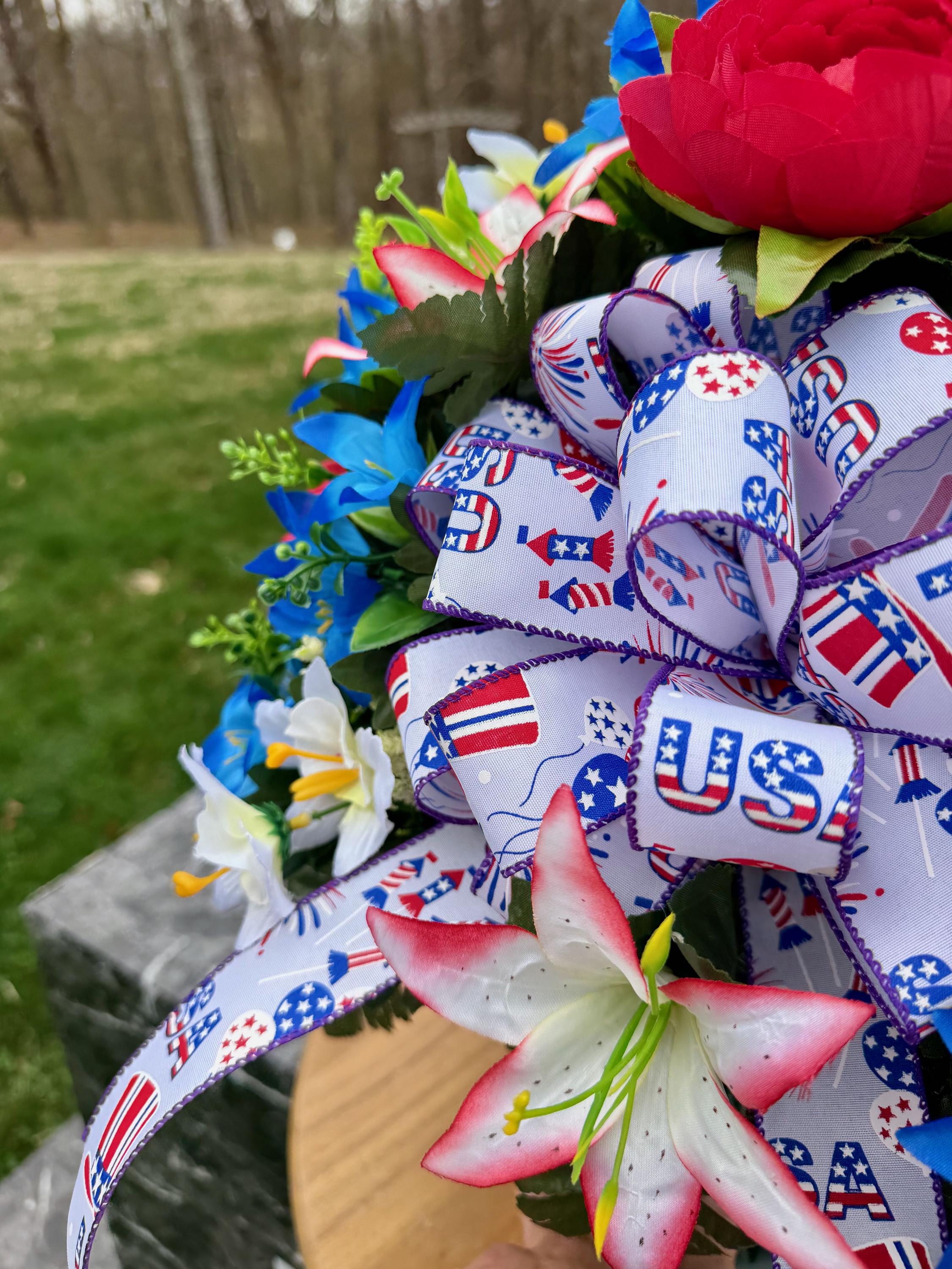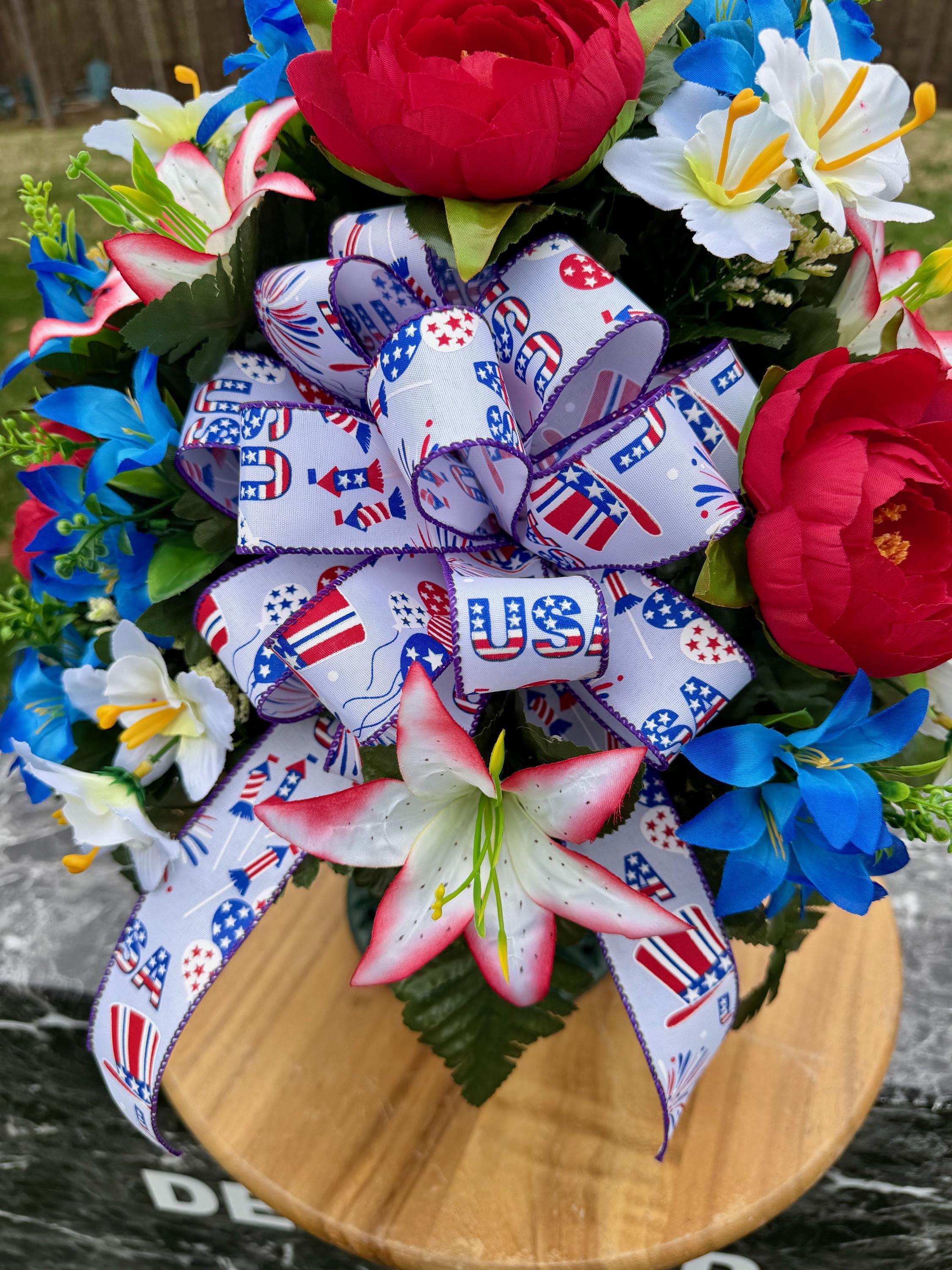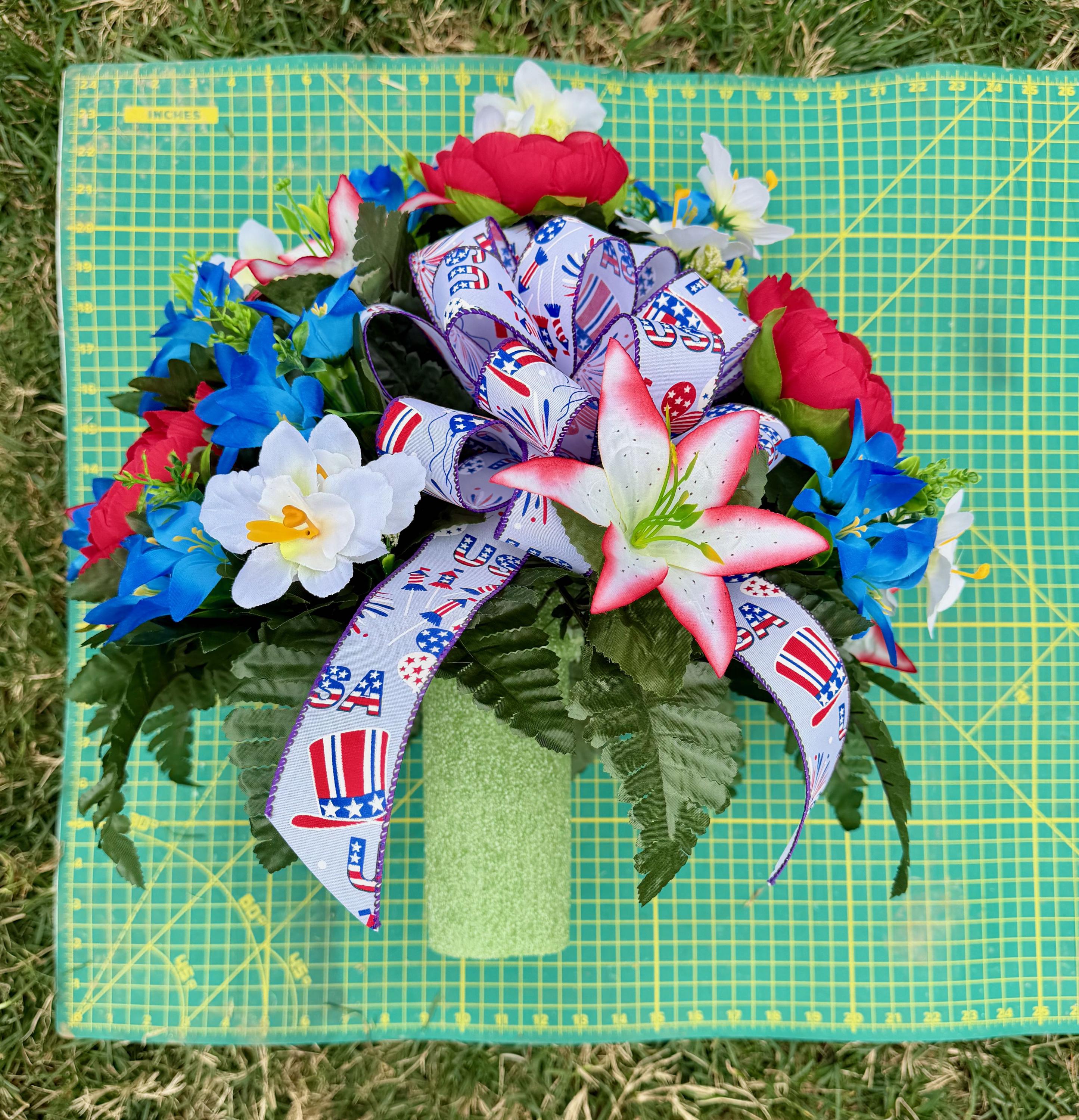 Red, White and Blue with USA Bow Cemetery Vase, Vase, Memorial Cemetery Vase, Memorial Flowers, Memorial Day Cemetery Vase, Sympathy Vase