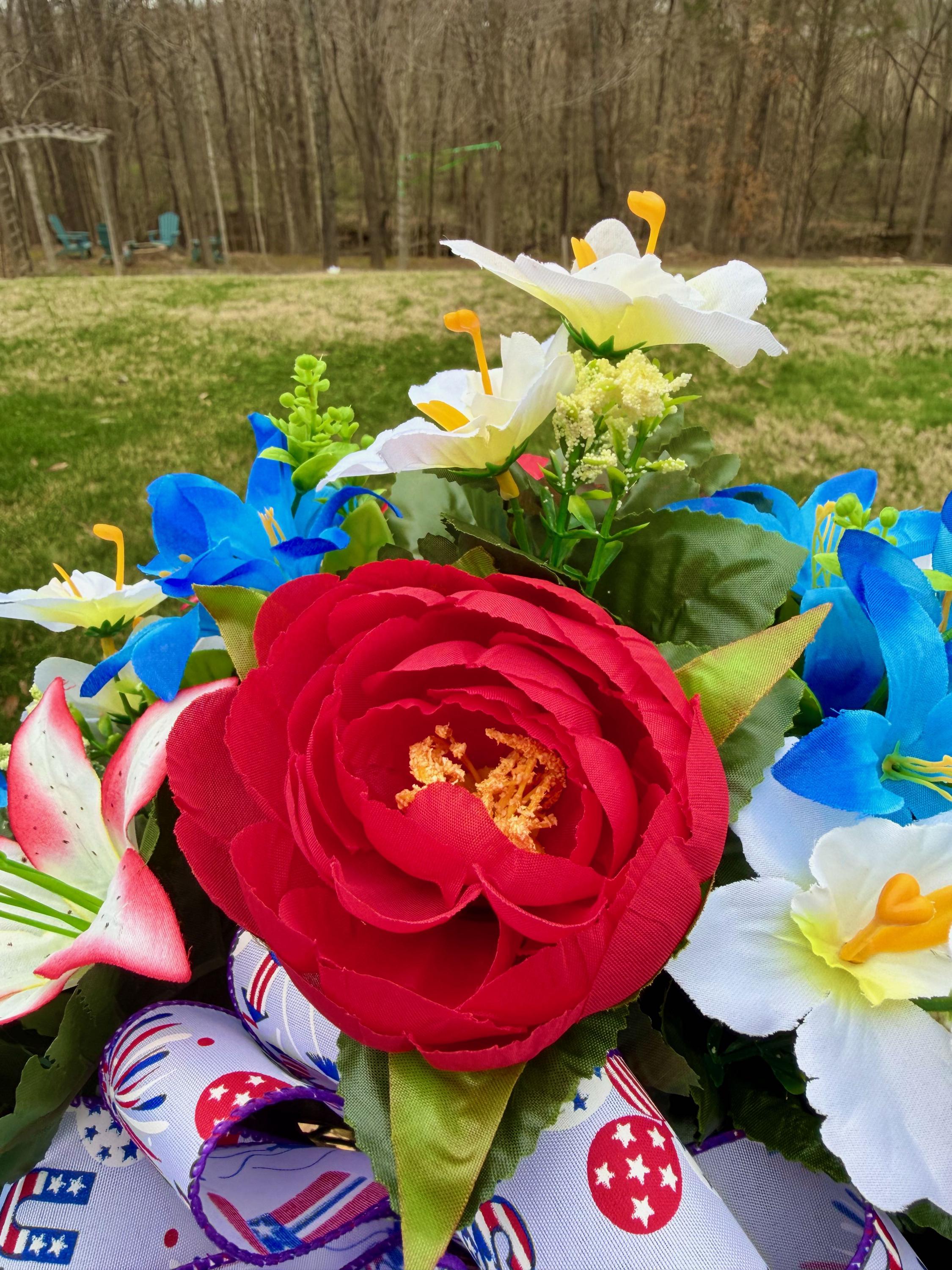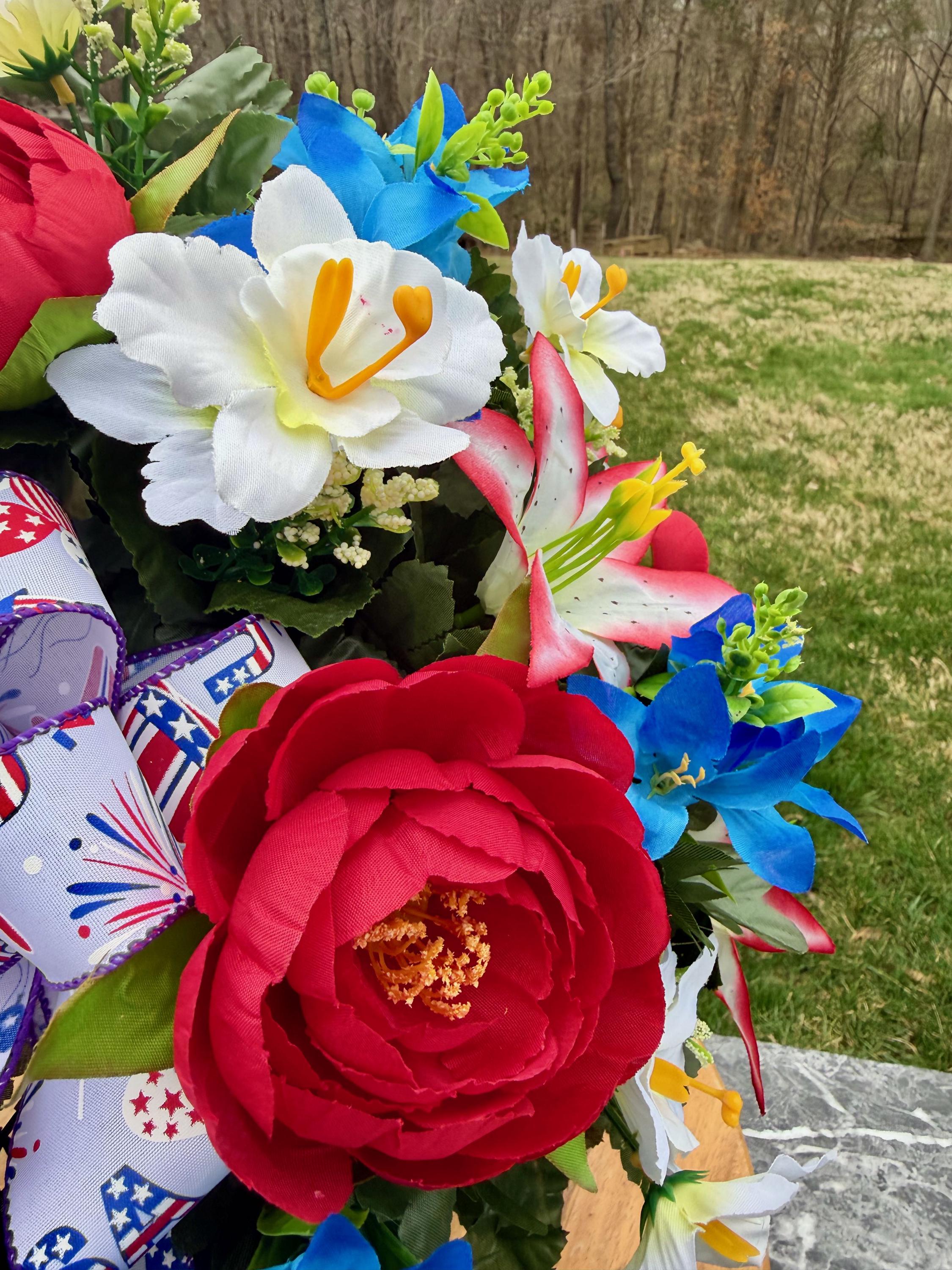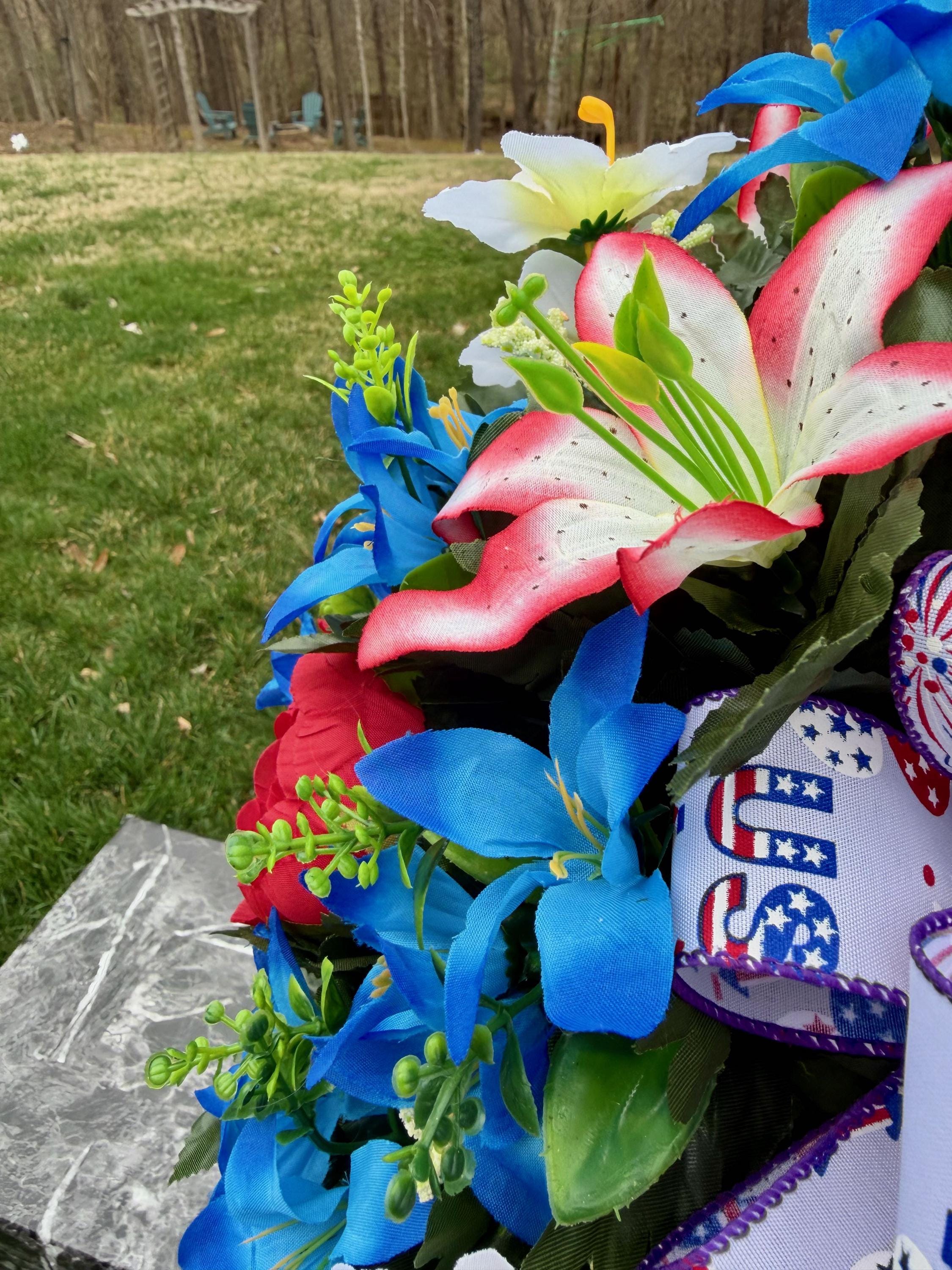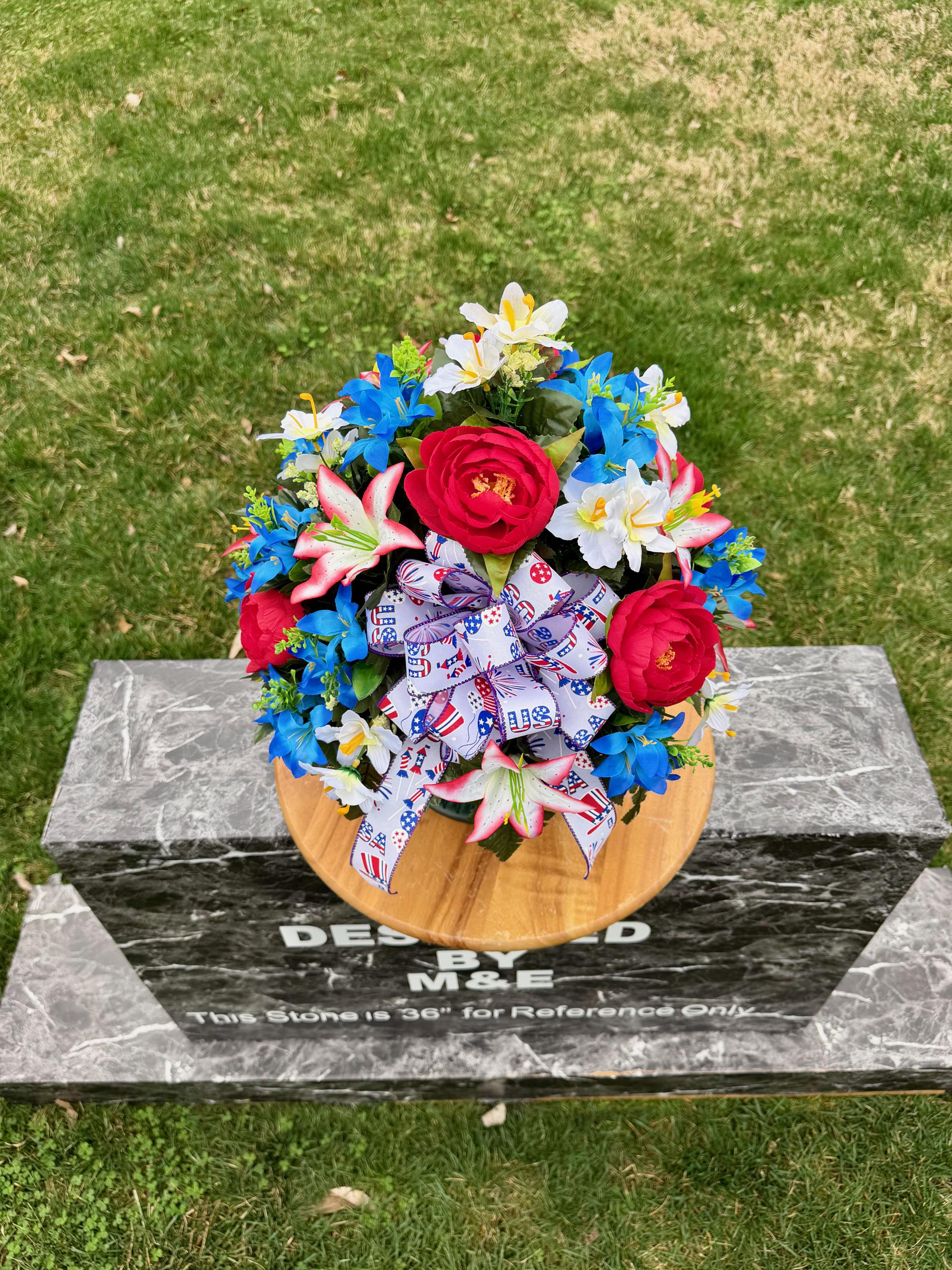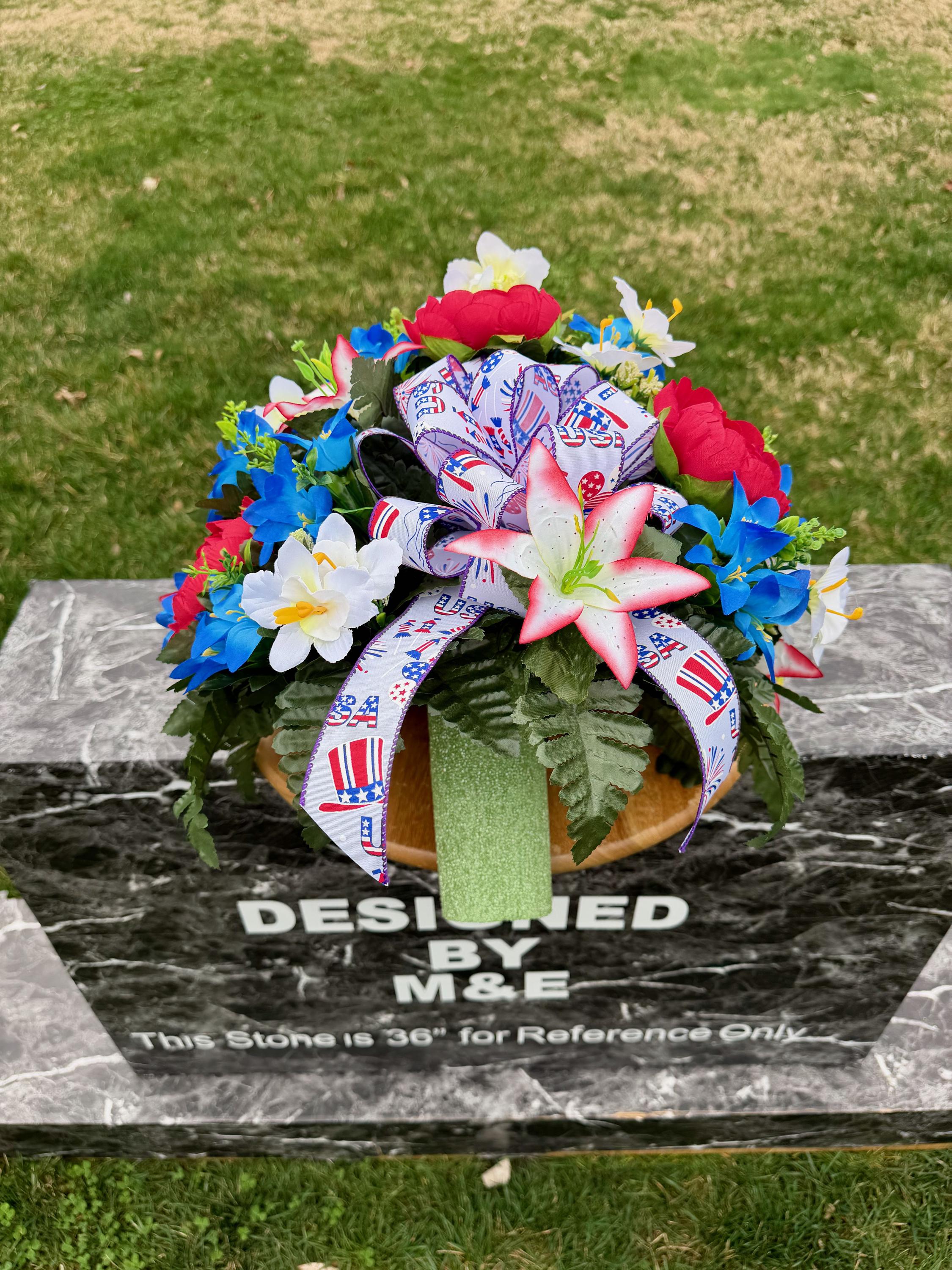 Red, White and Blue with USA Bow Cemetery Vase, Vase, Memorial Cemetery Vase, Memorial Flowers, Memorial Day Cemetery Vase, Sympathy Vase