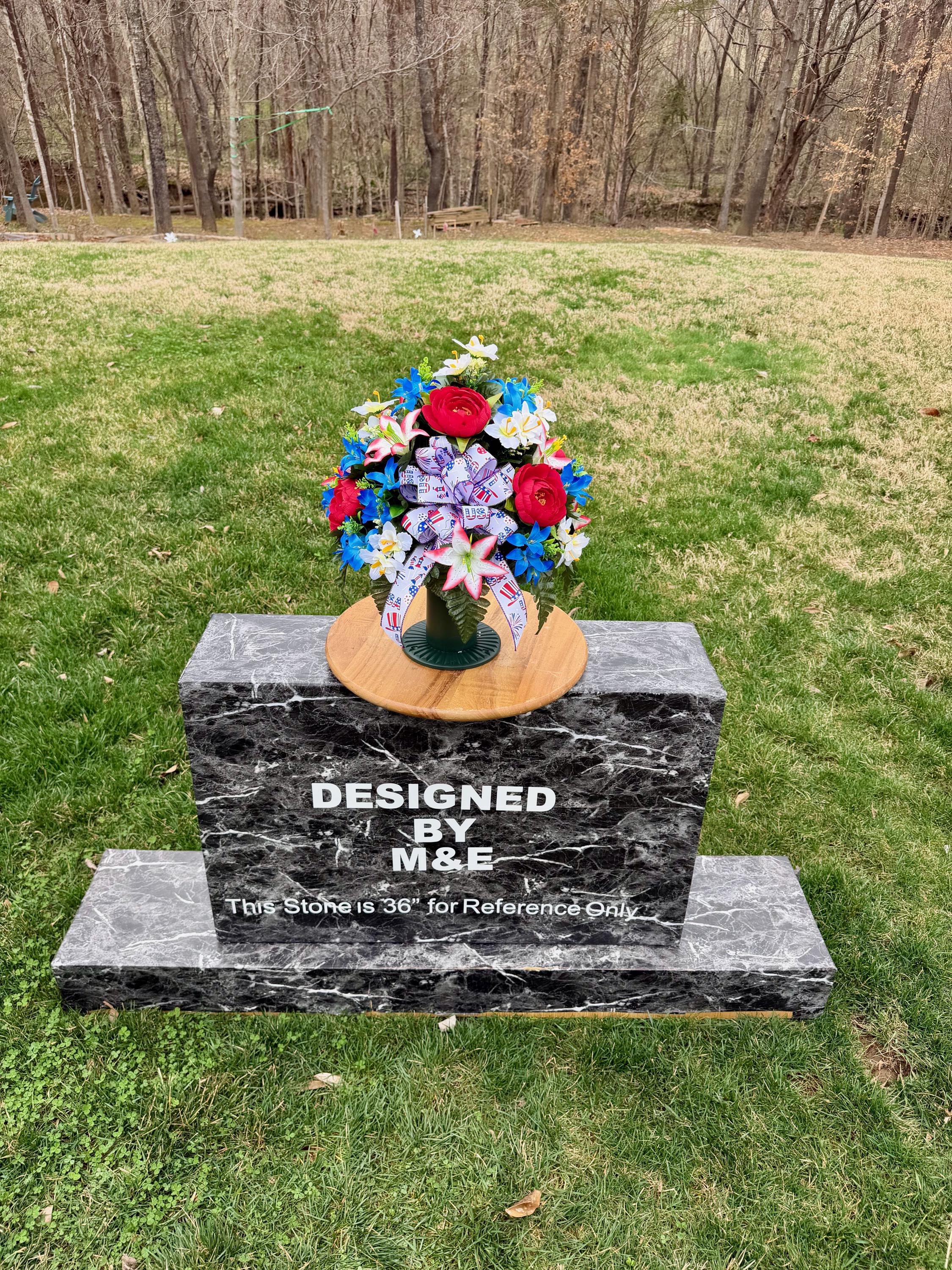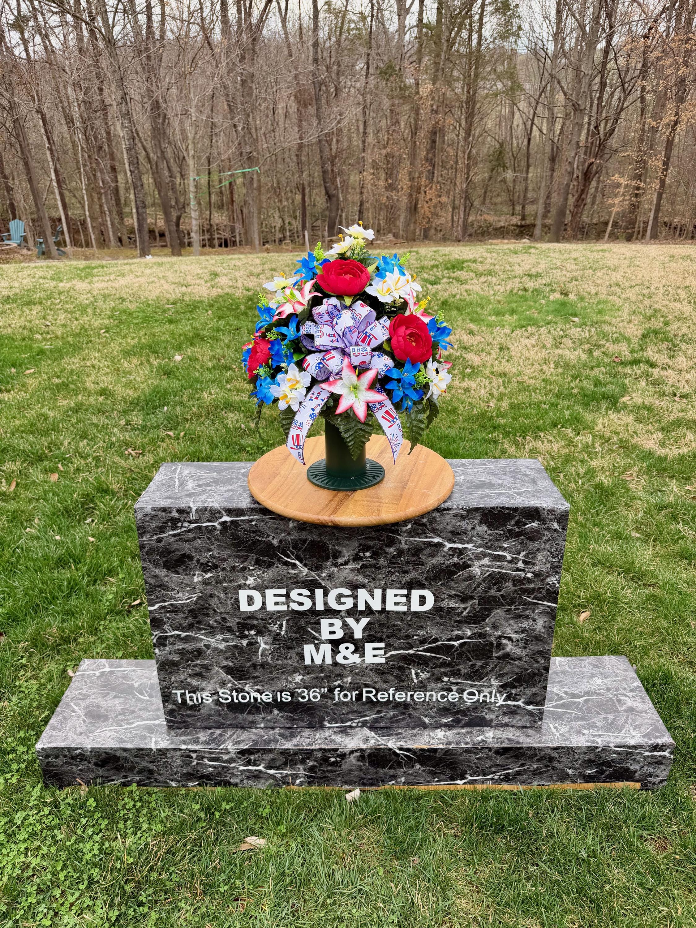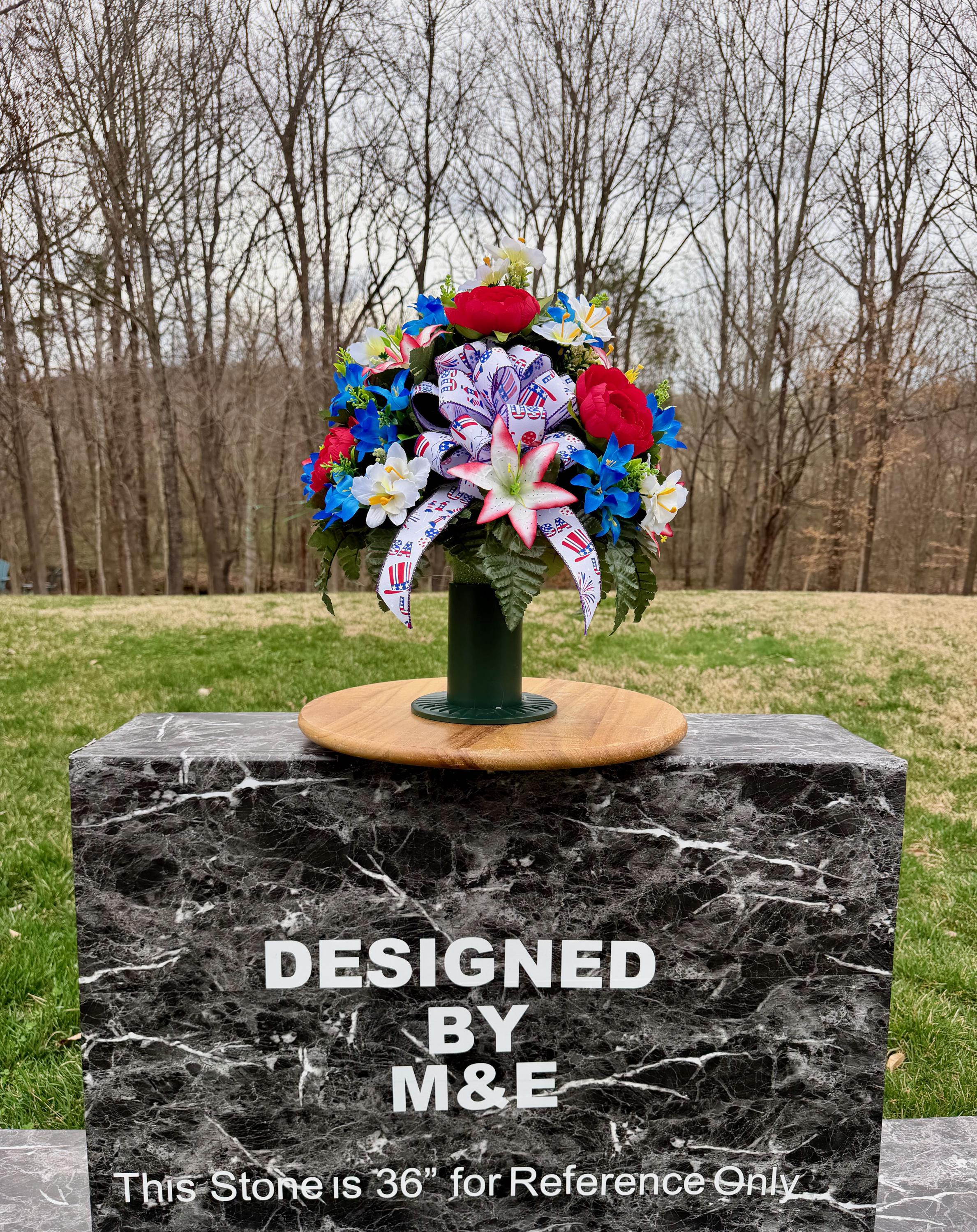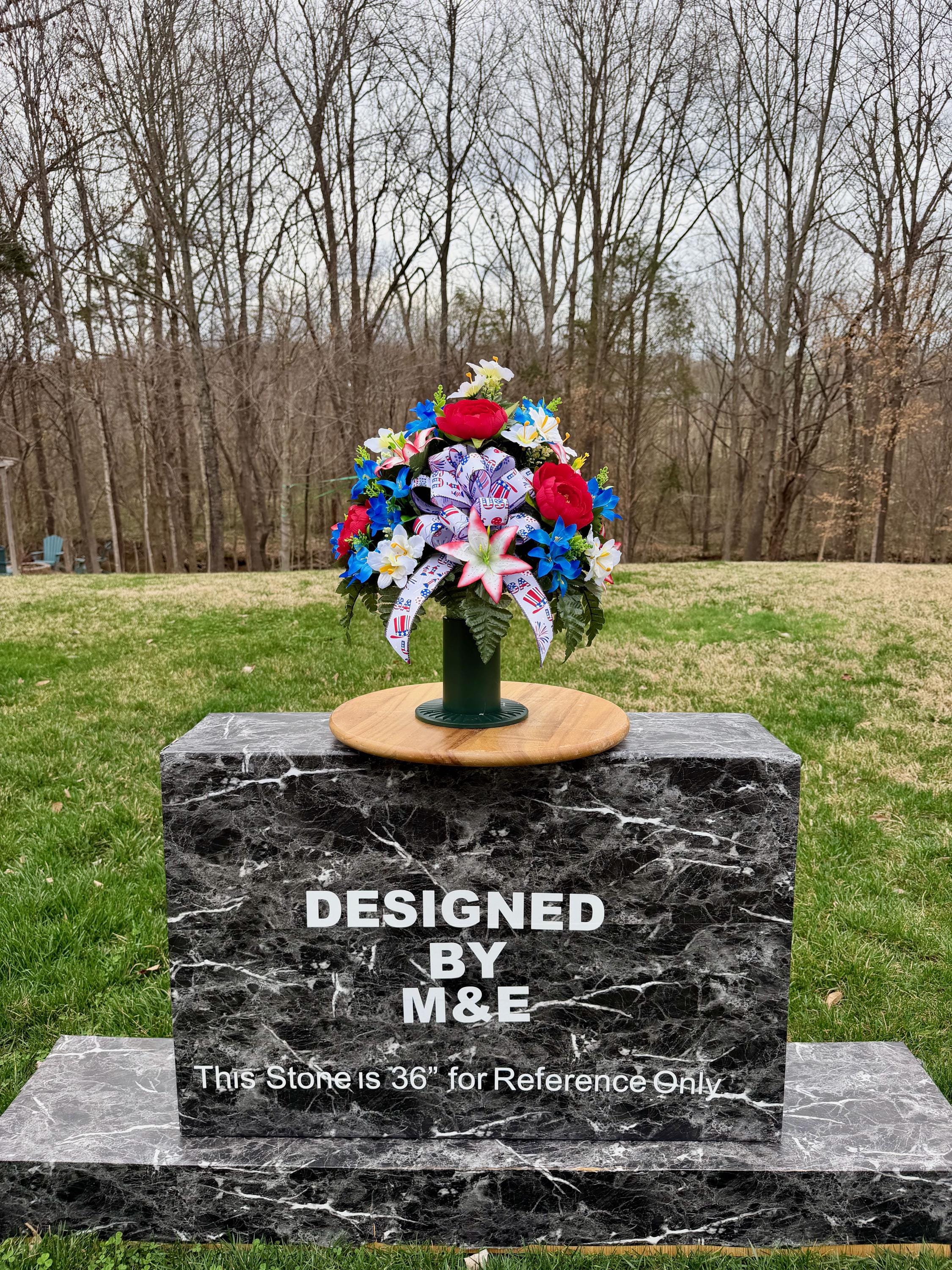 We’re a small, family-operated business consisting of myself, my husband, and my daughter. We personally manage every order and strive for excellent customer service. All our arrangements use high-quality silk flowers, though all silk blooms may fade over time. Each stem is glued into foam to withstand the elements. Designed by M&E uses only premium silks, and we put genuine care into every piece we create. Rest assured, the arrangement shown in our photos is exactly the one you’ll receive, as I design and assemble each one myself. If you’re searching for something unique or have a particular flower, color, or matching vases in mind, please contact me to discuss a custom order.
