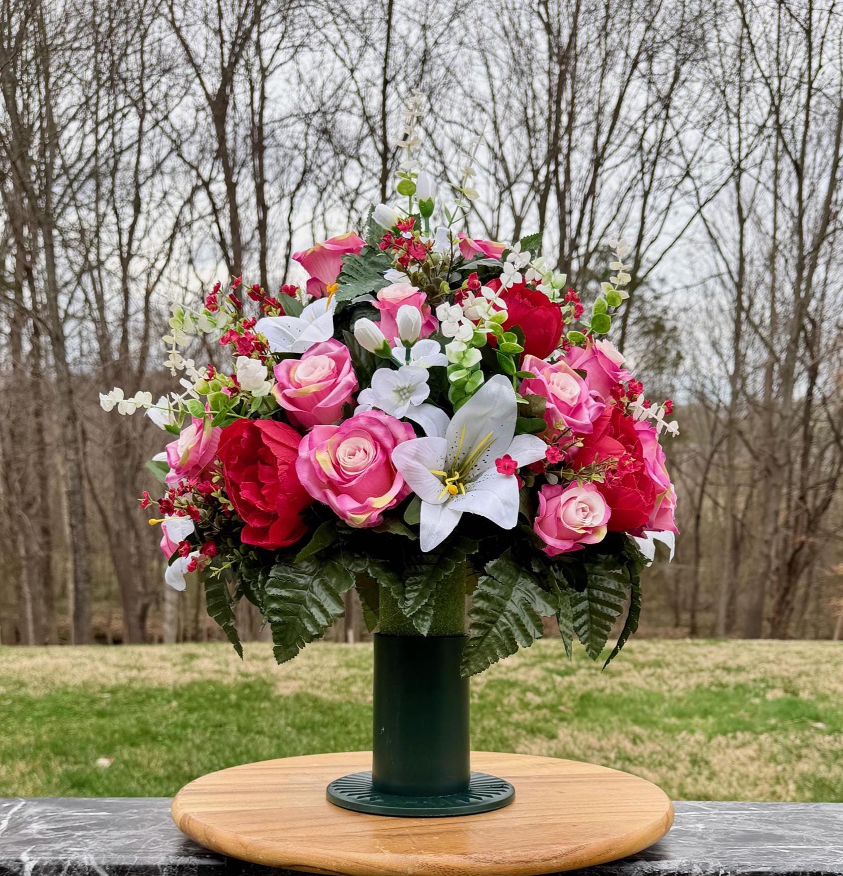 Beautiful Reds and Whites Cemetery Vase, Vase, Memorial Cemetery Vase, Memorial Flowers, Memorial Day Cemetery Vase, Sympathy Vase Flowers