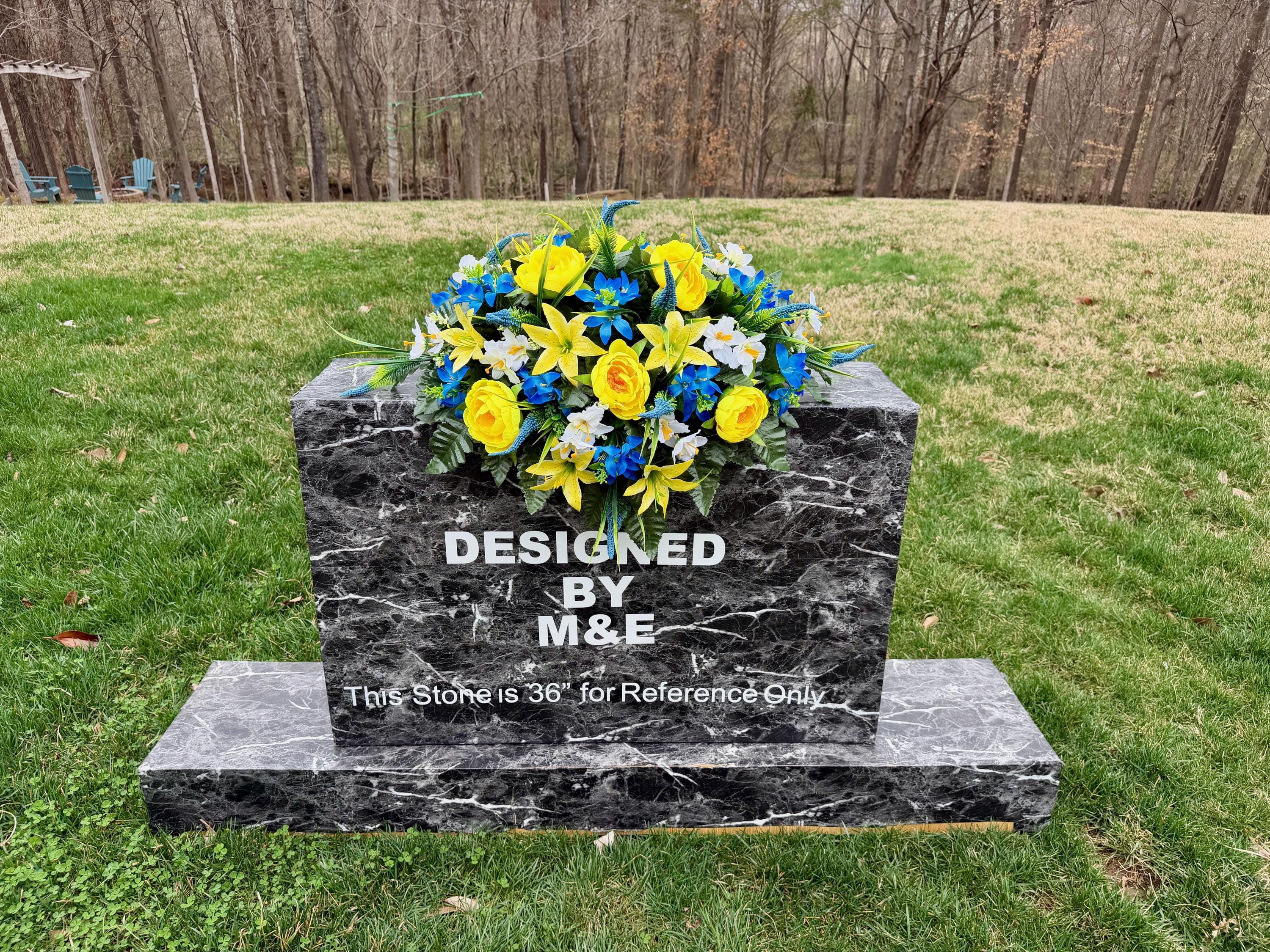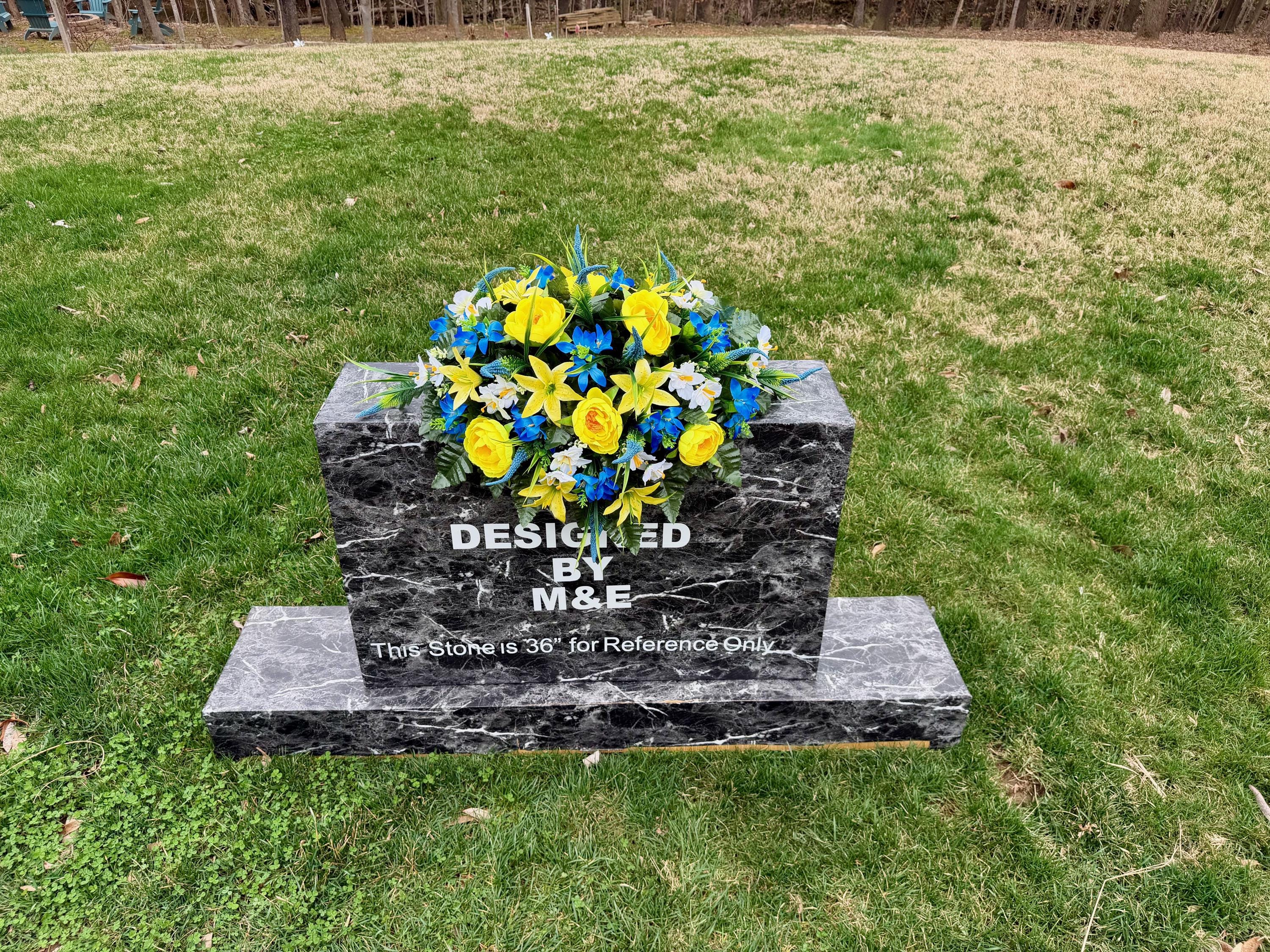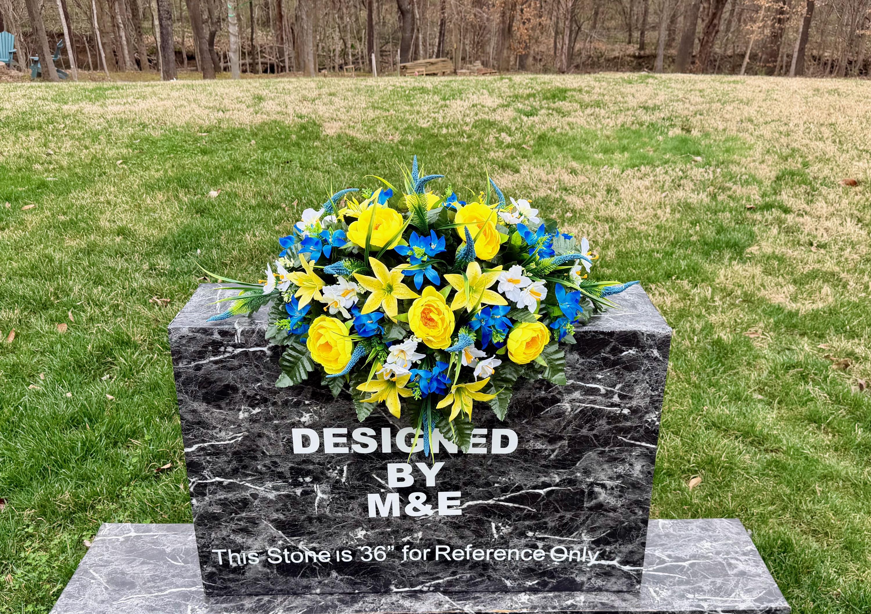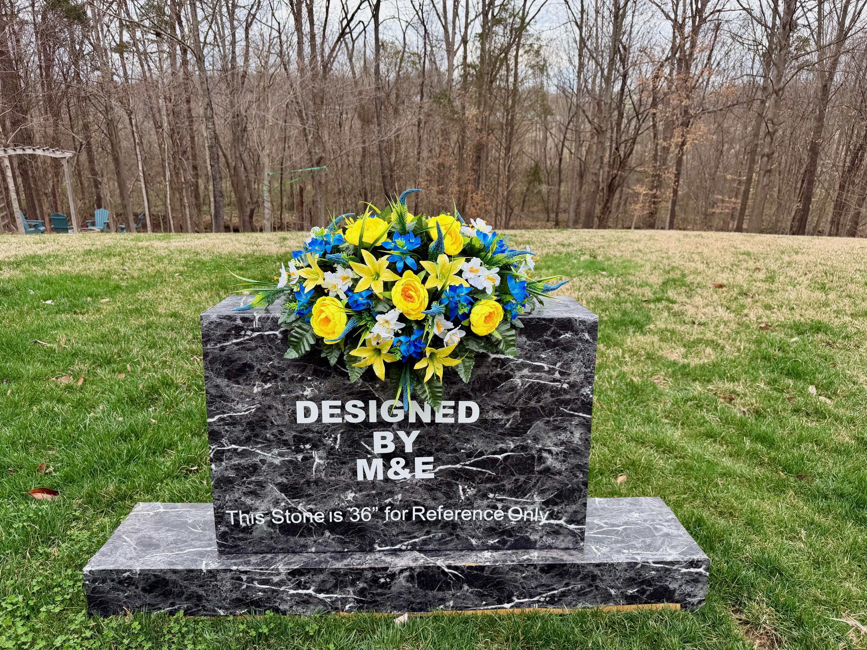 We’re a small, family-operated business consisting of myself, my husband, and my daughter. We personally manage every order and strive for excellent customer service. All our arrangements use high-quality silk flowers, though all silk blooms may fade over time. Each stem is glued into foam to withstand the elements. Designed by M&E uses only premium silks, and we put genuine care into every piece we create. Rest assured, the arrangement shown in our photos is exactly the one you’ll receive, as I design and assemble each one myself. If you’re searching for something unique or have a particular flower, color, or matching vases in mind, please contact me to discuss a custom order.