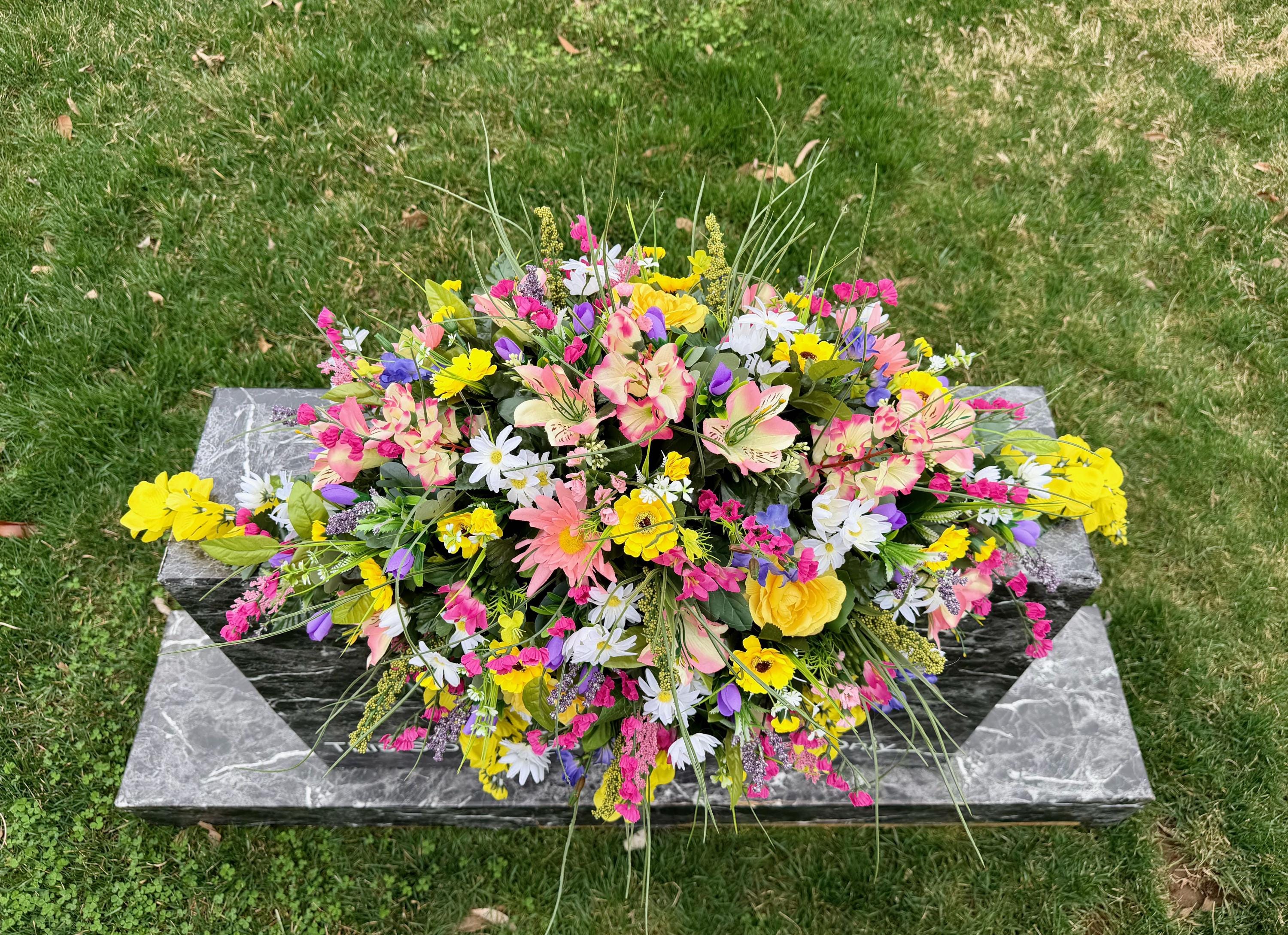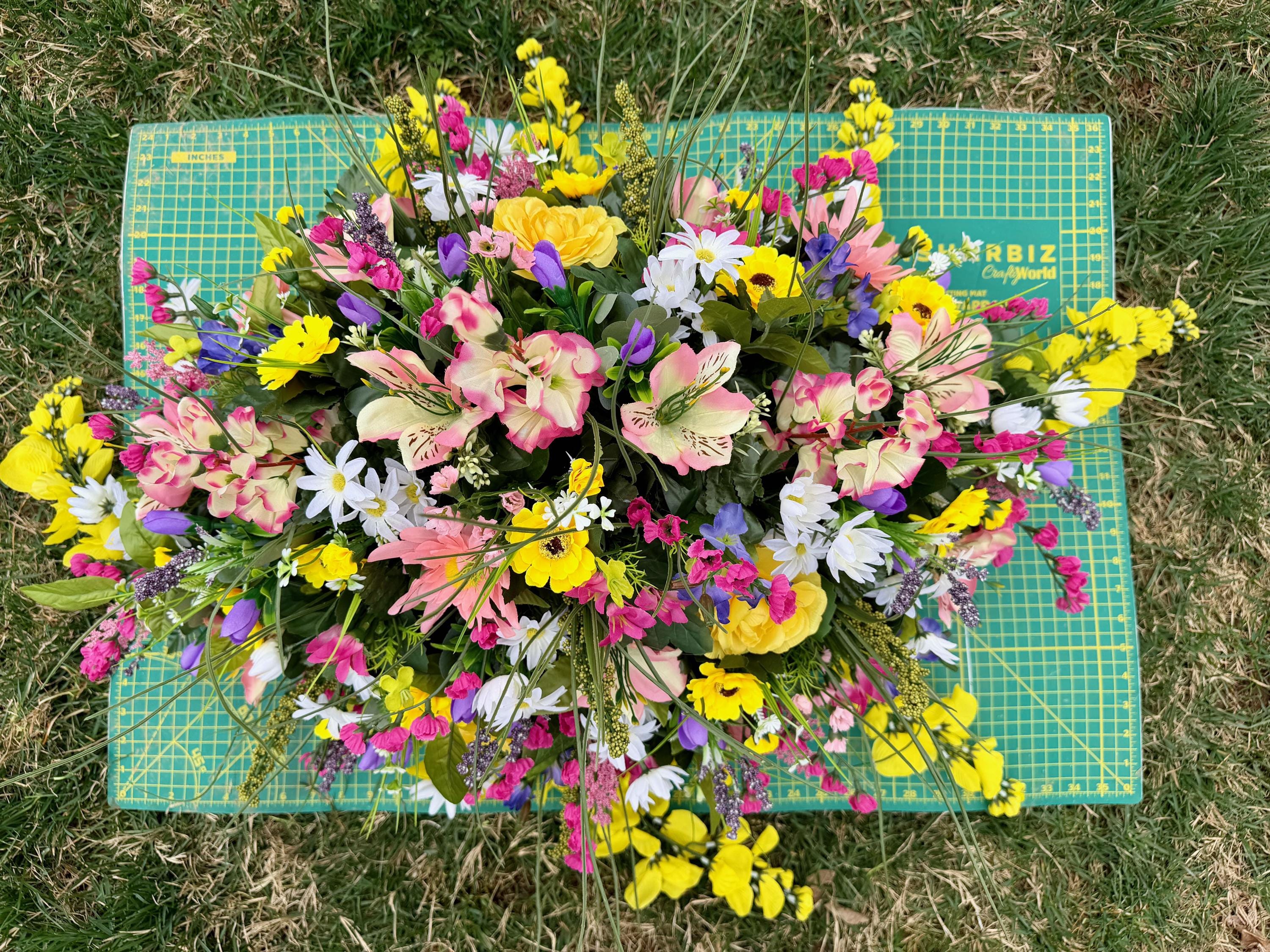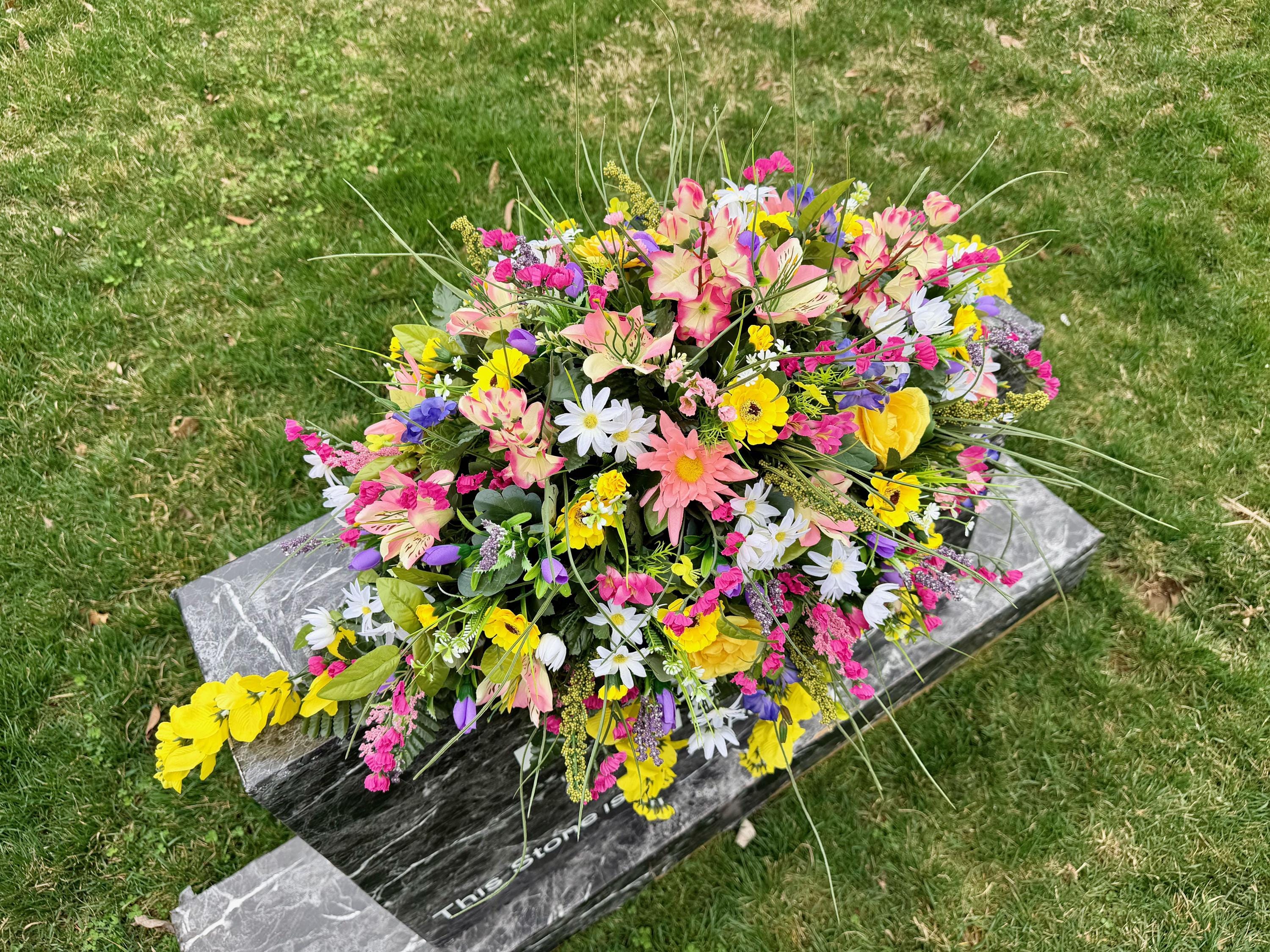 Beautiful Large Wildflower Cemetery Saddle, Grave Decoration, Memorial Flowers